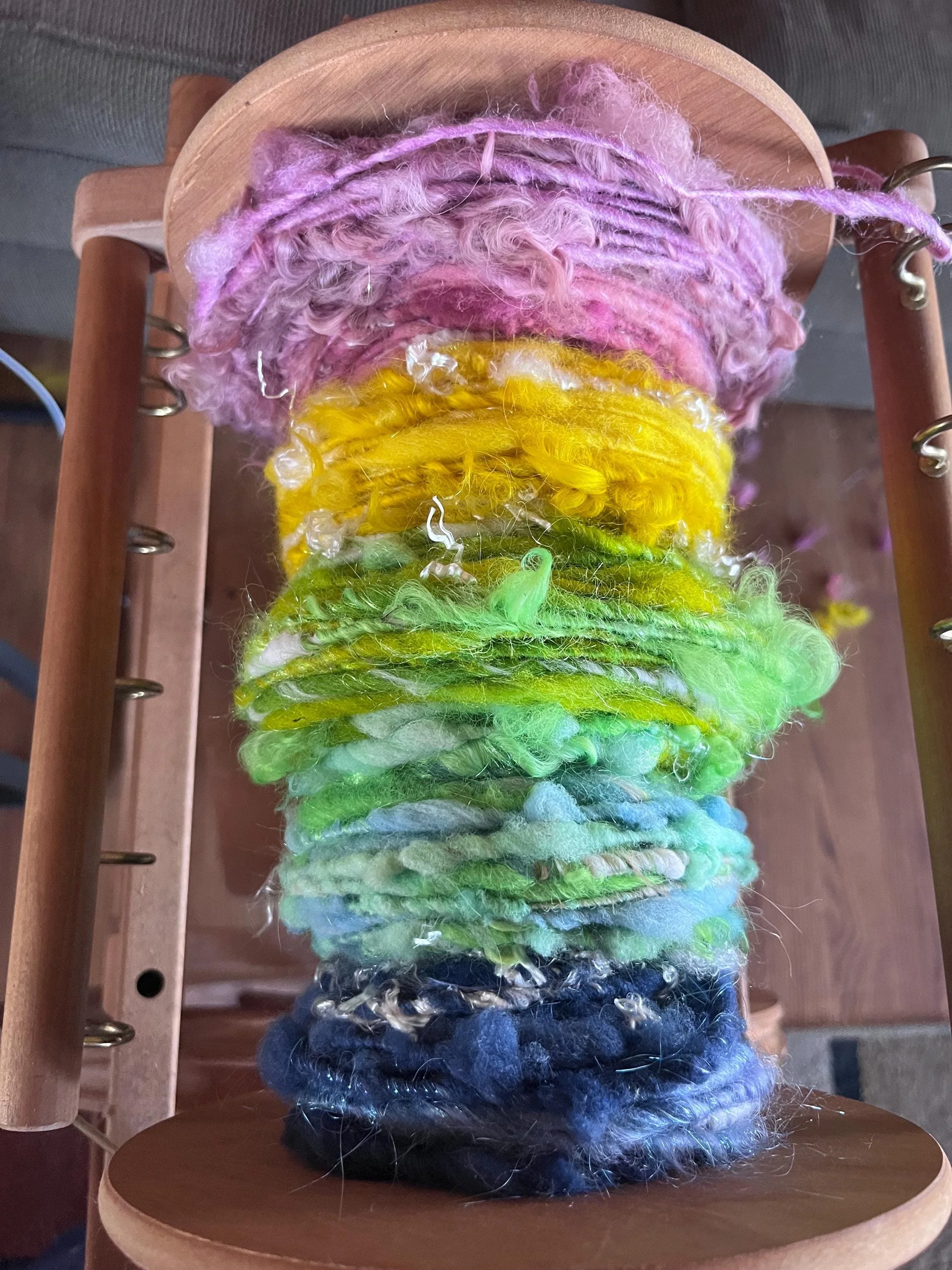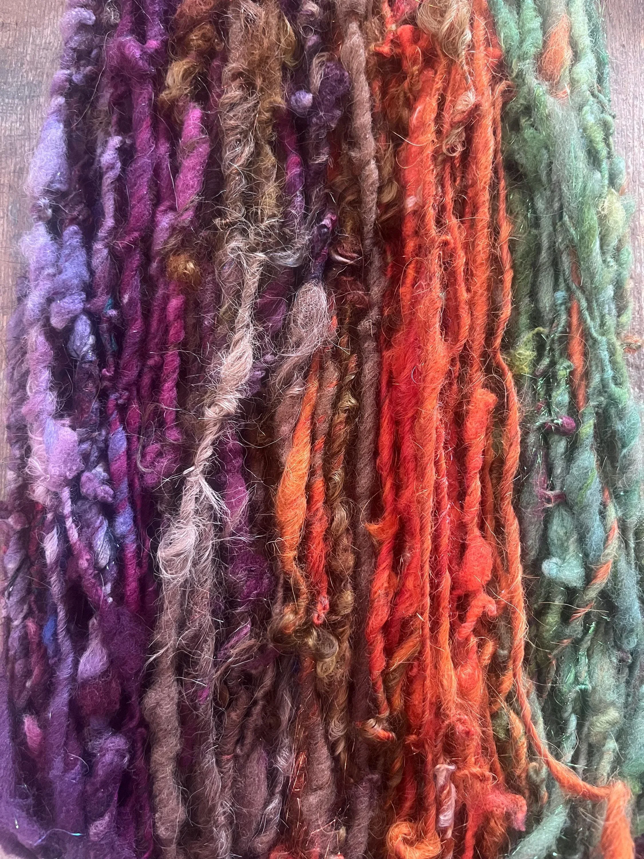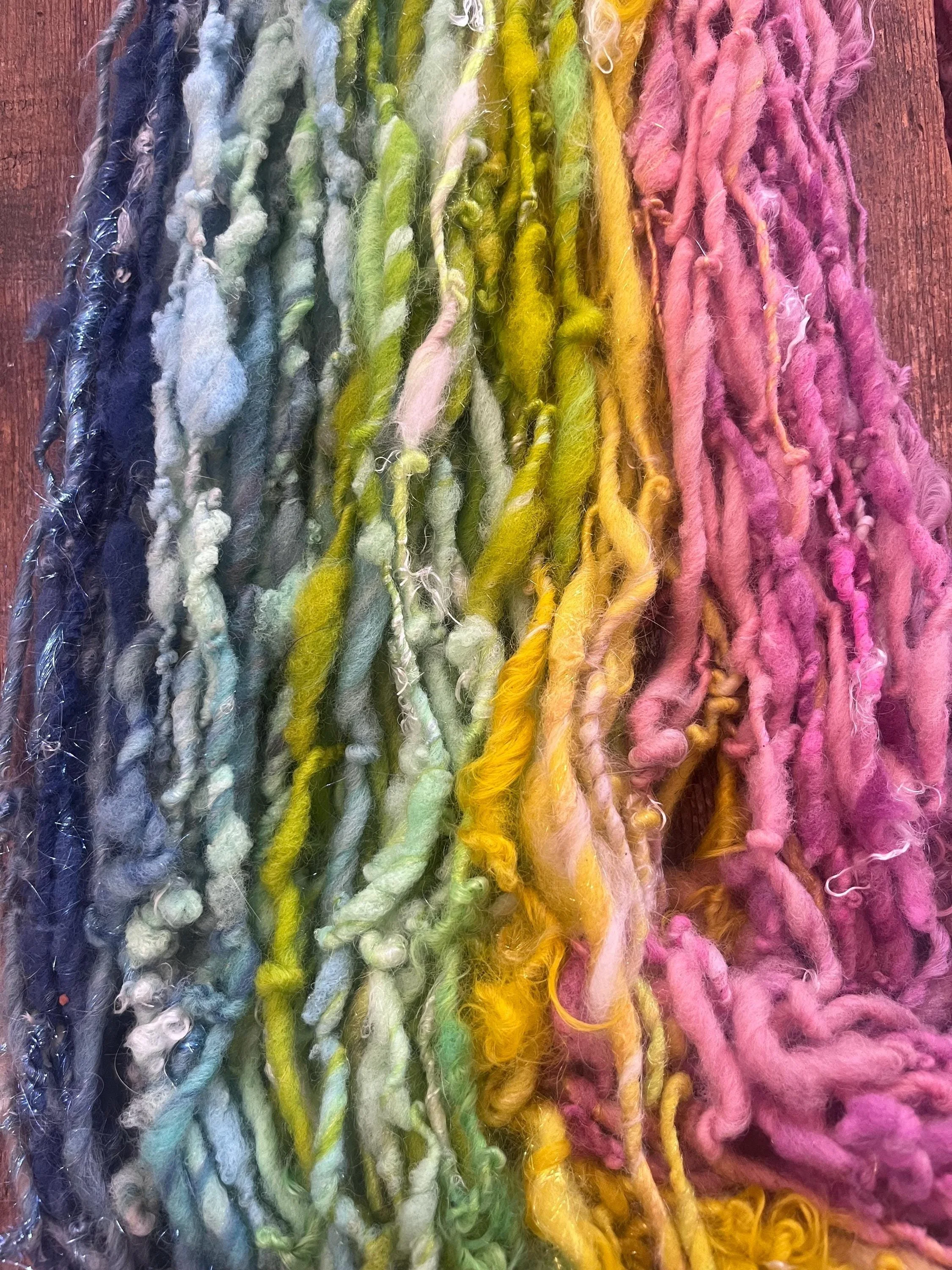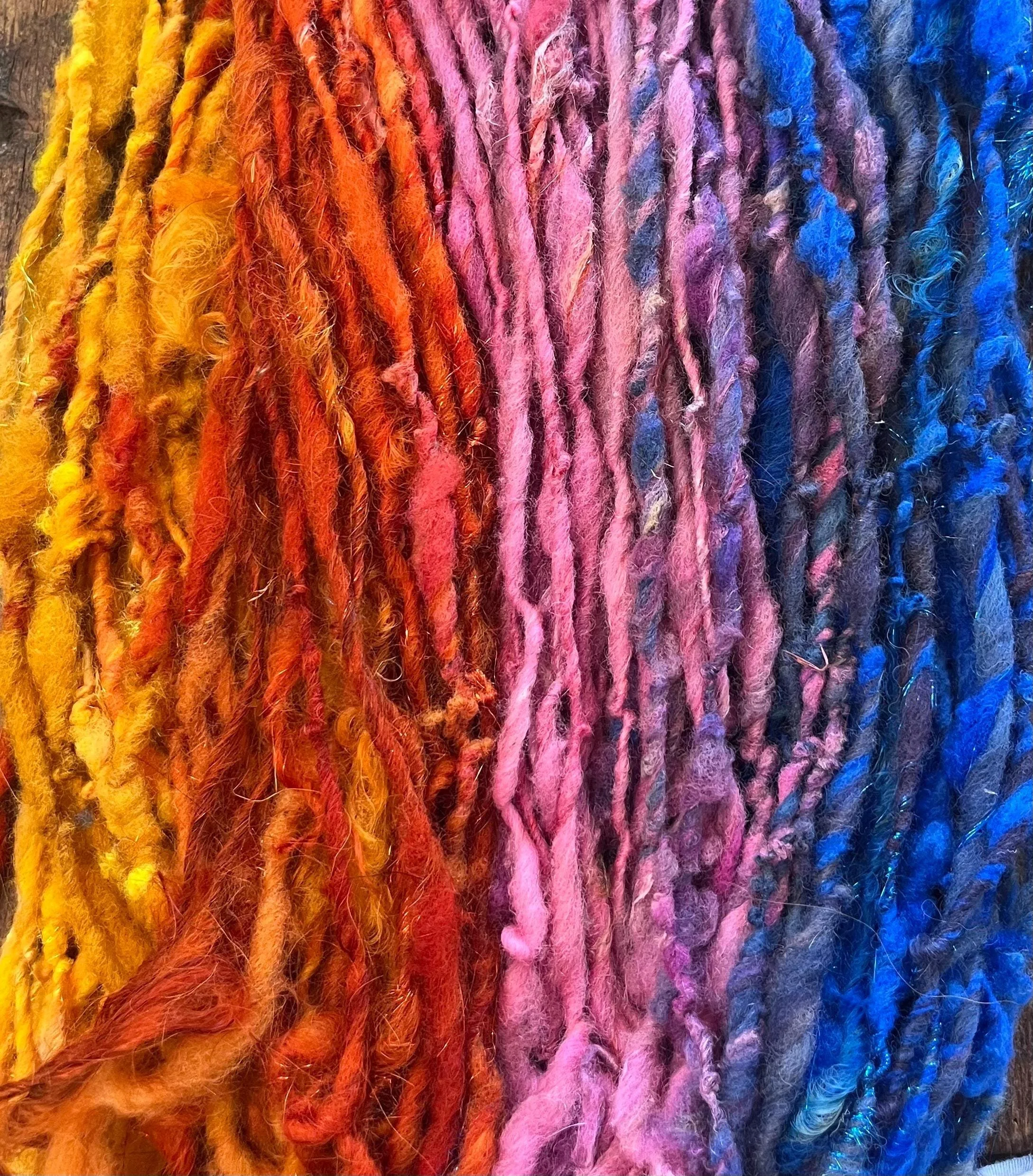 Naturally dyed rainbow handspun art yarn set, 100 yards