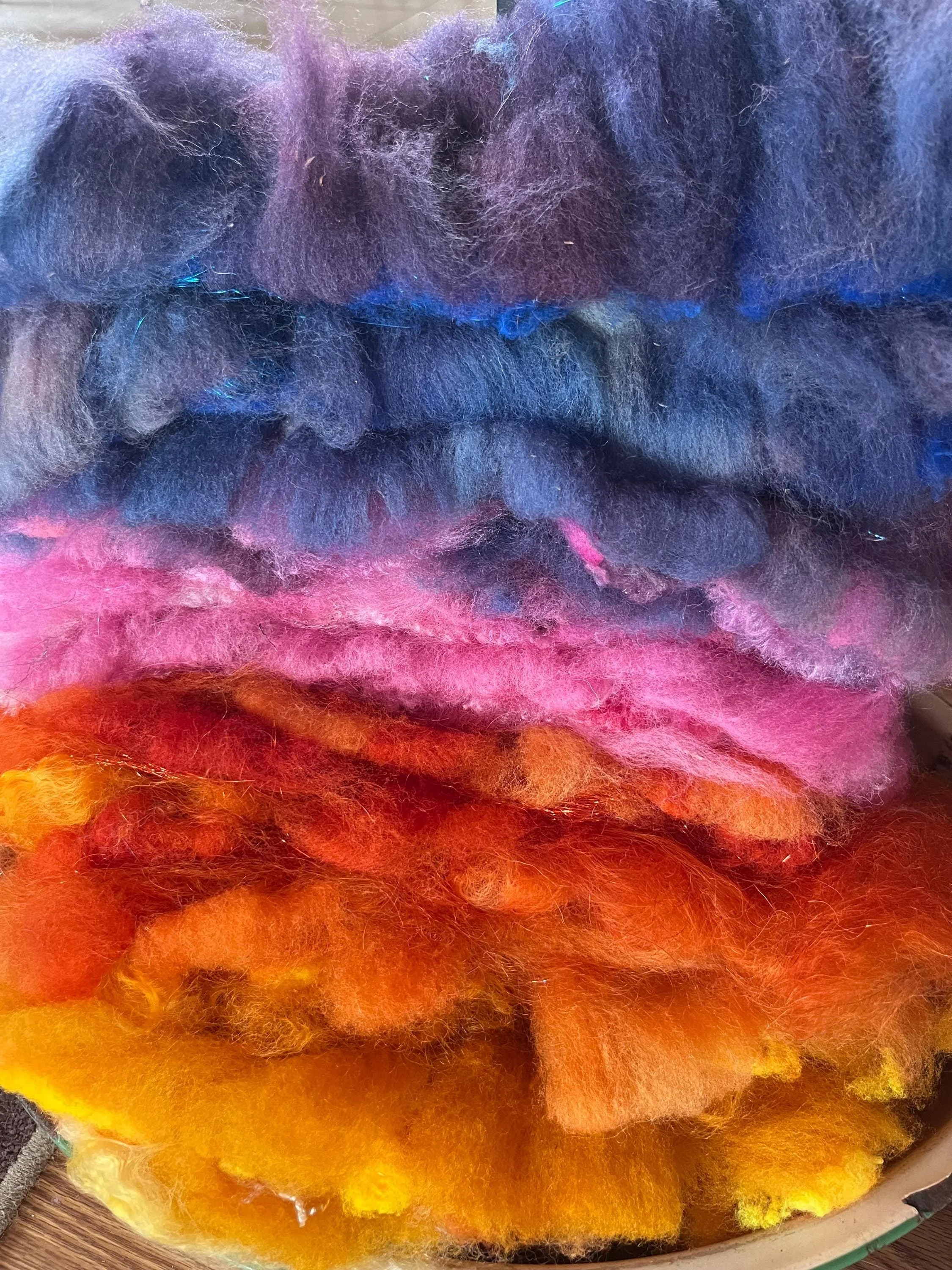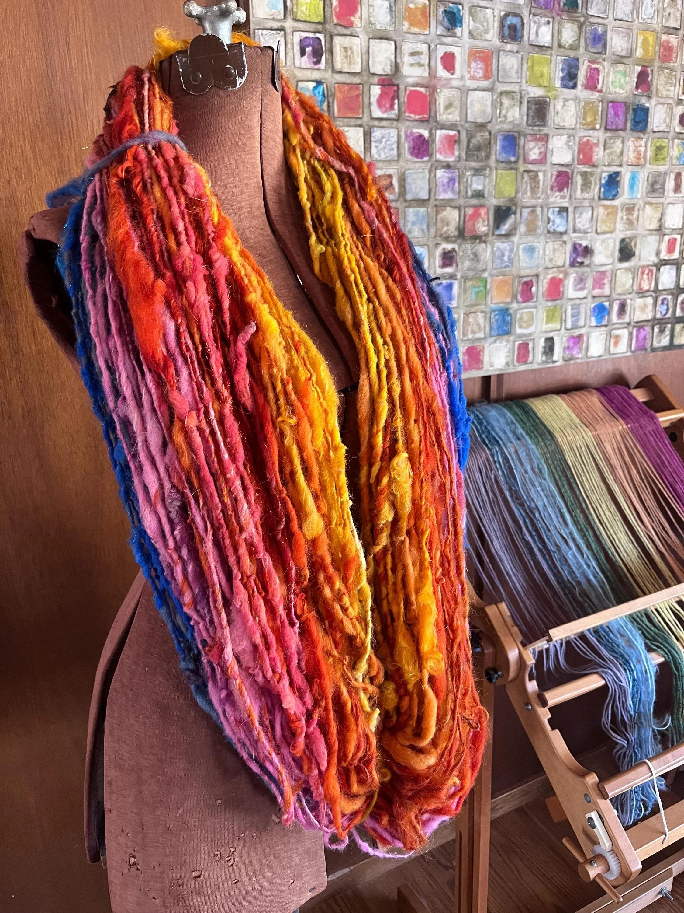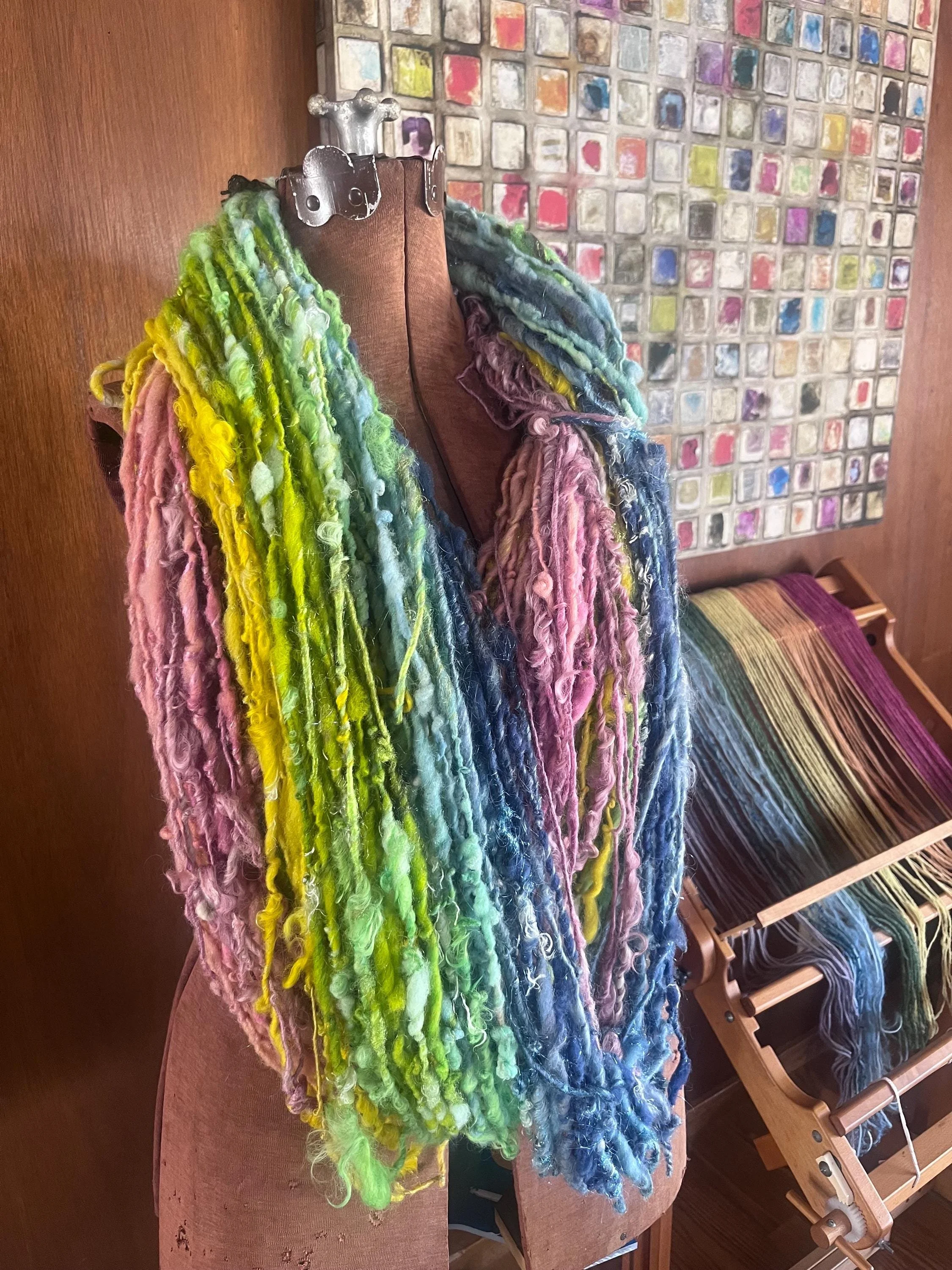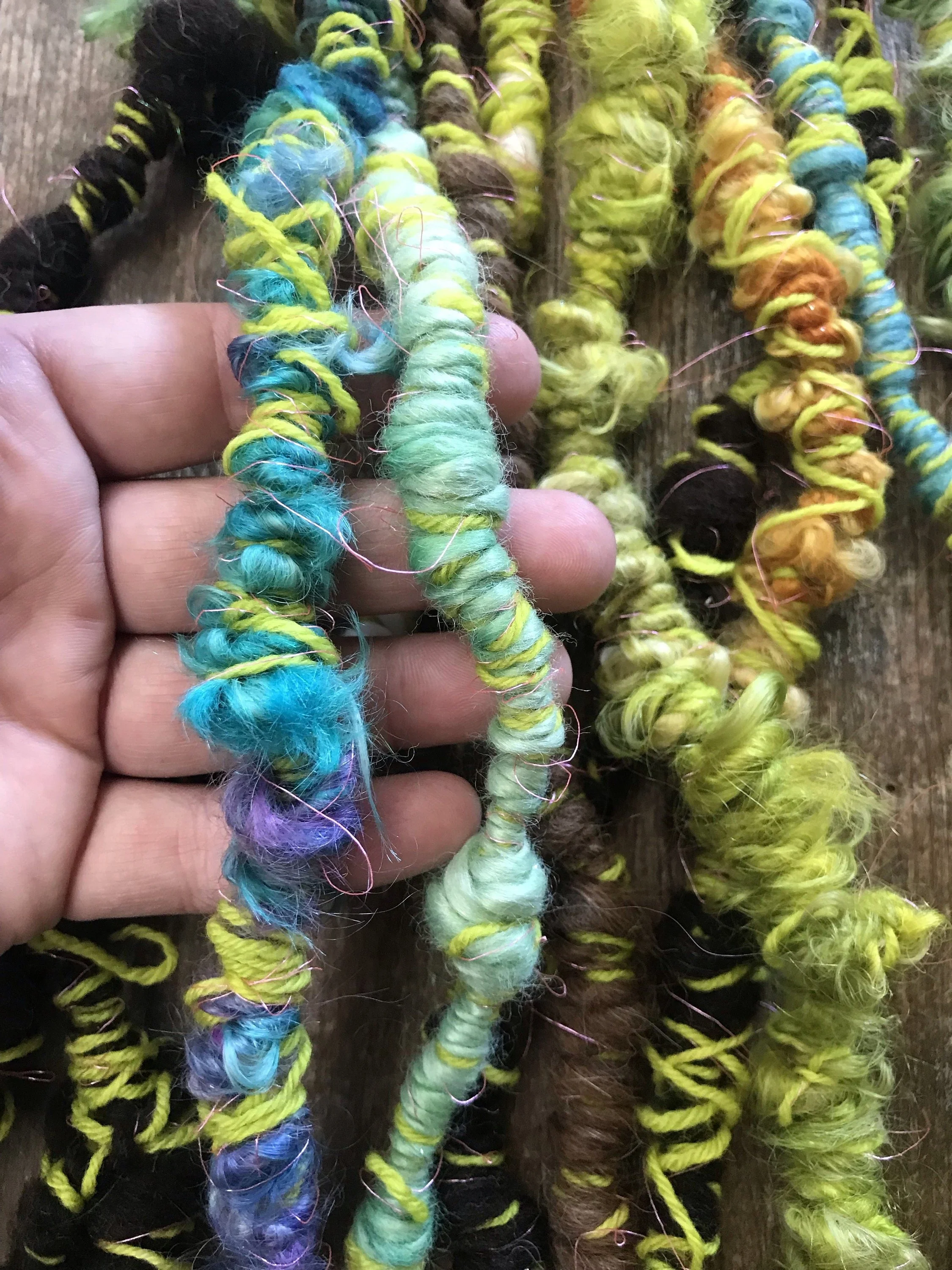 Naturally dyed rainbow handspun art yarn set, 100 yards