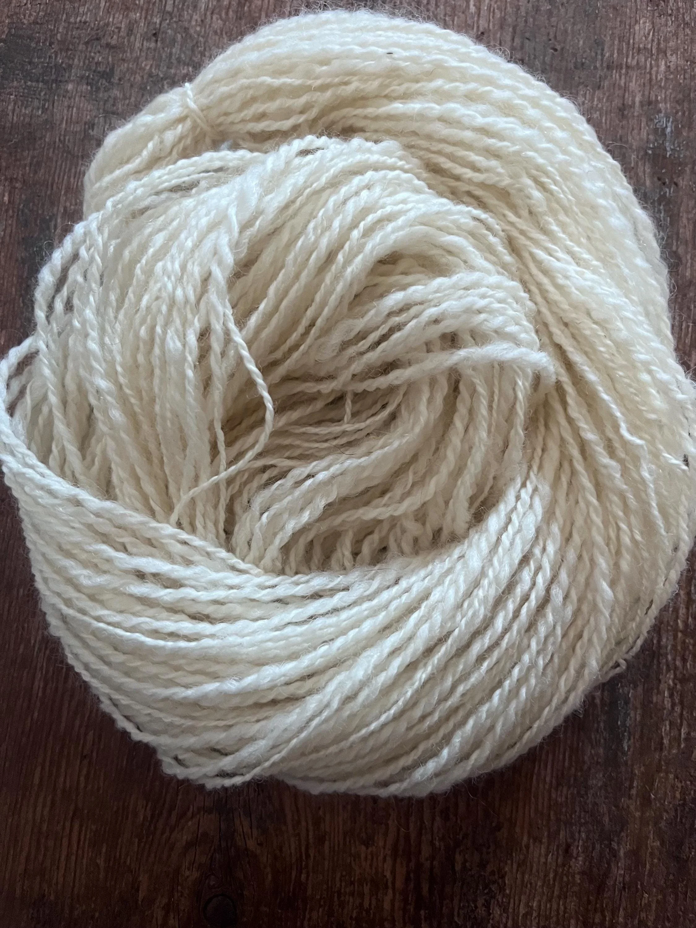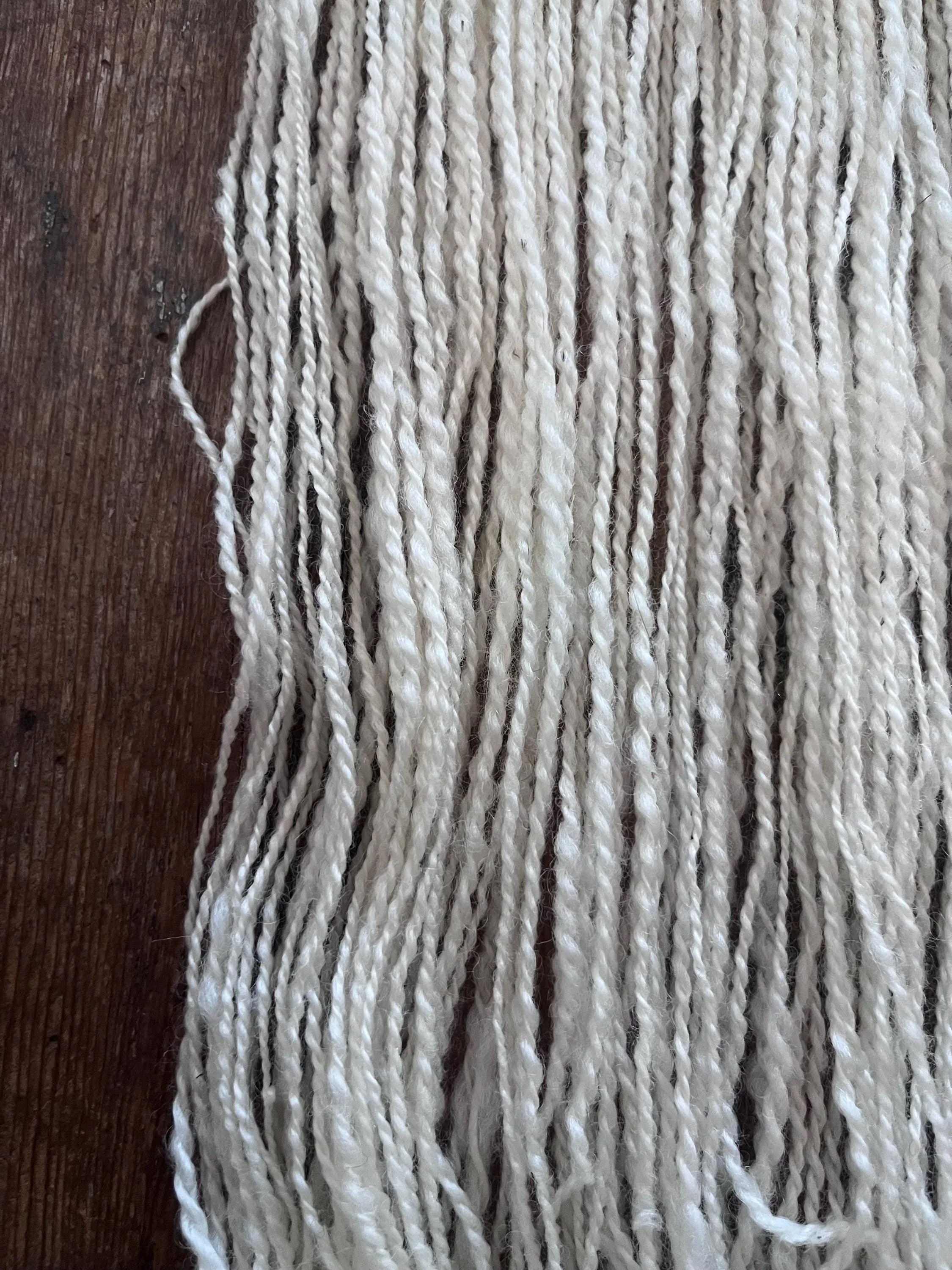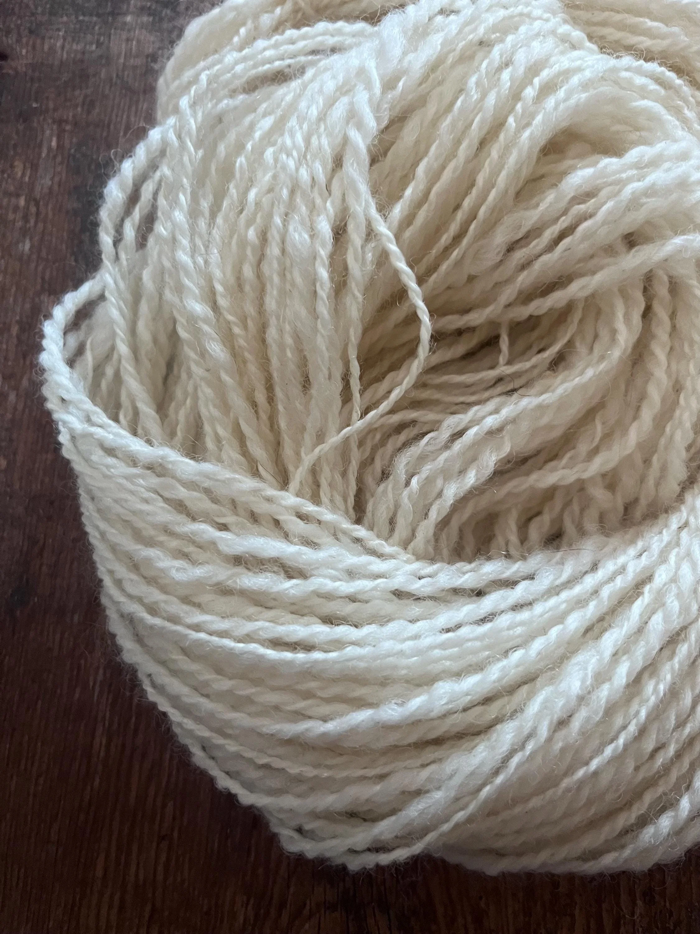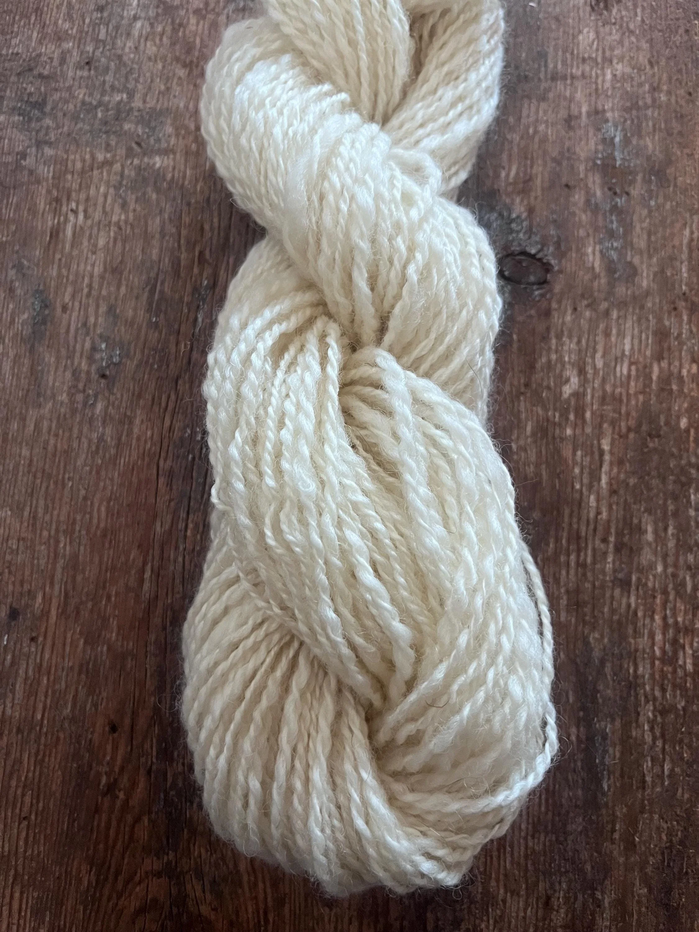 Handspun Jacob Romney Wool Yarn, Soft White Sport Weight, 100 Yards