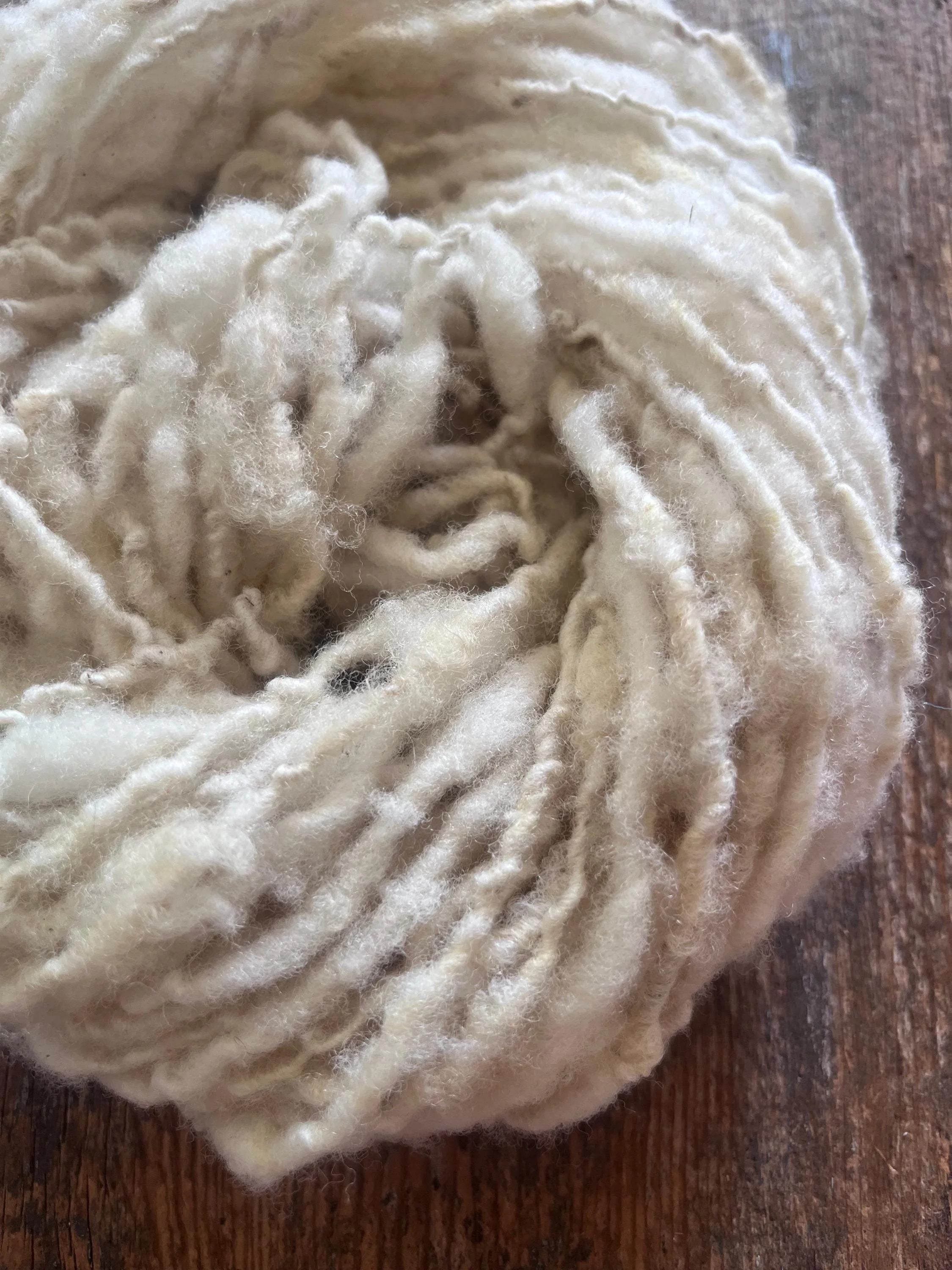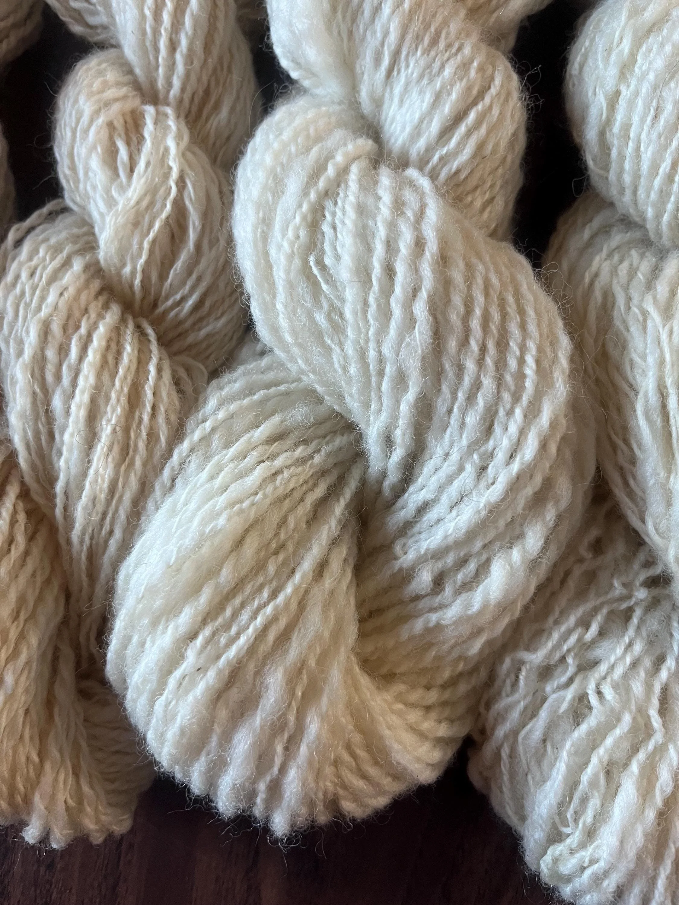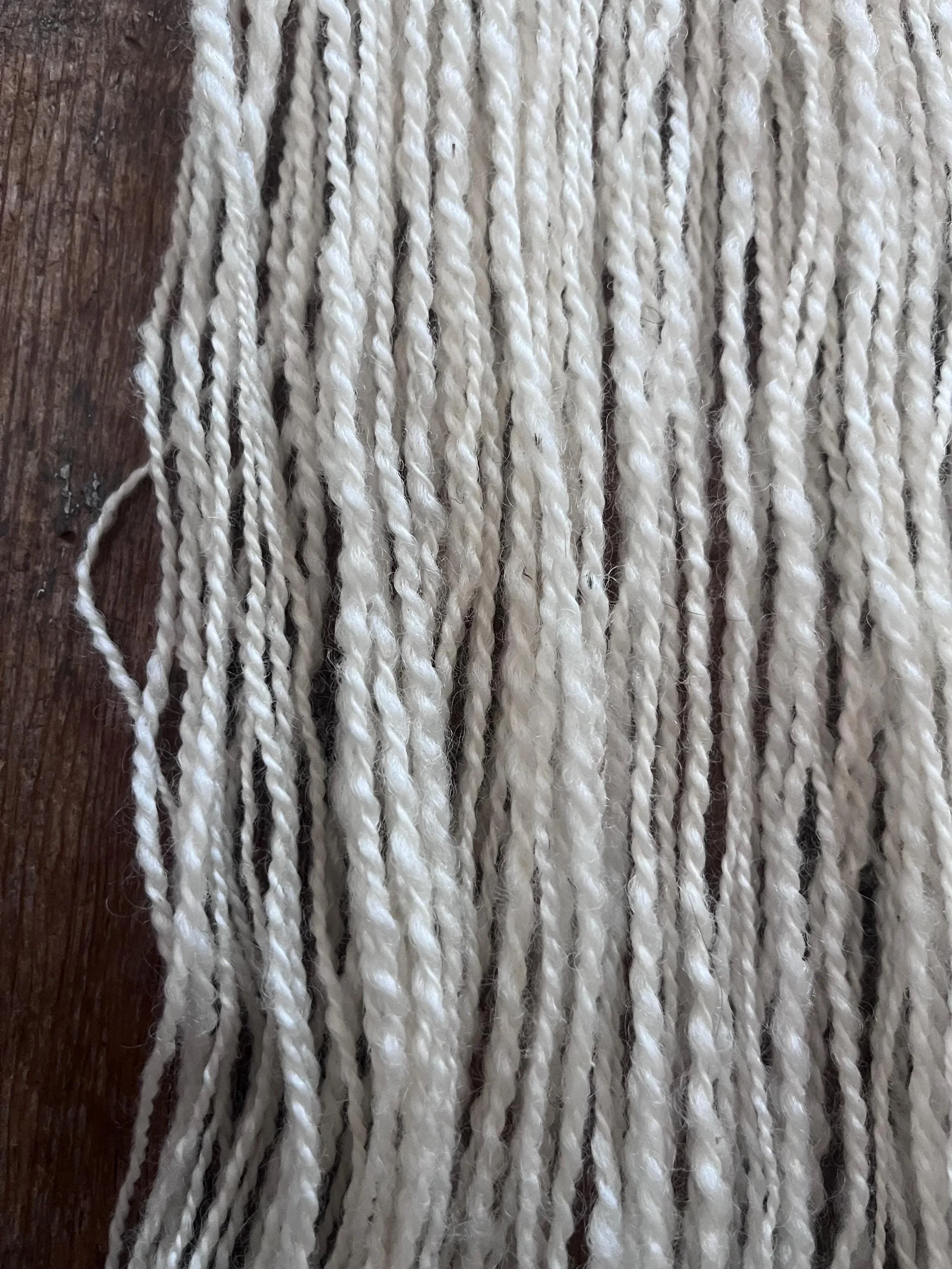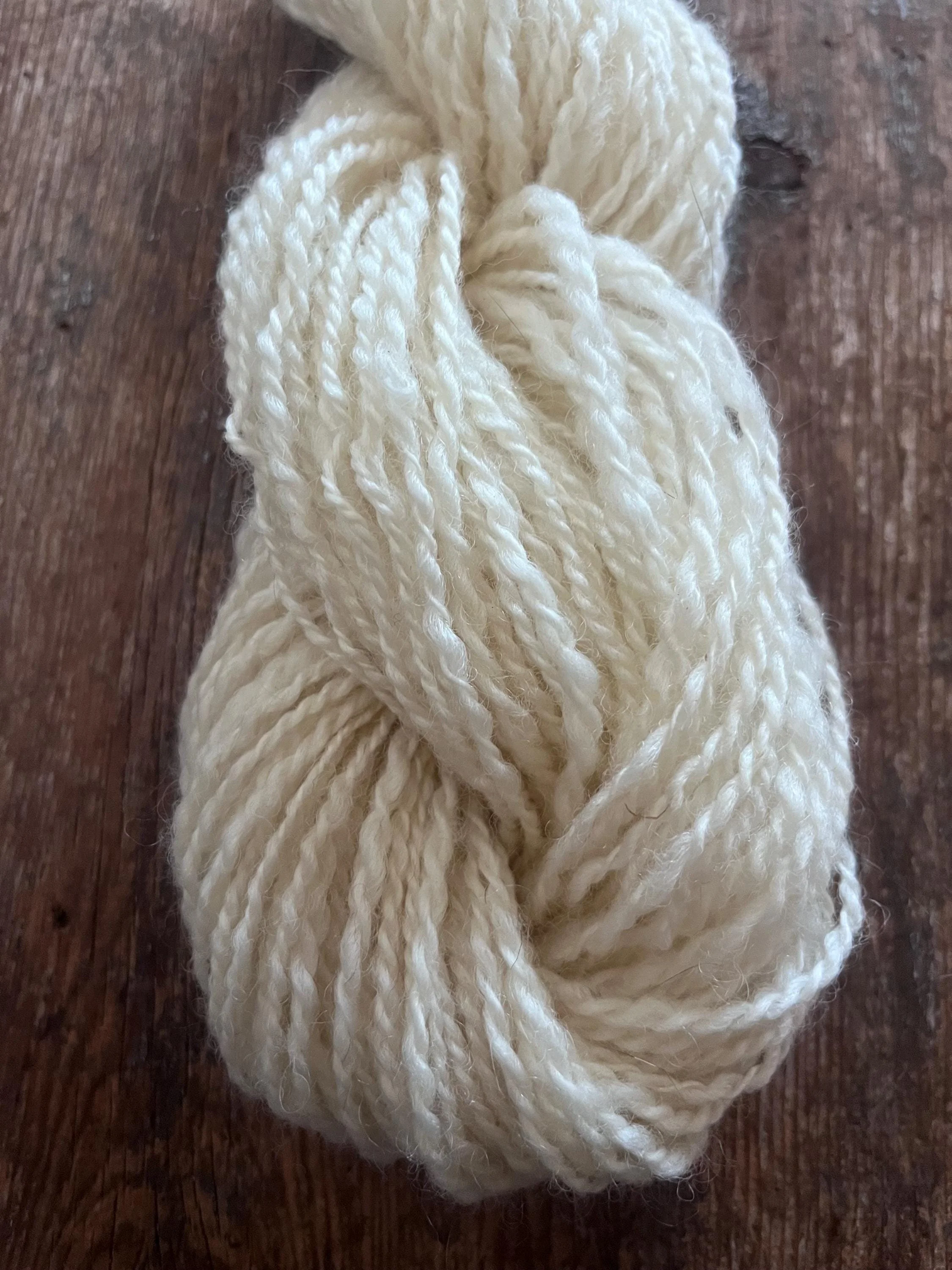 Handspun Jacob Romney Wool Yarn, Soft White Sport Weight, 100 Yards
