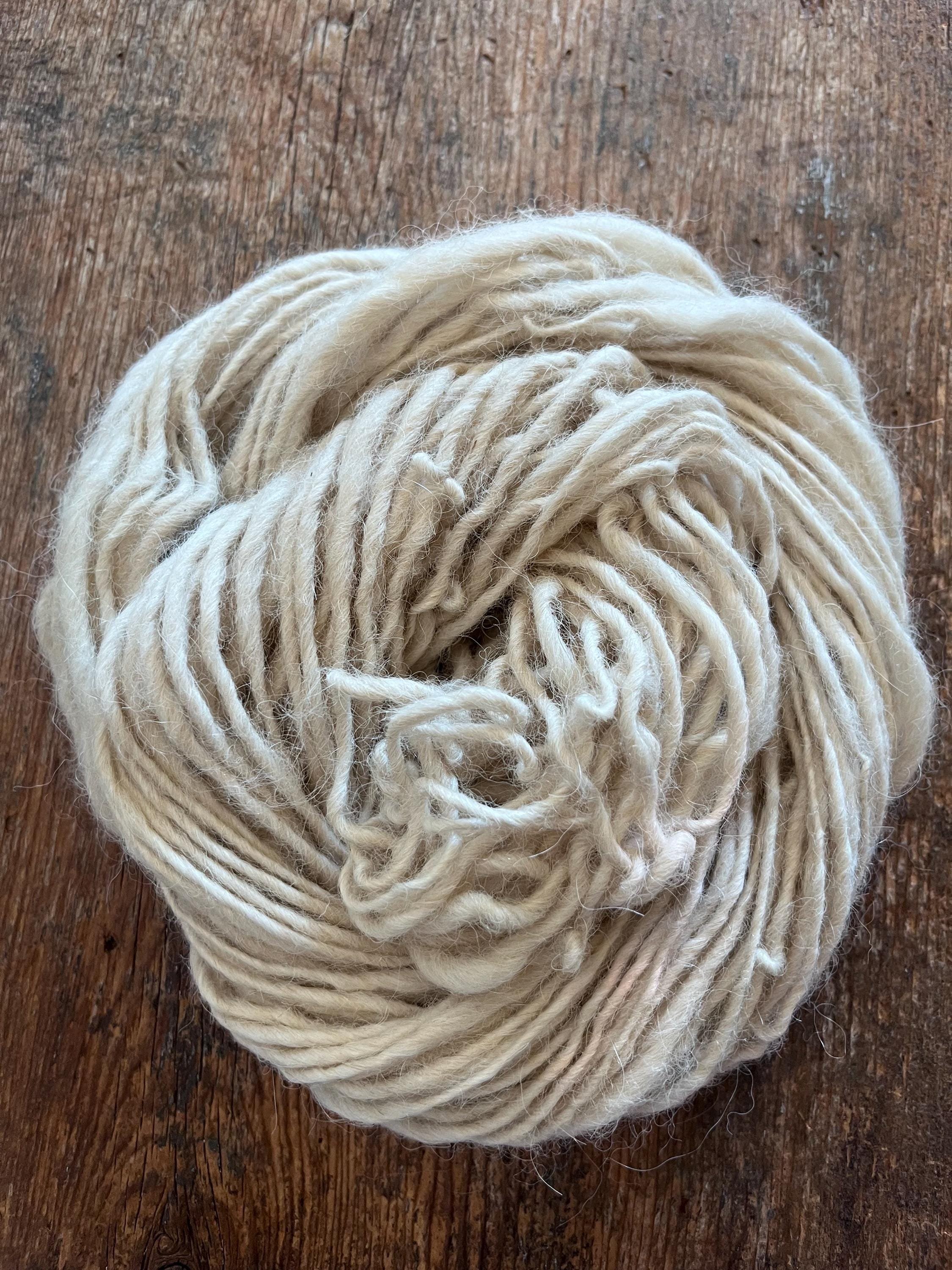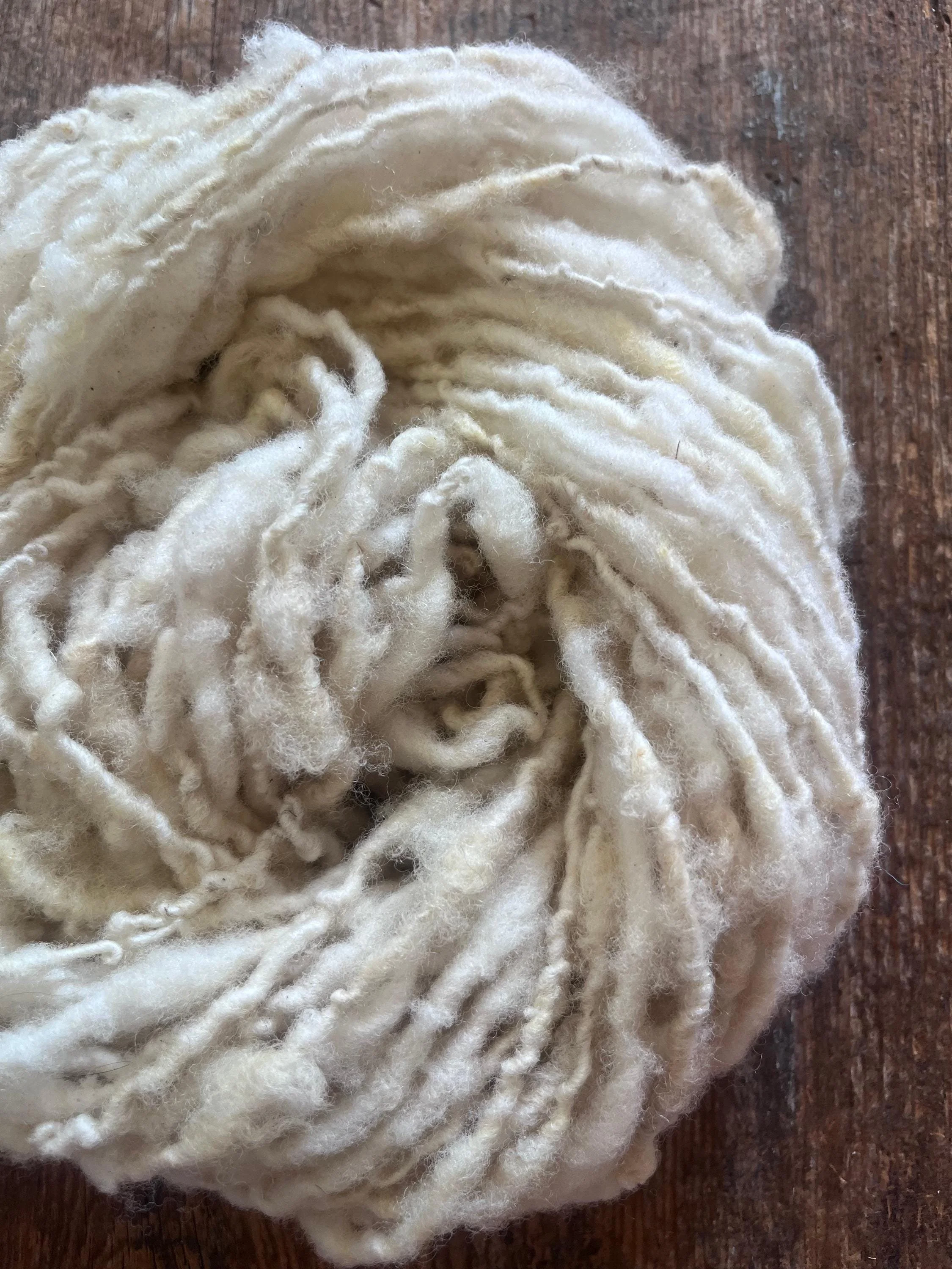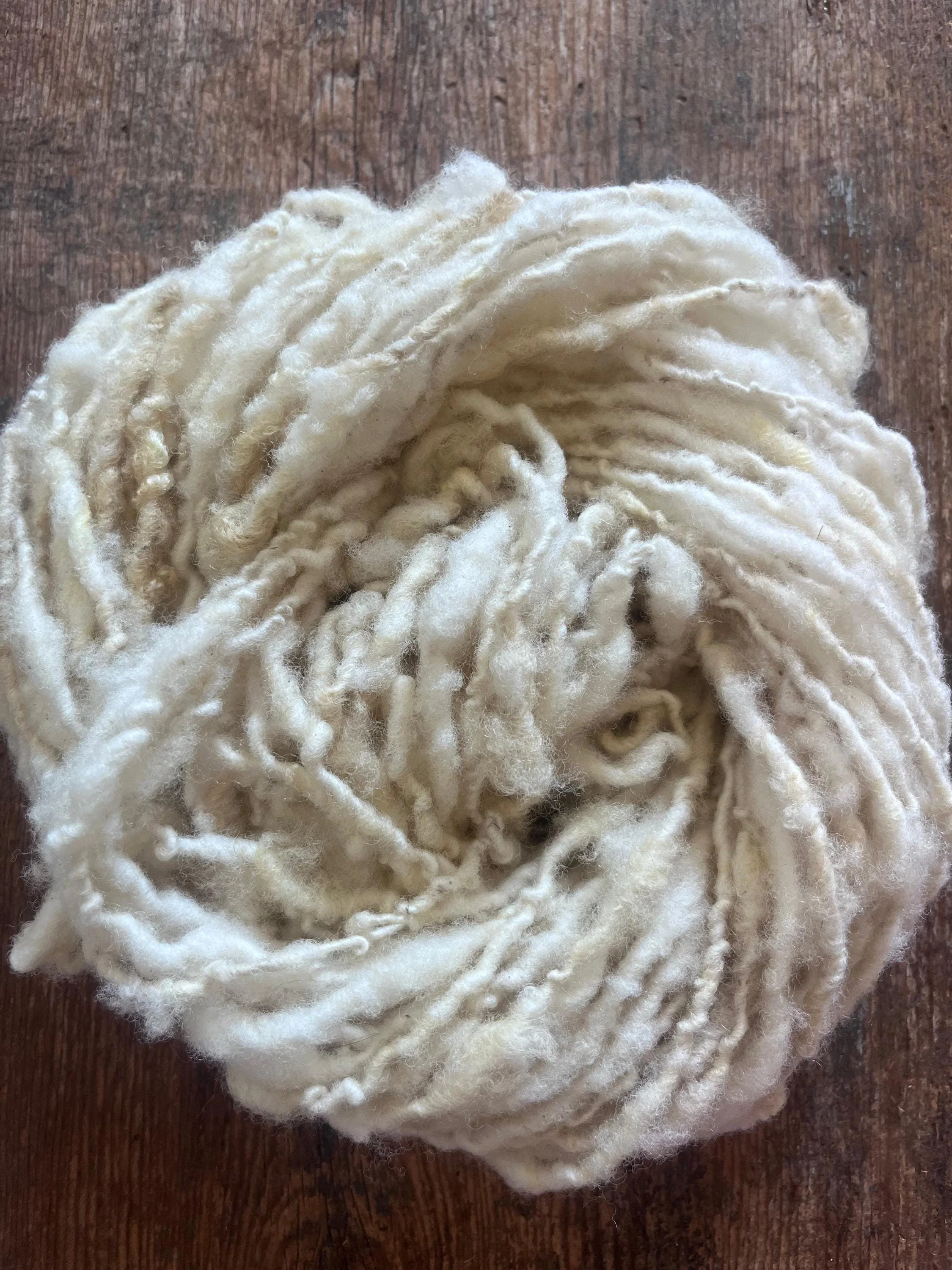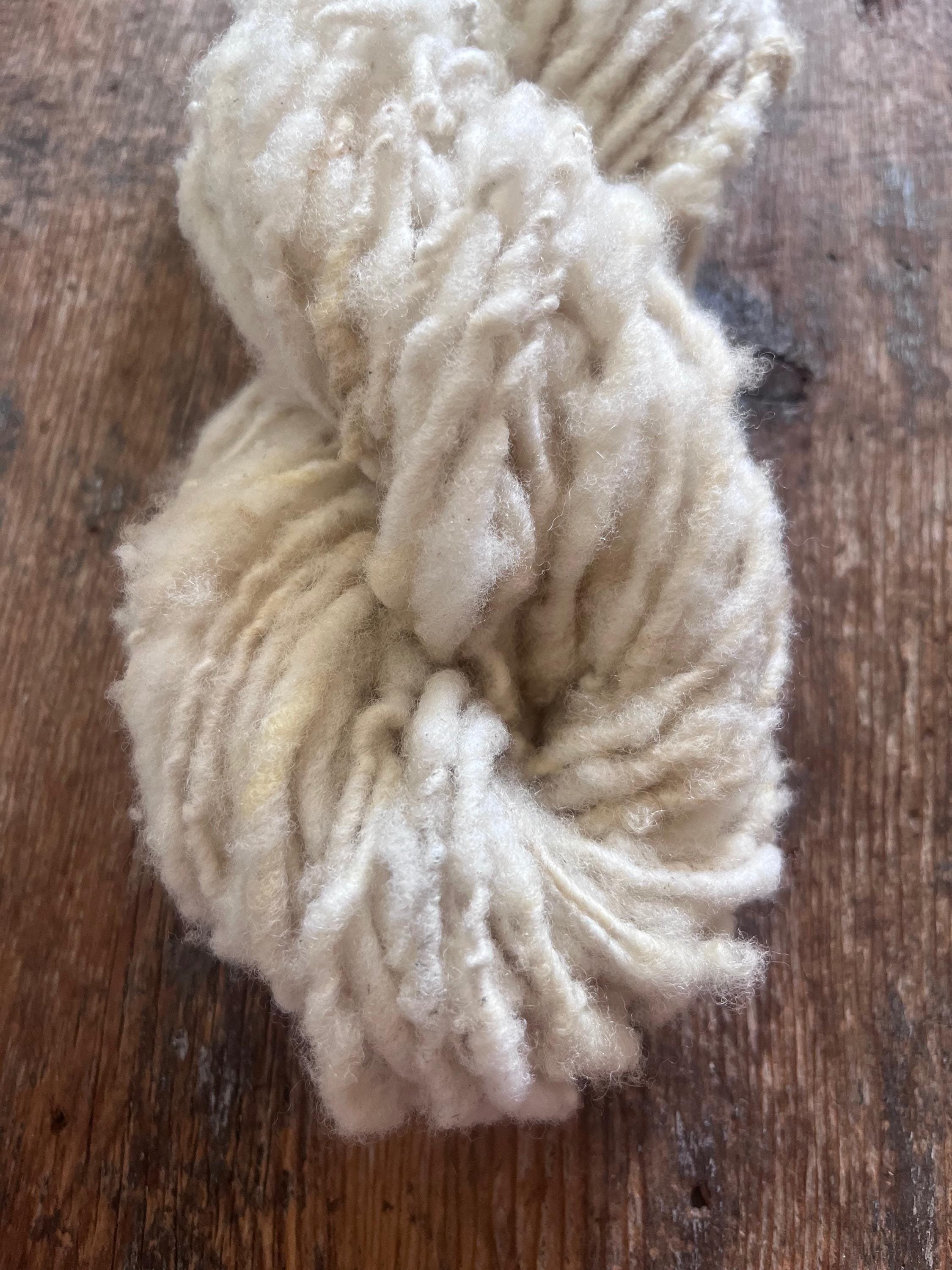 Handspun Jacob Romney Wool Yarn, Soft White Sport Weight, 100 Yards