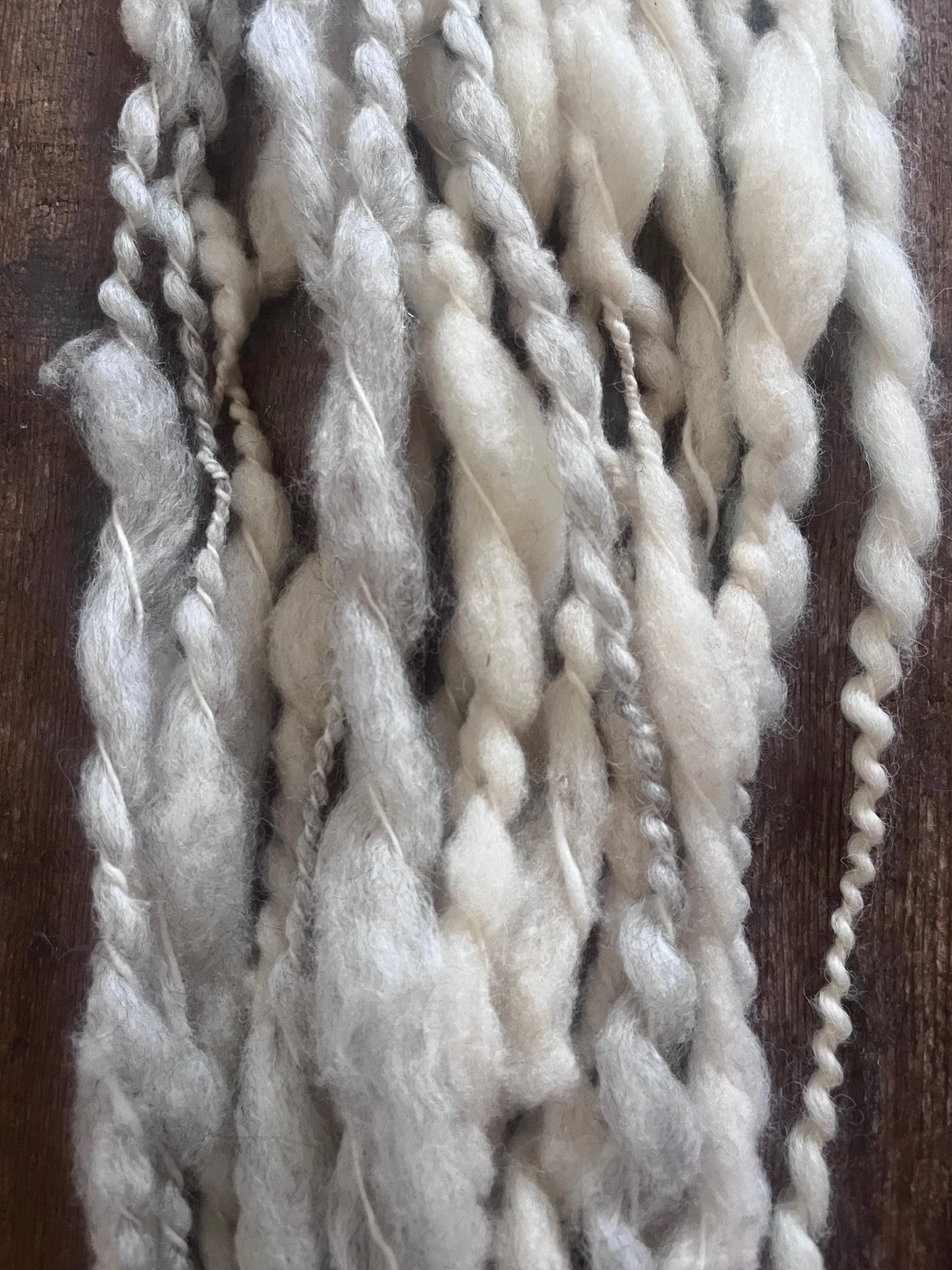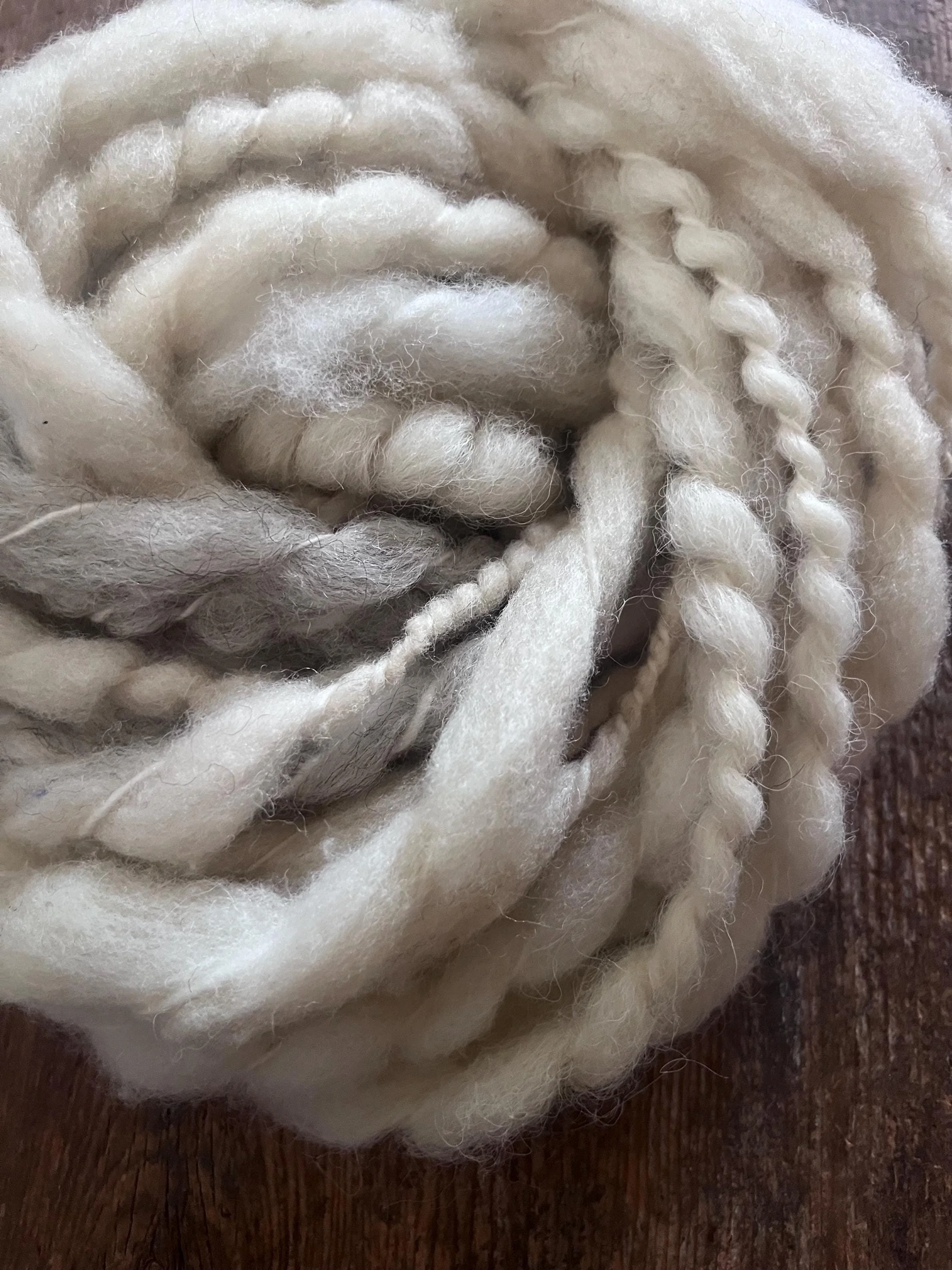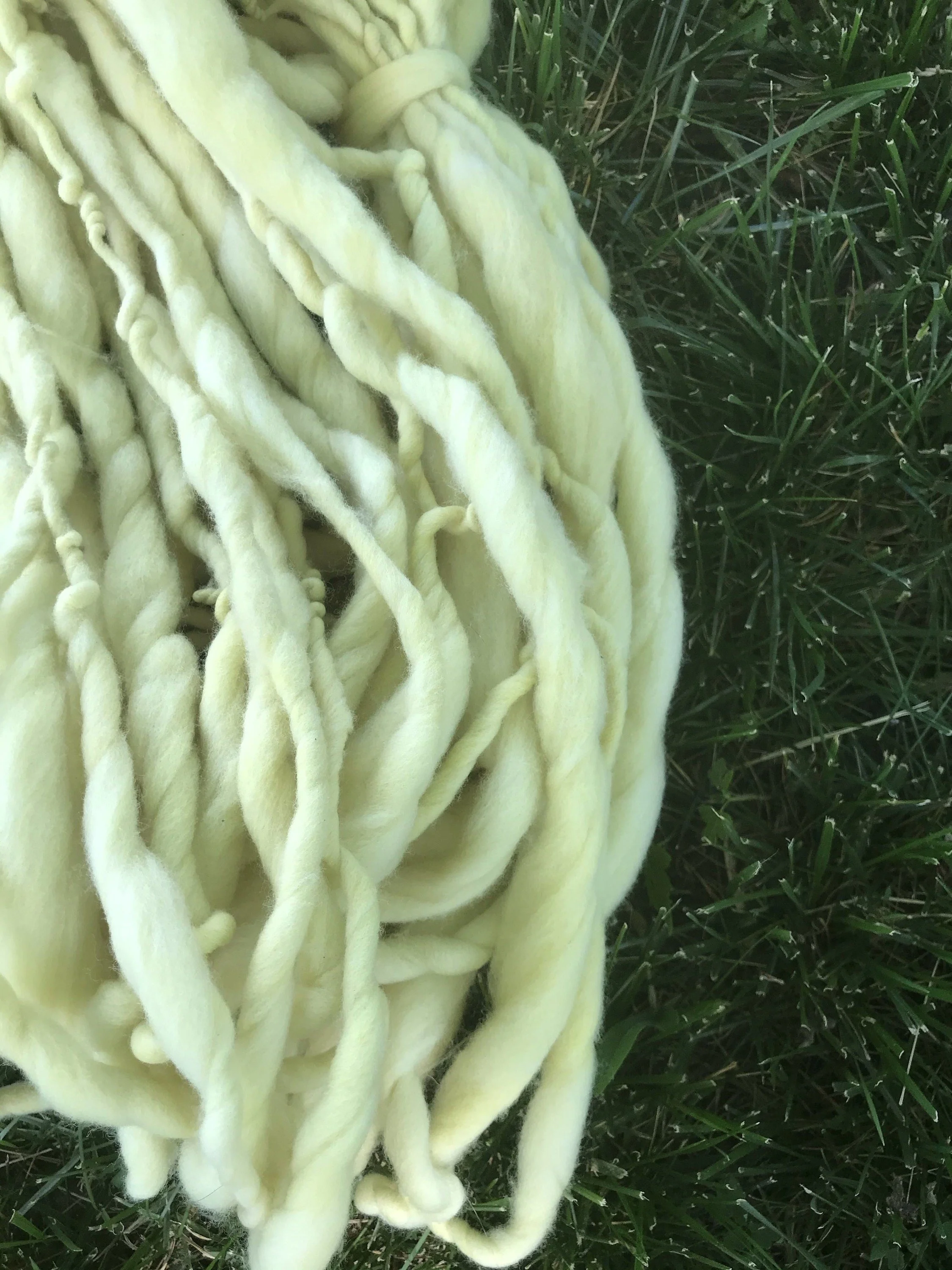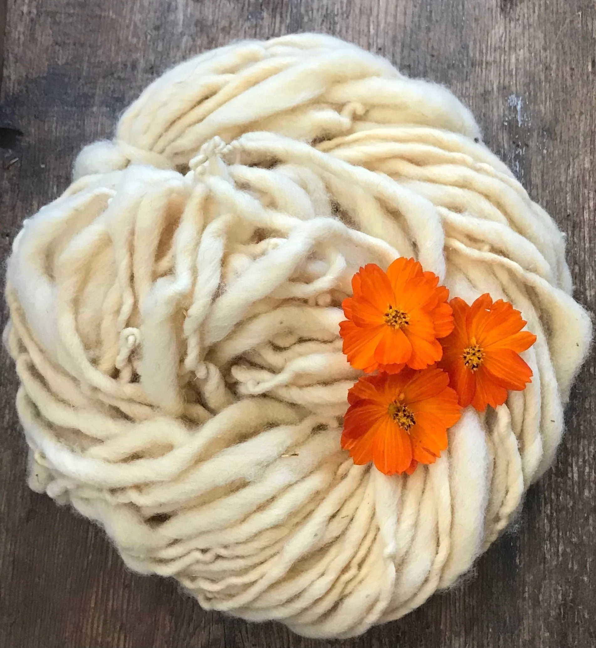 Handspun Jacob Romney Wool Yarn, Soft White Sport Weight, 100 Yards