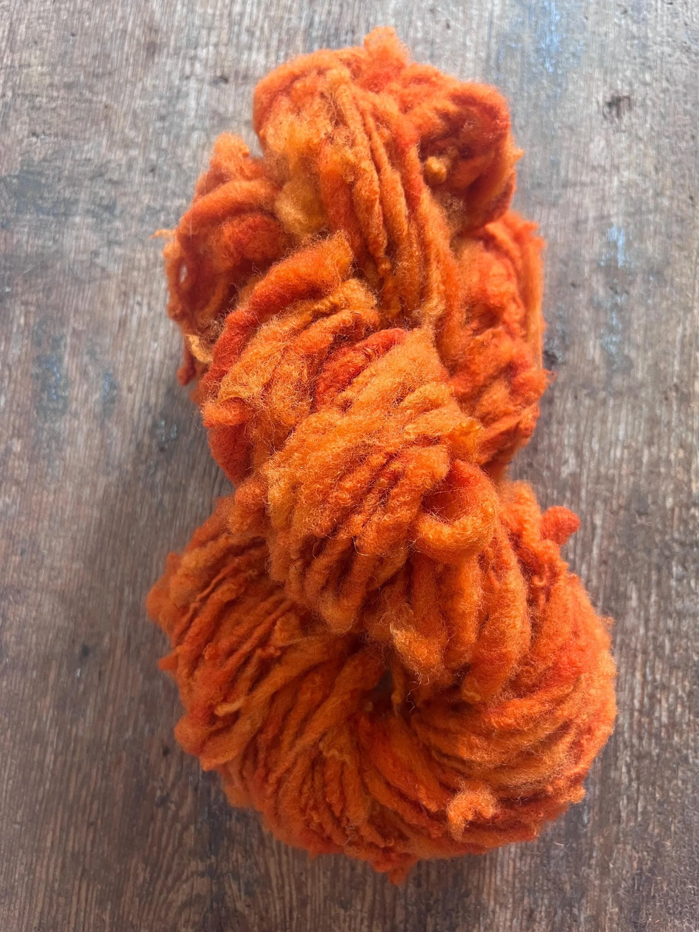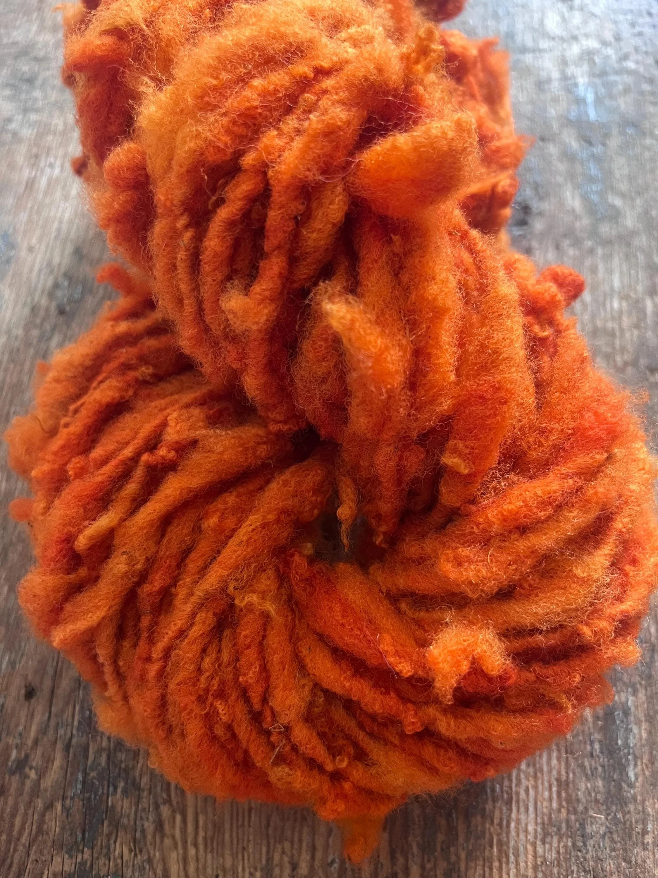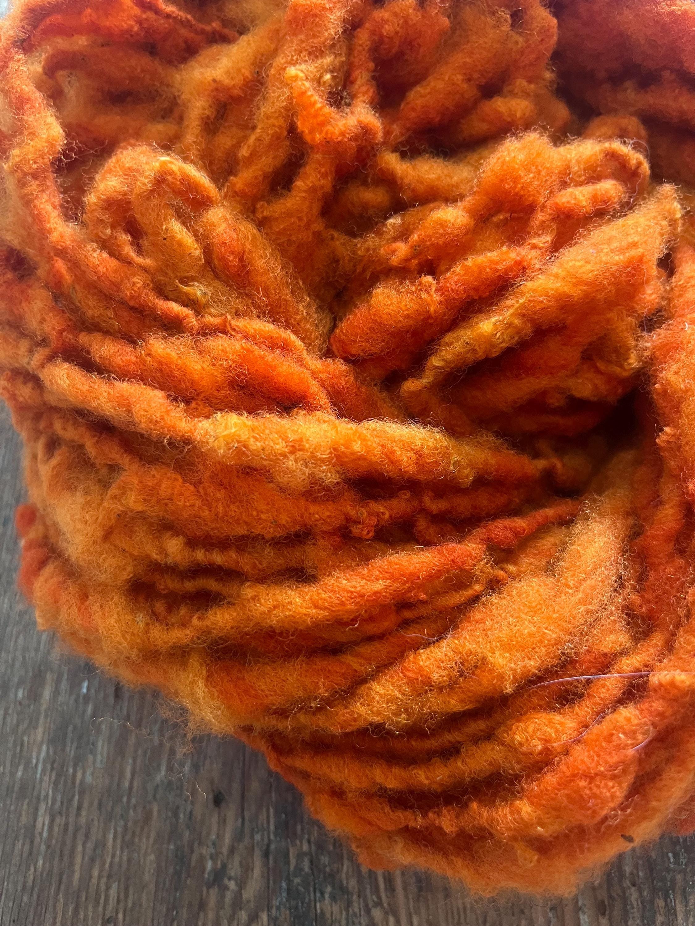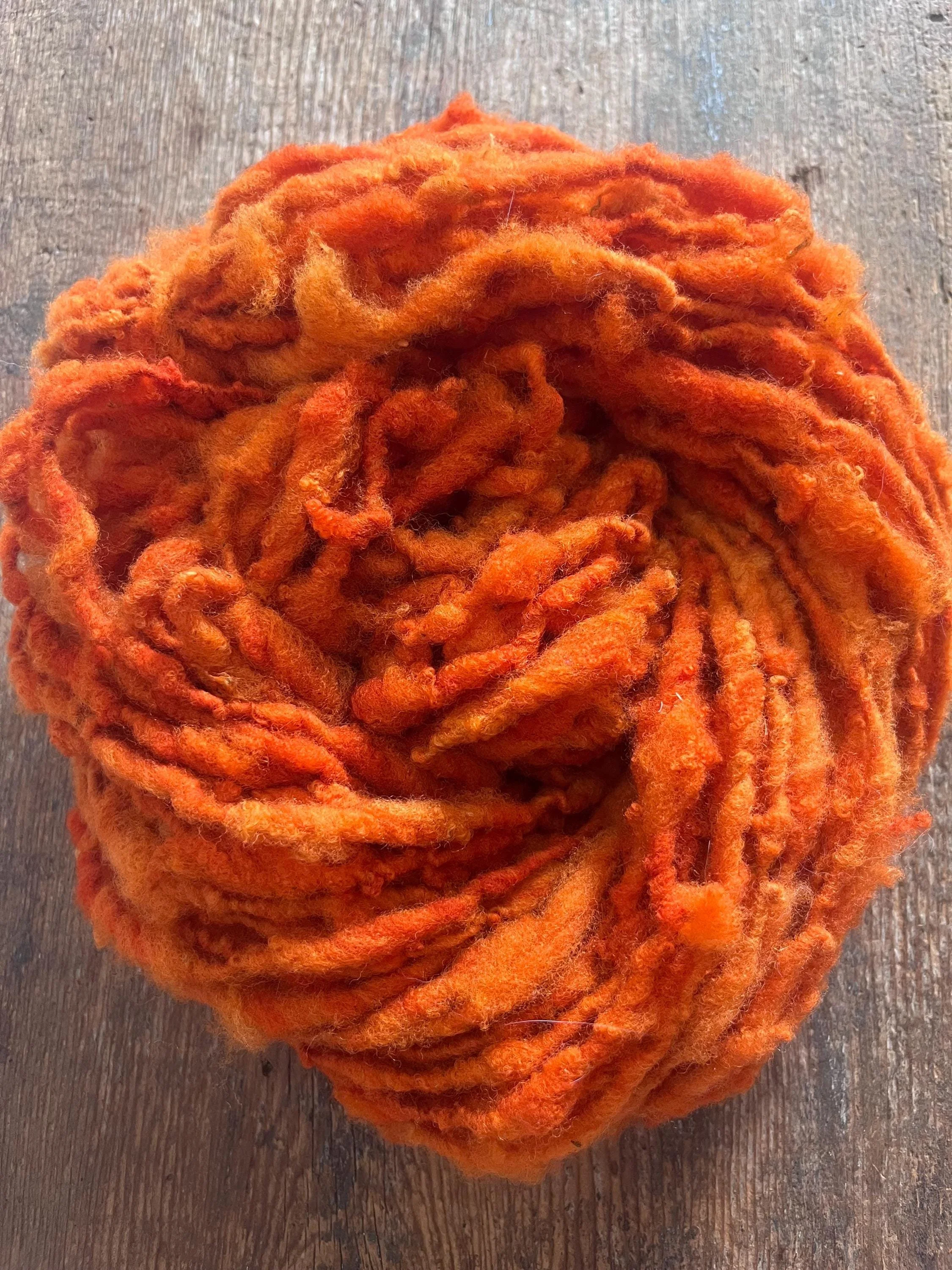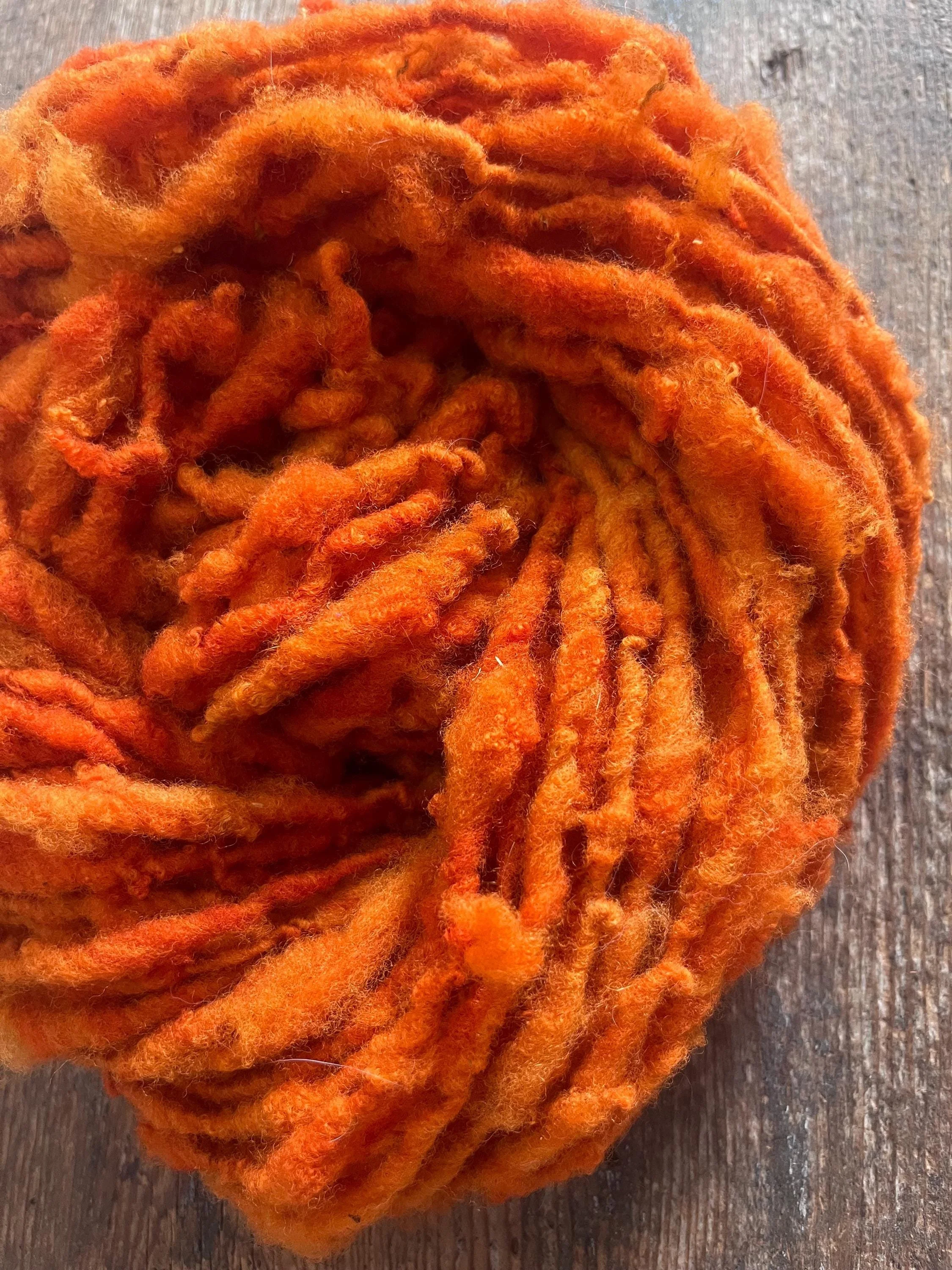 Pumpkin Orange, handspun nubbly squishy chunky handspun Southdown wool art yarn