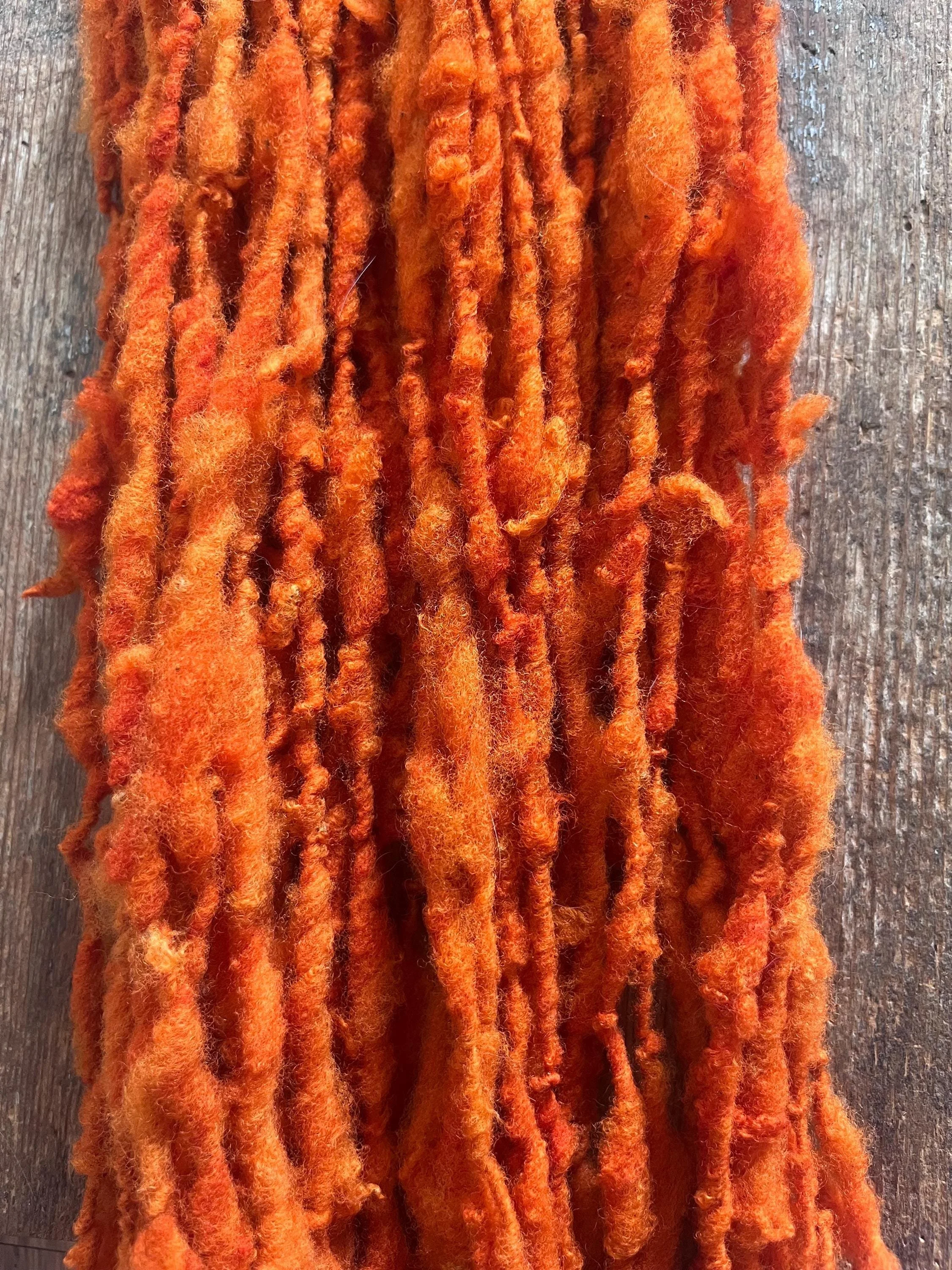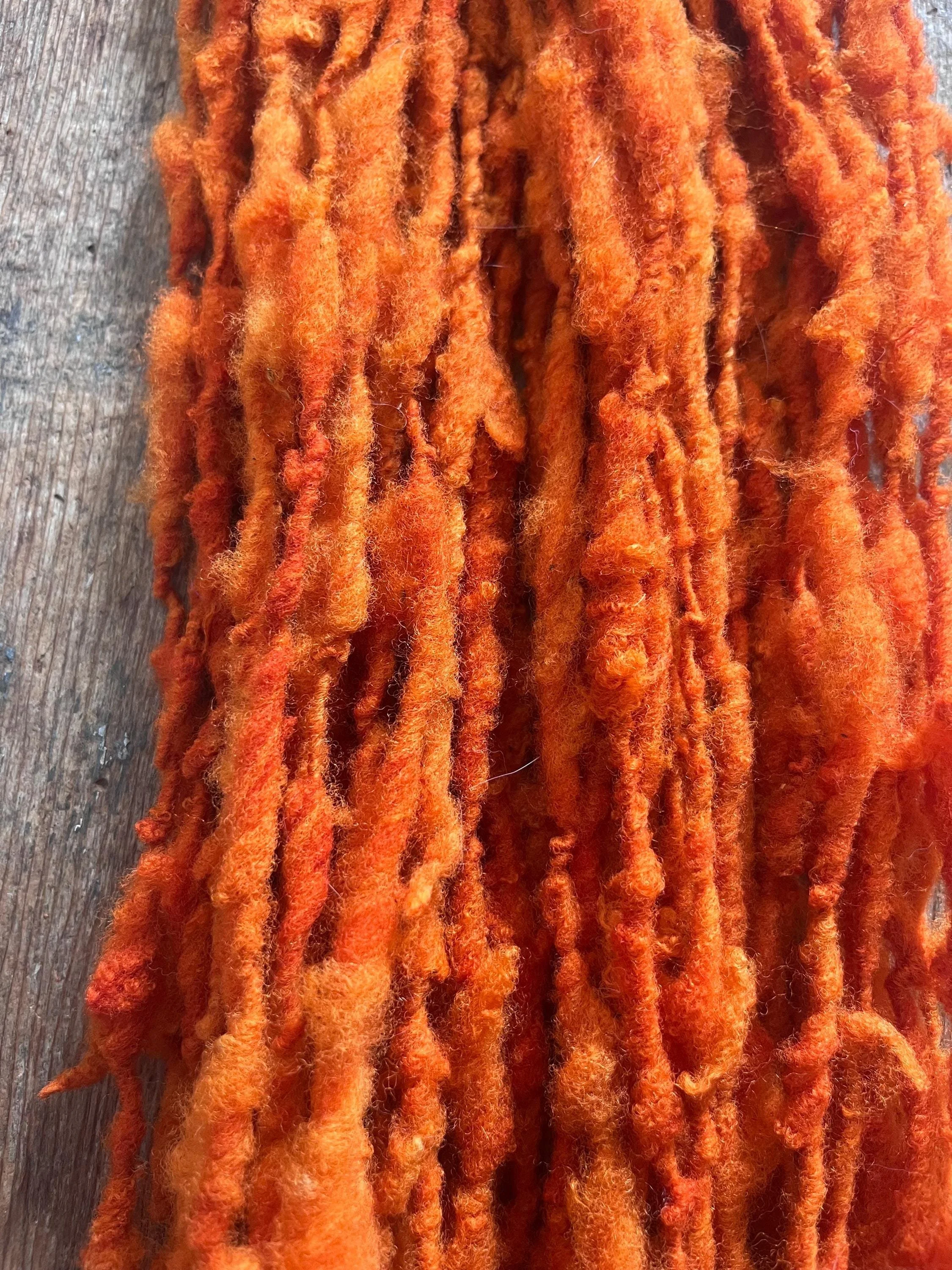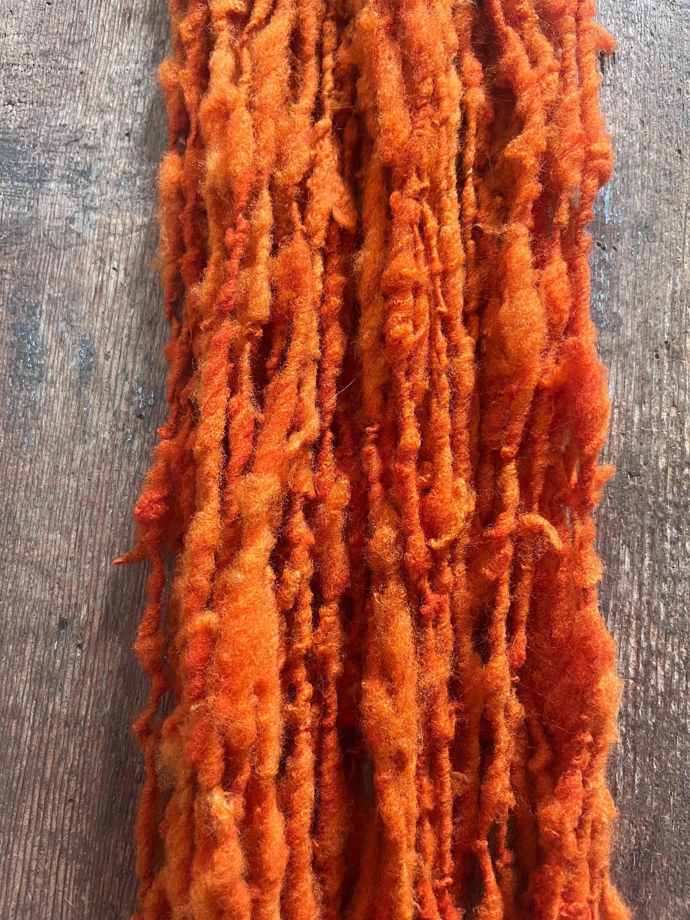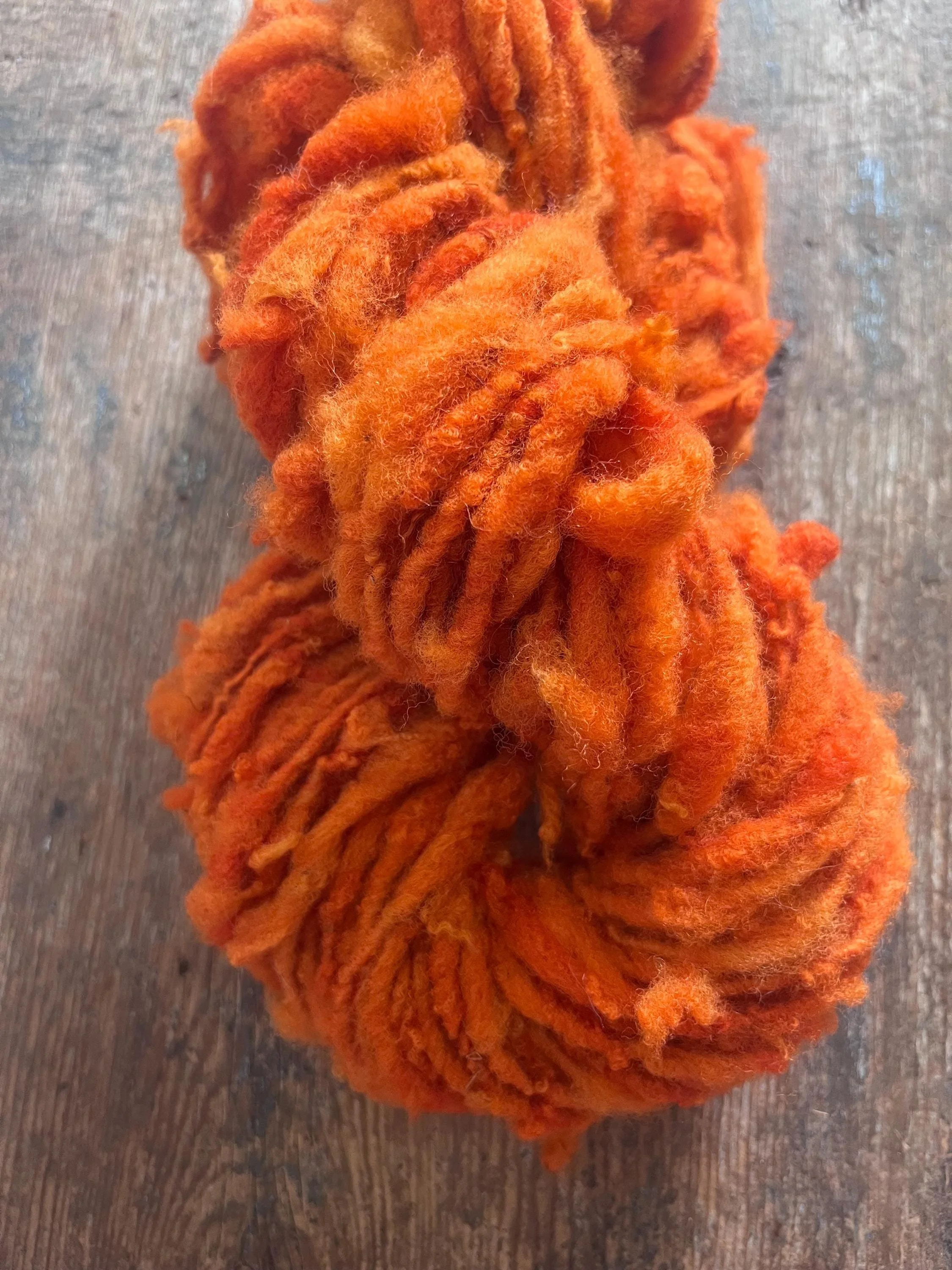 Pumpkin Orange, handspun nubbly squishy chunky handspun Southdown wool art yarn