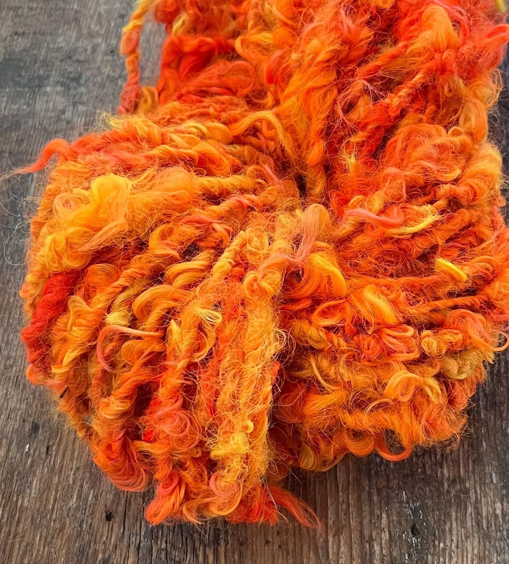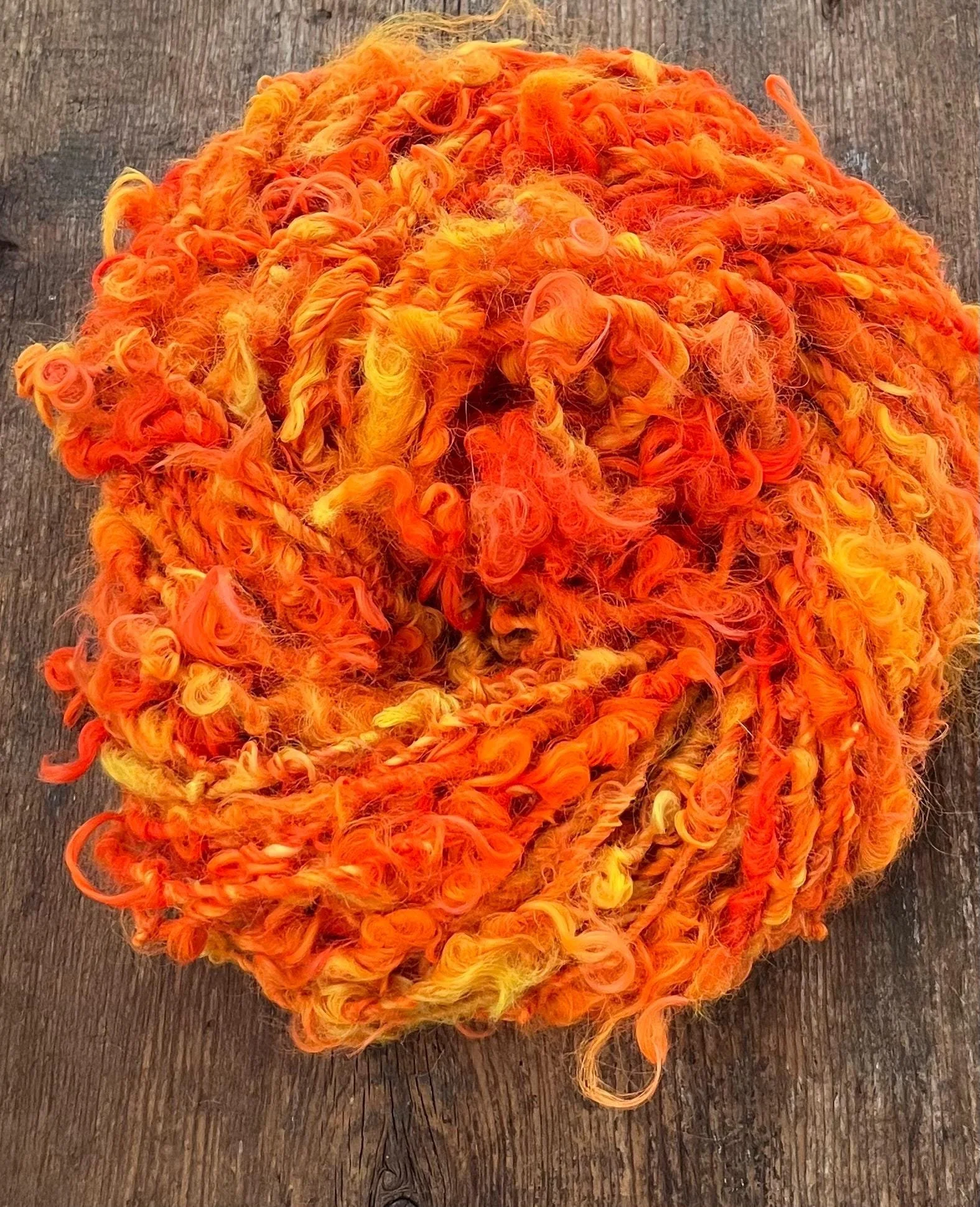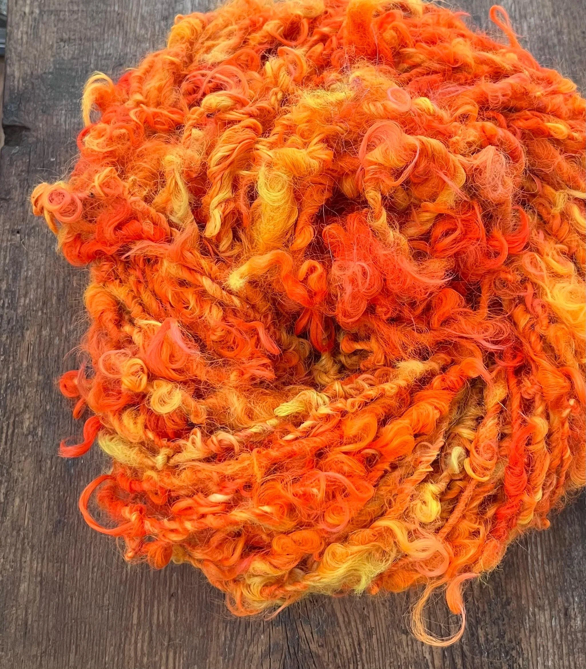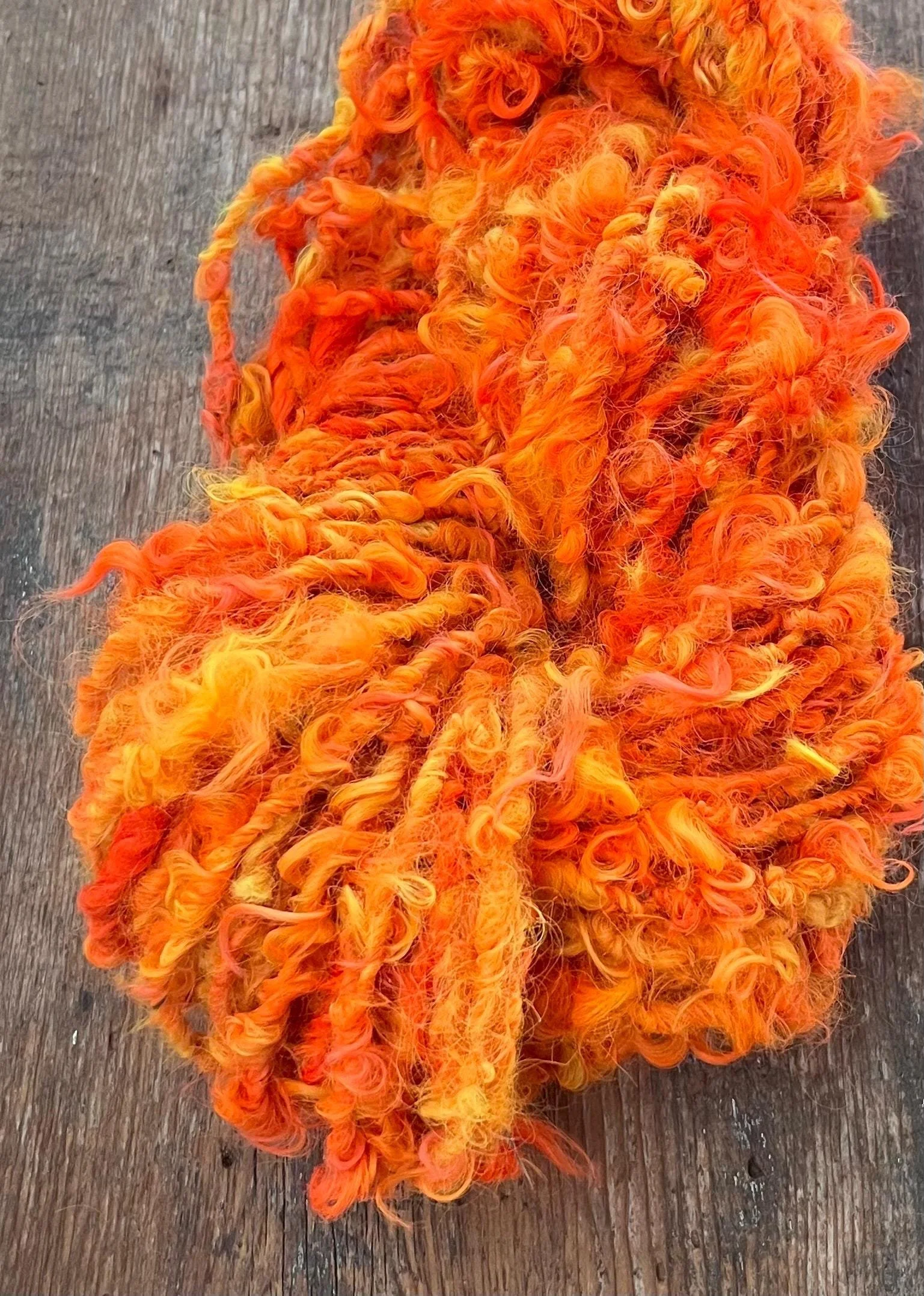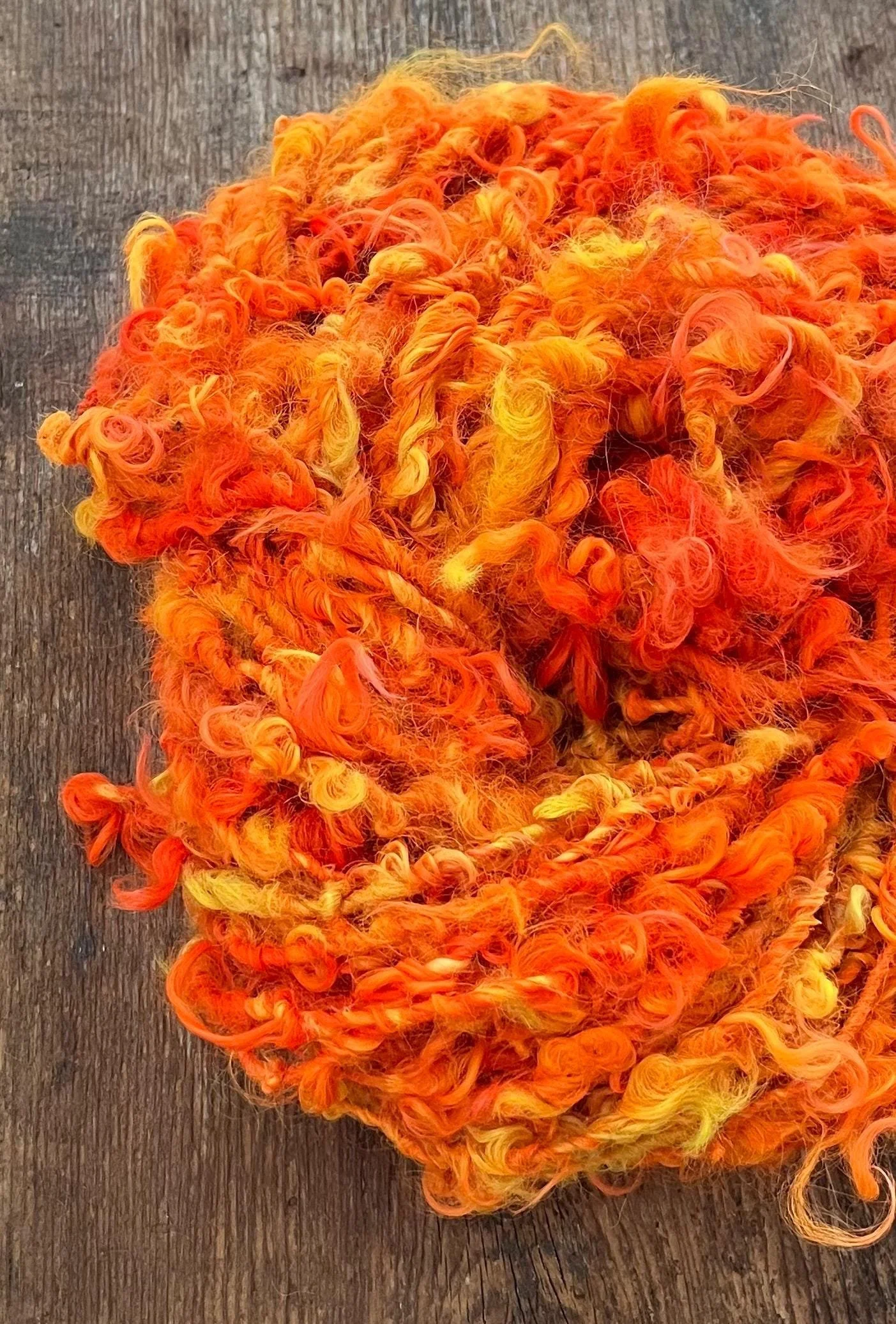 Pumpkin Orange, handspun nubbly squishy chunky handspun Southdown wool art yarn