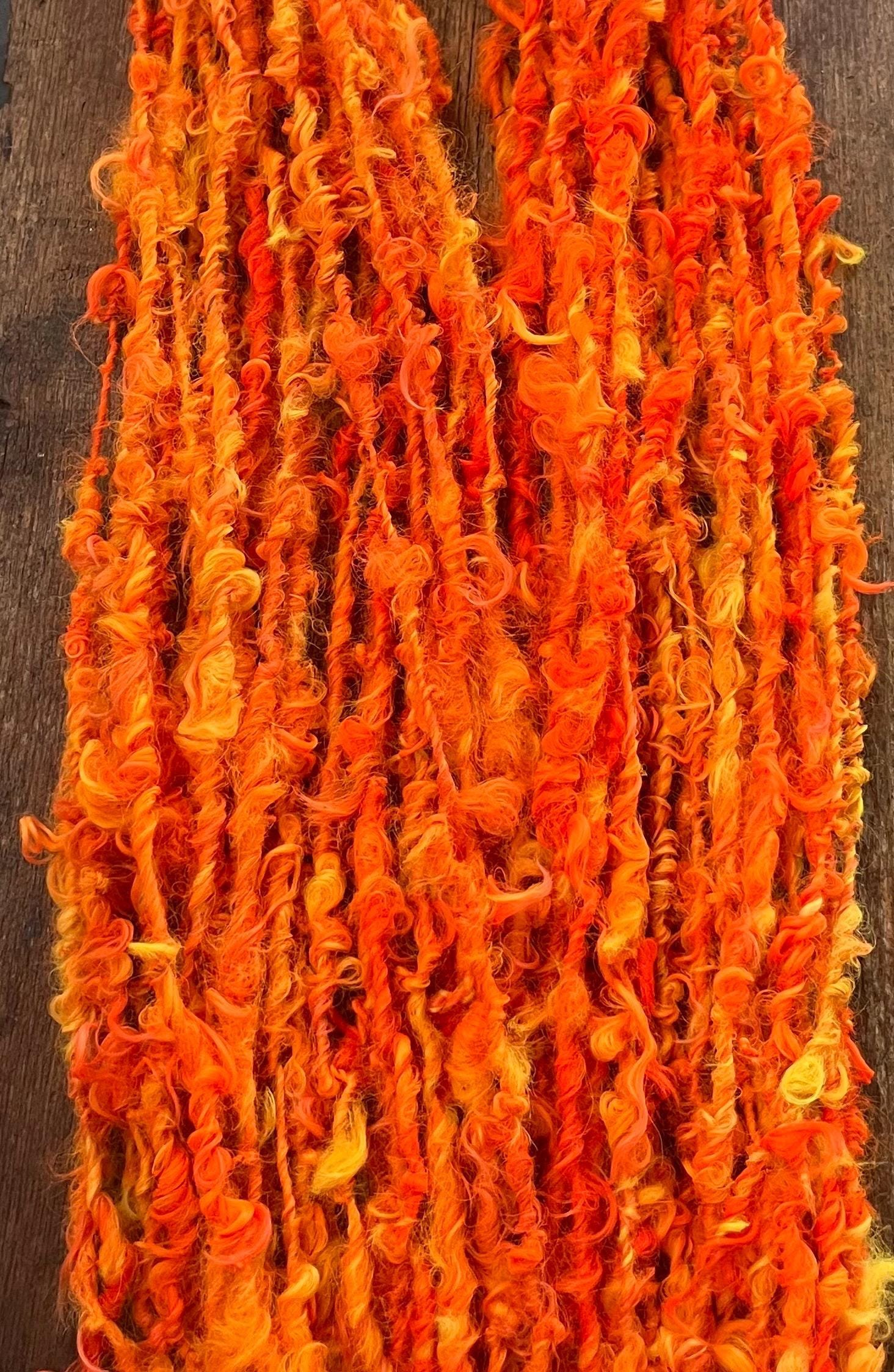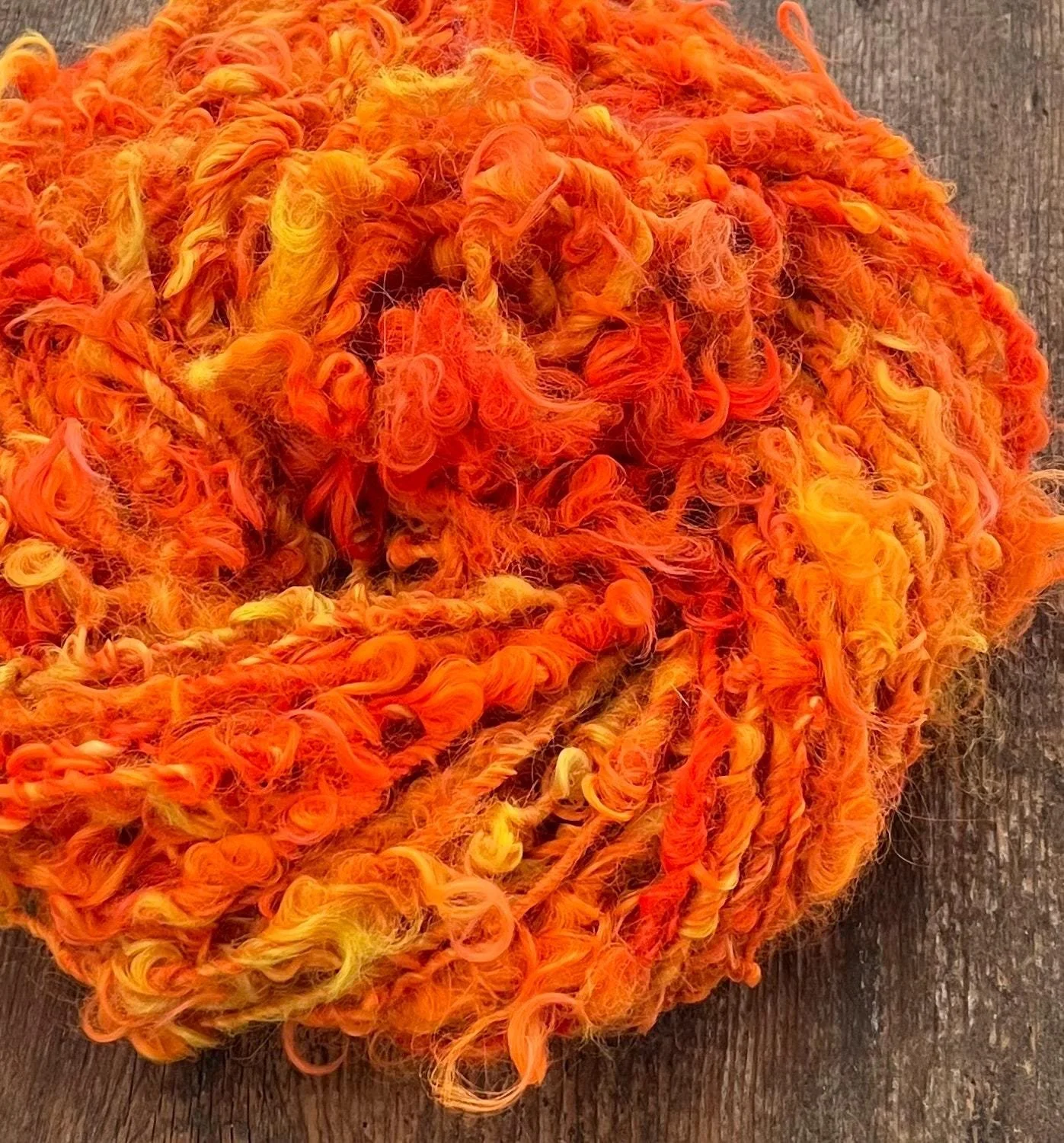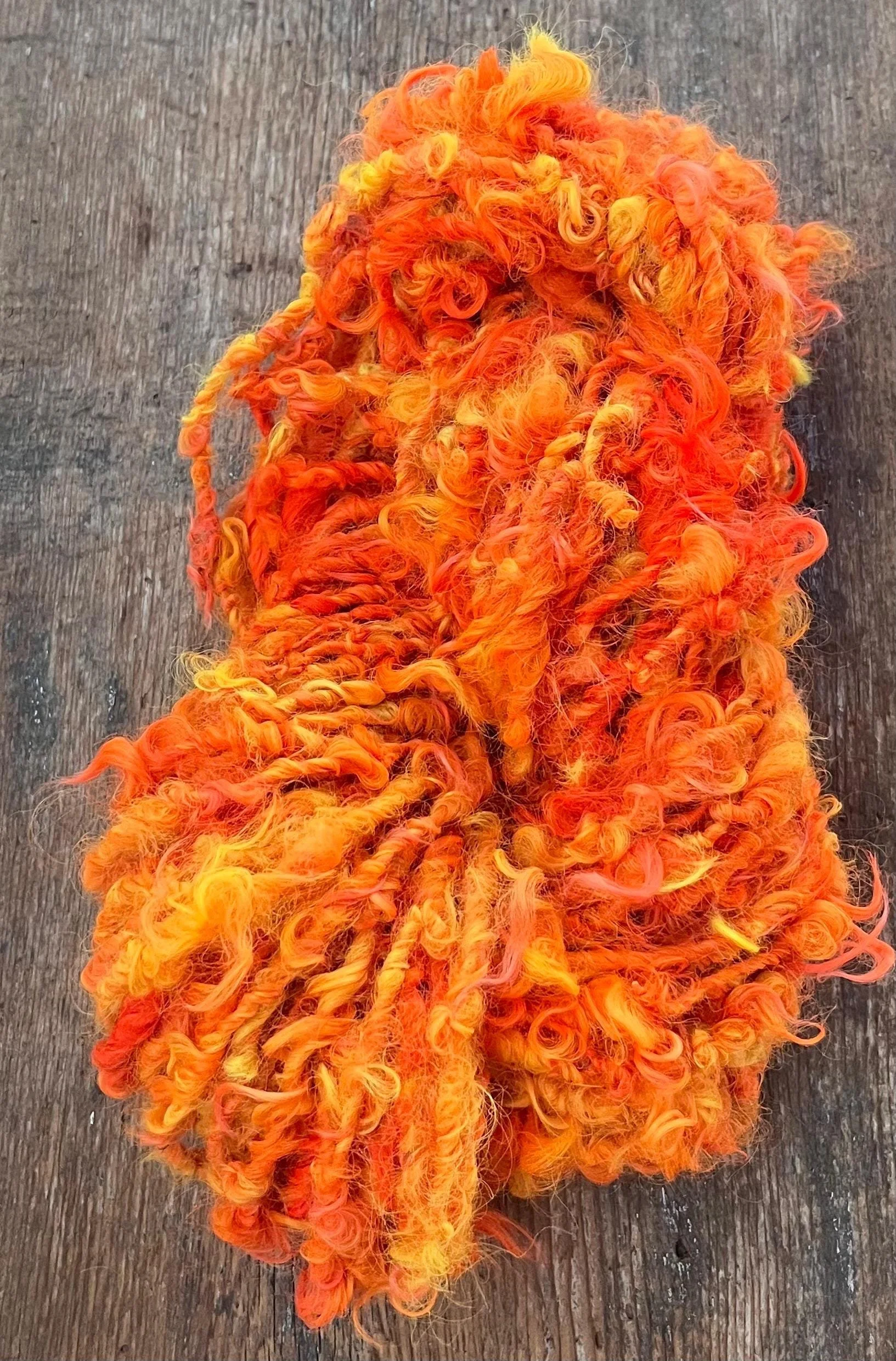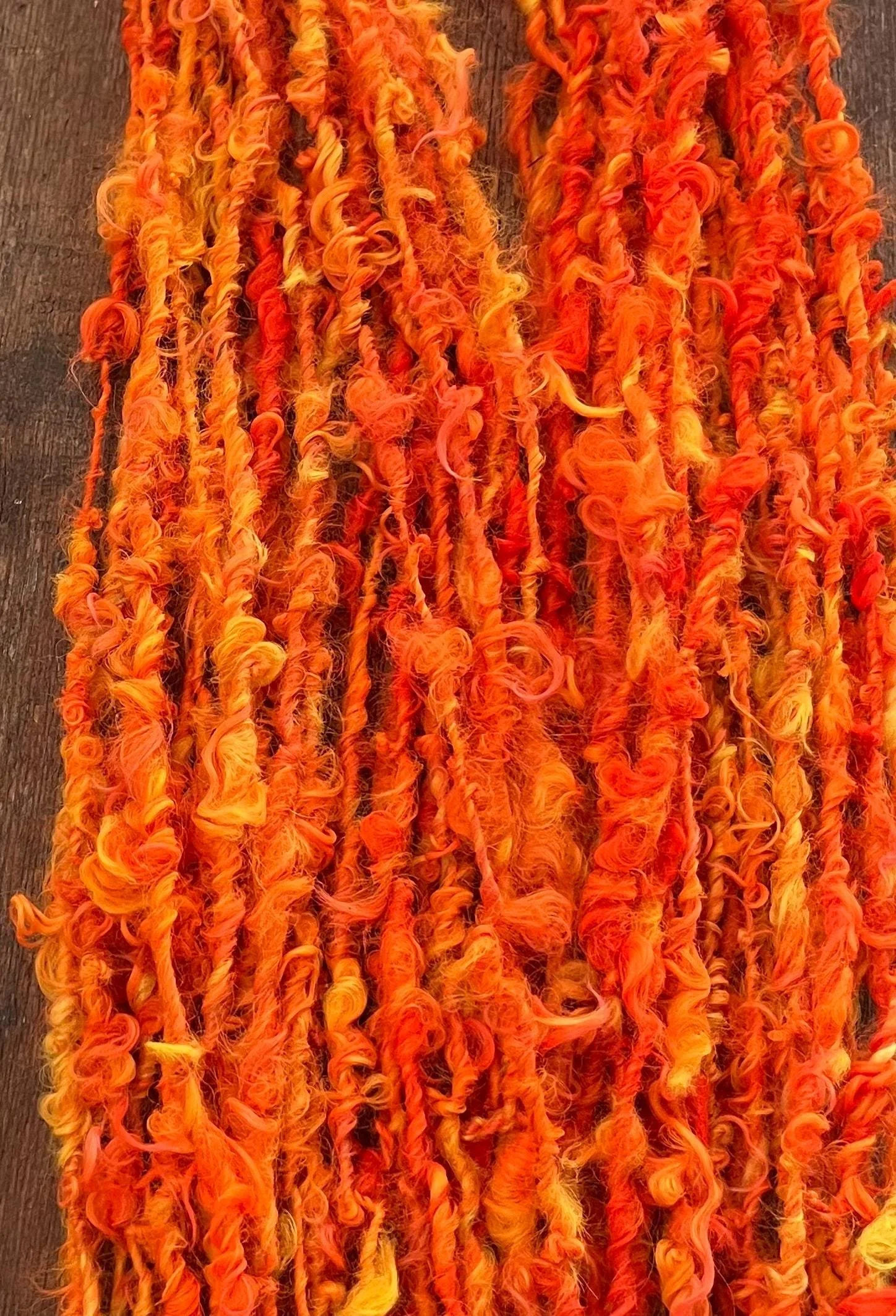 Pumpkin Orange, handspun nubbly squishy chunky handspun Southdown wool art yarn
