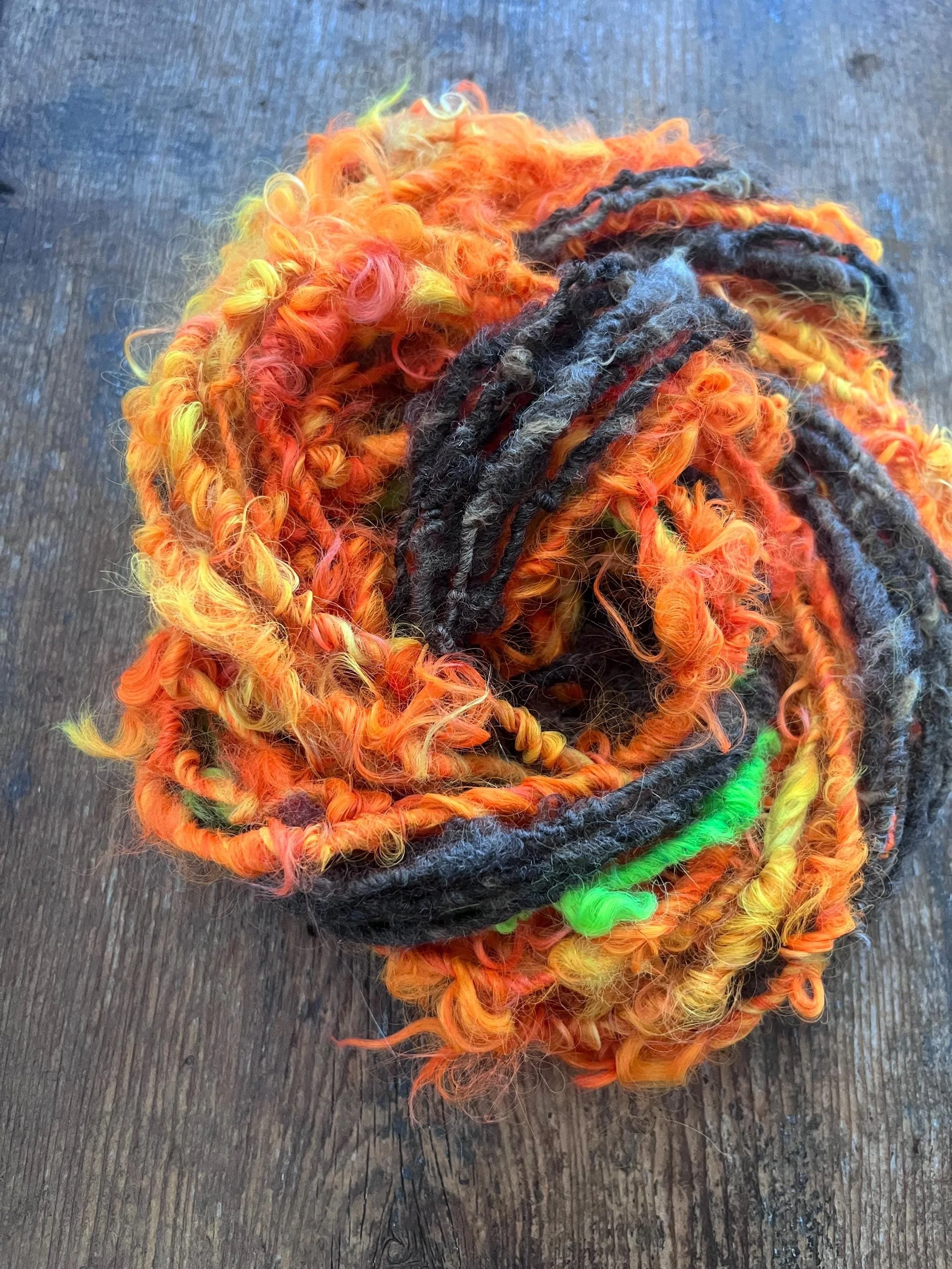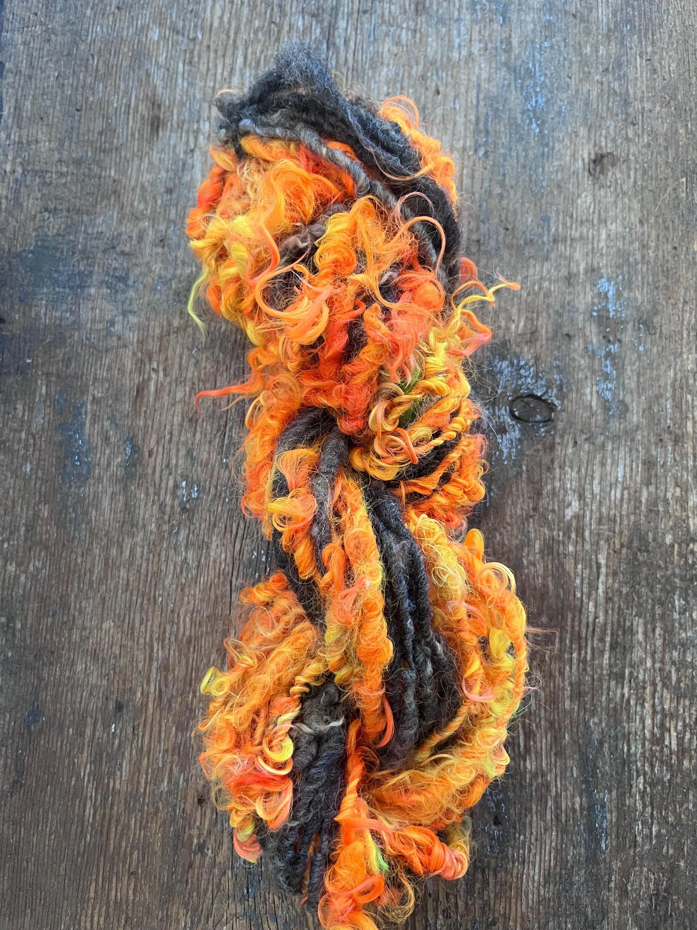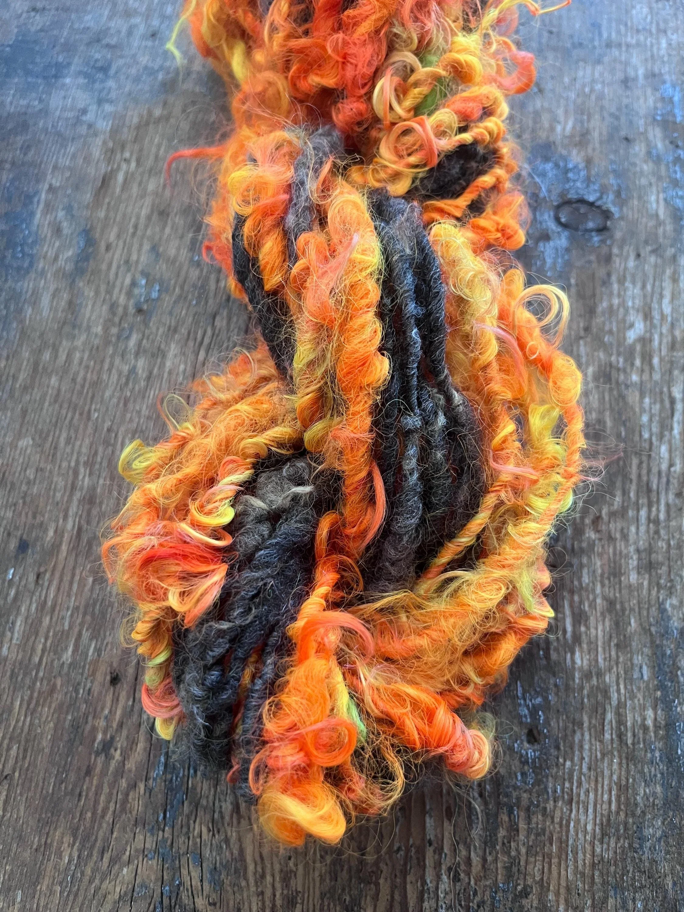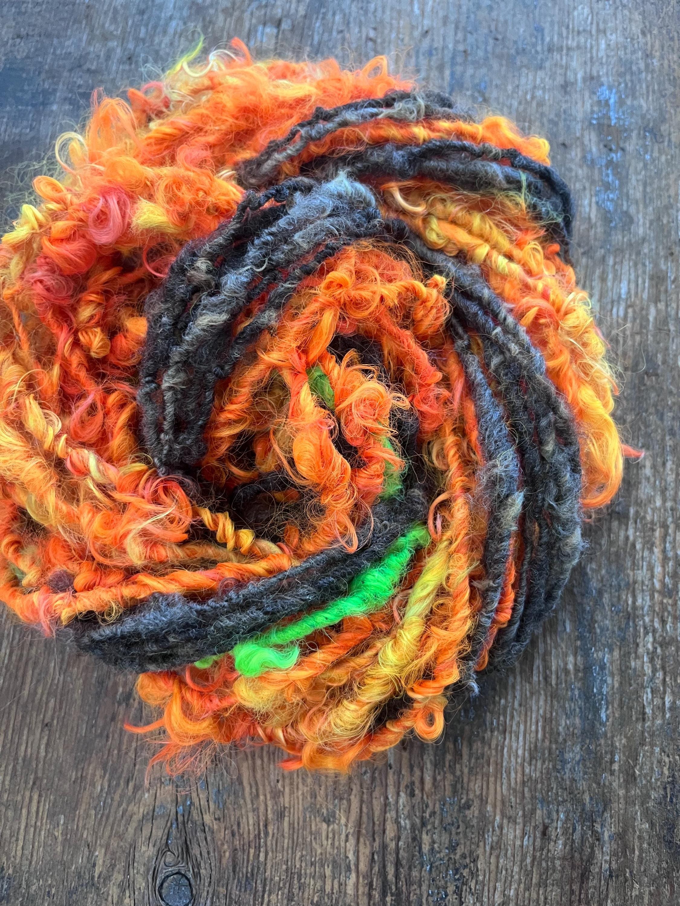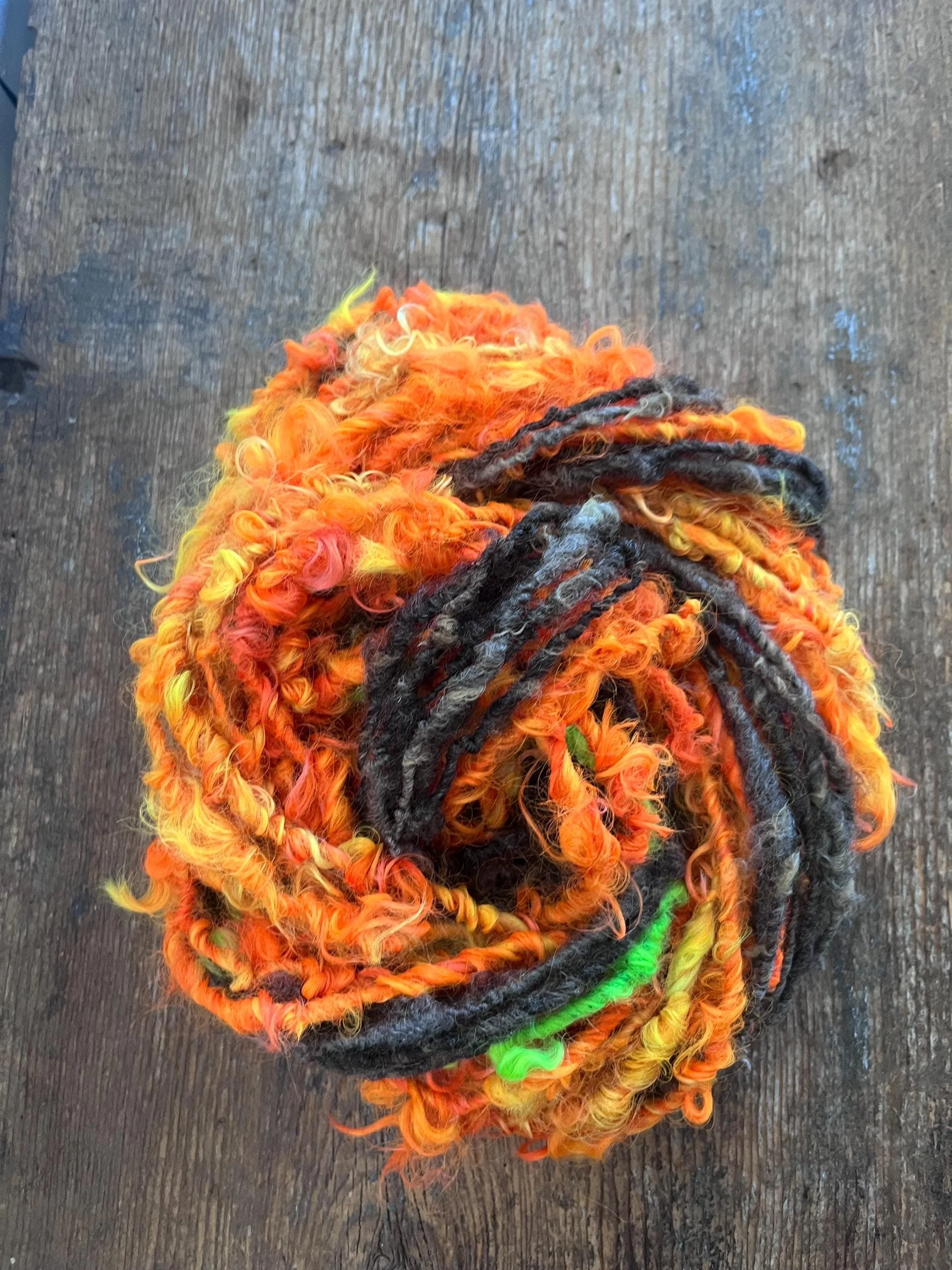 Pumpkin Orange, handspun nubbly squishy chunky handspun Southdown wool art yarn
