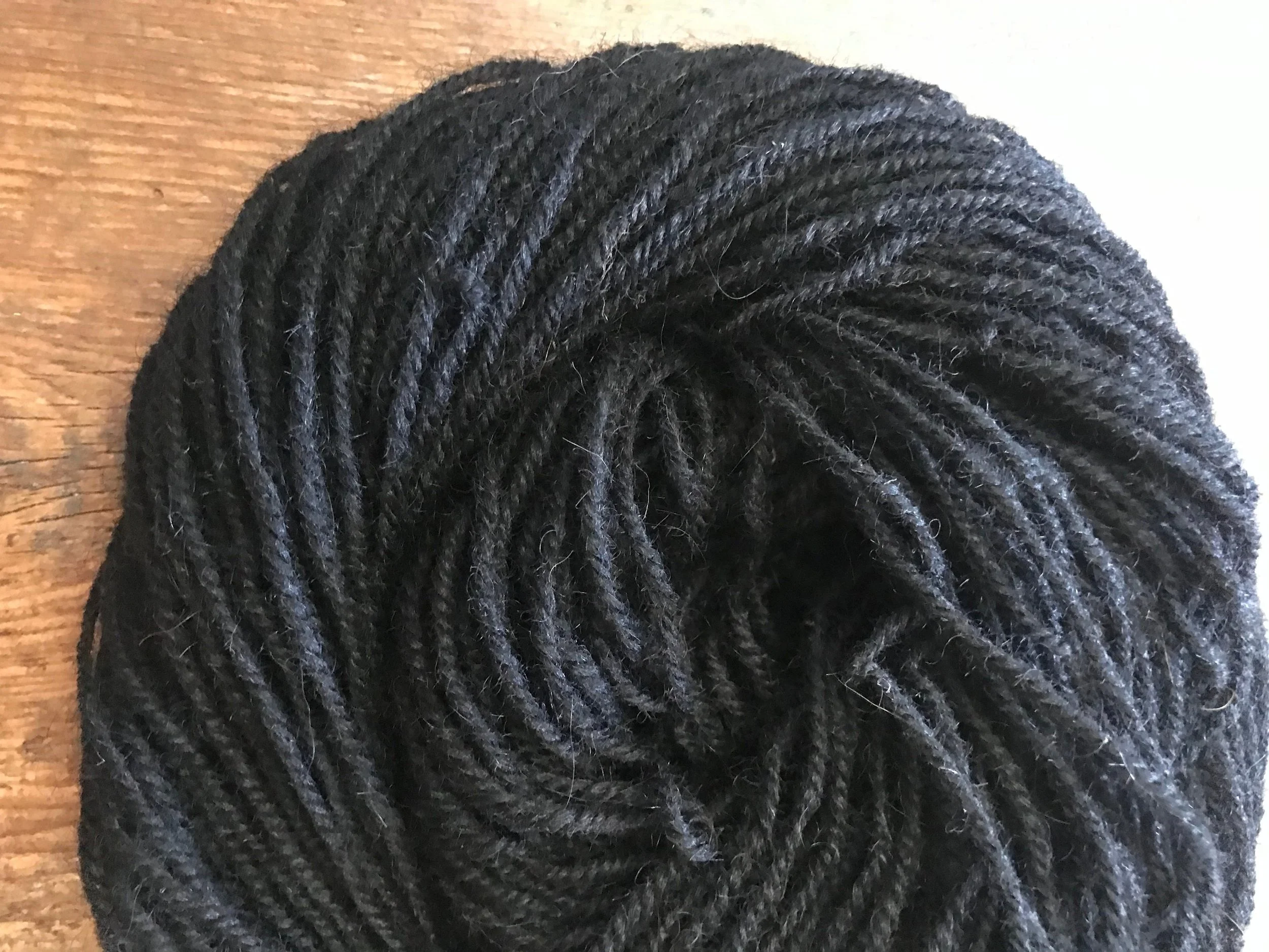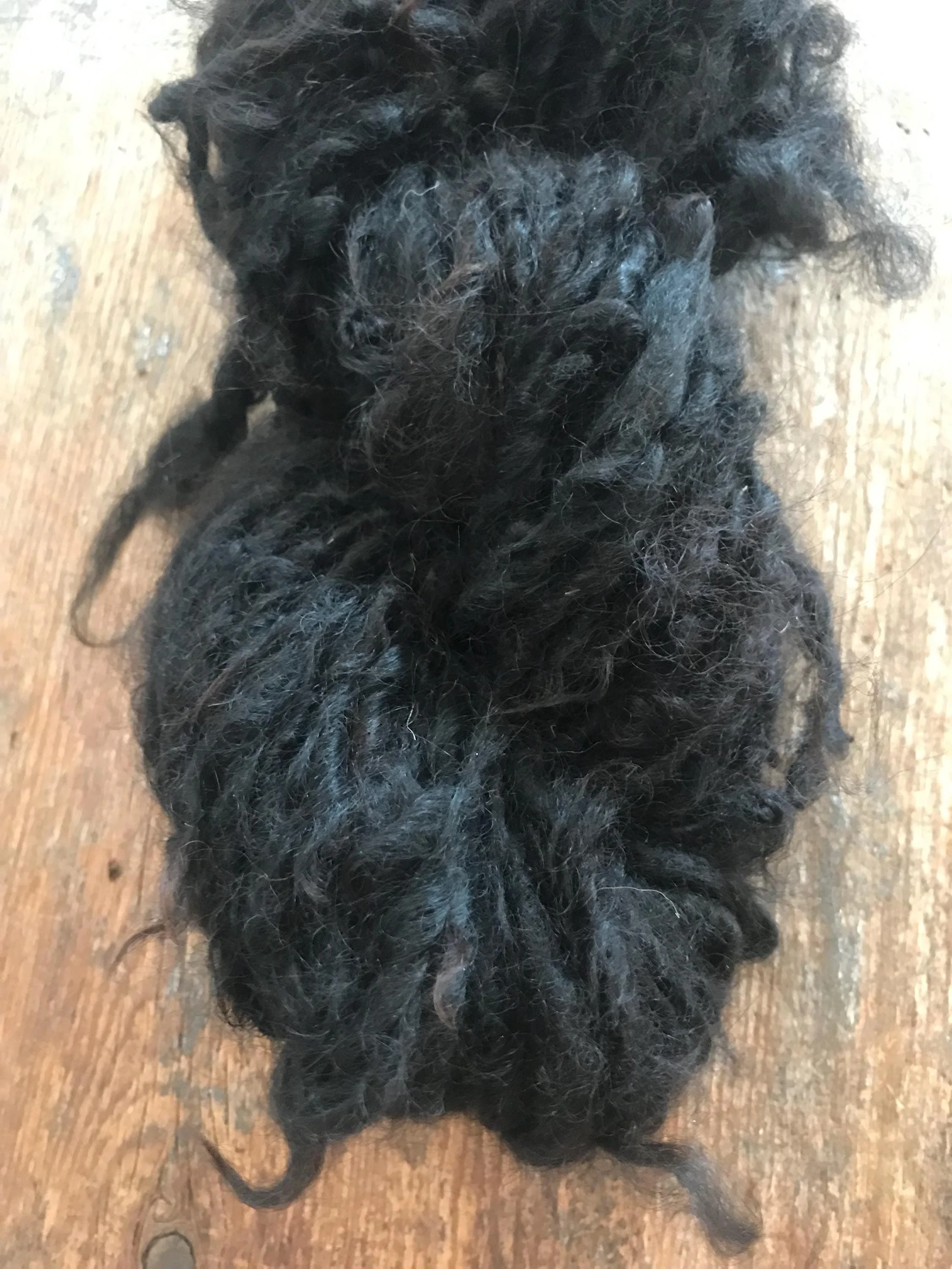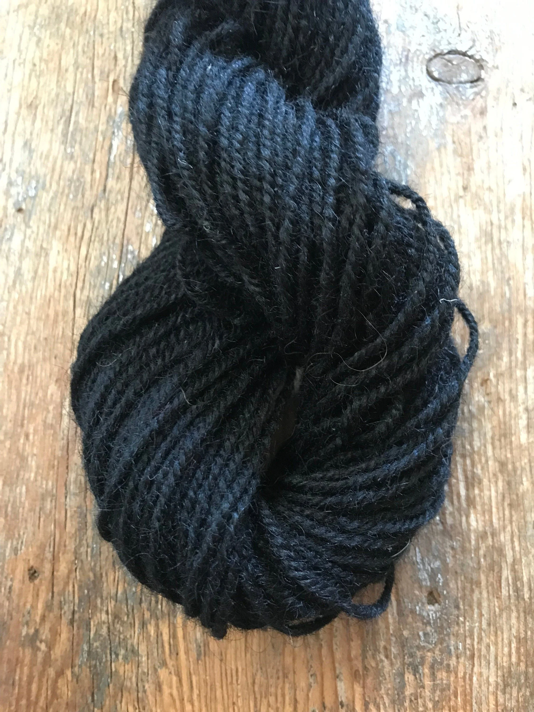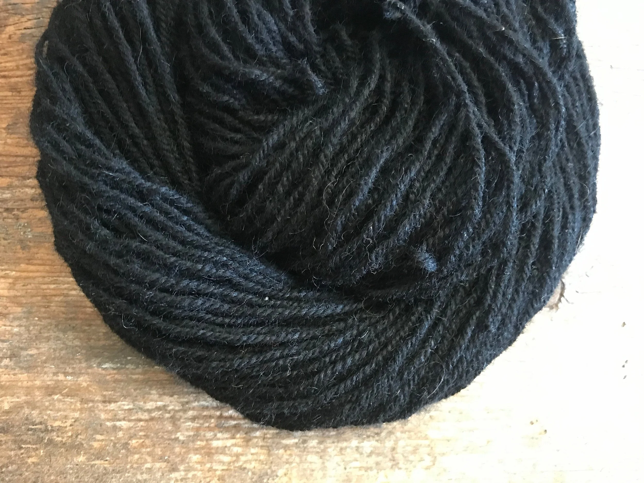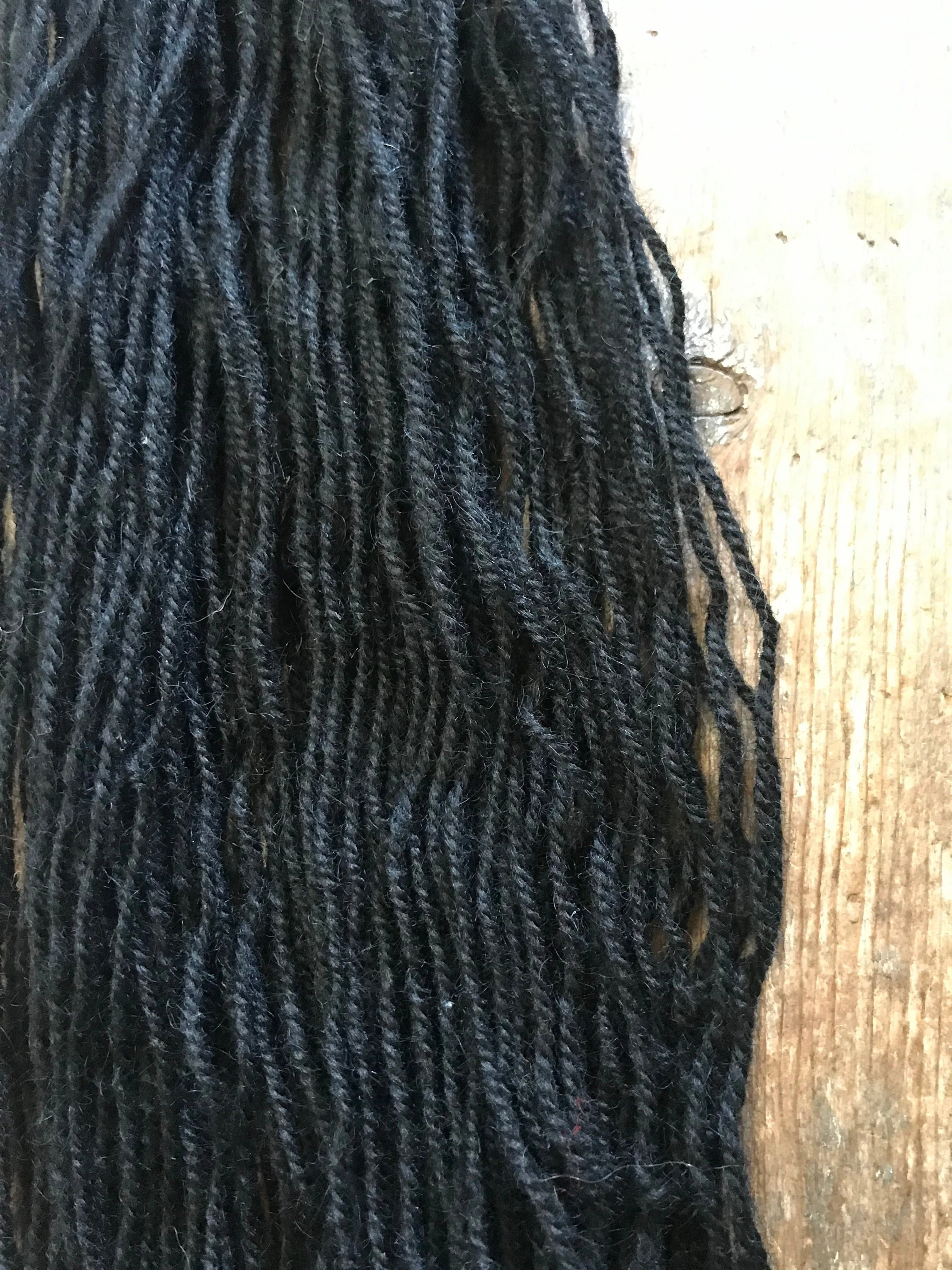 Lincoln 2 ply black worsted handspun yarn, 100 yards
