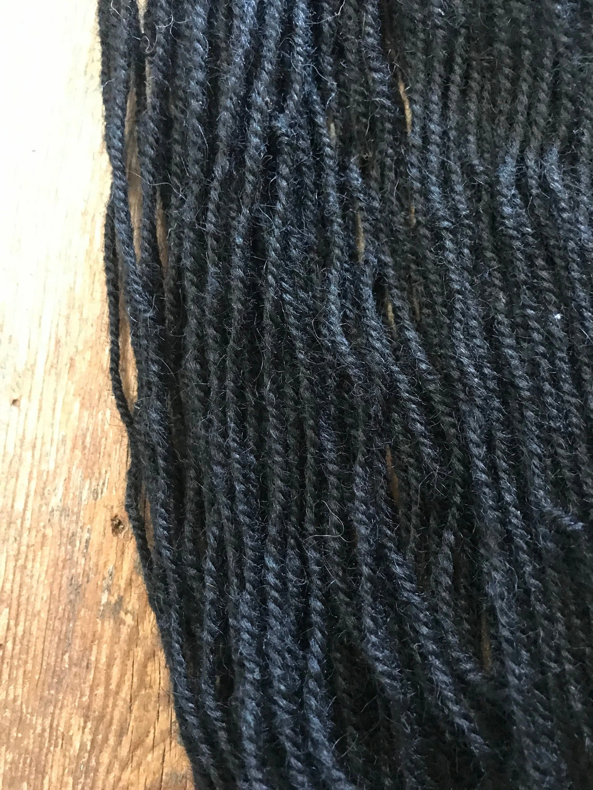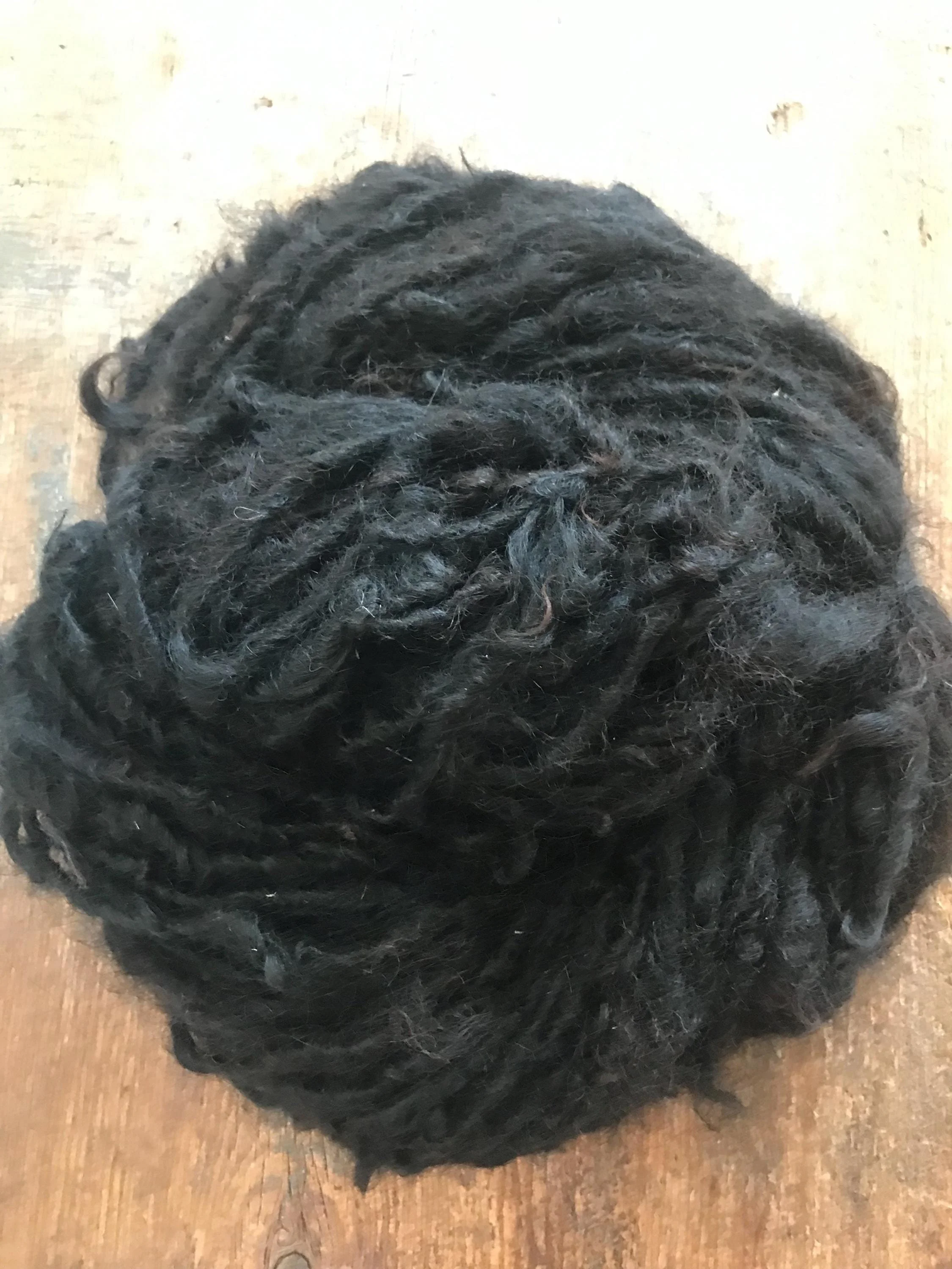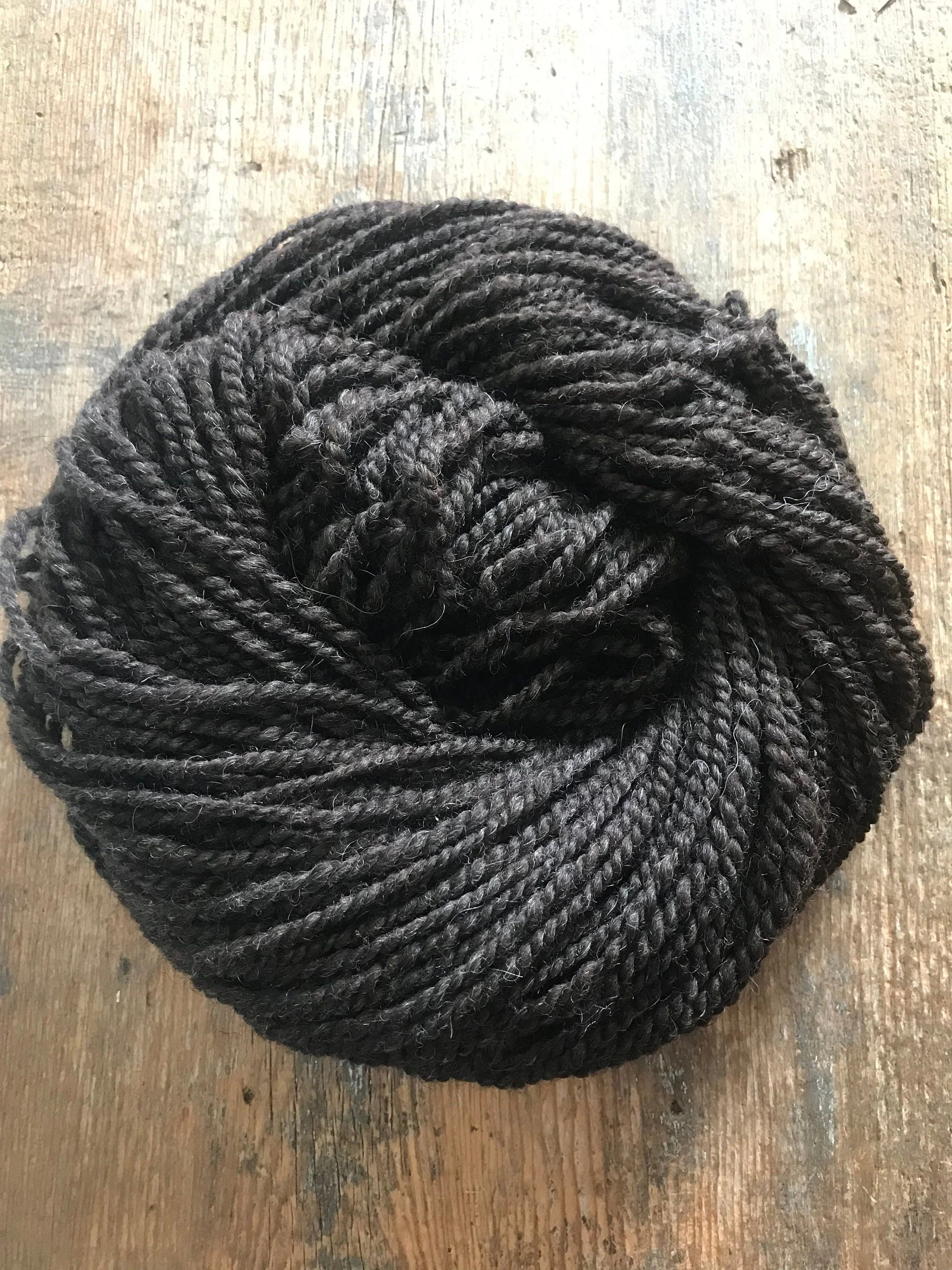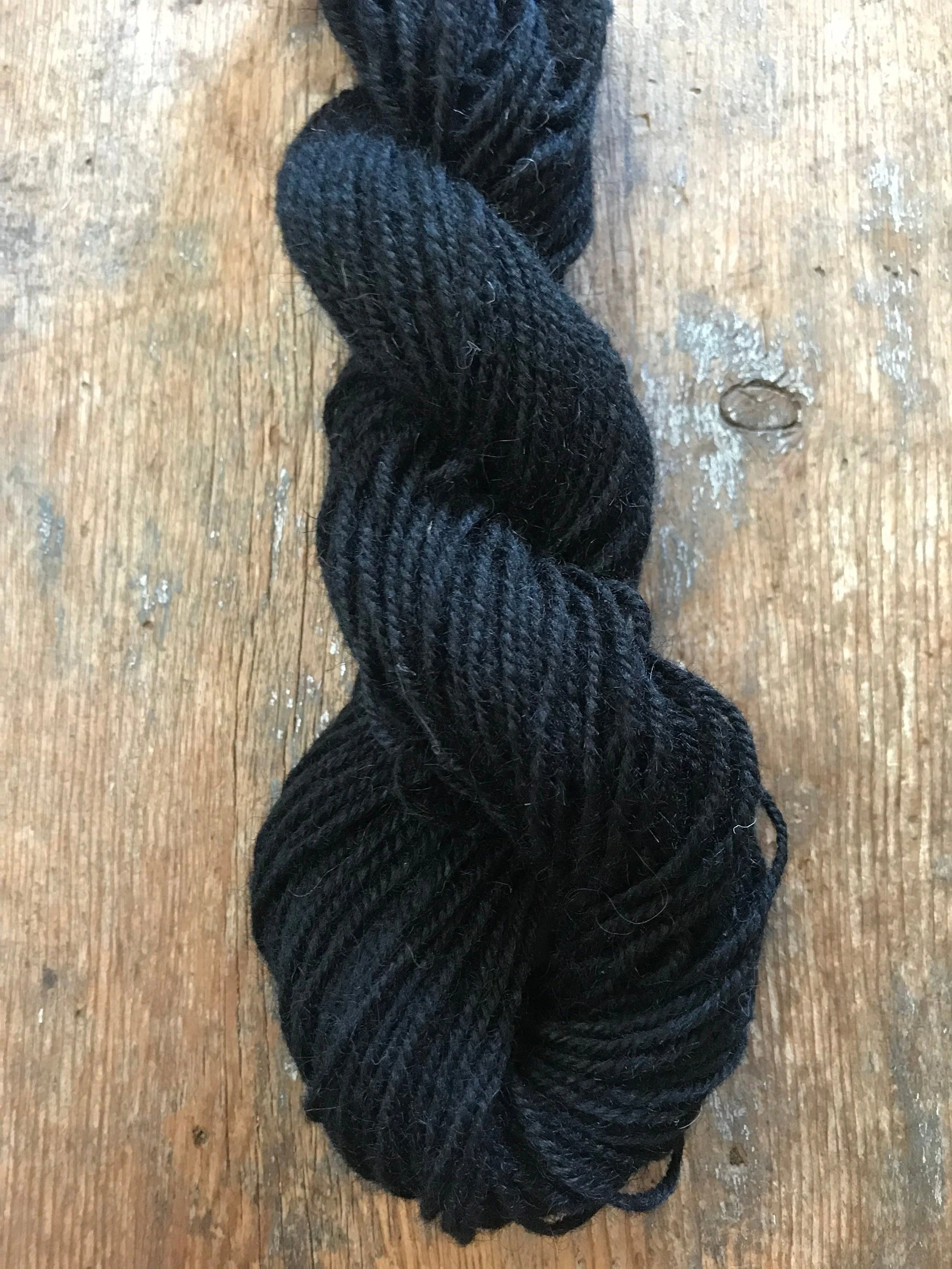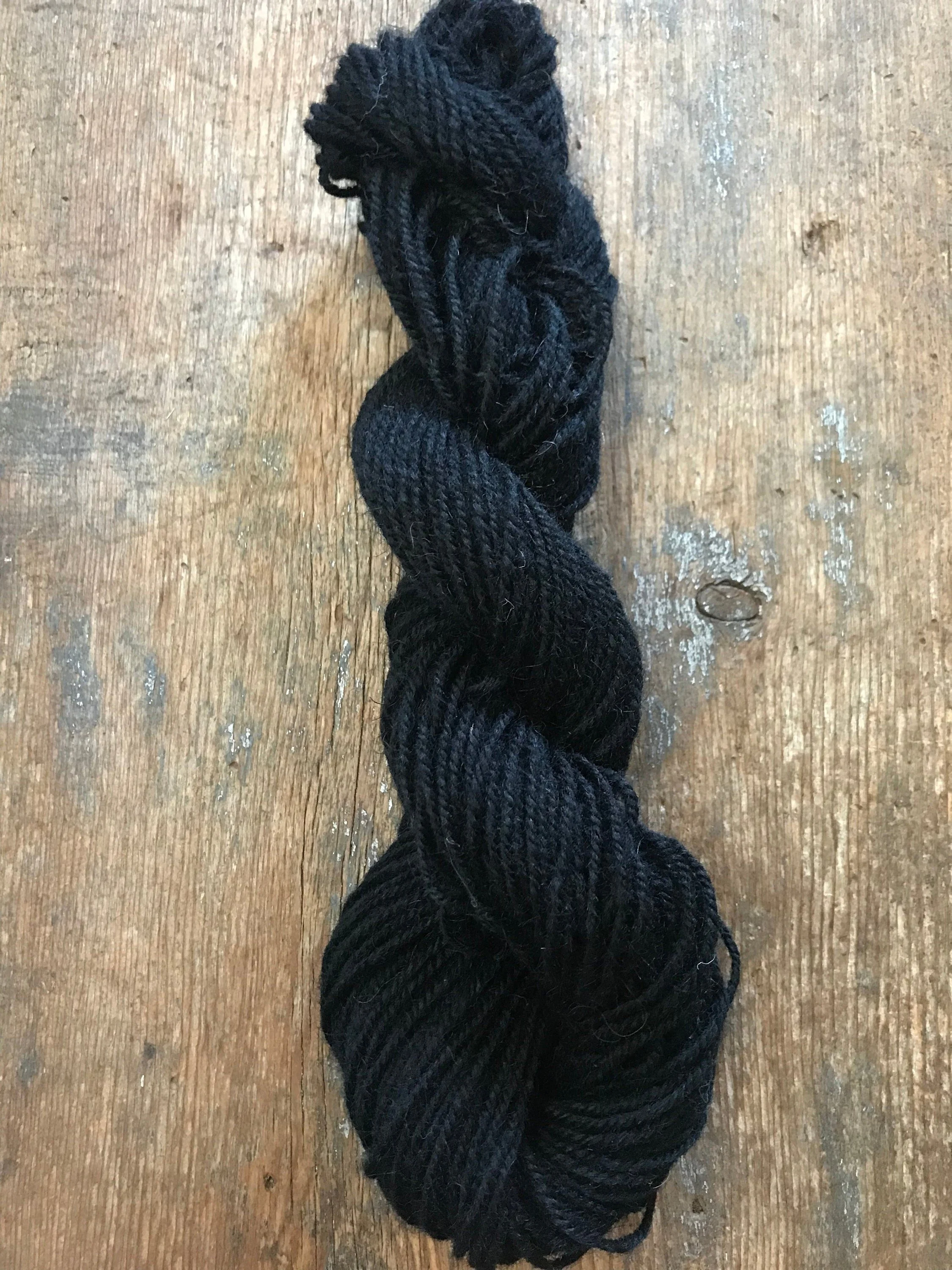 Lincoln 2 ply black worsted handspun yarn, 100 yards