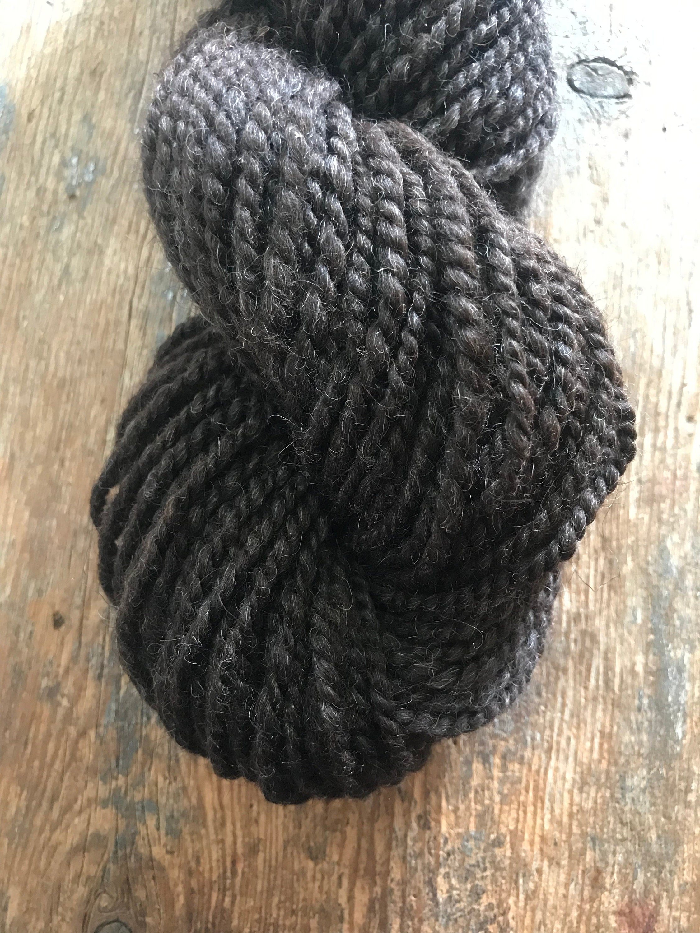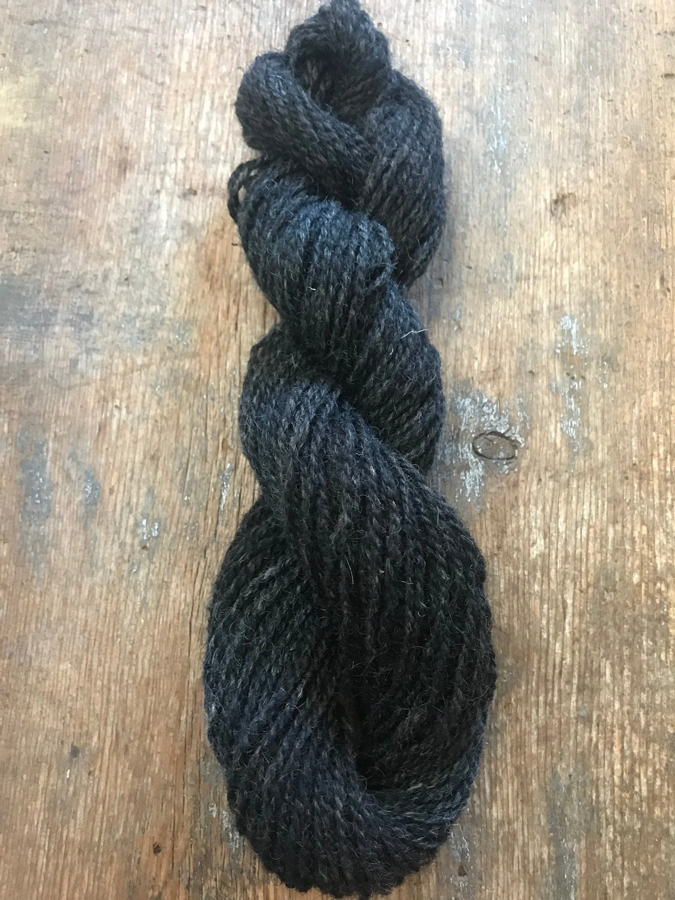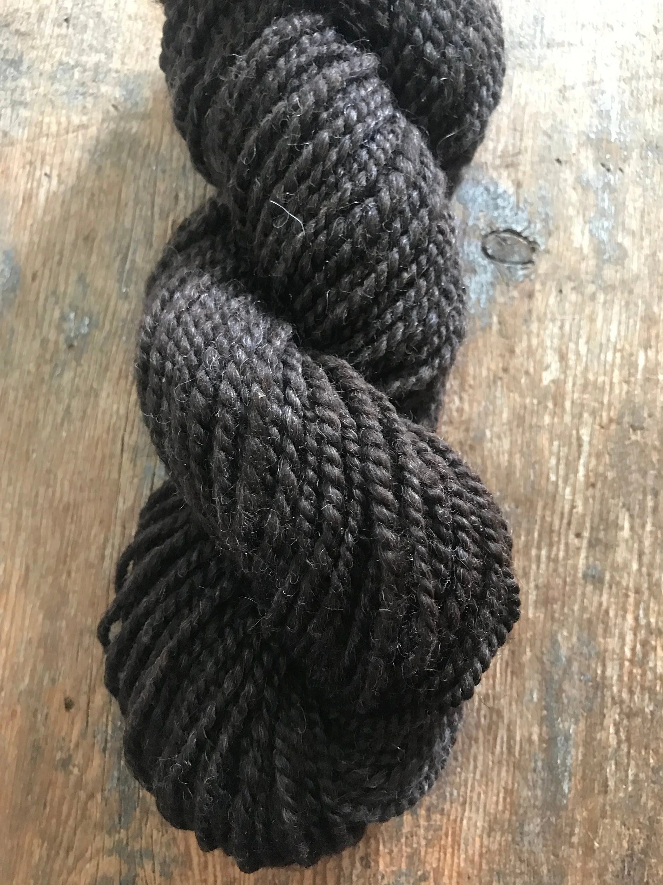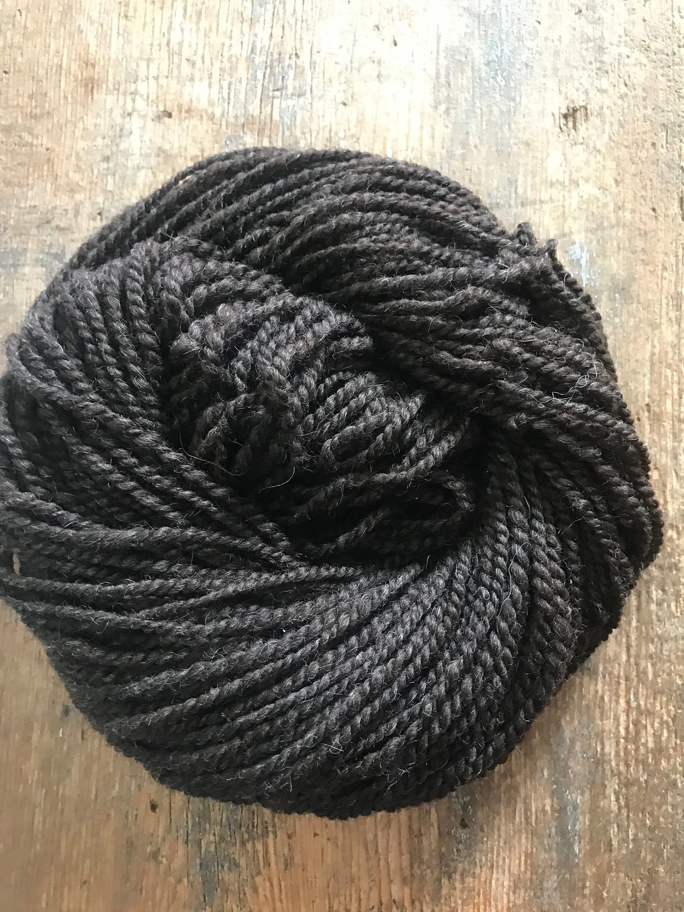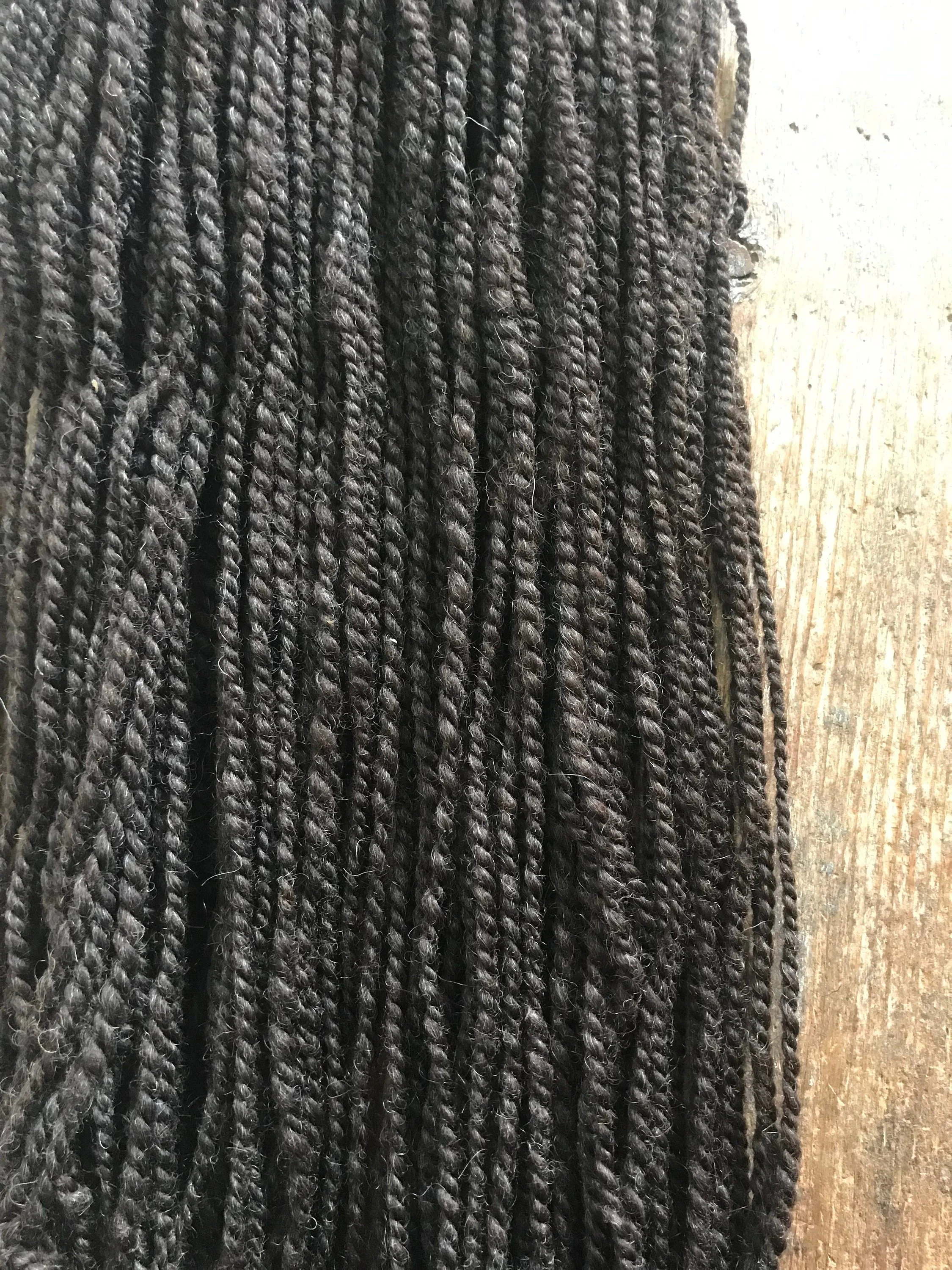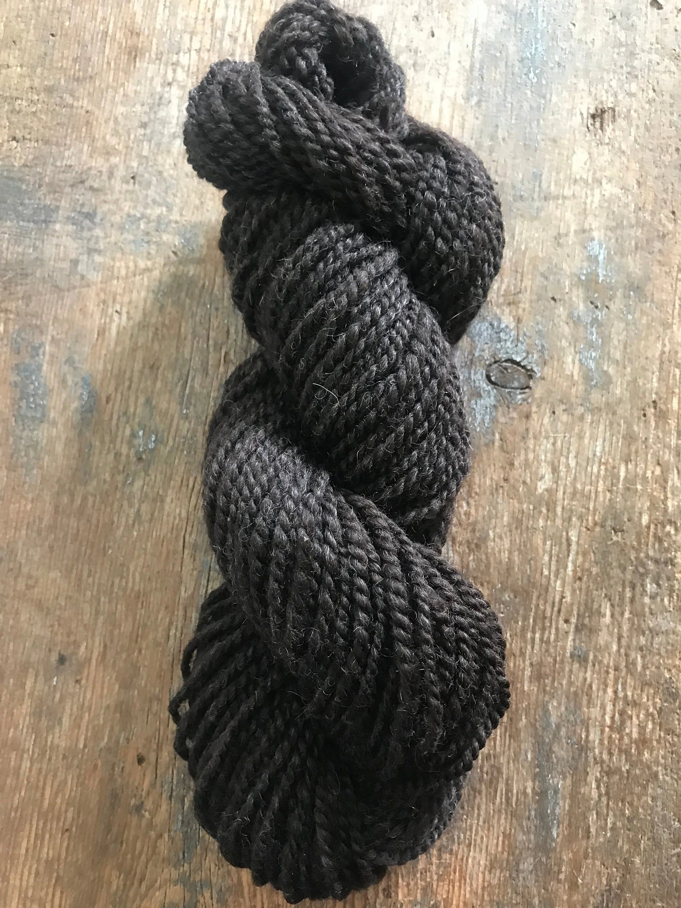 Lincoln 2 ply black worsted handspun yarn, 100 yards