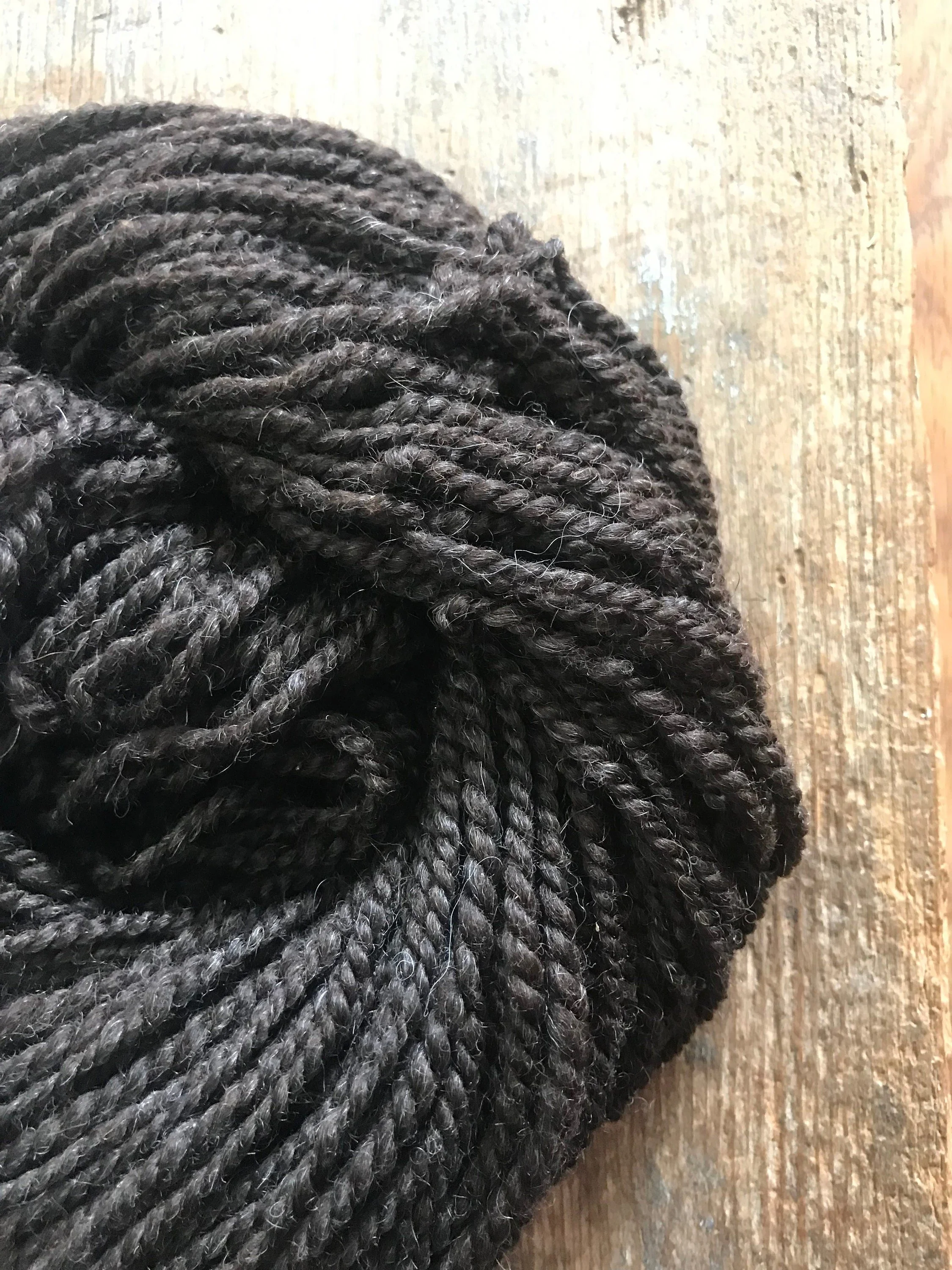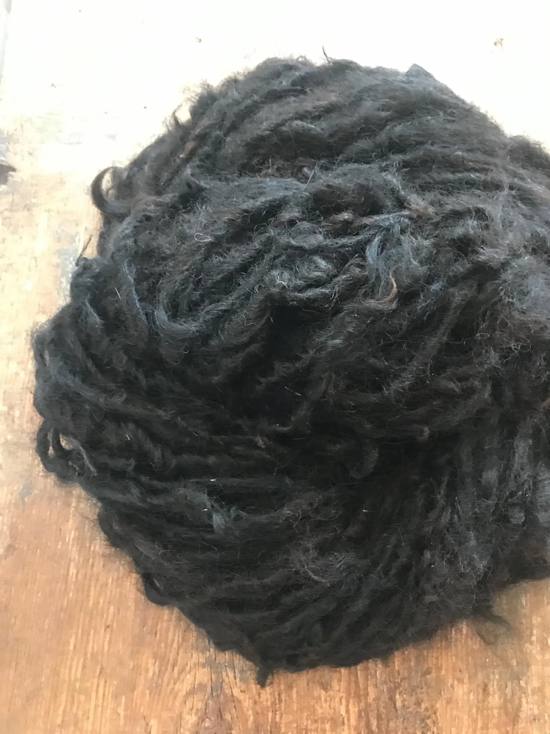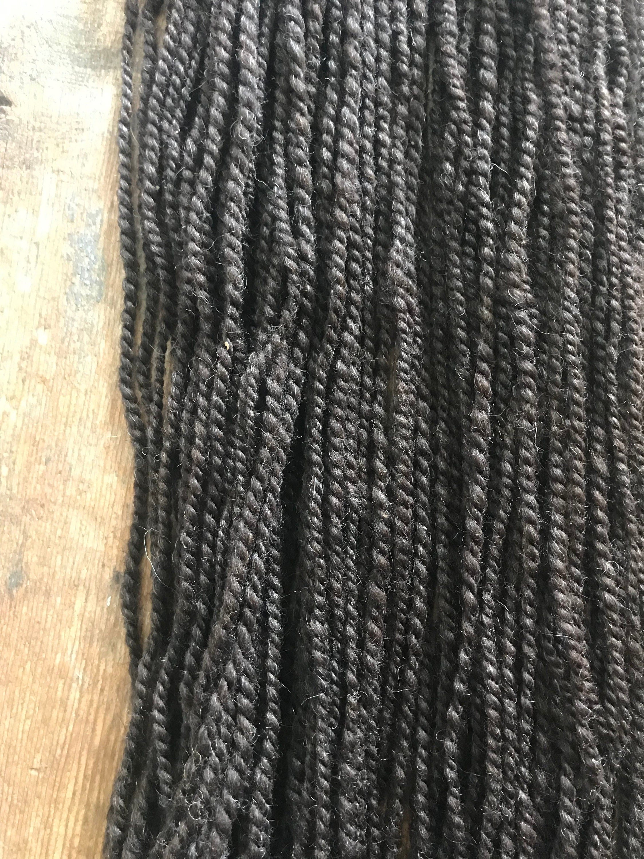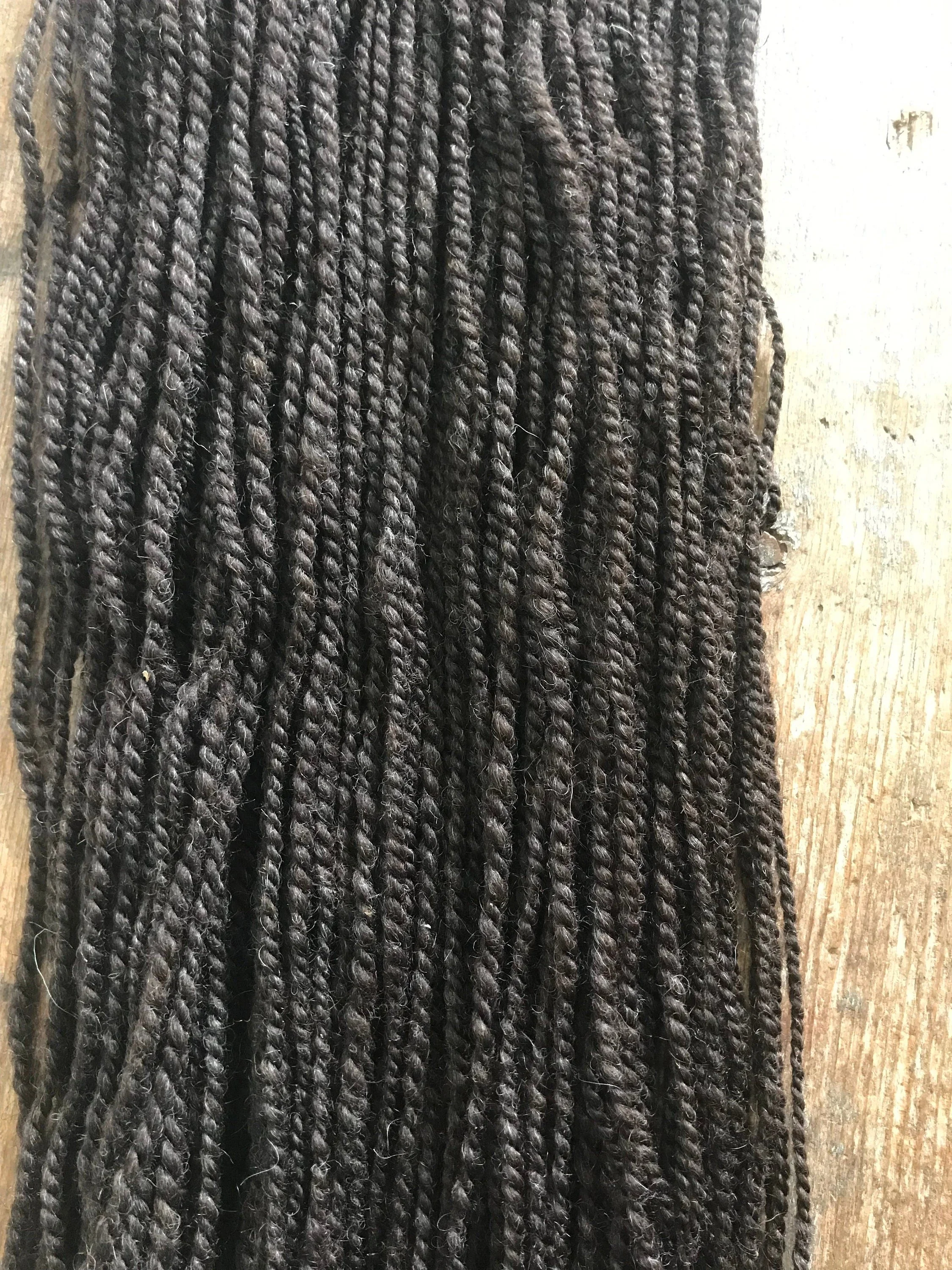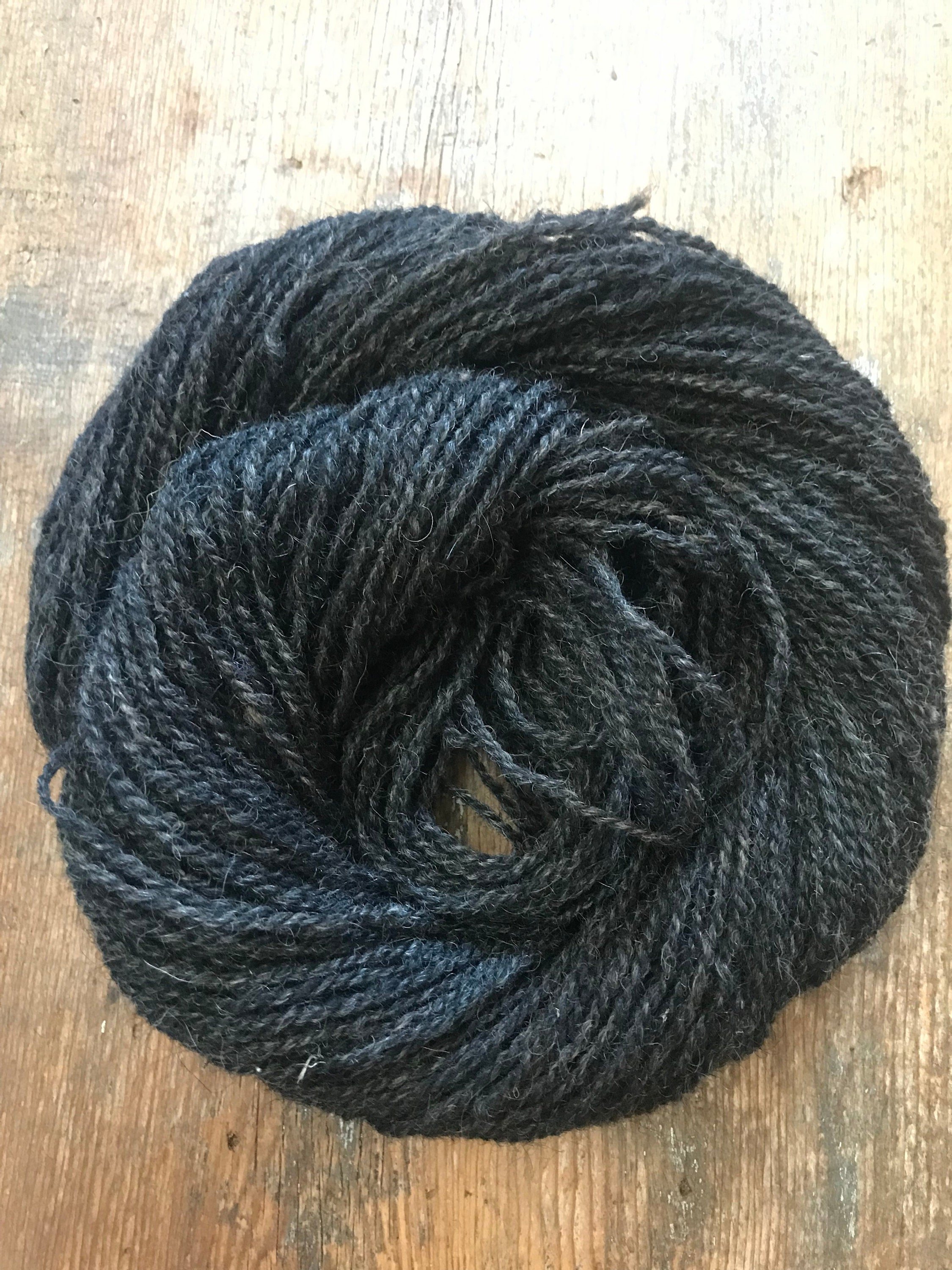 Lincoln 2 ply black worsted handspun yarn, 100 yards