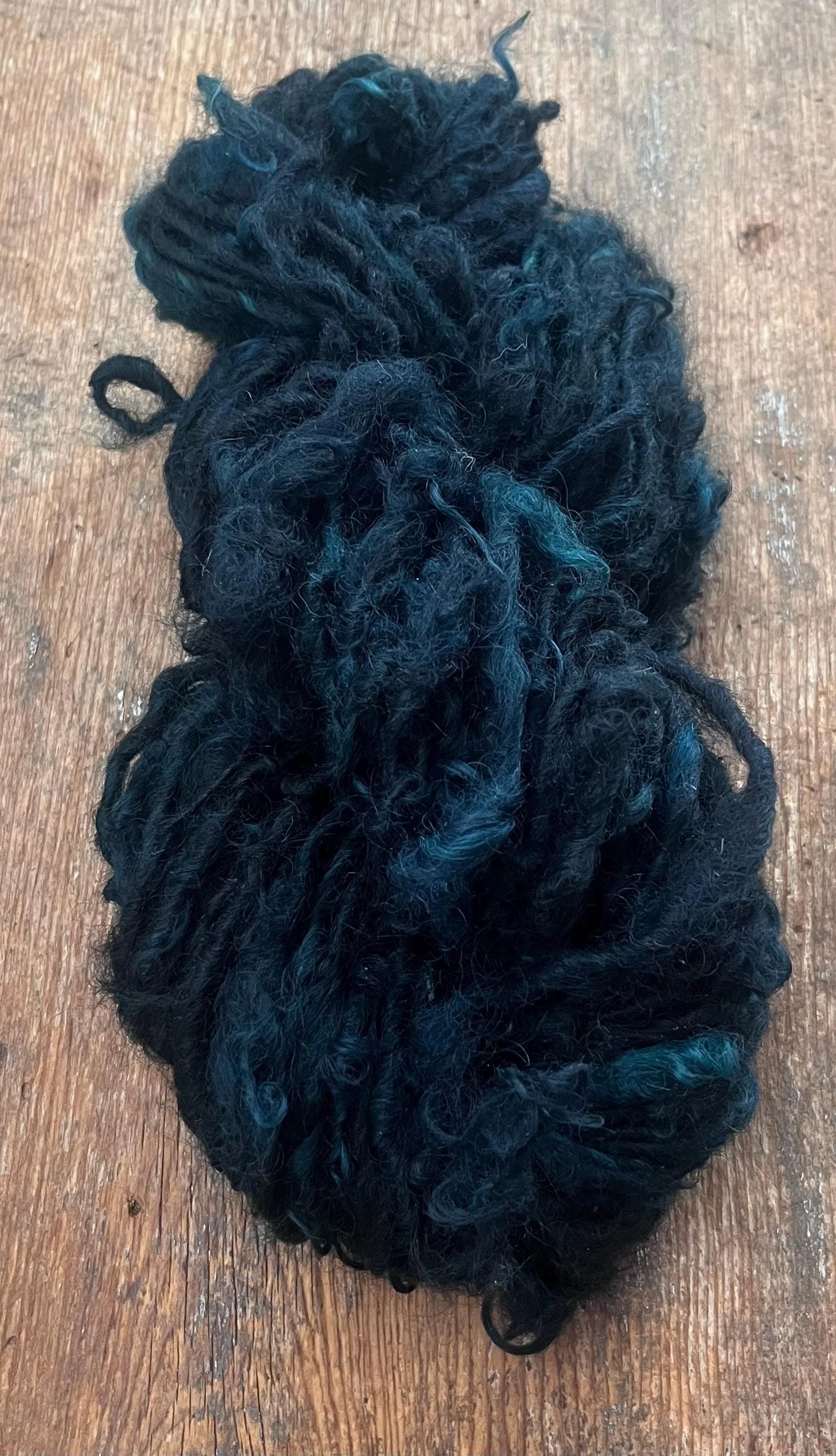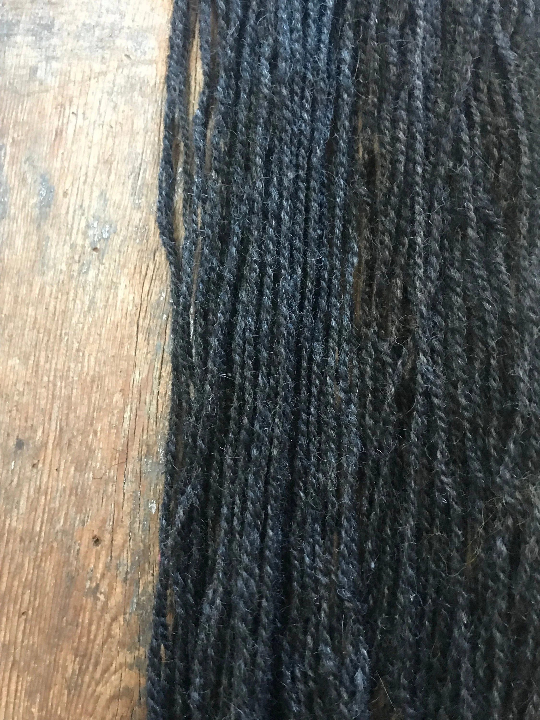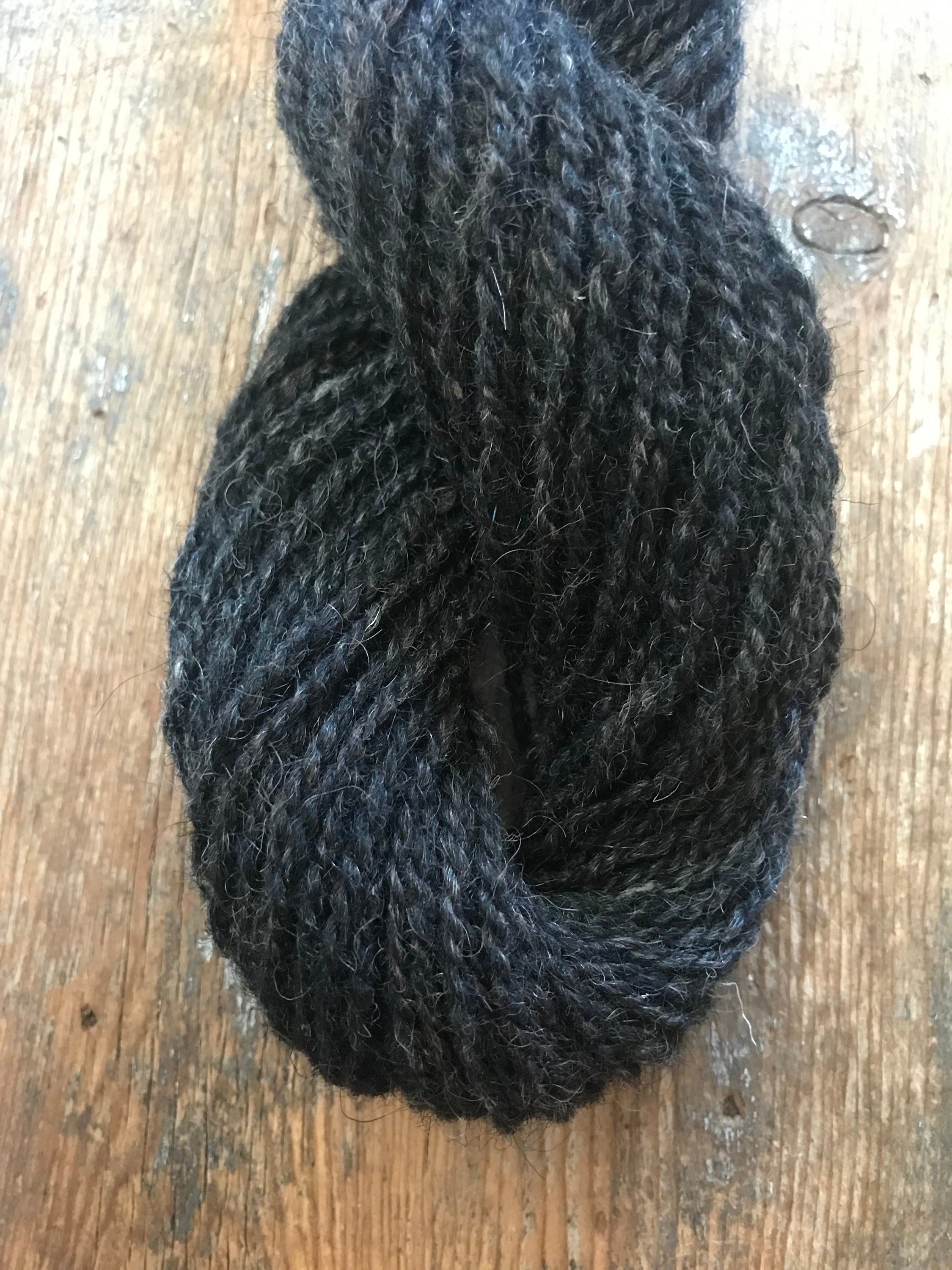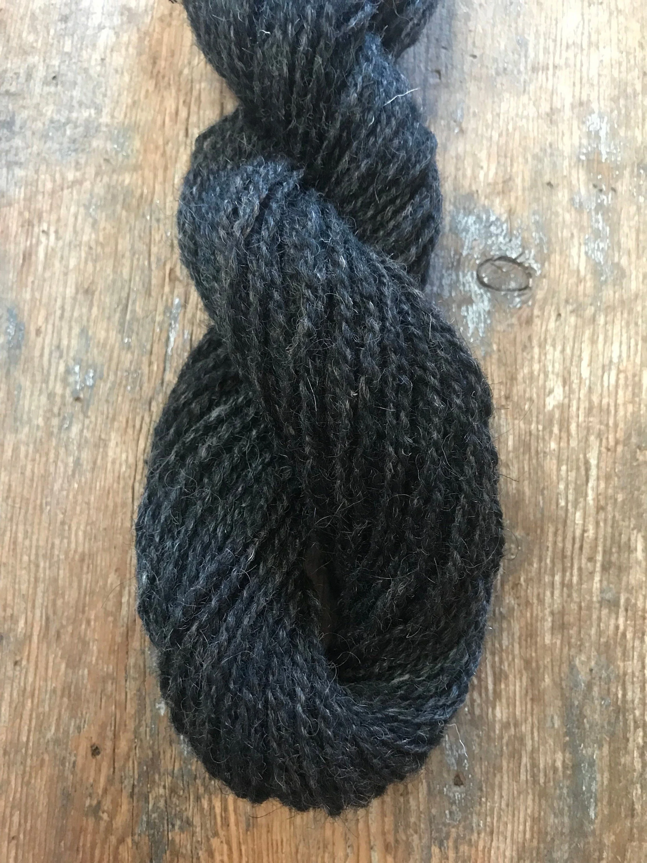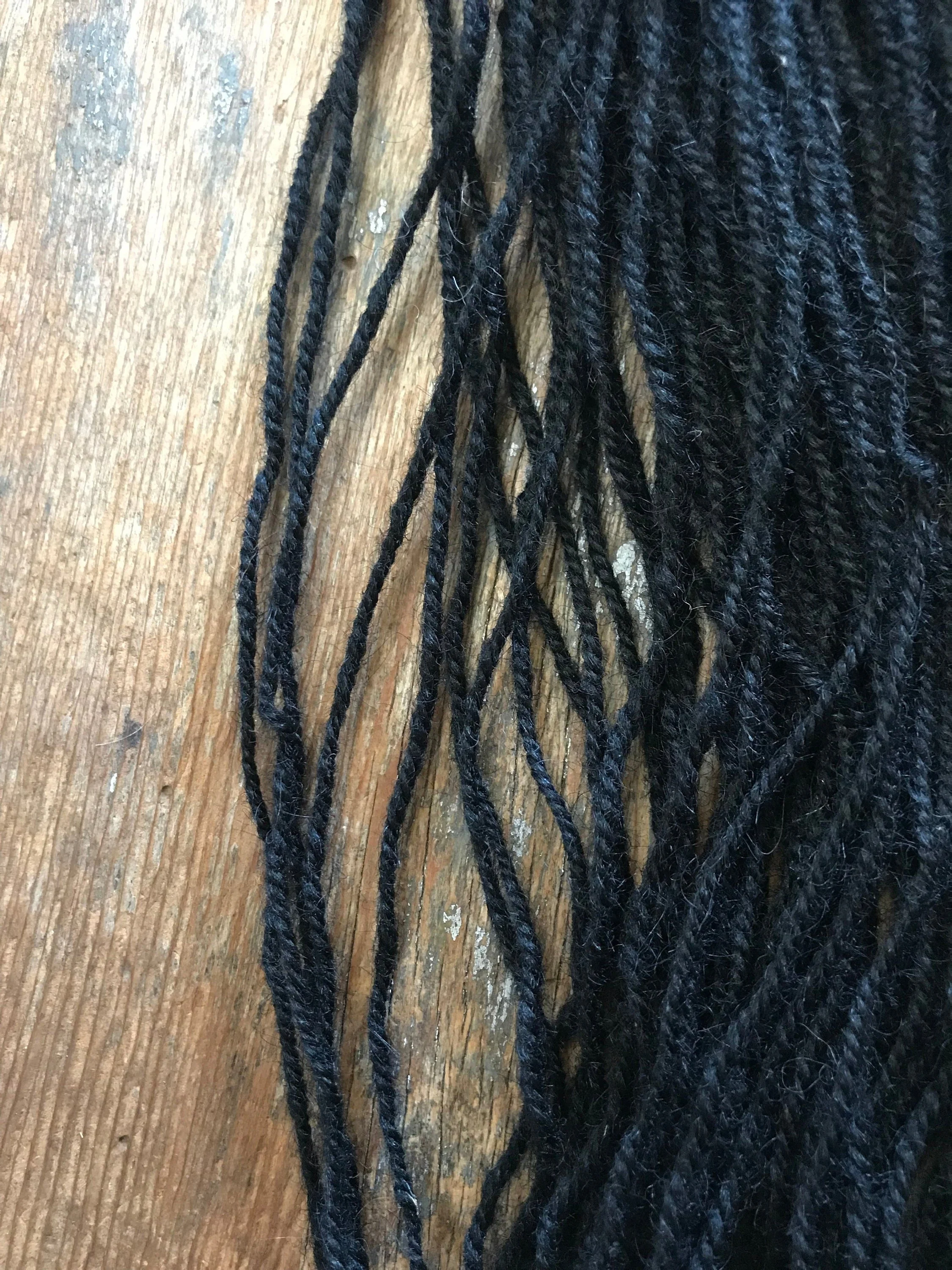 Lincoln 2 ply black worsted handspun yarn, 100 yards