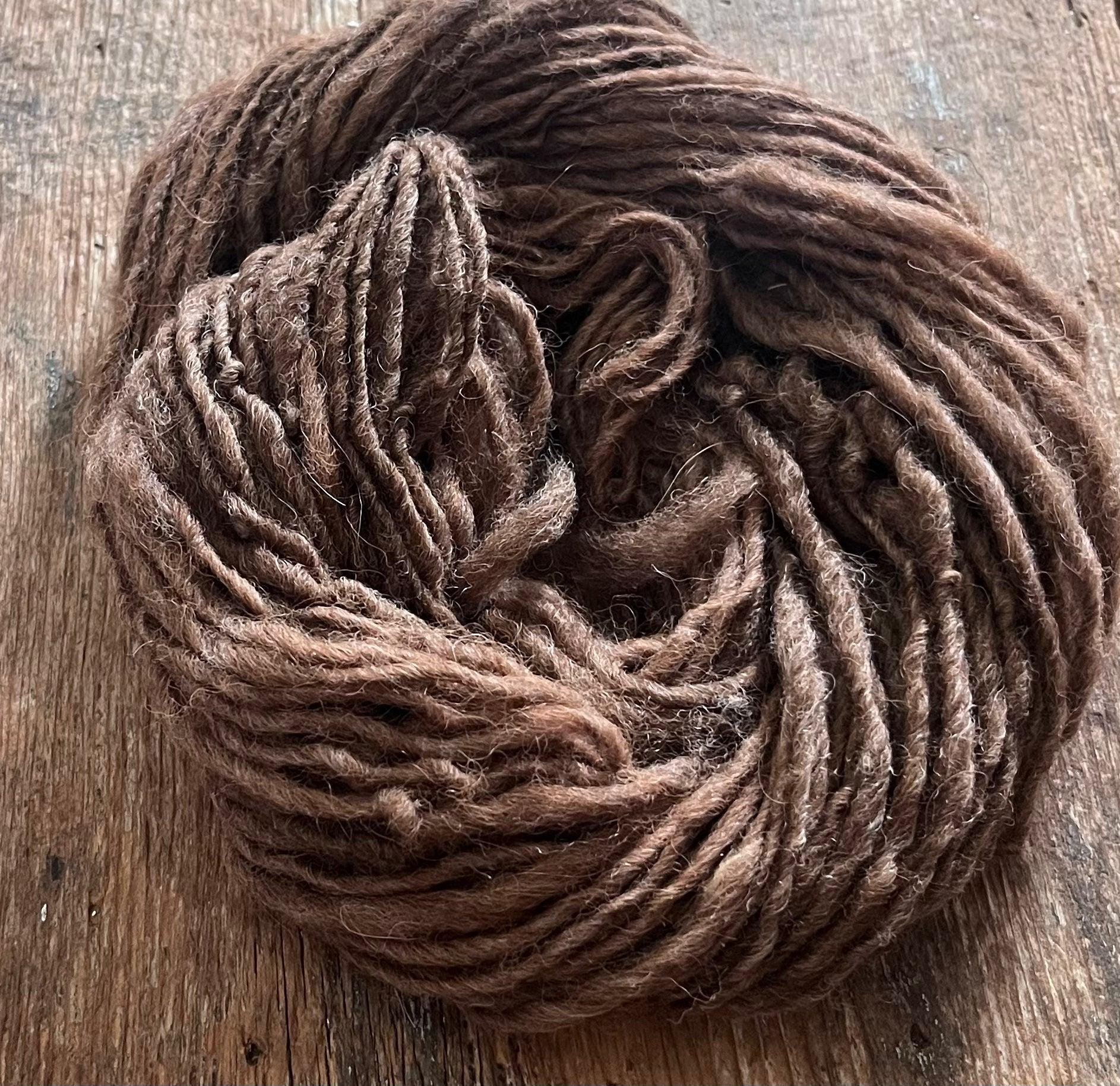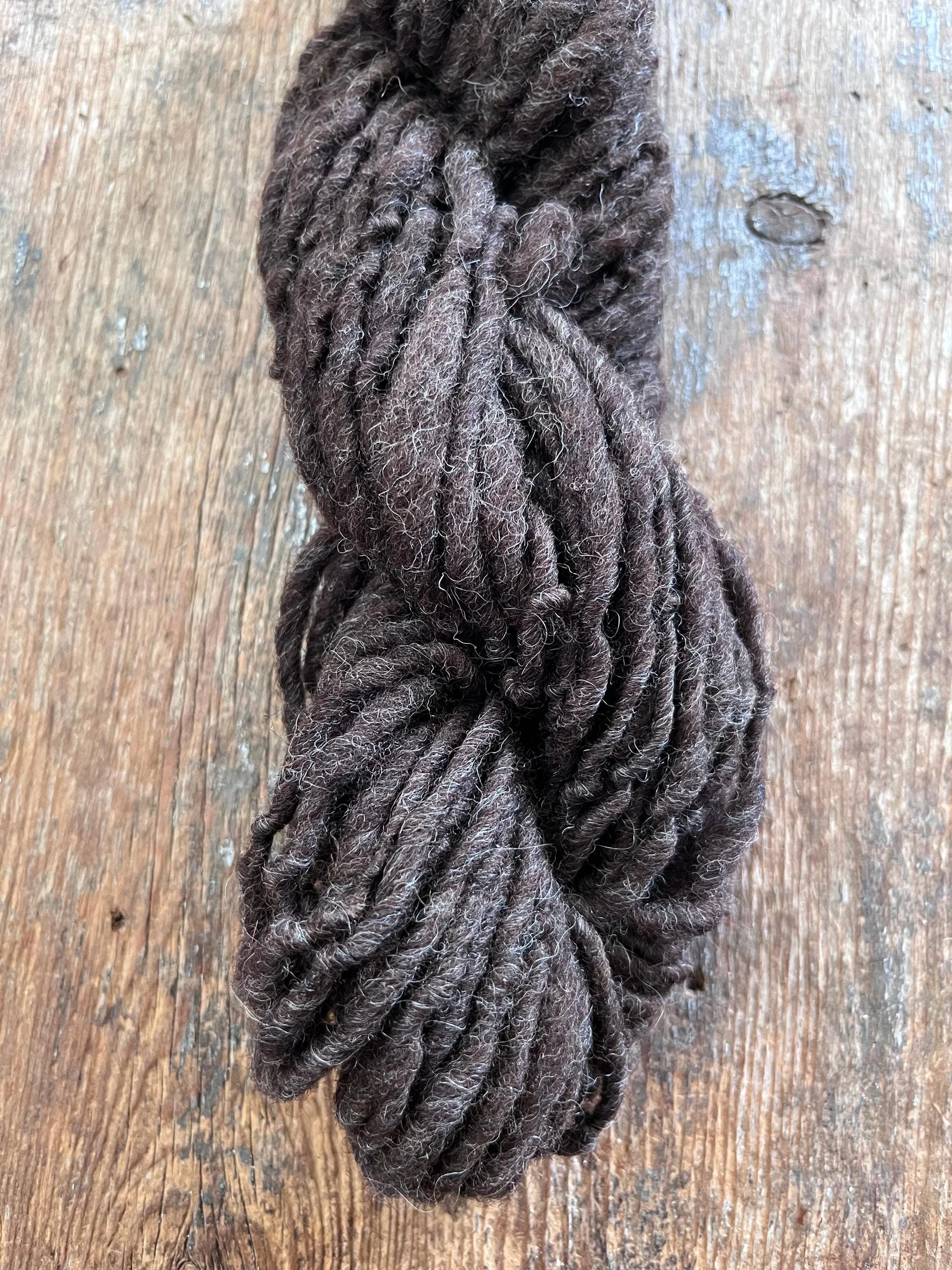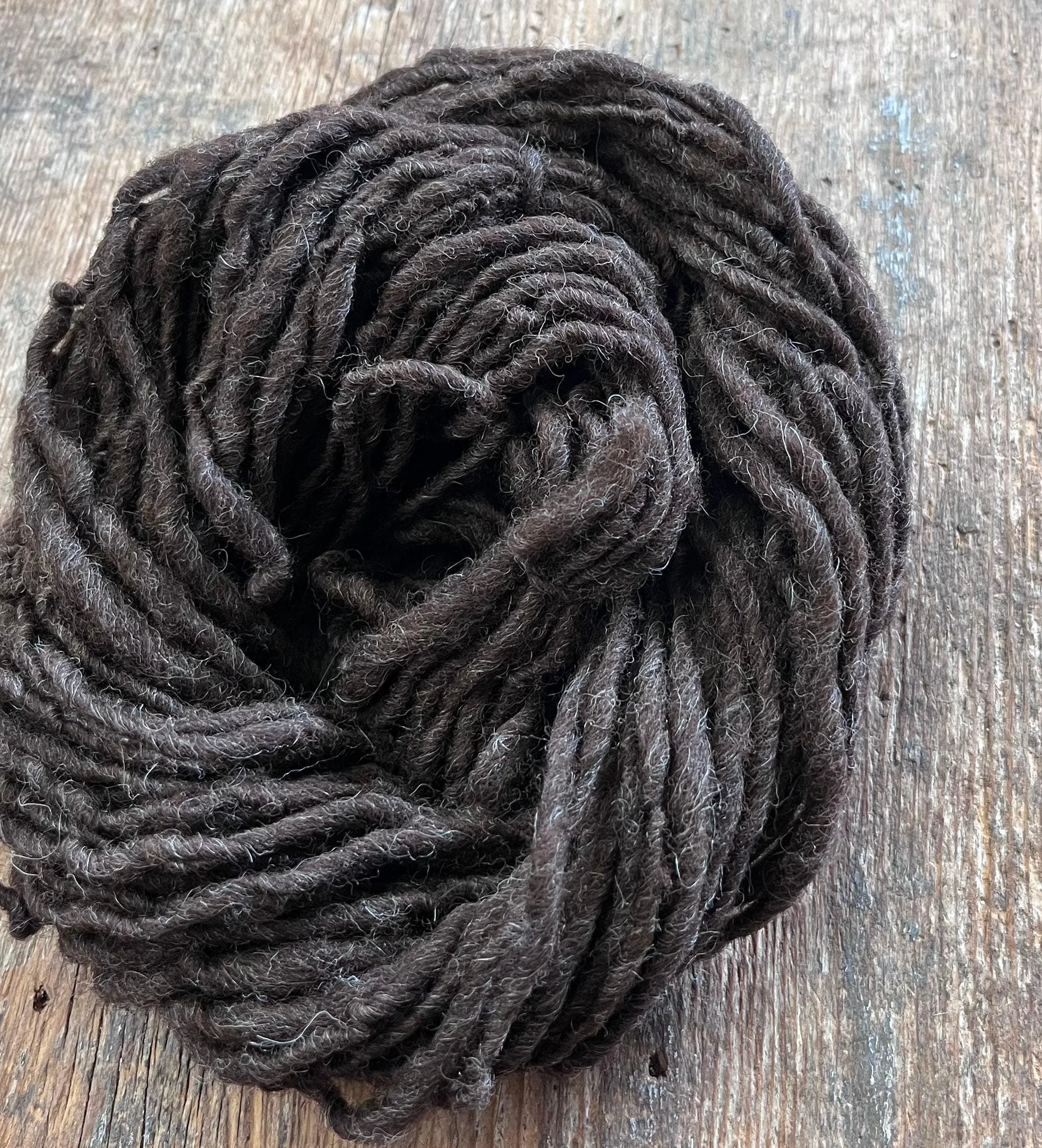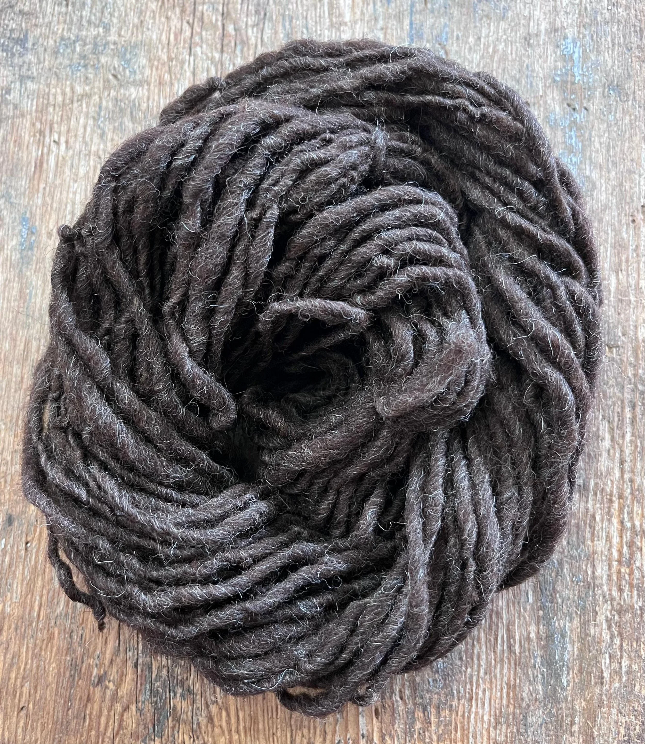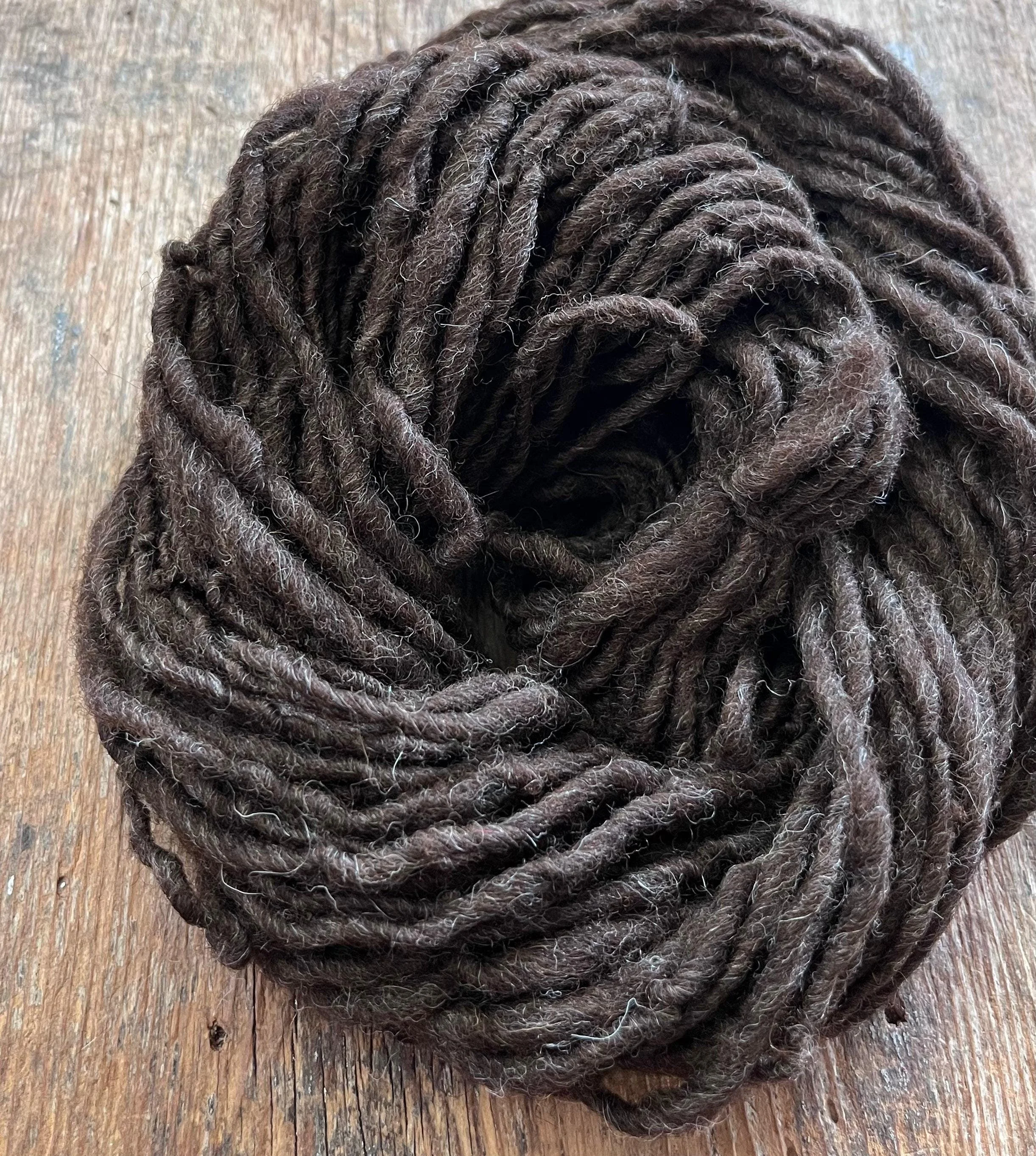 Natural Dark Brown Alpaca Handspun Yarn, Single Ply Bulky Fiber, "Luxor"