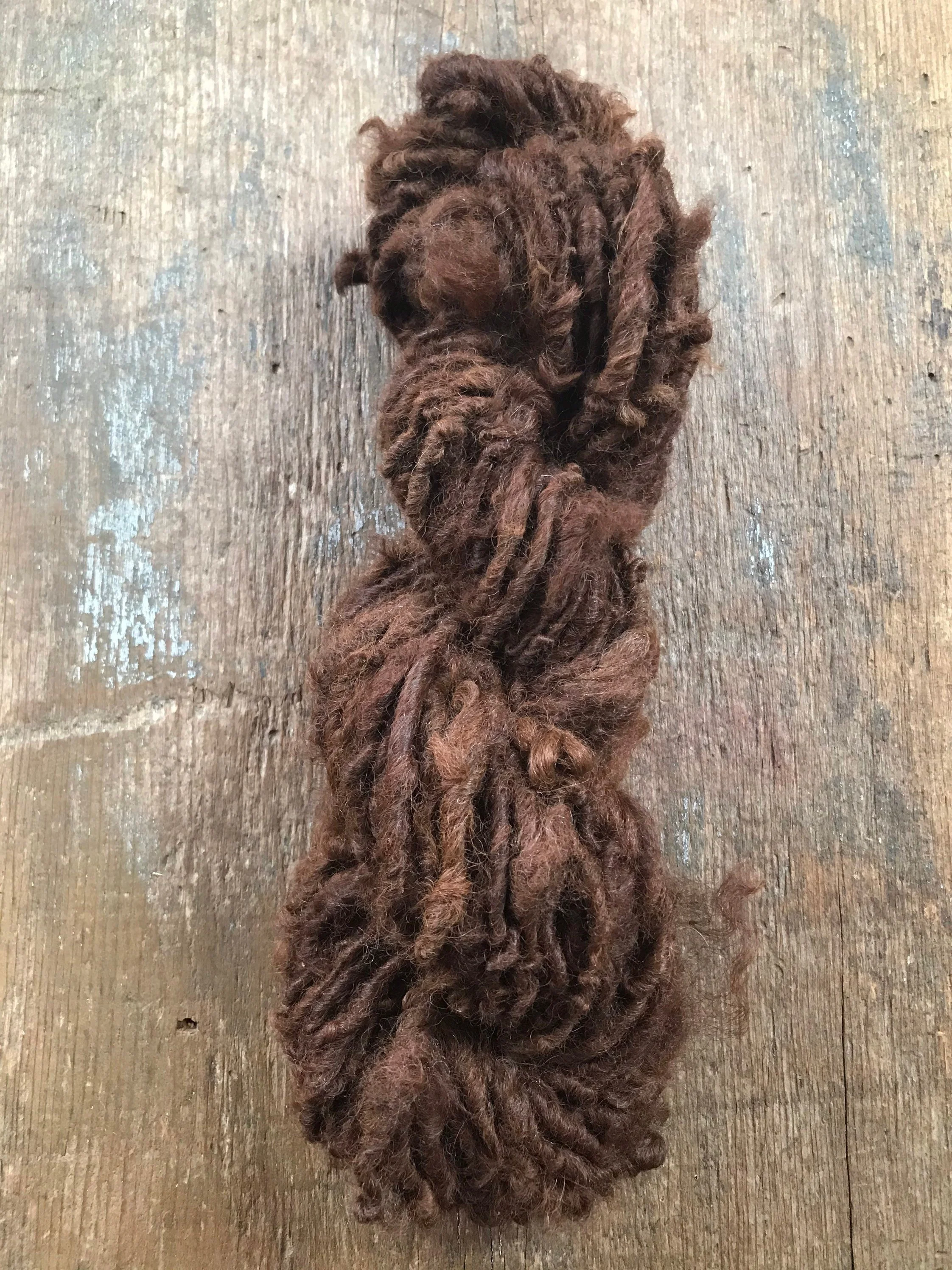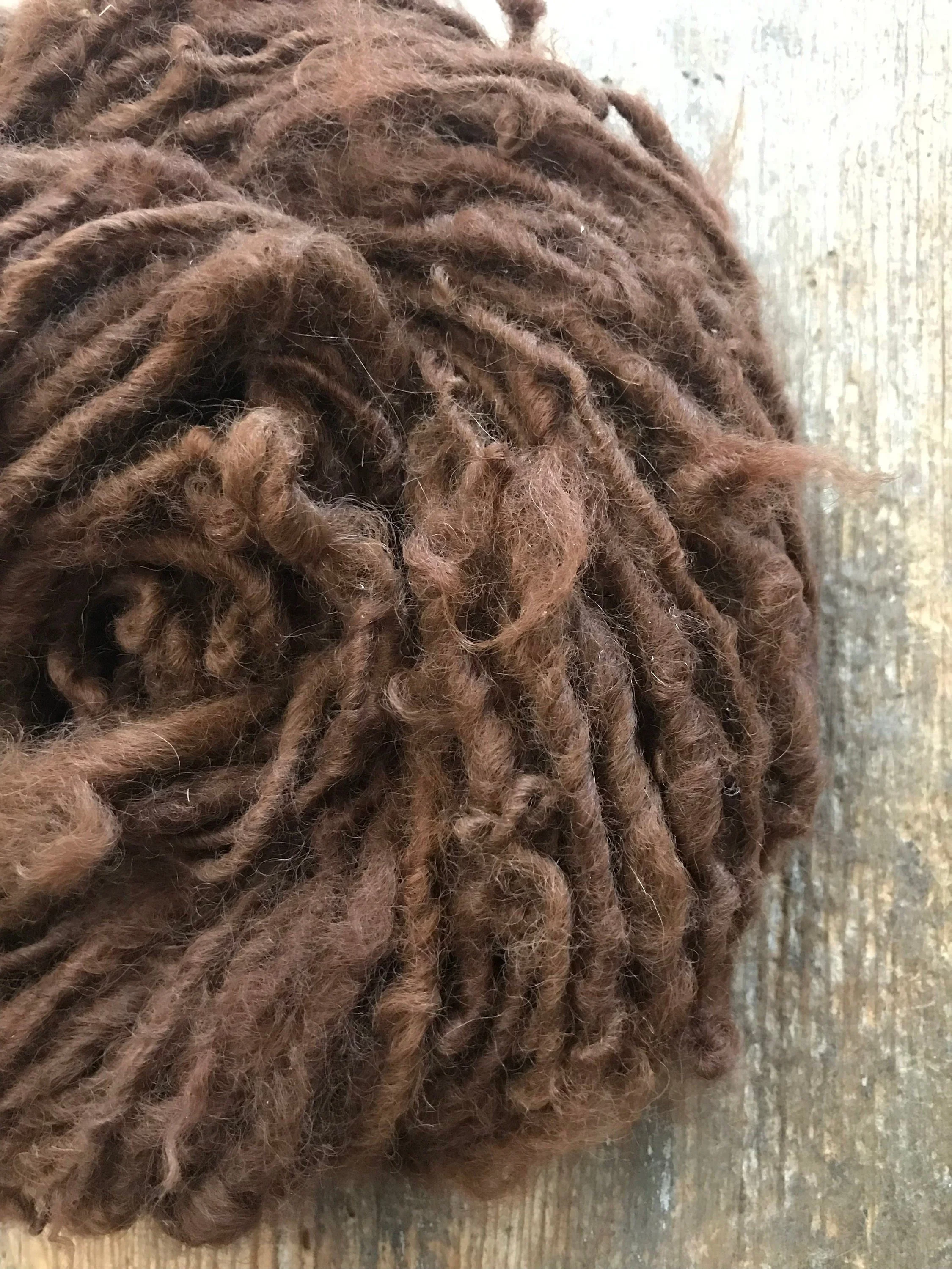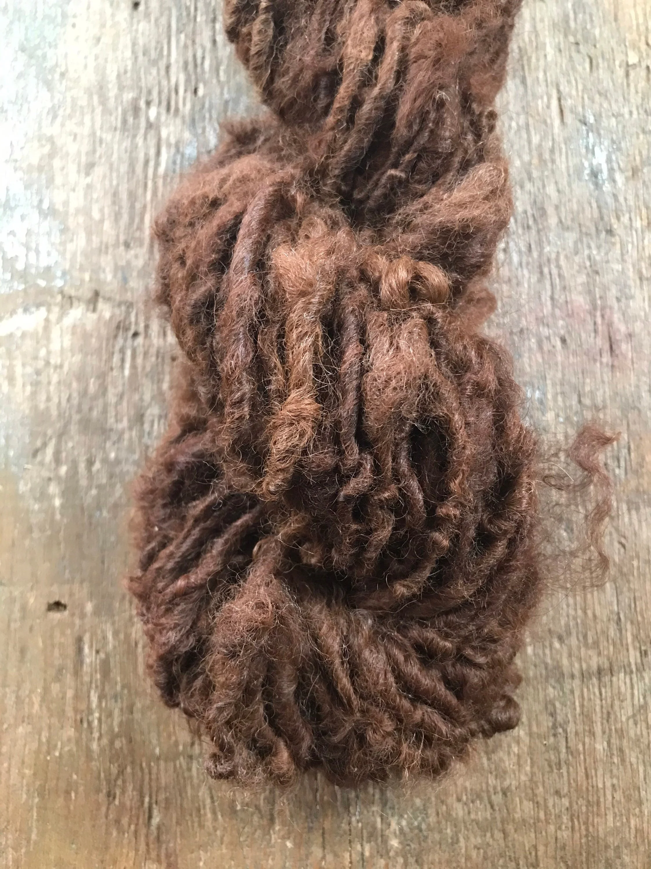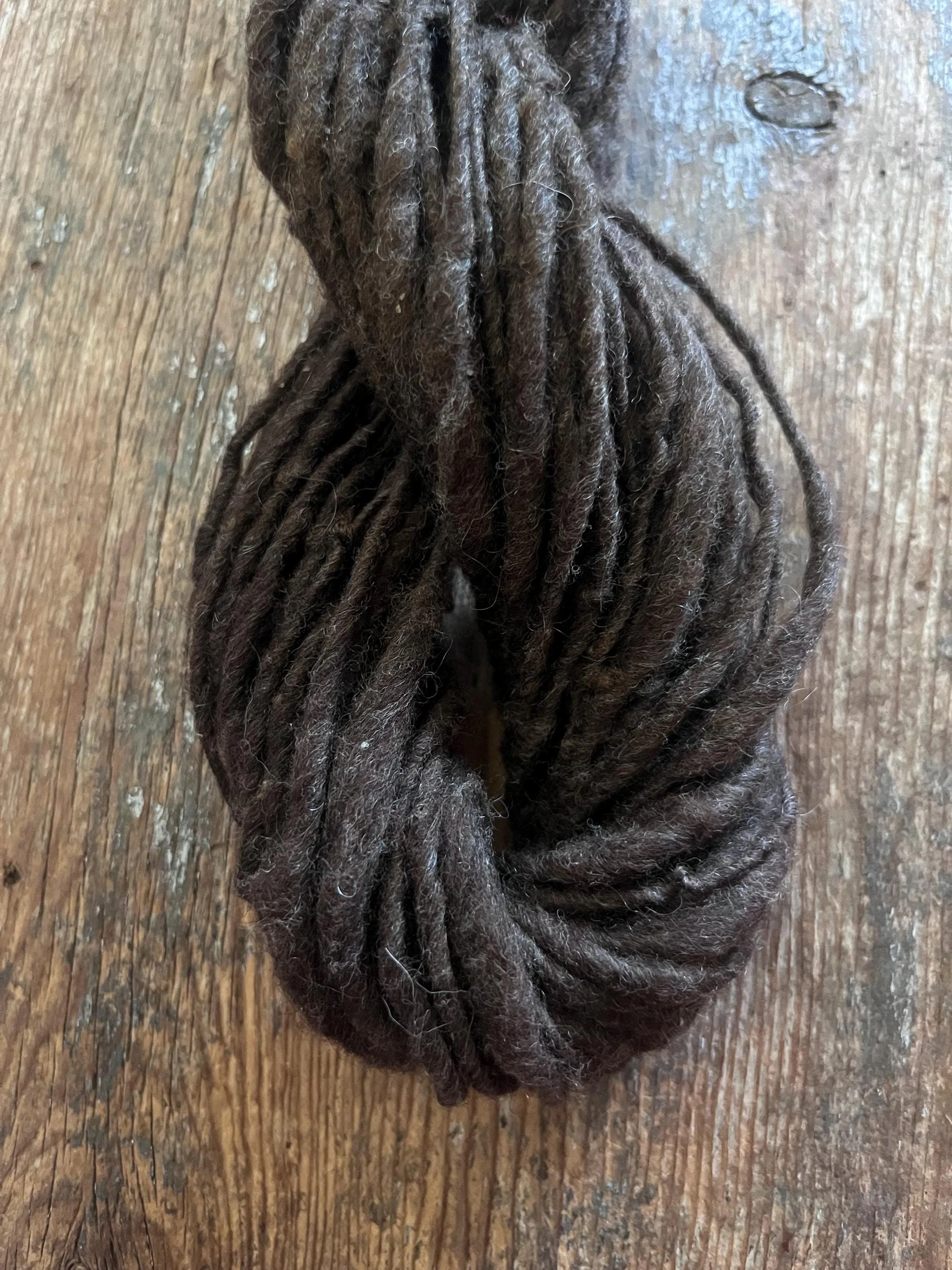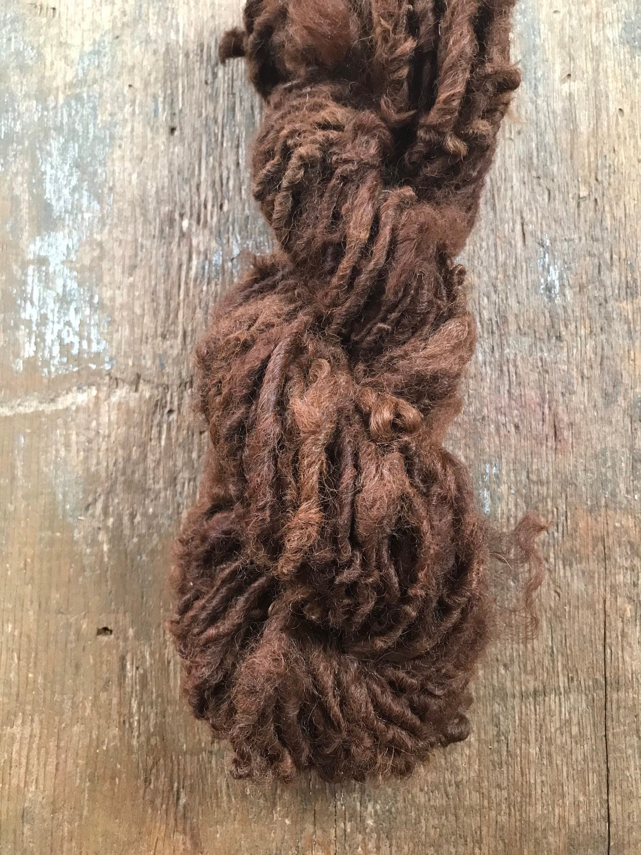 Natural Dark Brown Alpaca Handspun Yarn, Single Ply Bulky Fiber, "Luxor"
