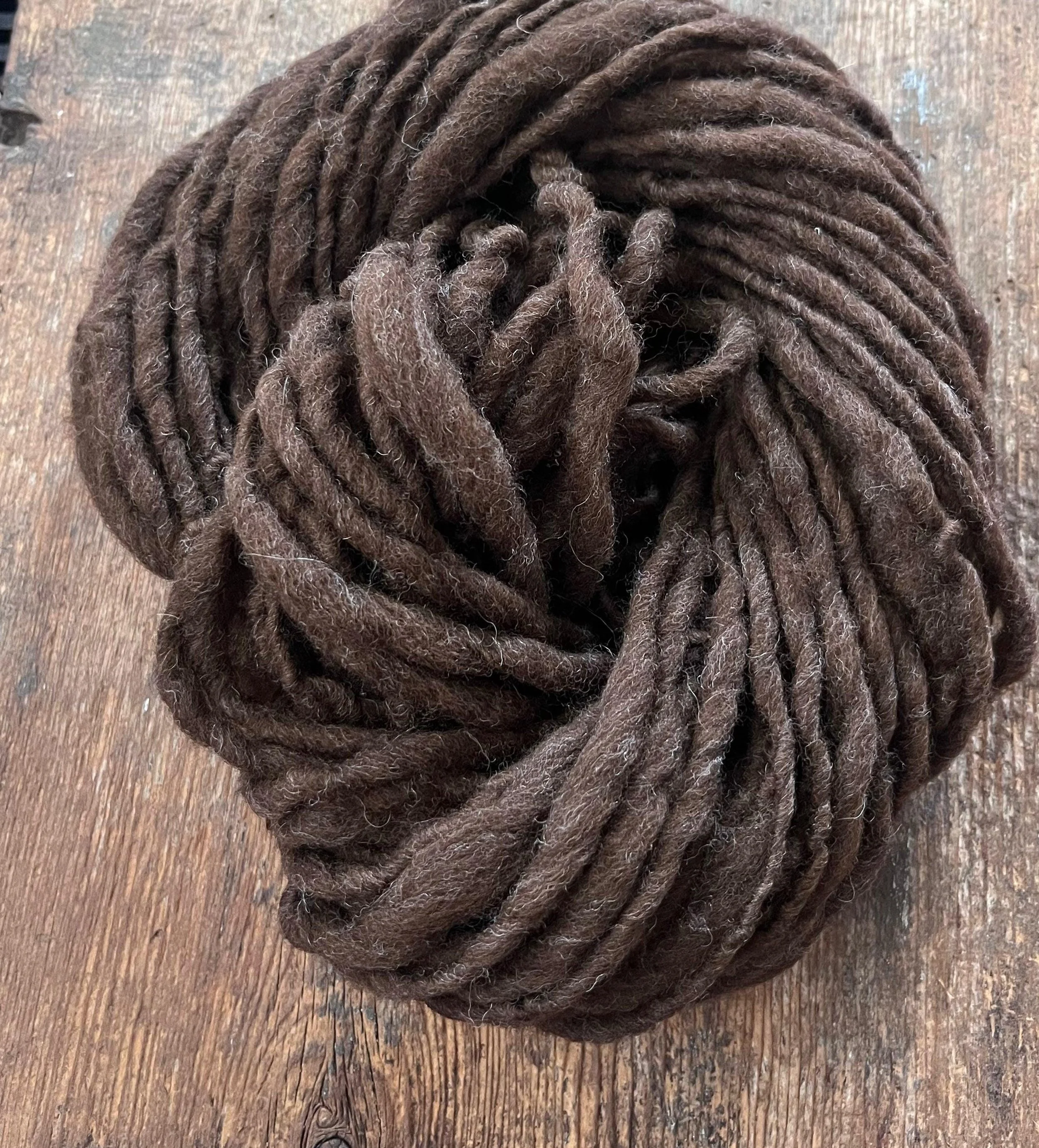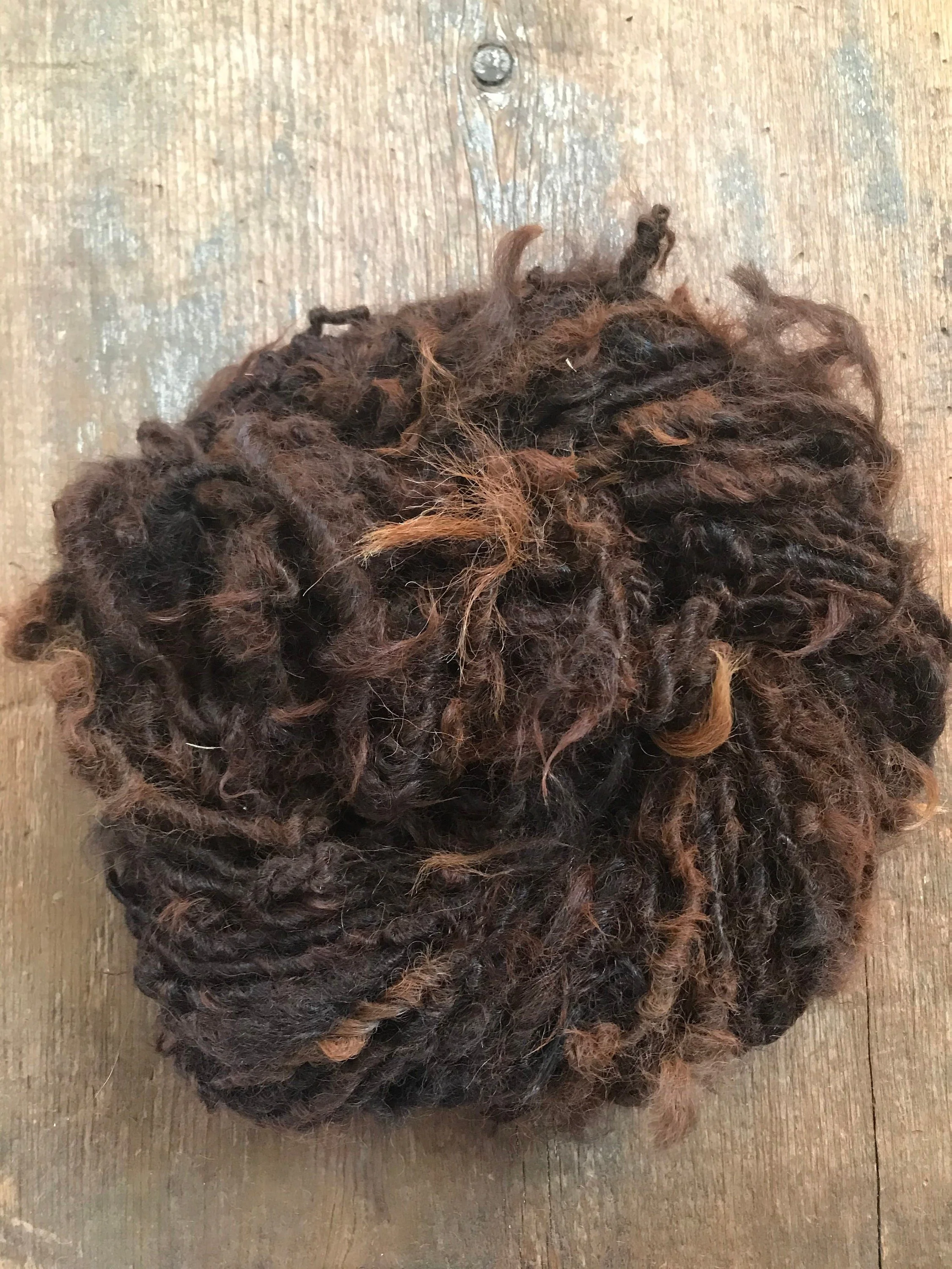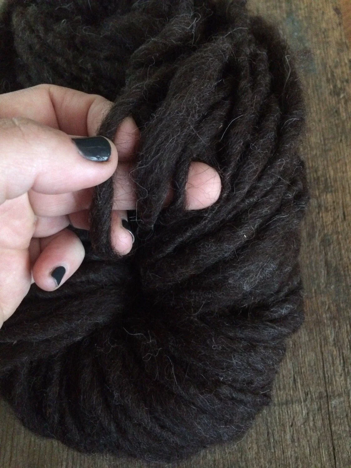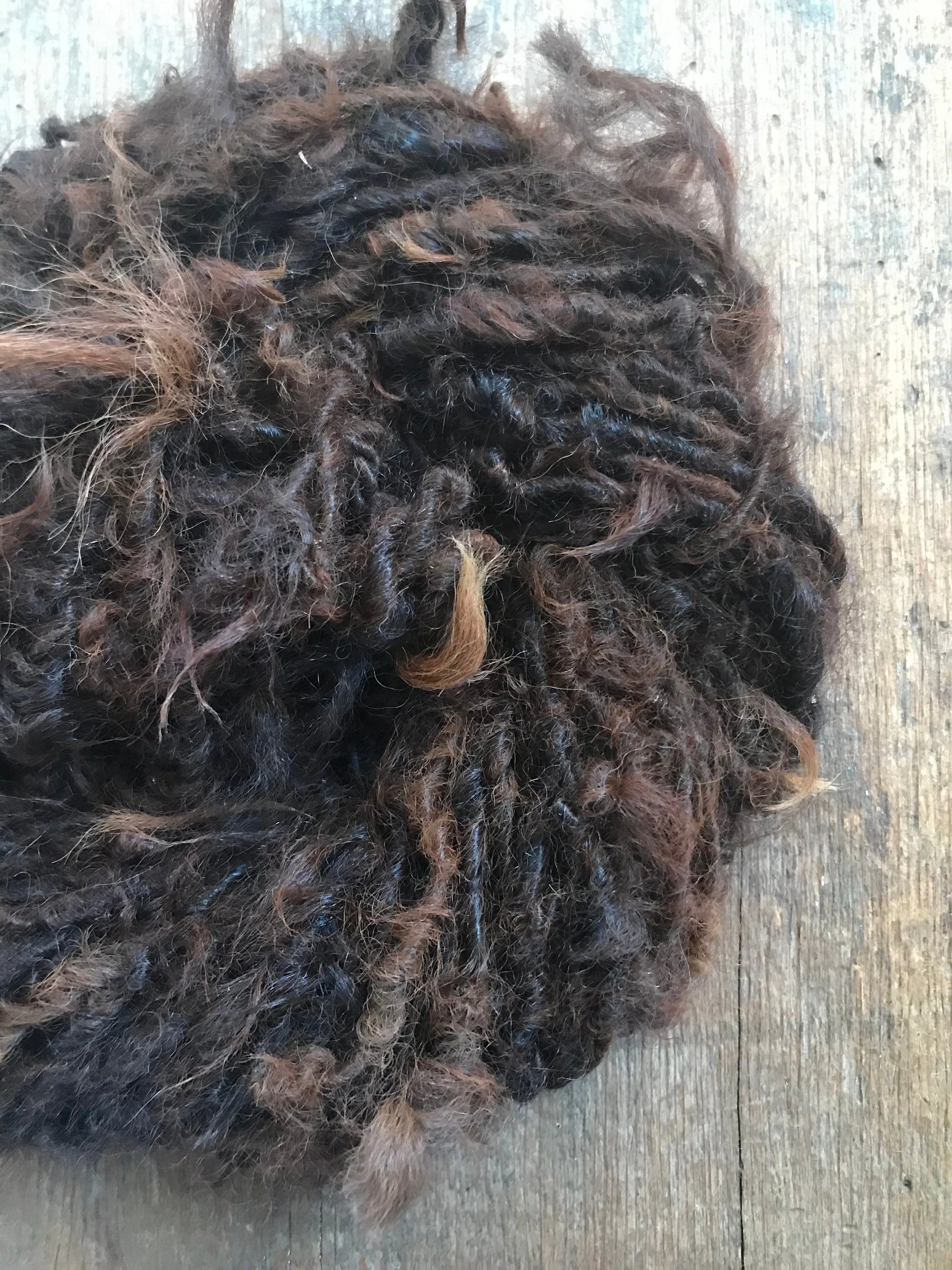 Natural Dark Brown Alpaca Handspun Yarn, Single Ply Bulky Fiber, "Luxor"