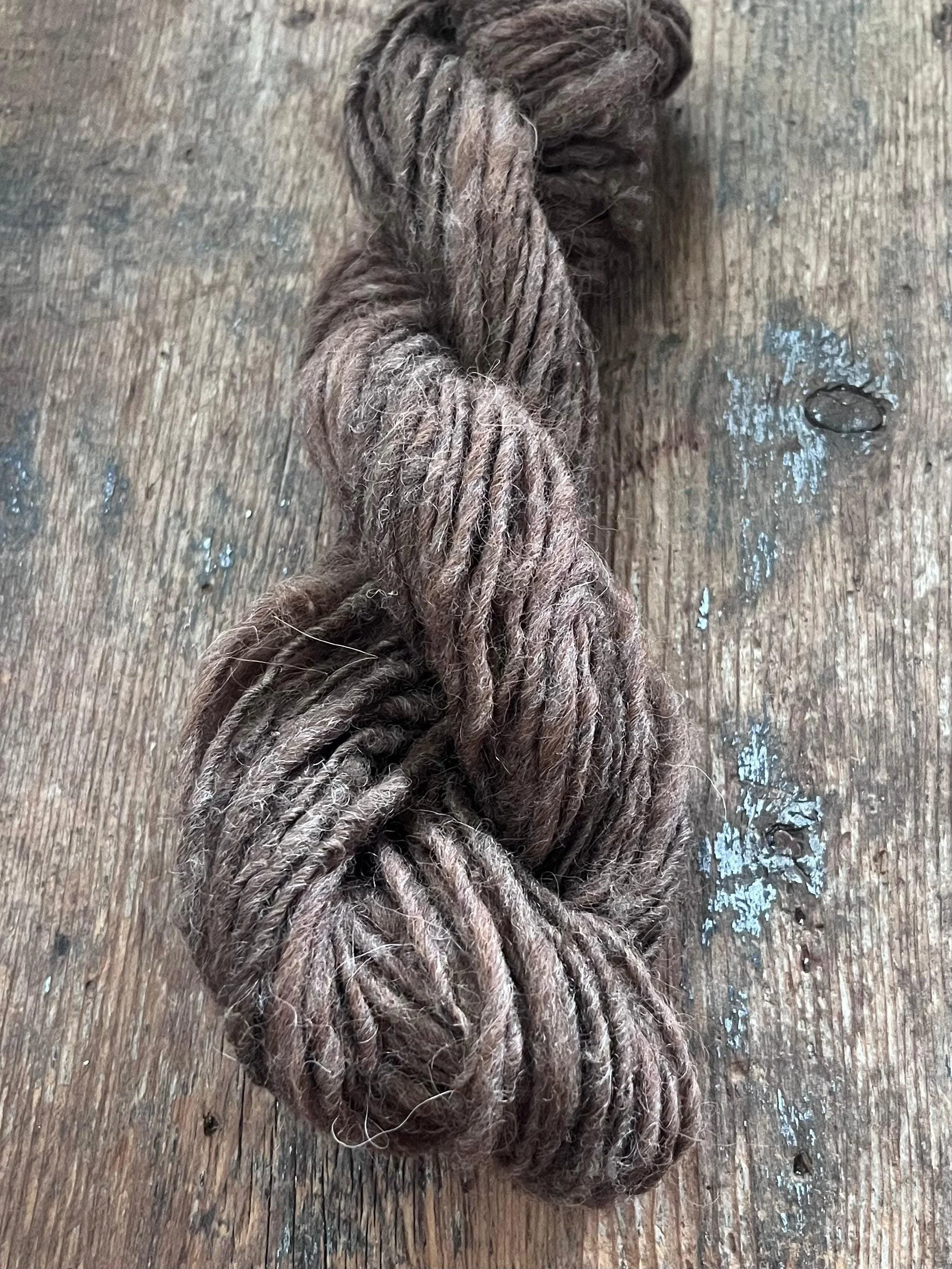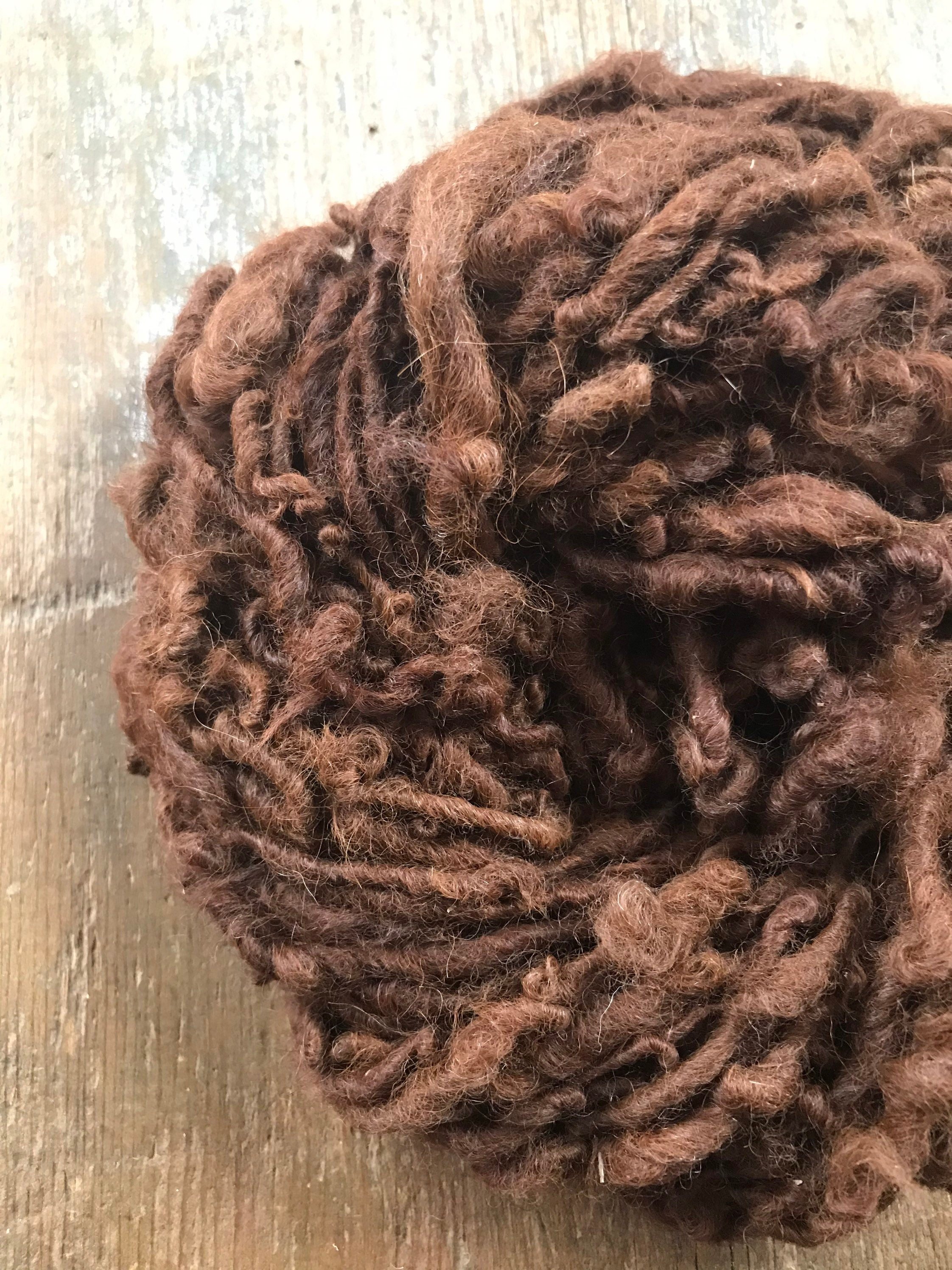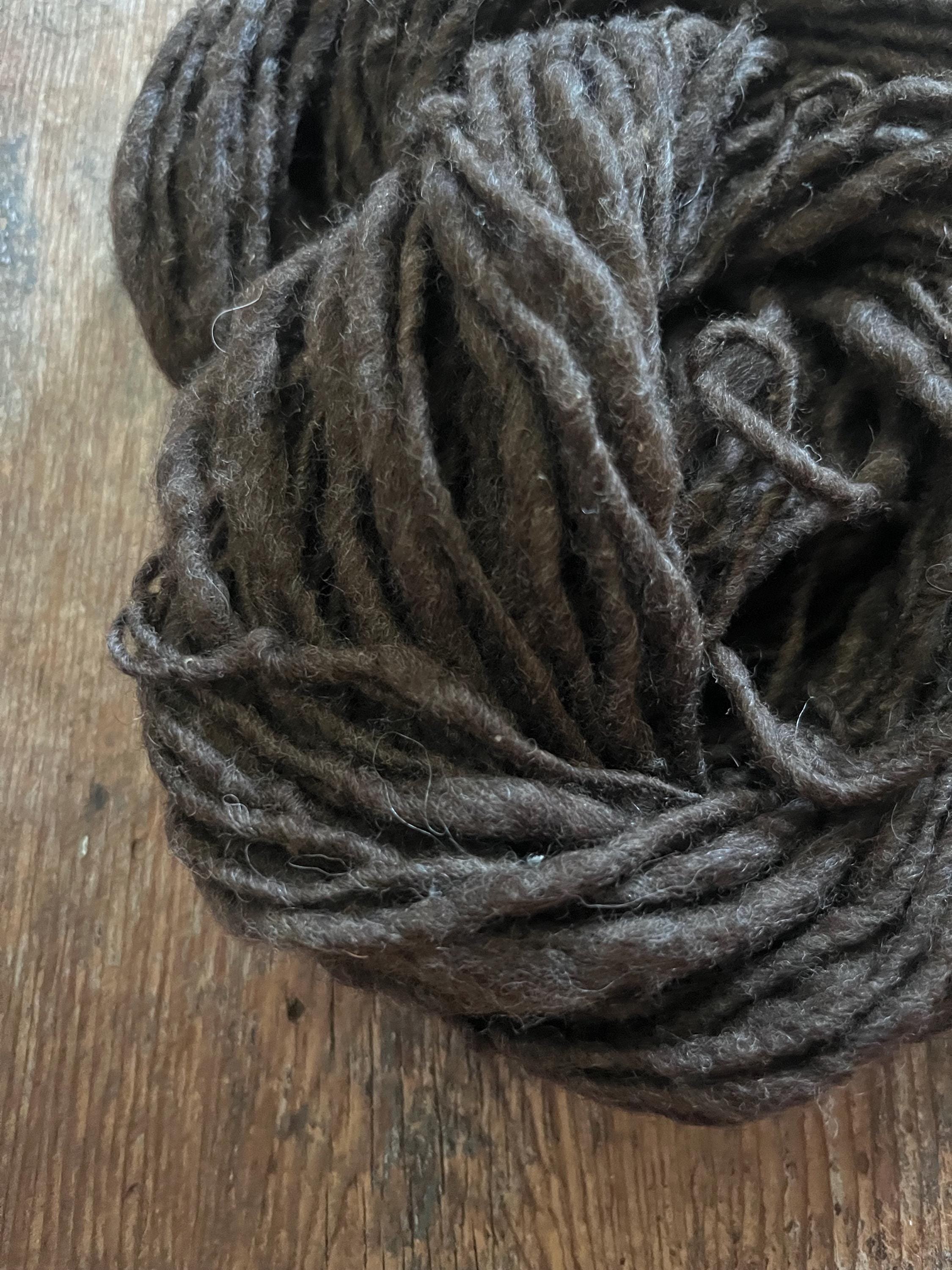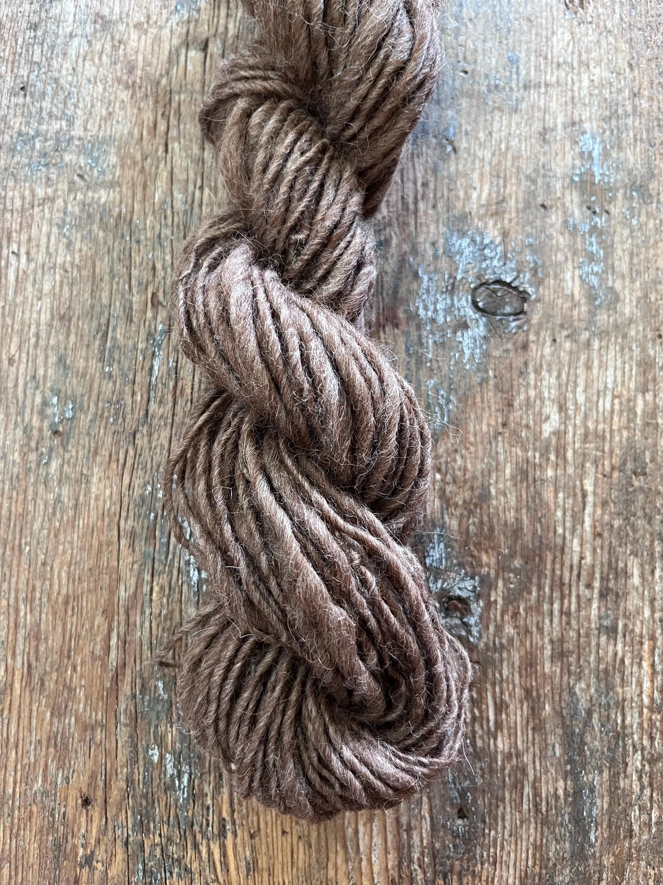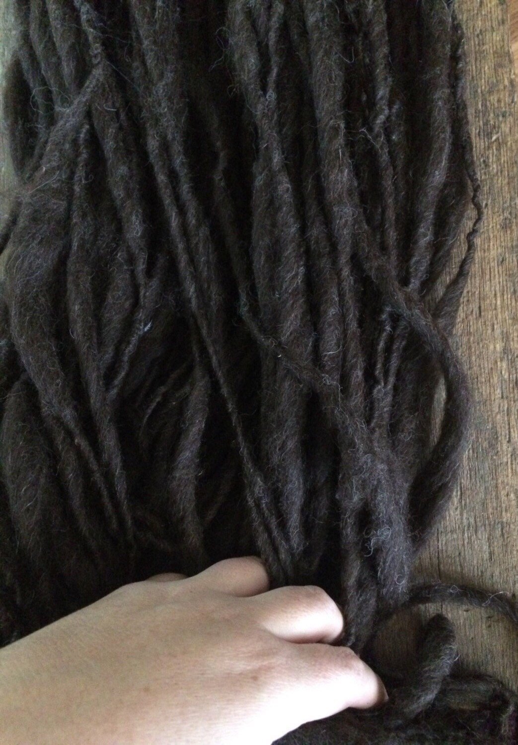 Natural Dark Brown Alpaca Handspun Yarn, Single Ply Bulky Fiber, "Luxor"