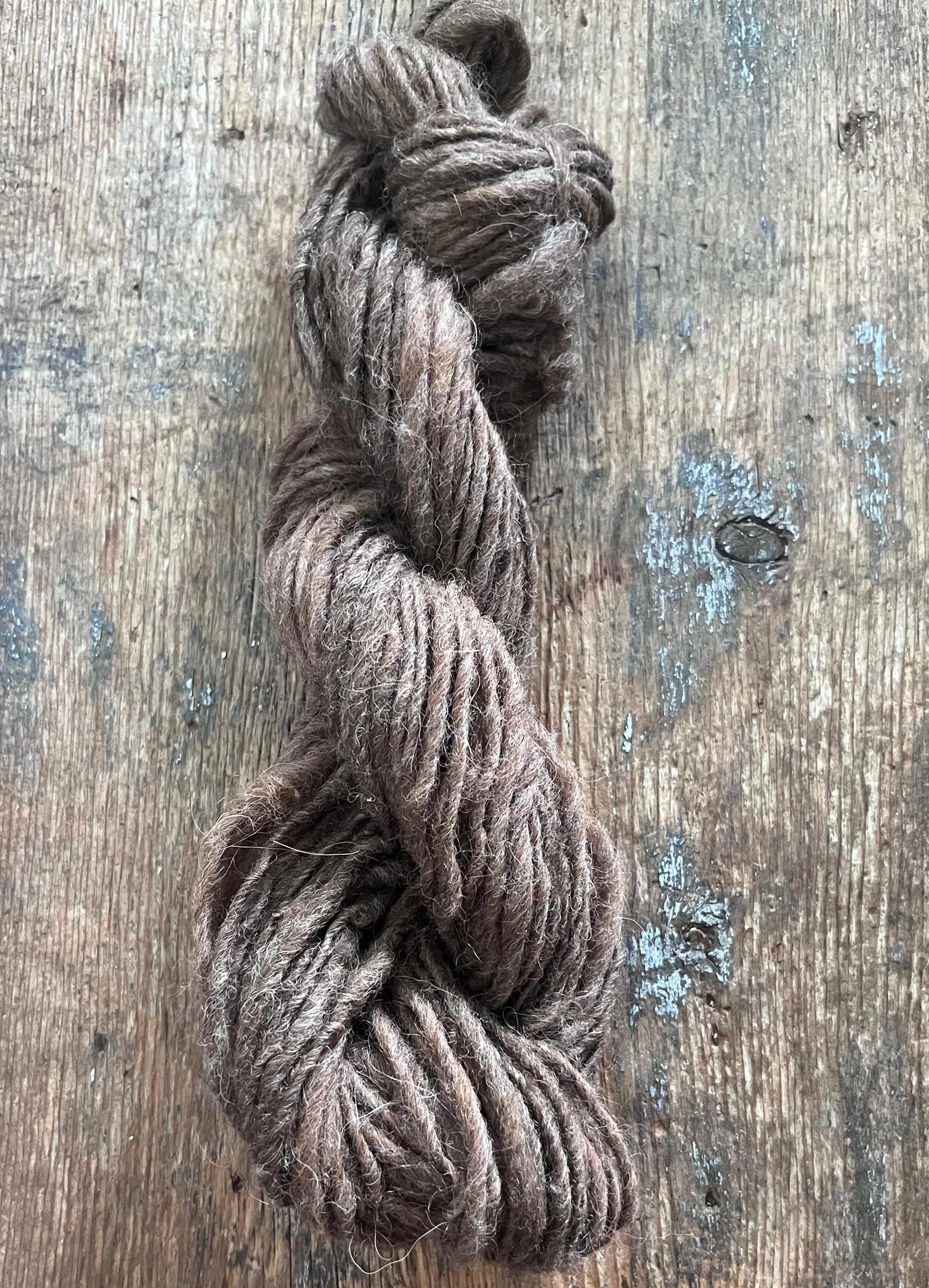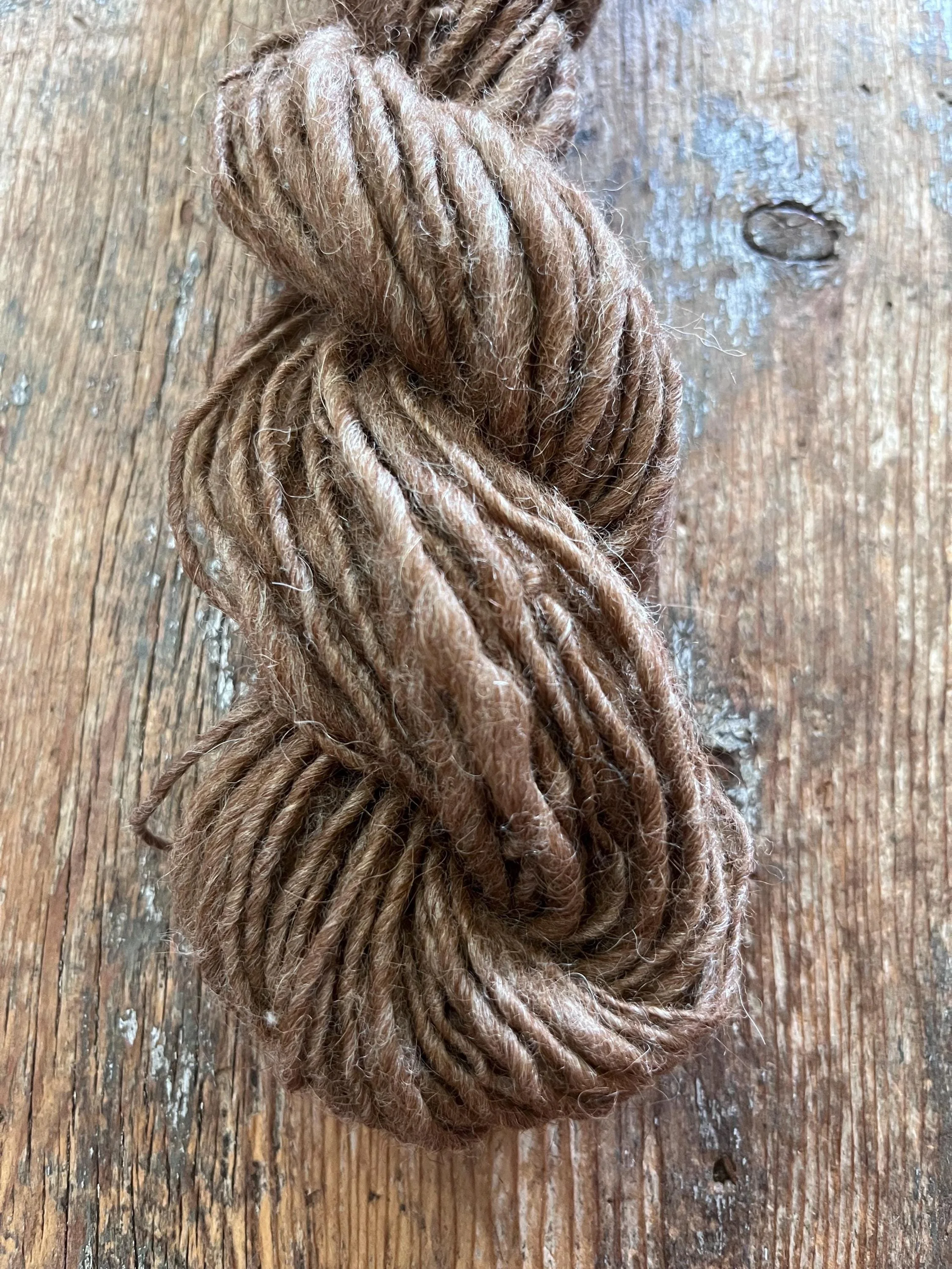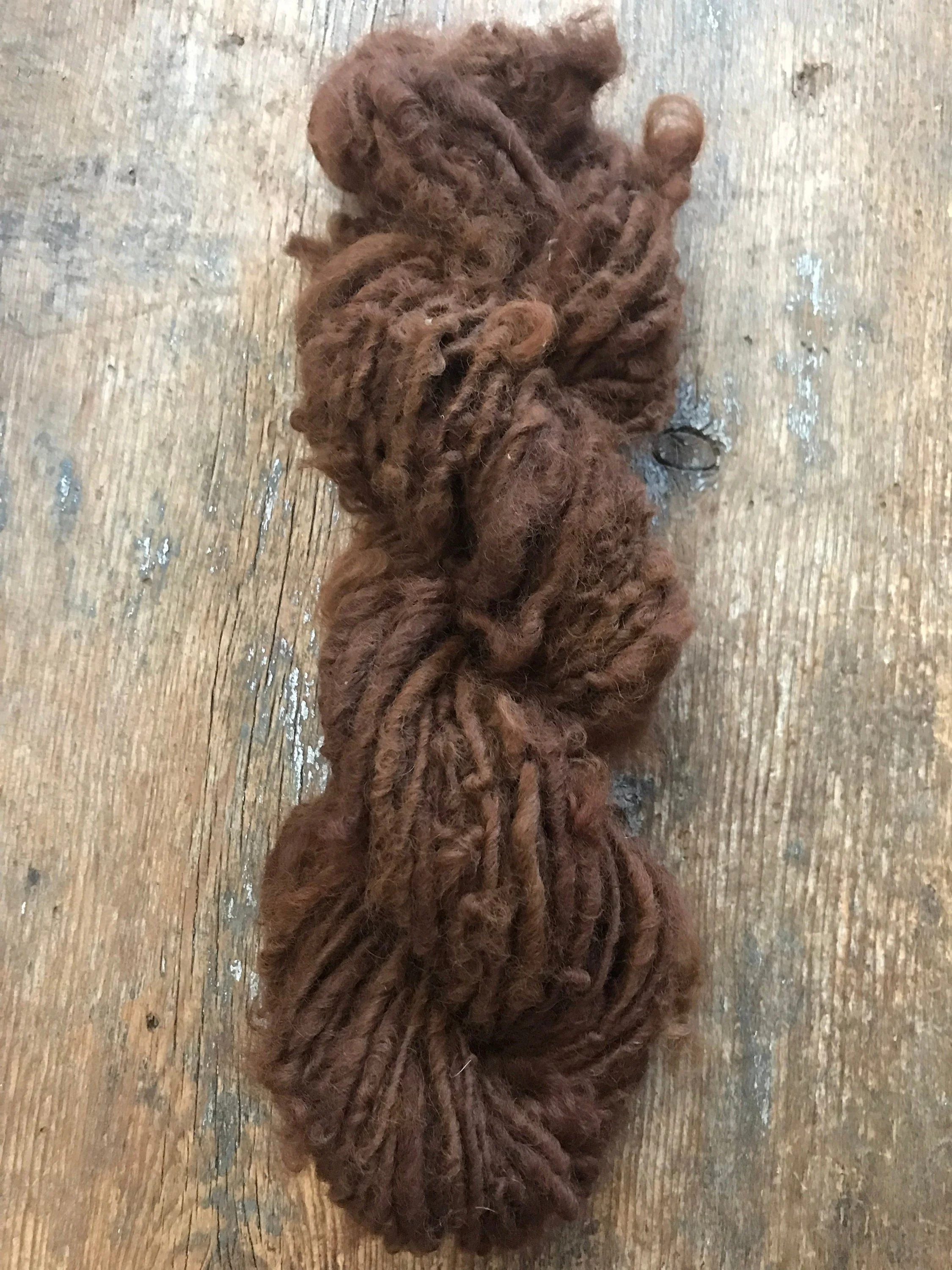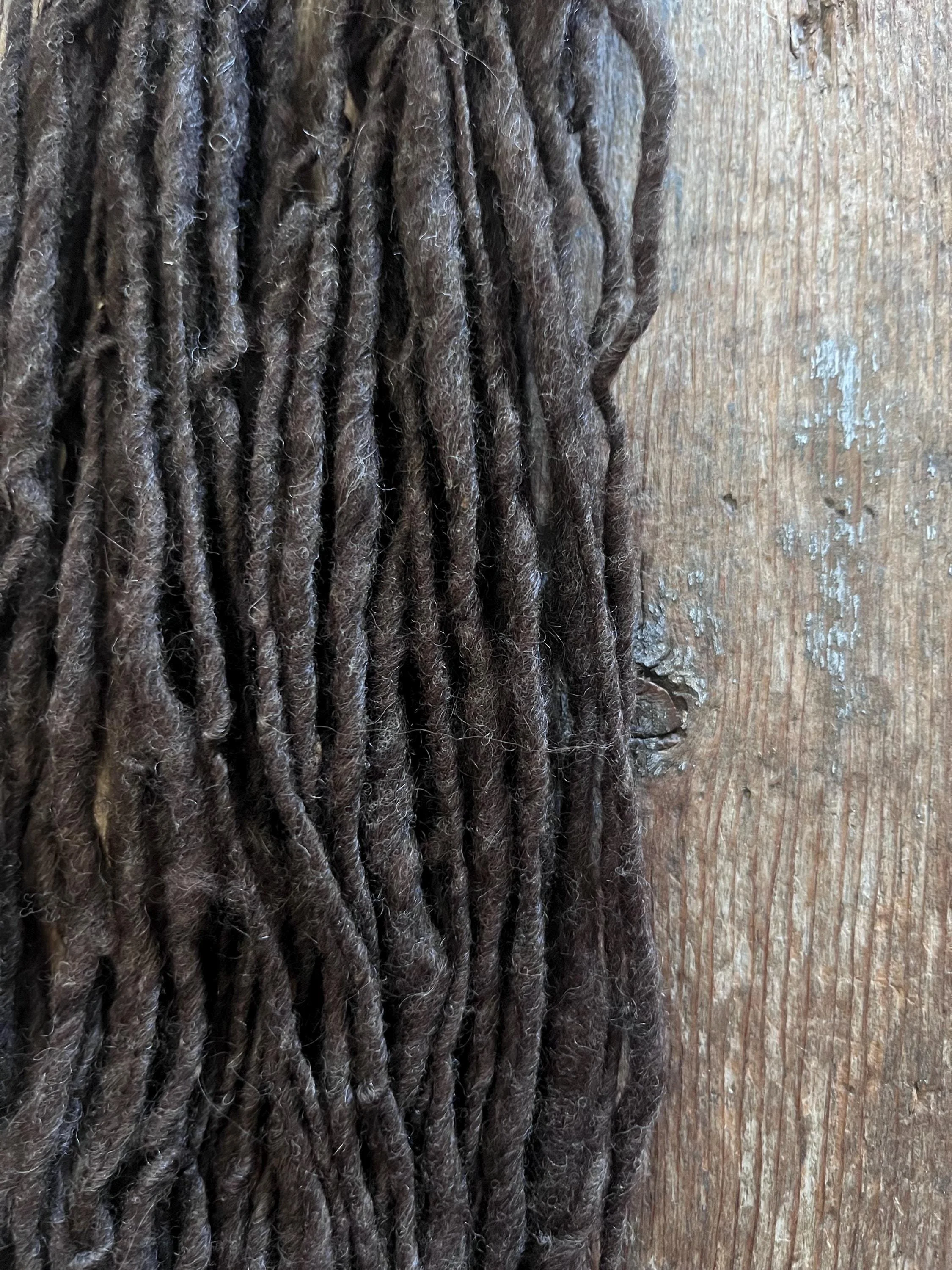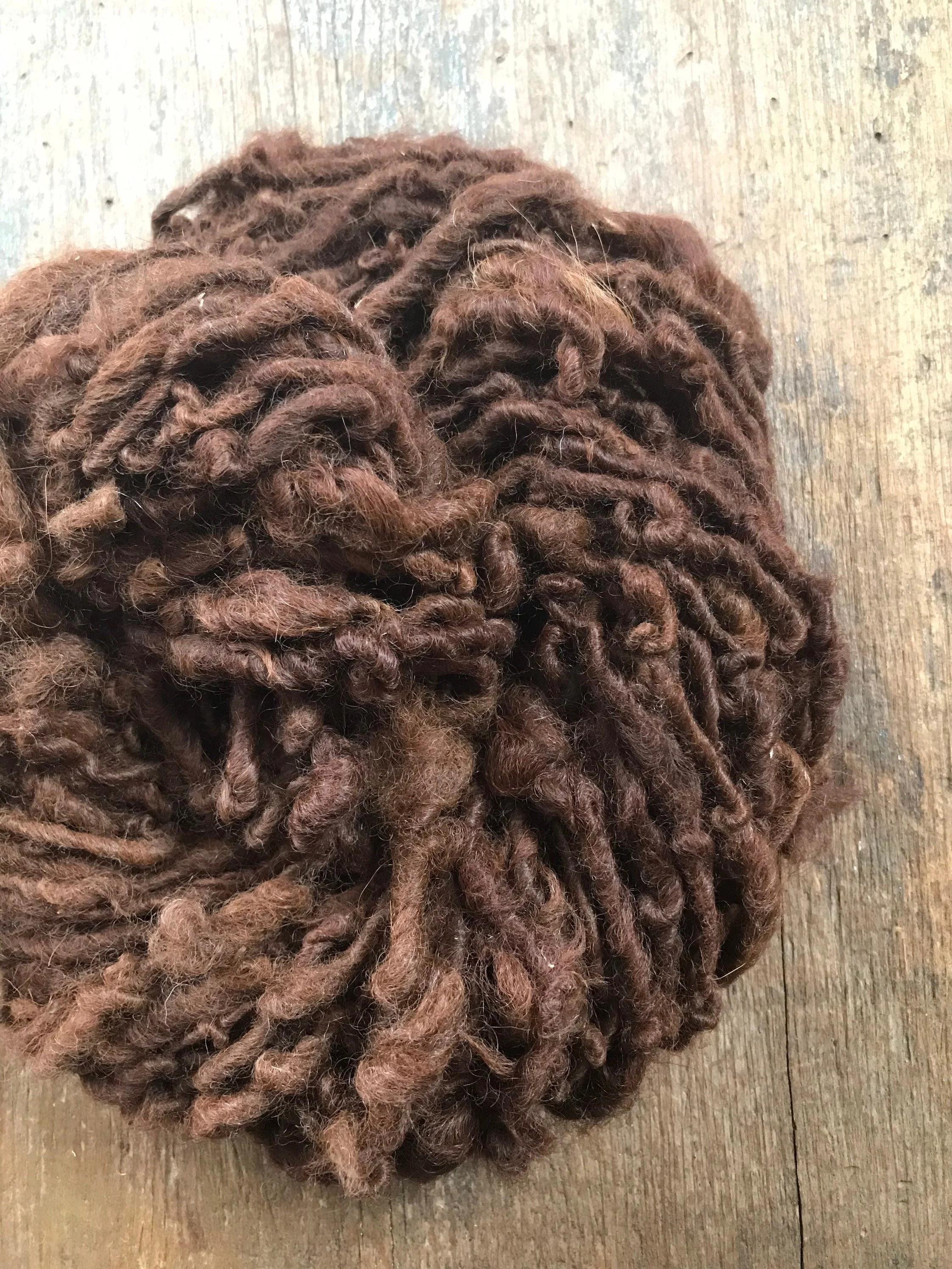 Natural Dark Brown Alpaca Handspun Yarn, Single Ply Bulky Fiber, "Luxor"