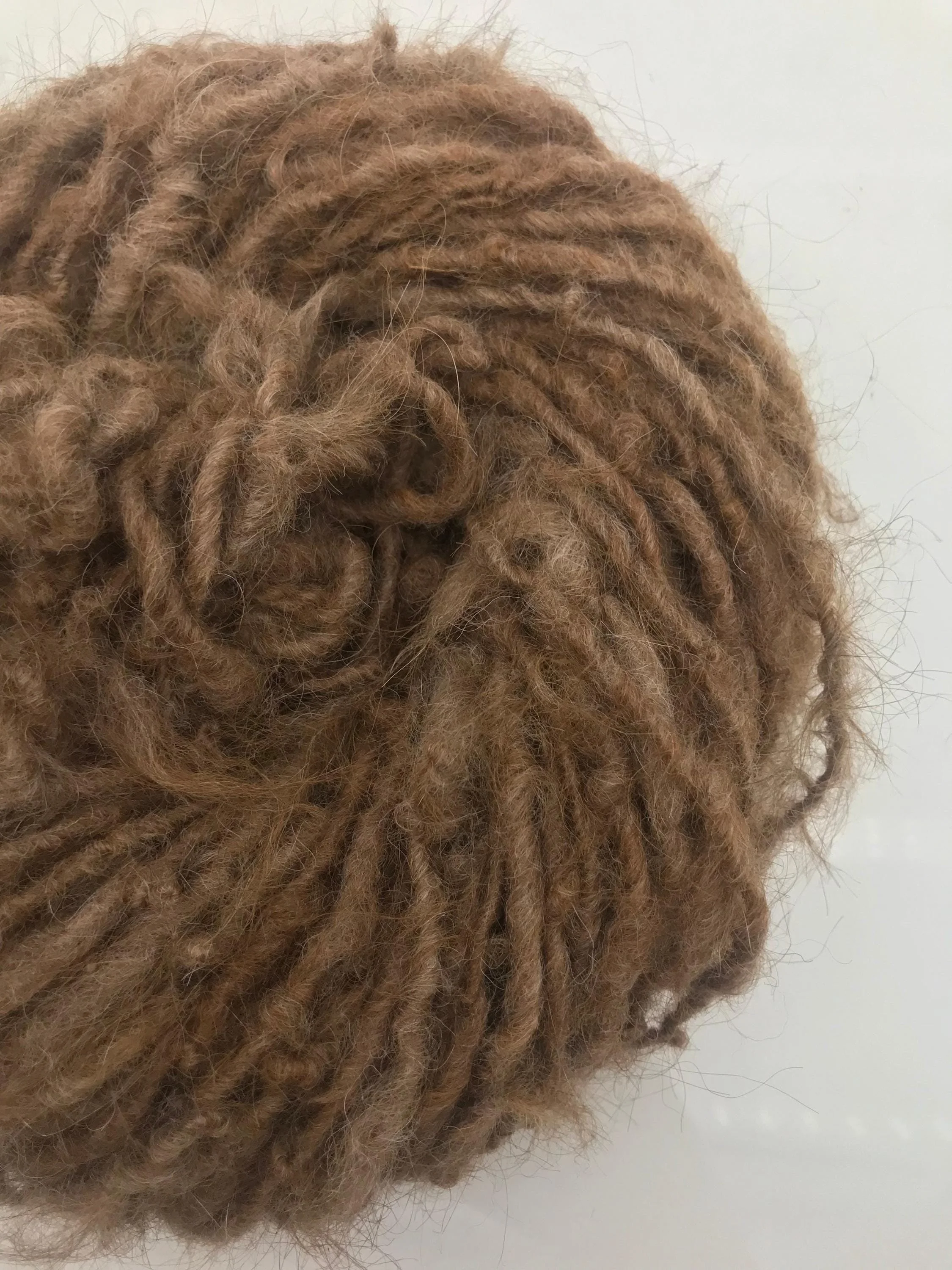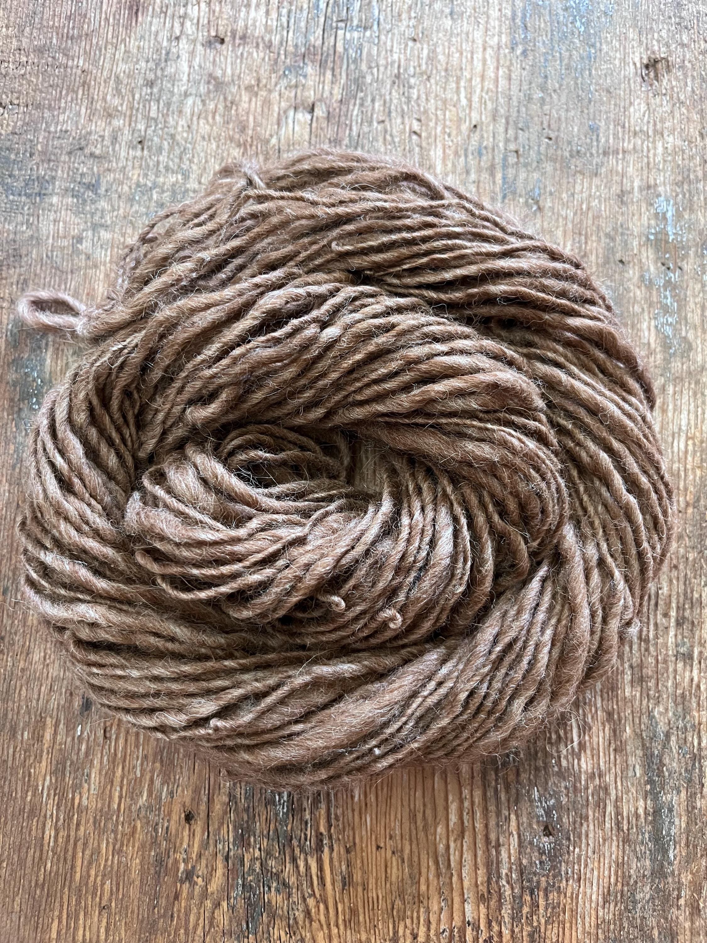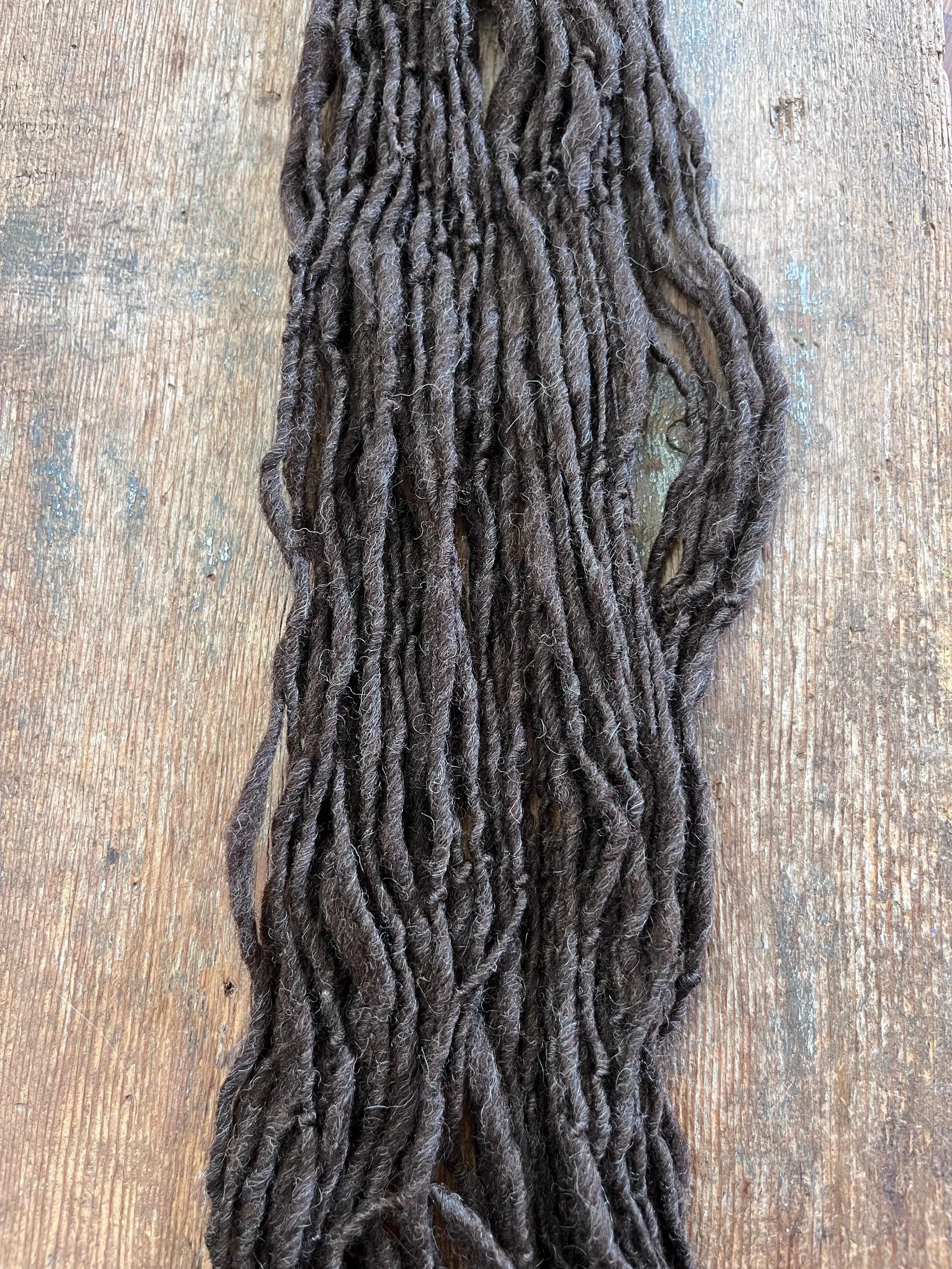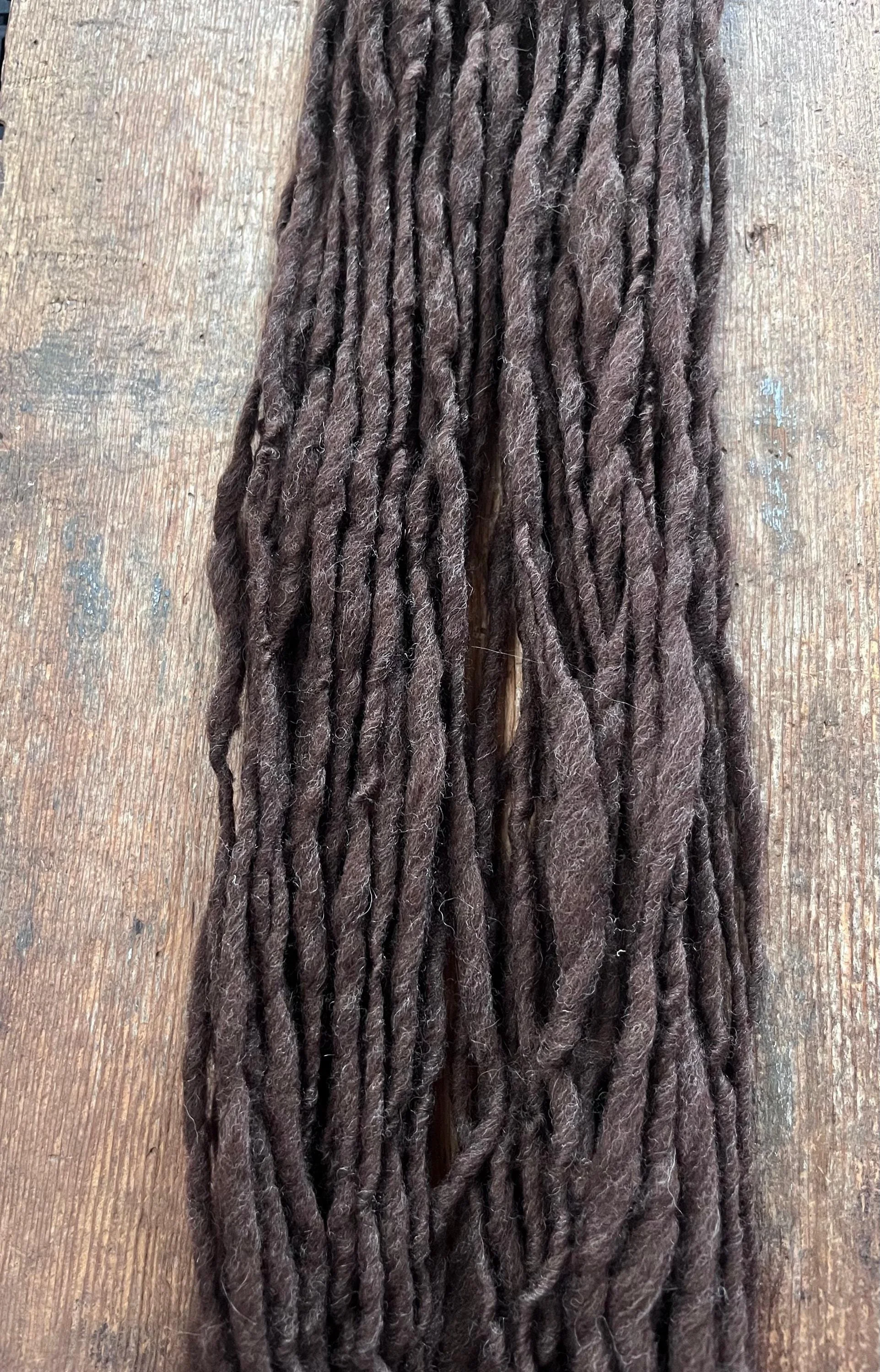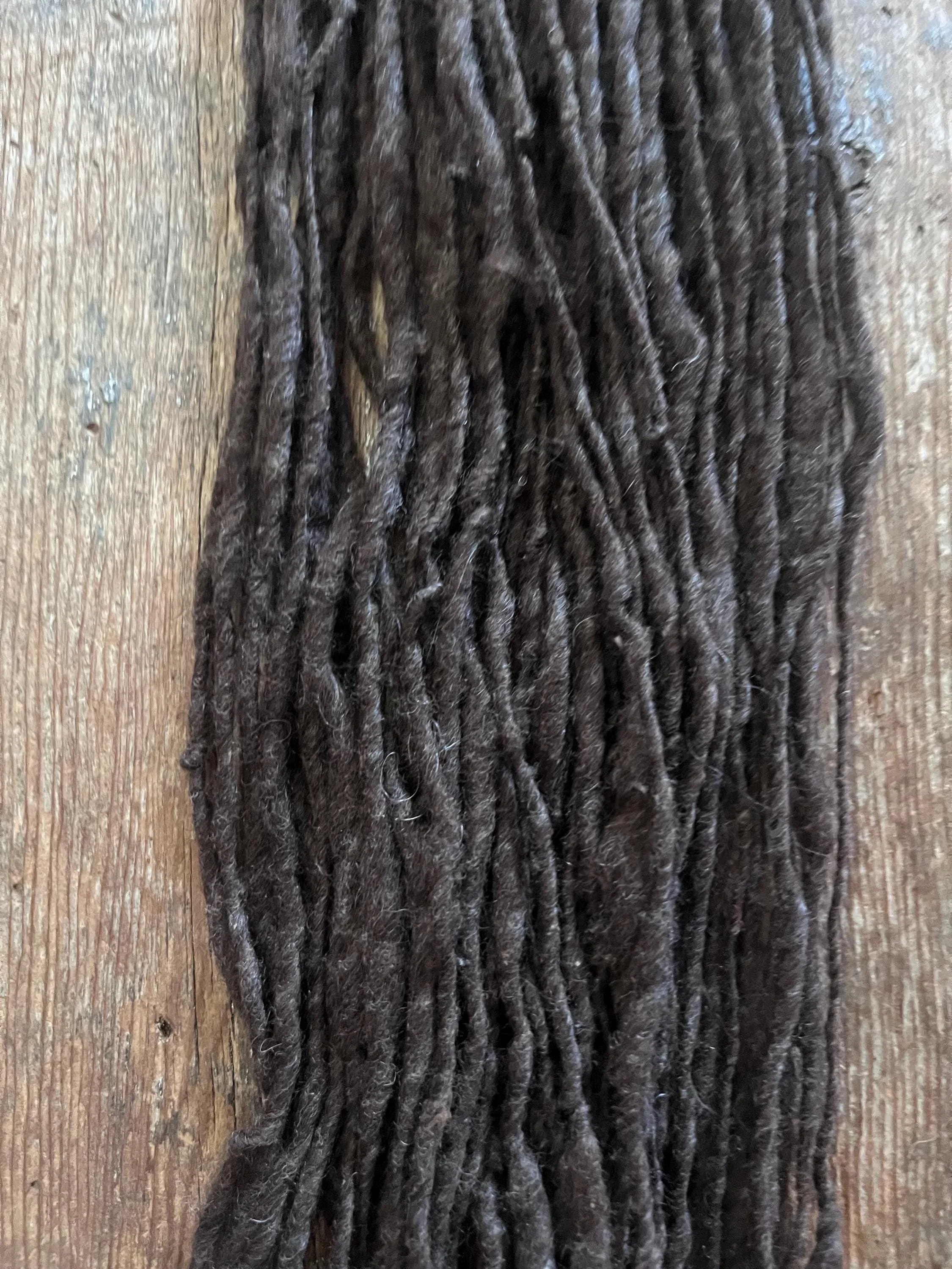 Natural Dark Brown Alpaca Handspun Yarn, Single Ply Bulky Fiber, "Luxor"