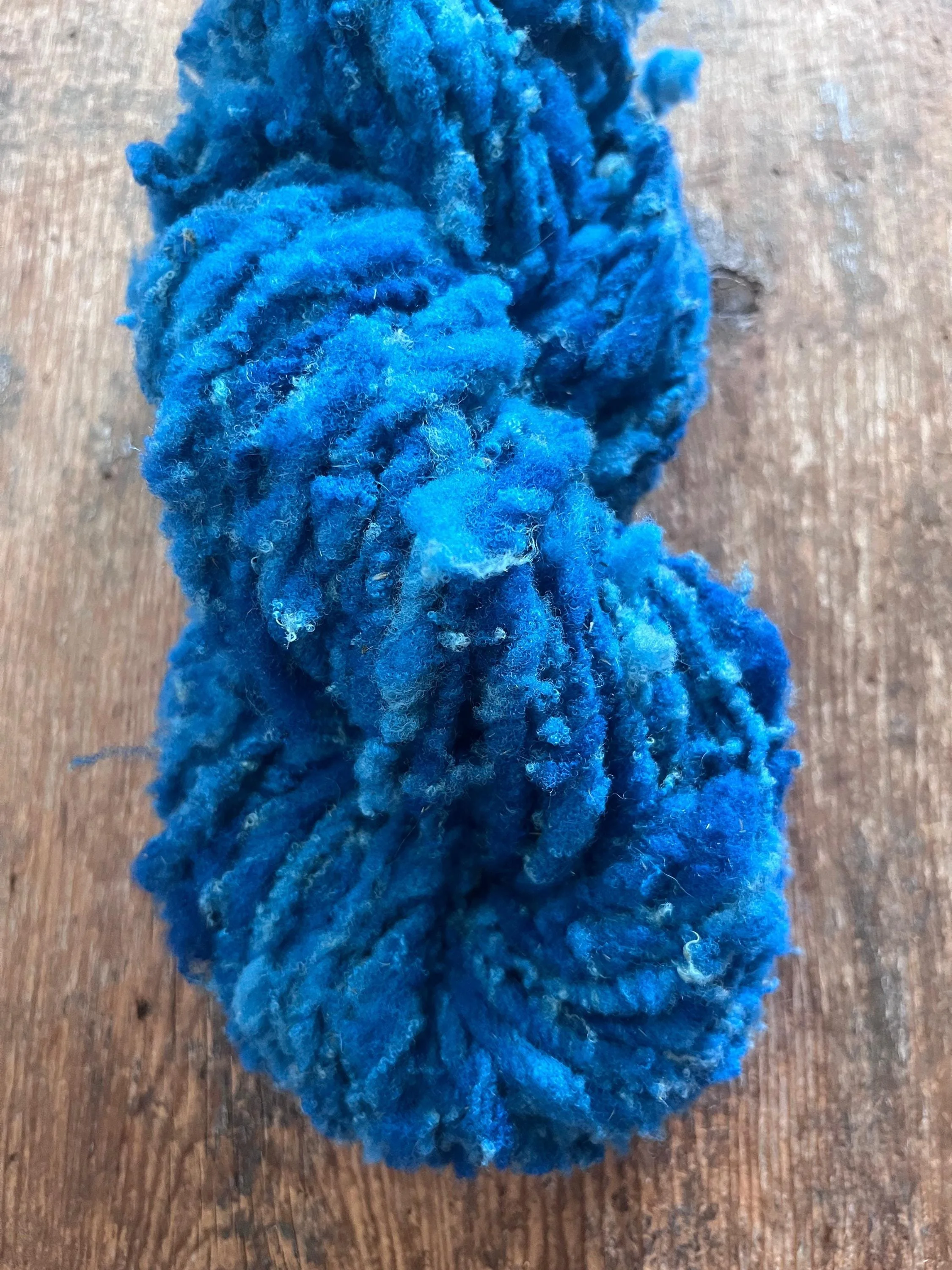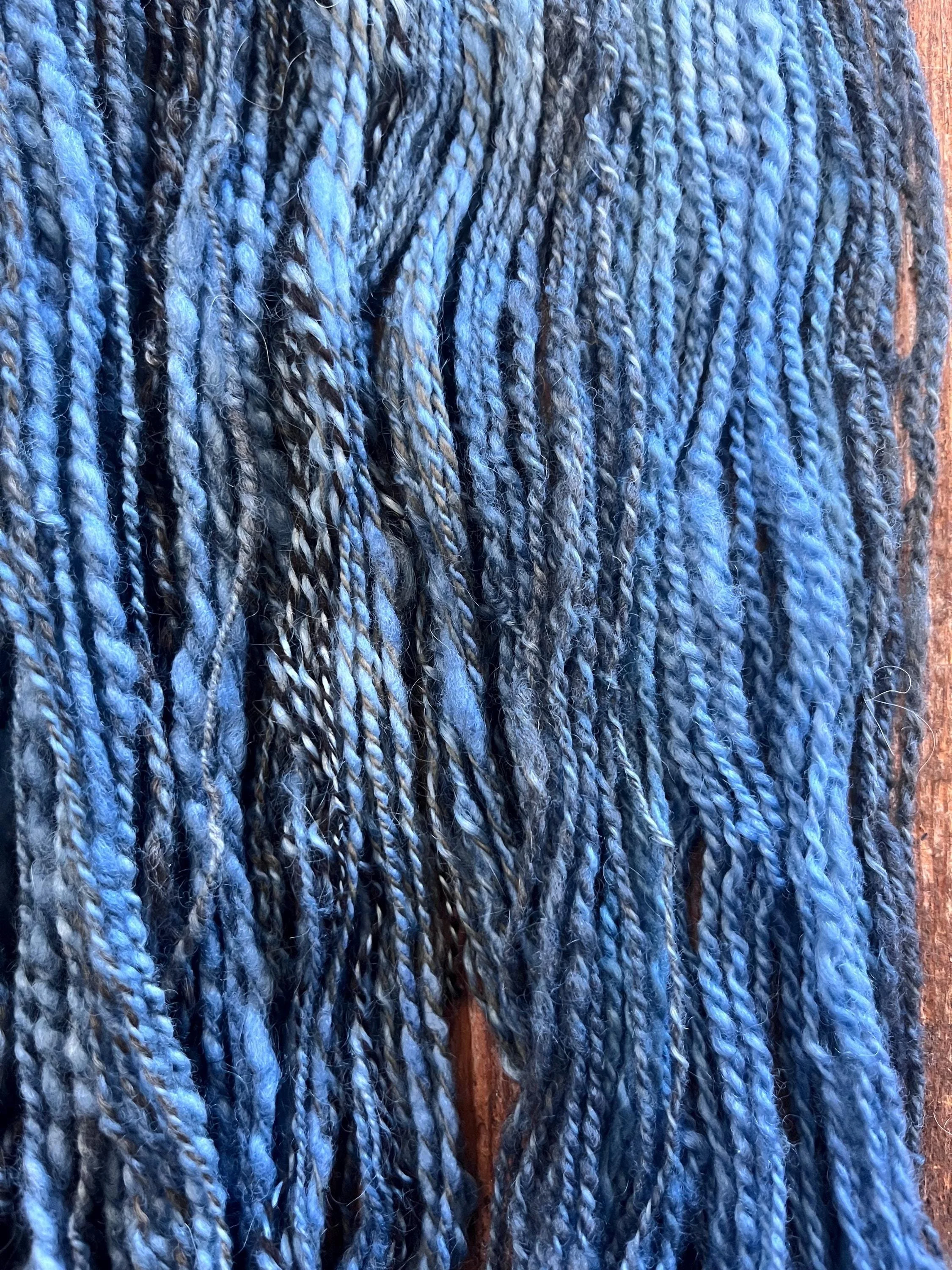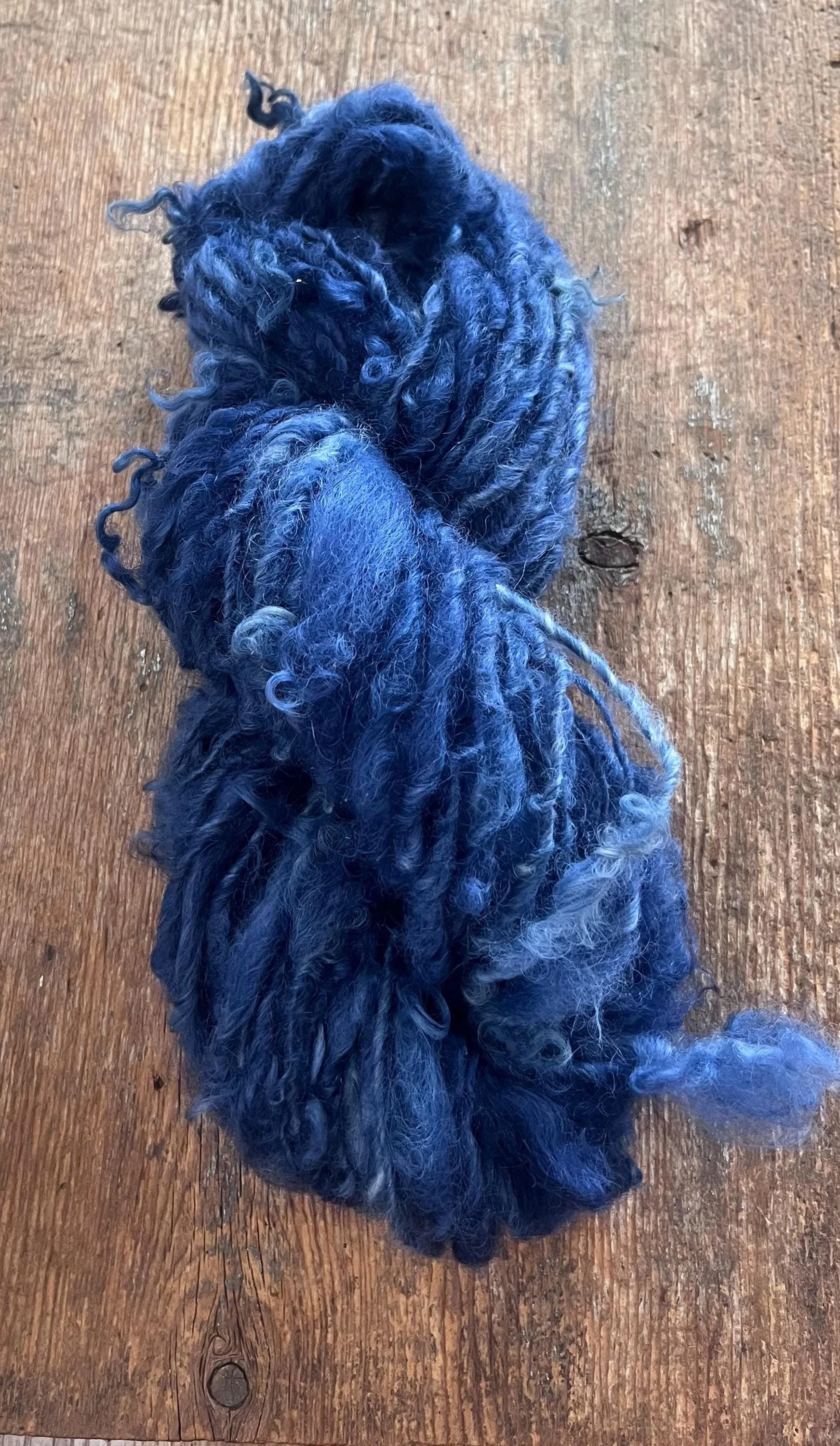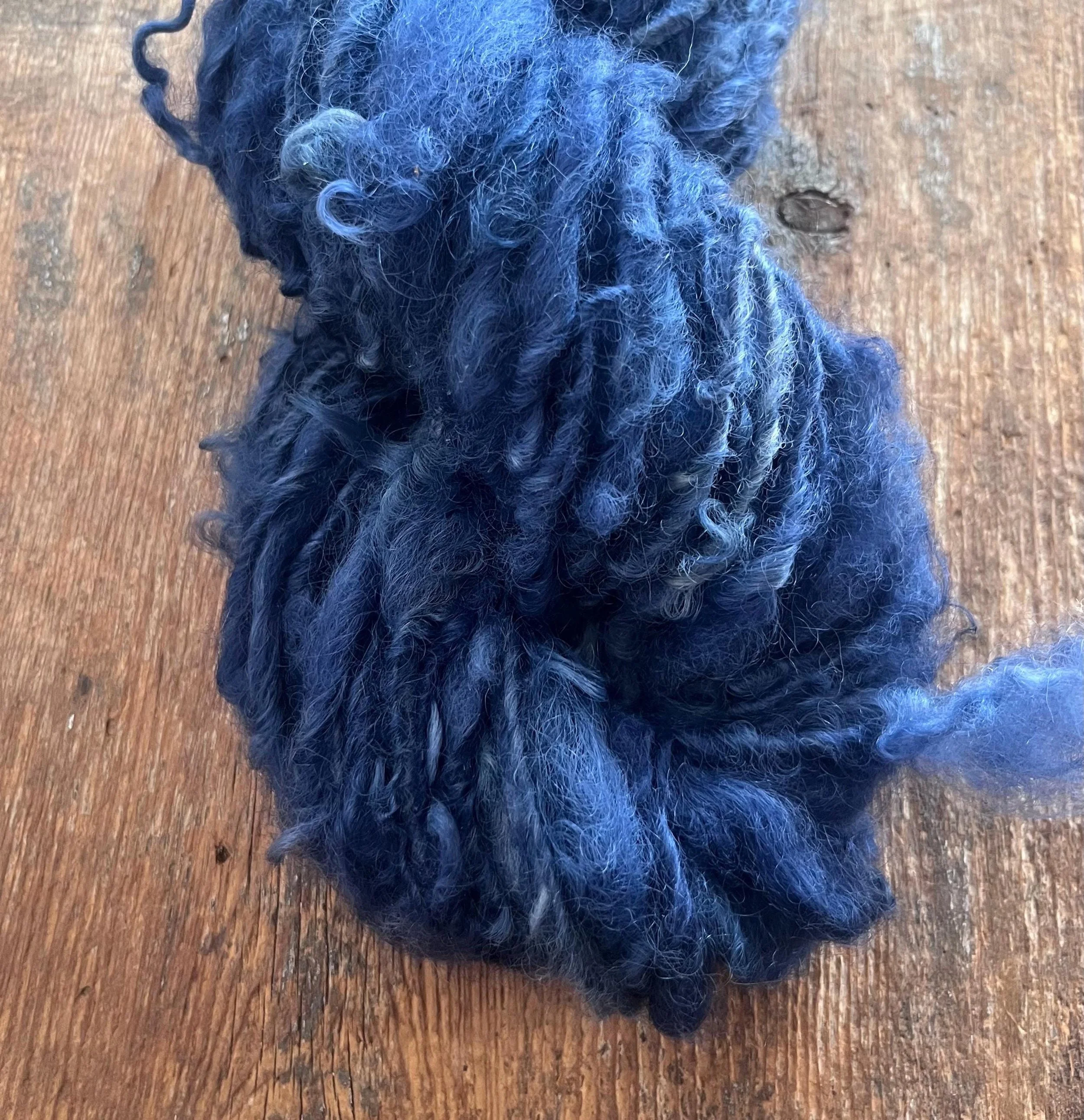 Indigo dyed blue two ply wool handspun wool/alpaca yarn, 50 yard skeins