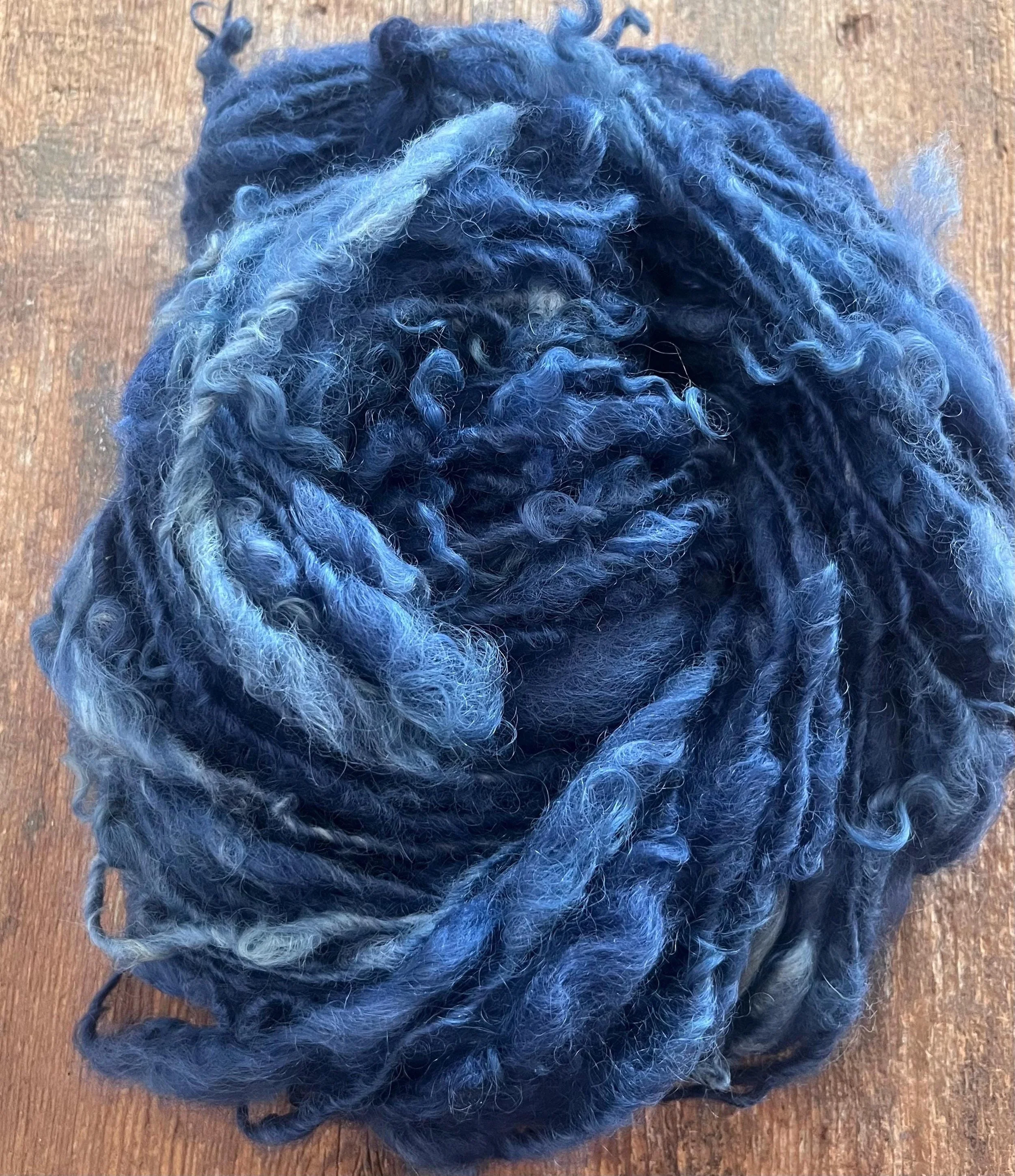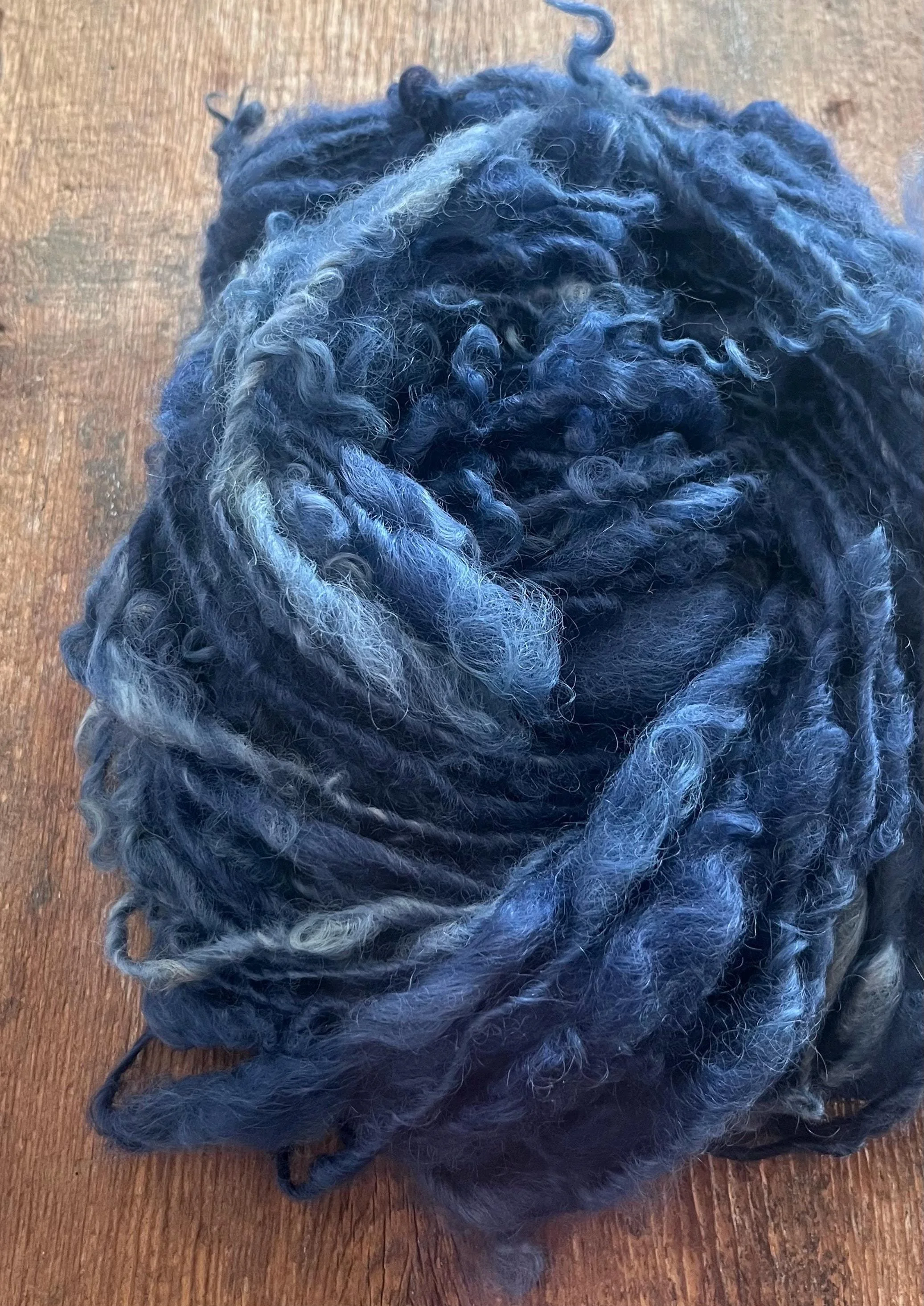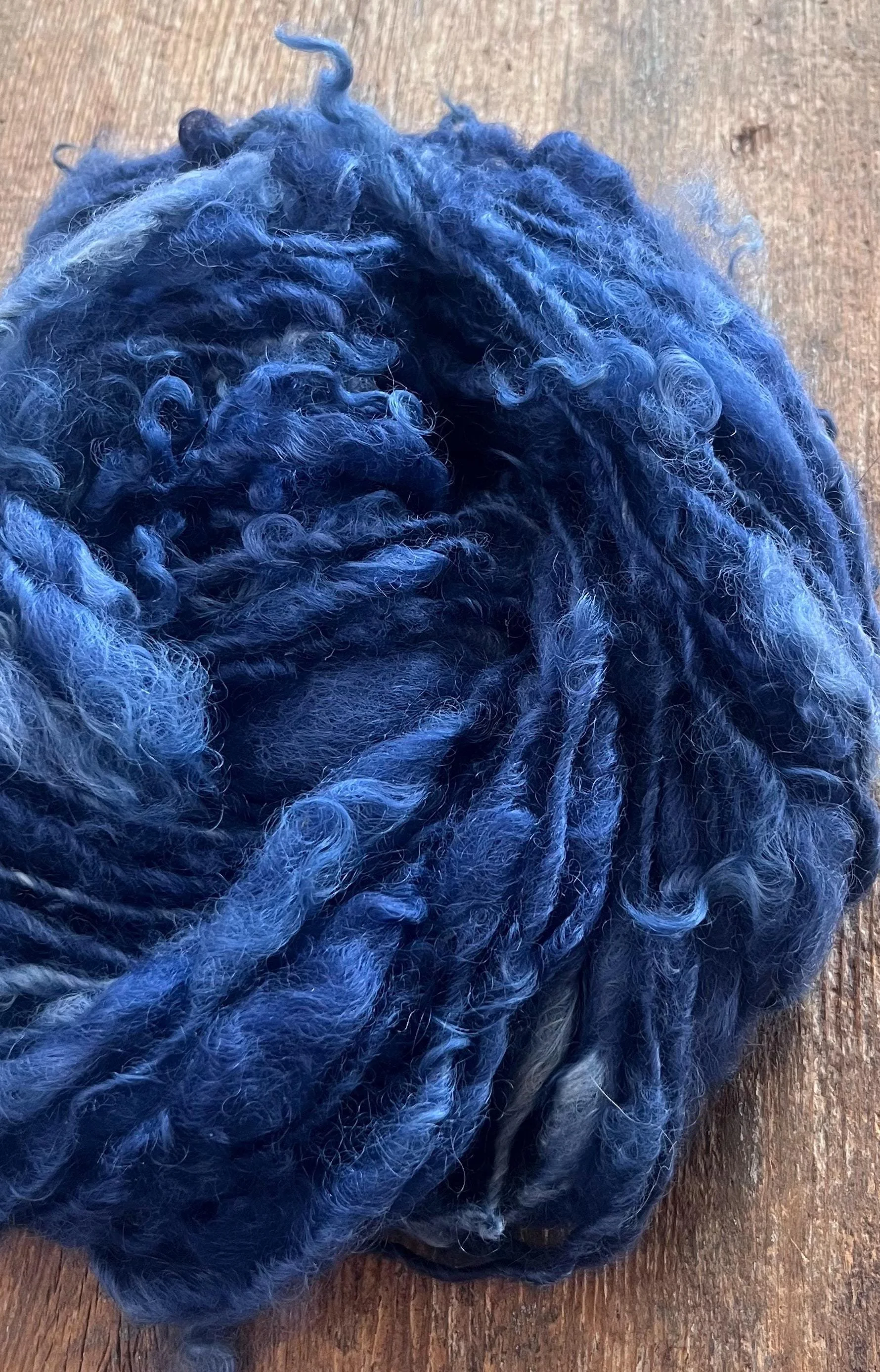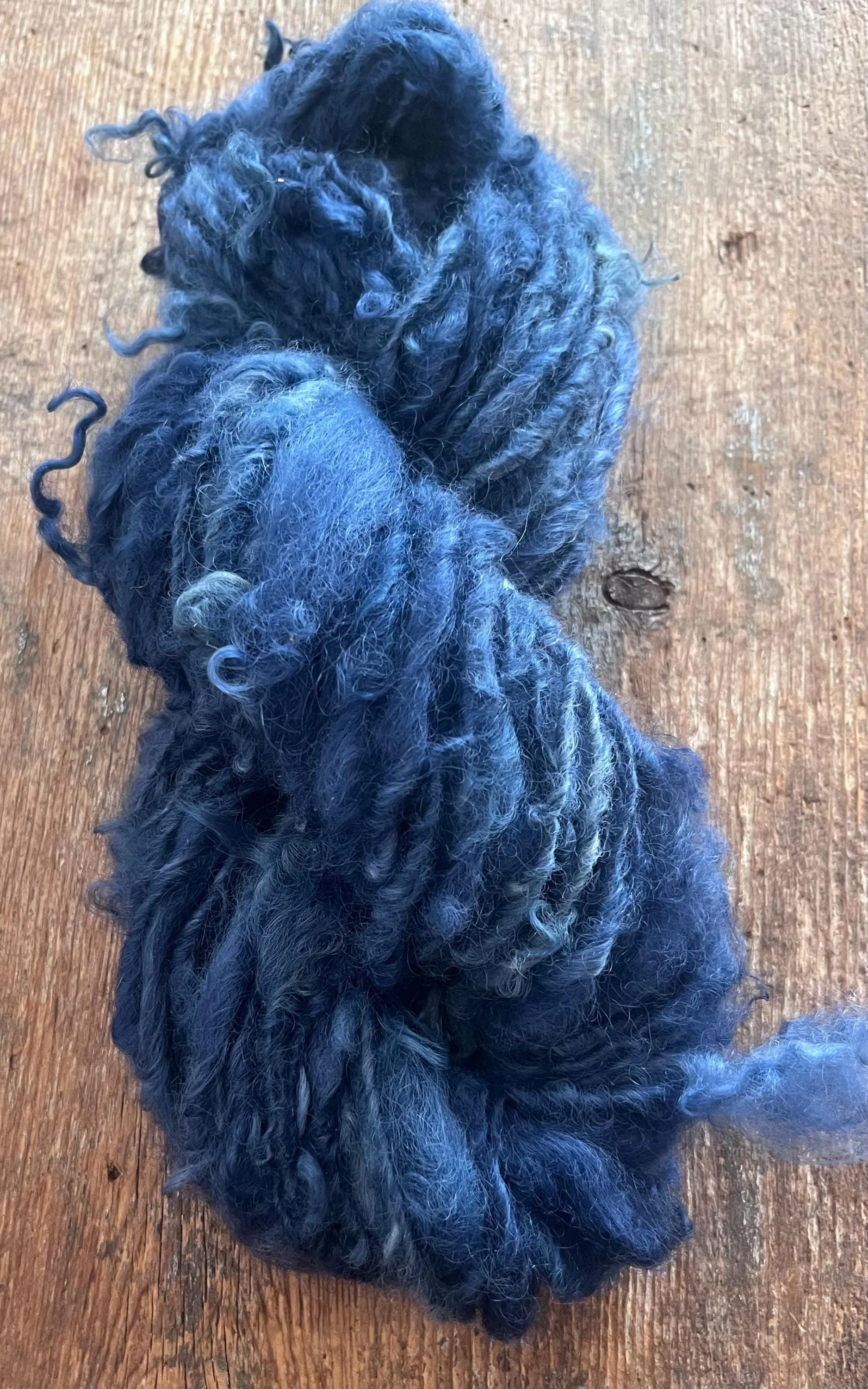 Indigo dyed blue two ply wool handspun wool/alpaca yarn, 50 yard skeins