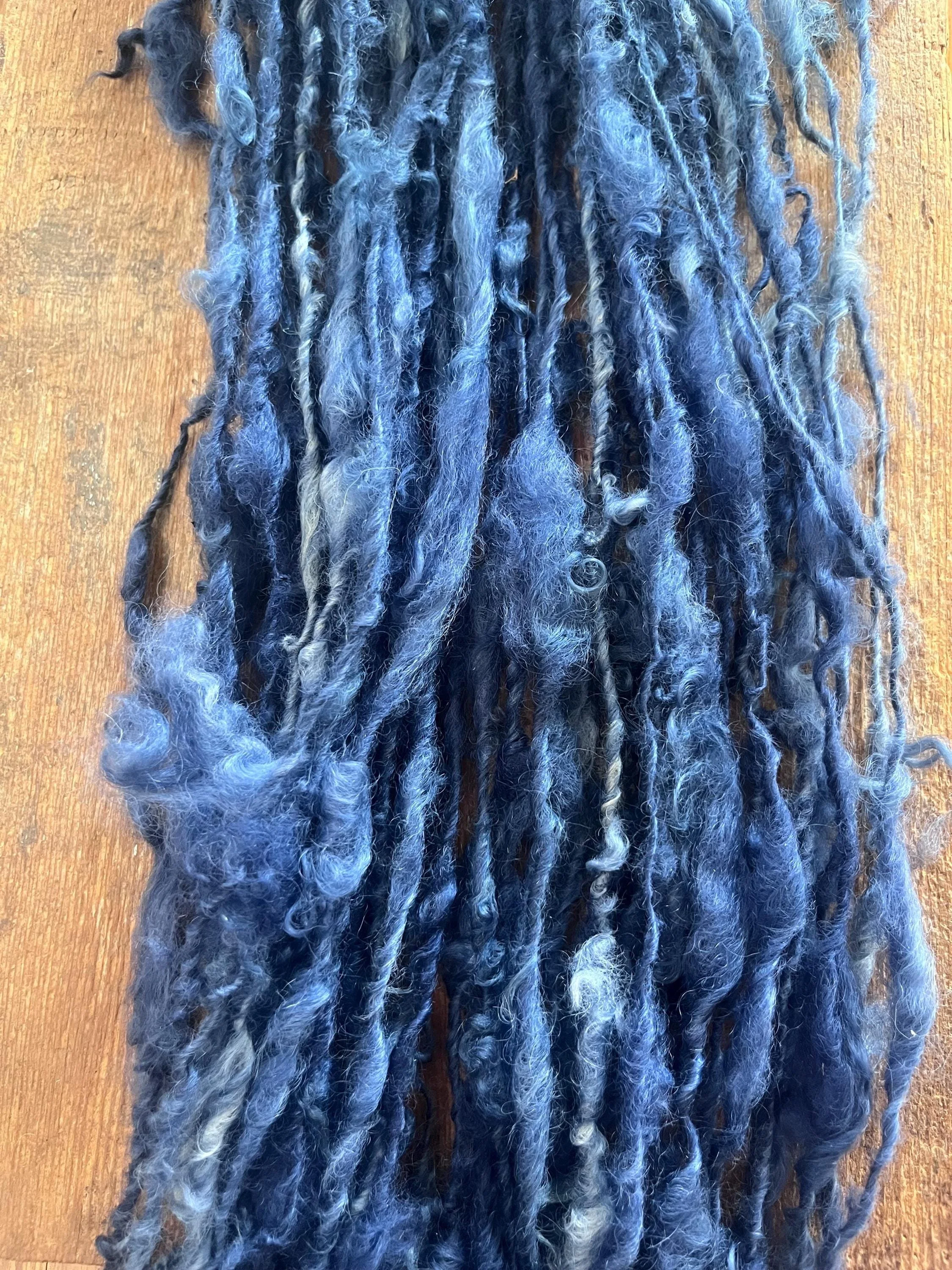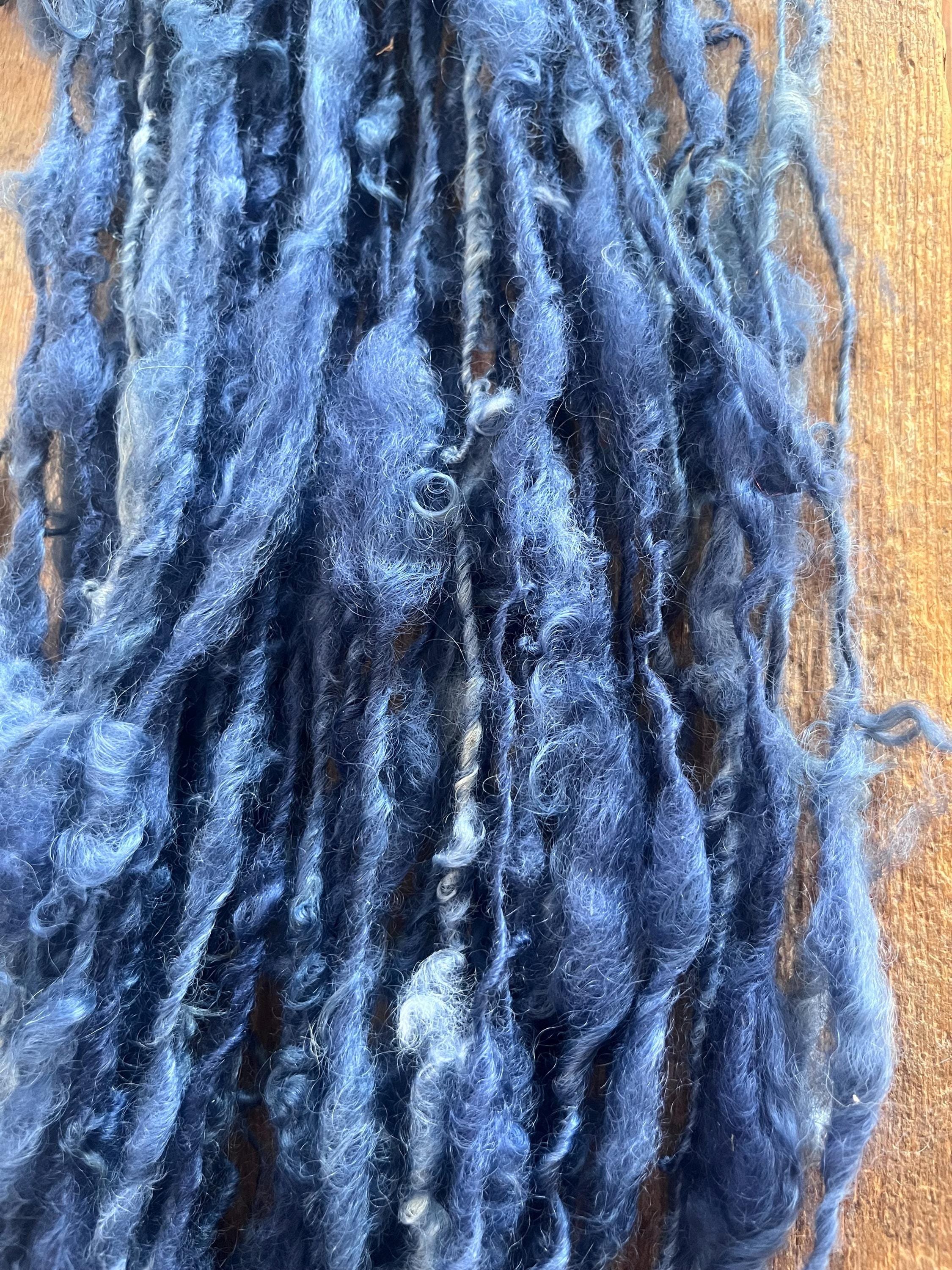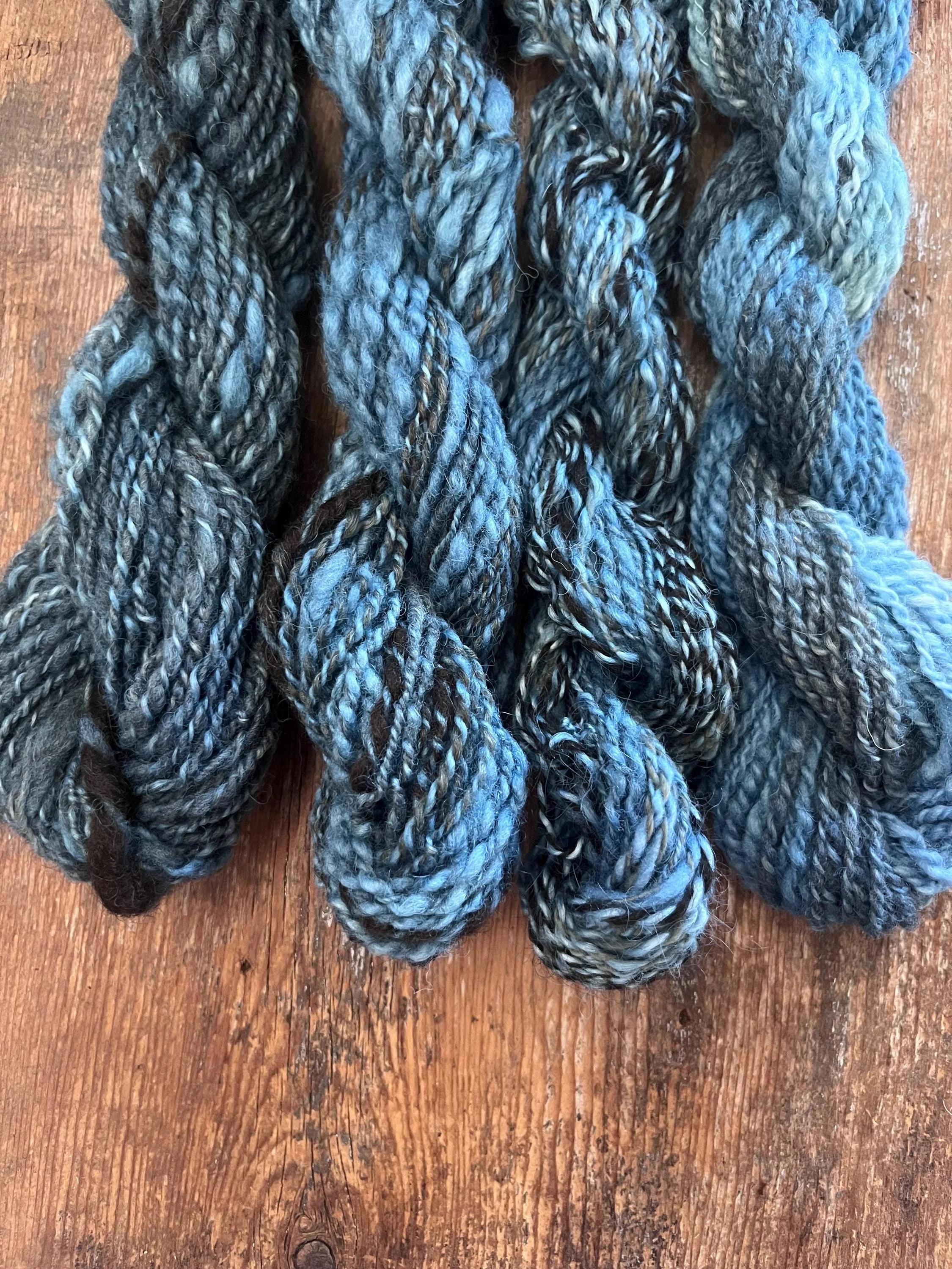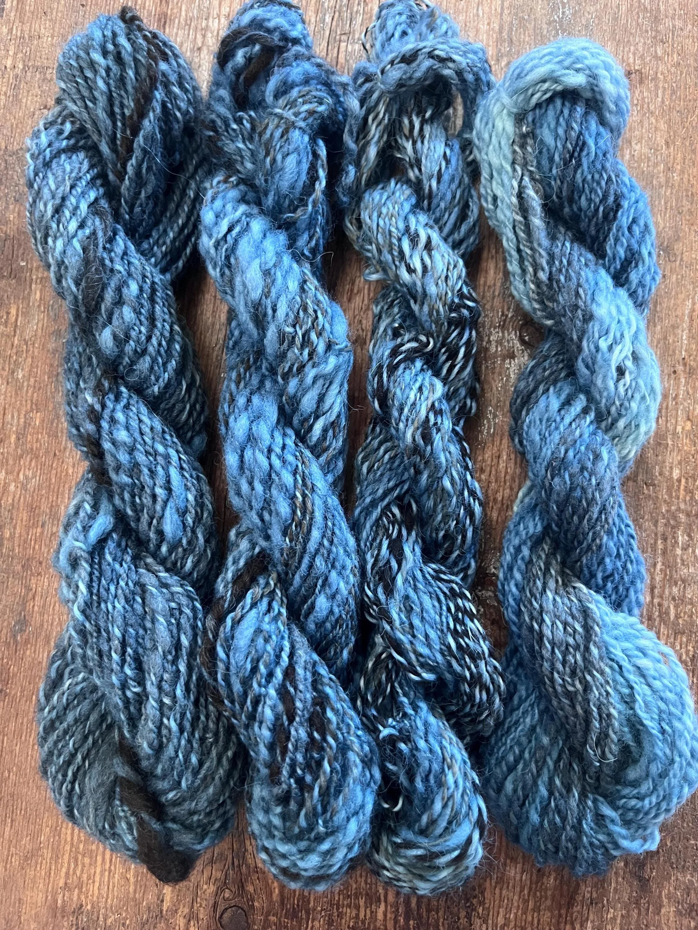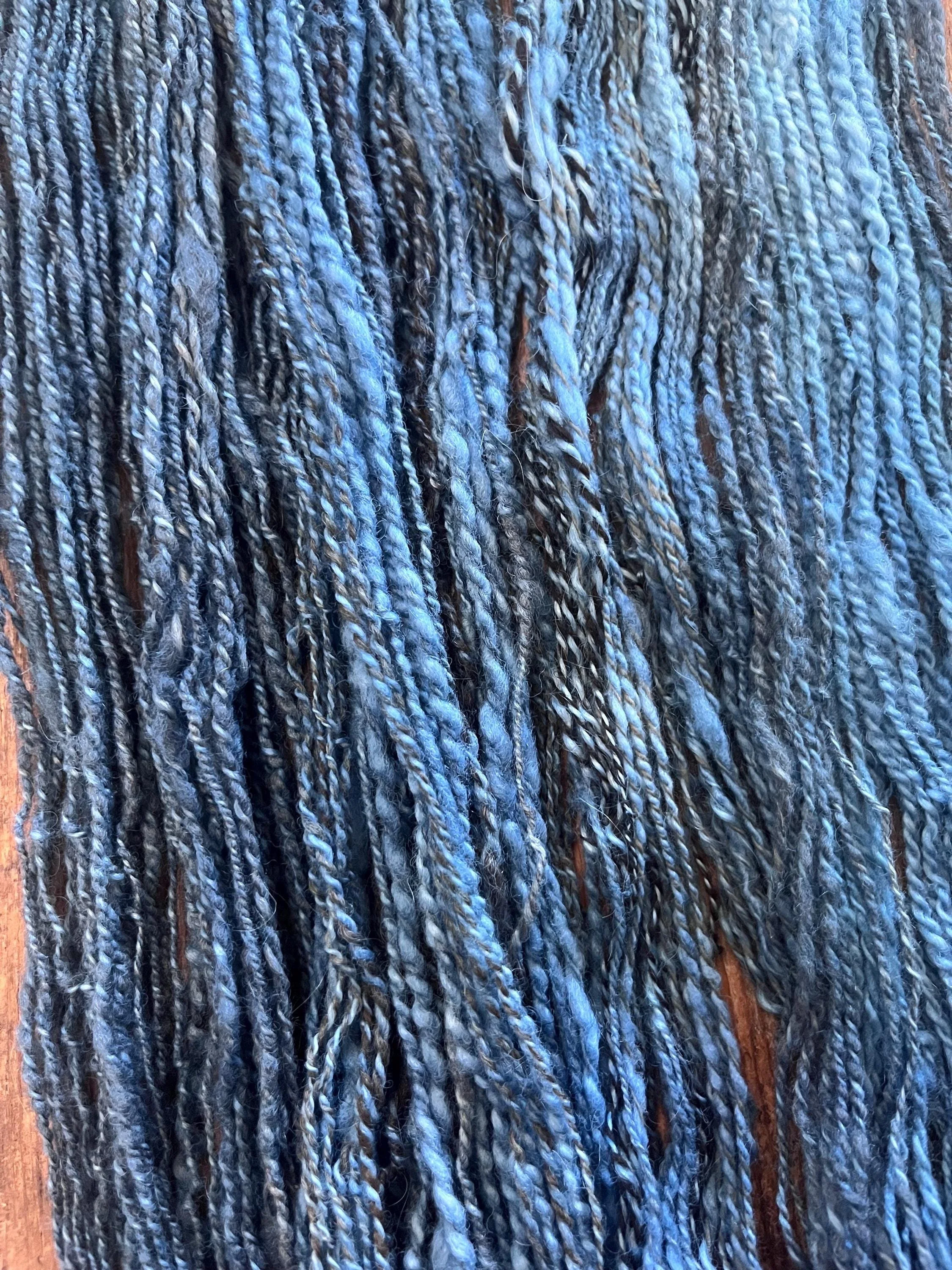 Indigo dyed blue two ply wool handspun wool/alpaca yarn, 50 yard skeins