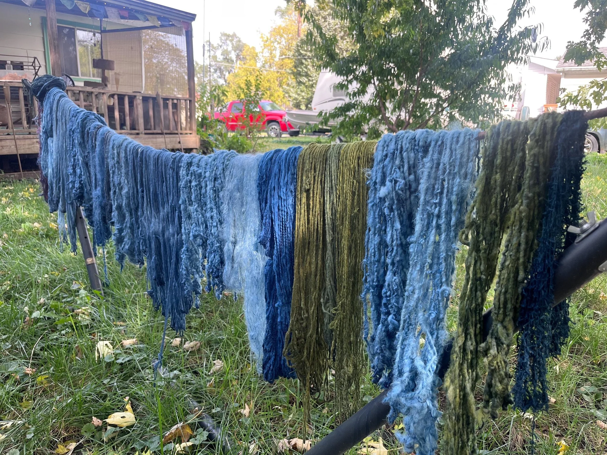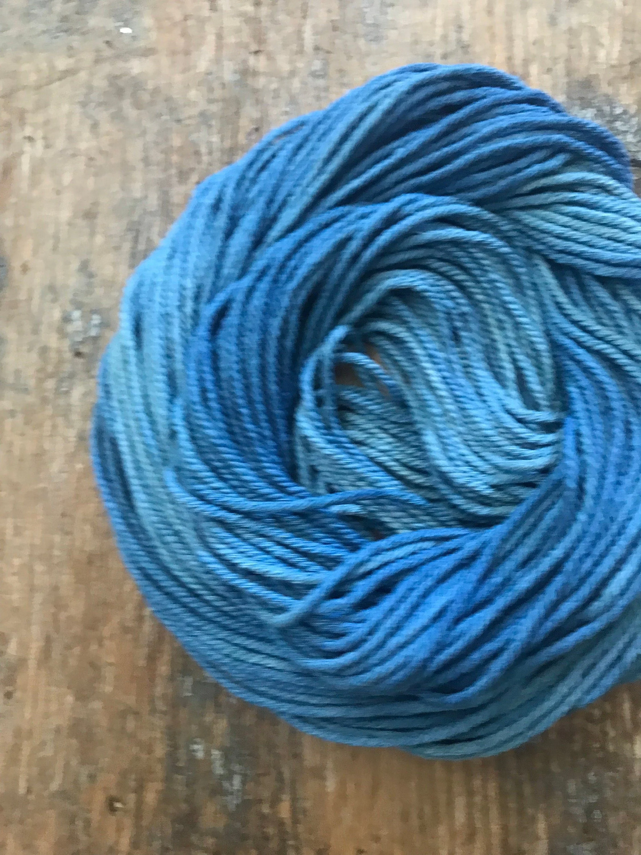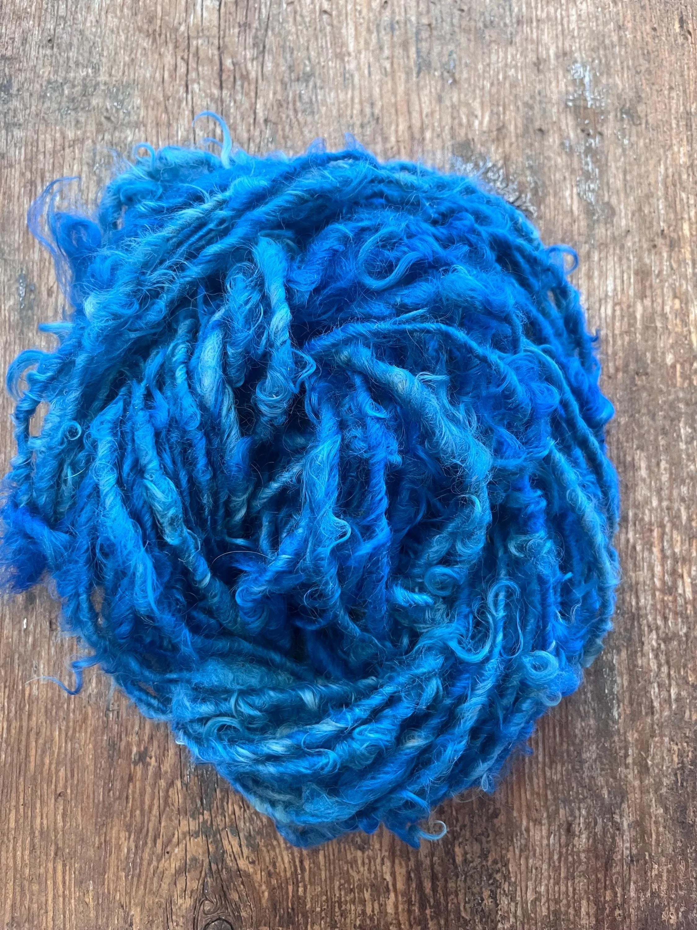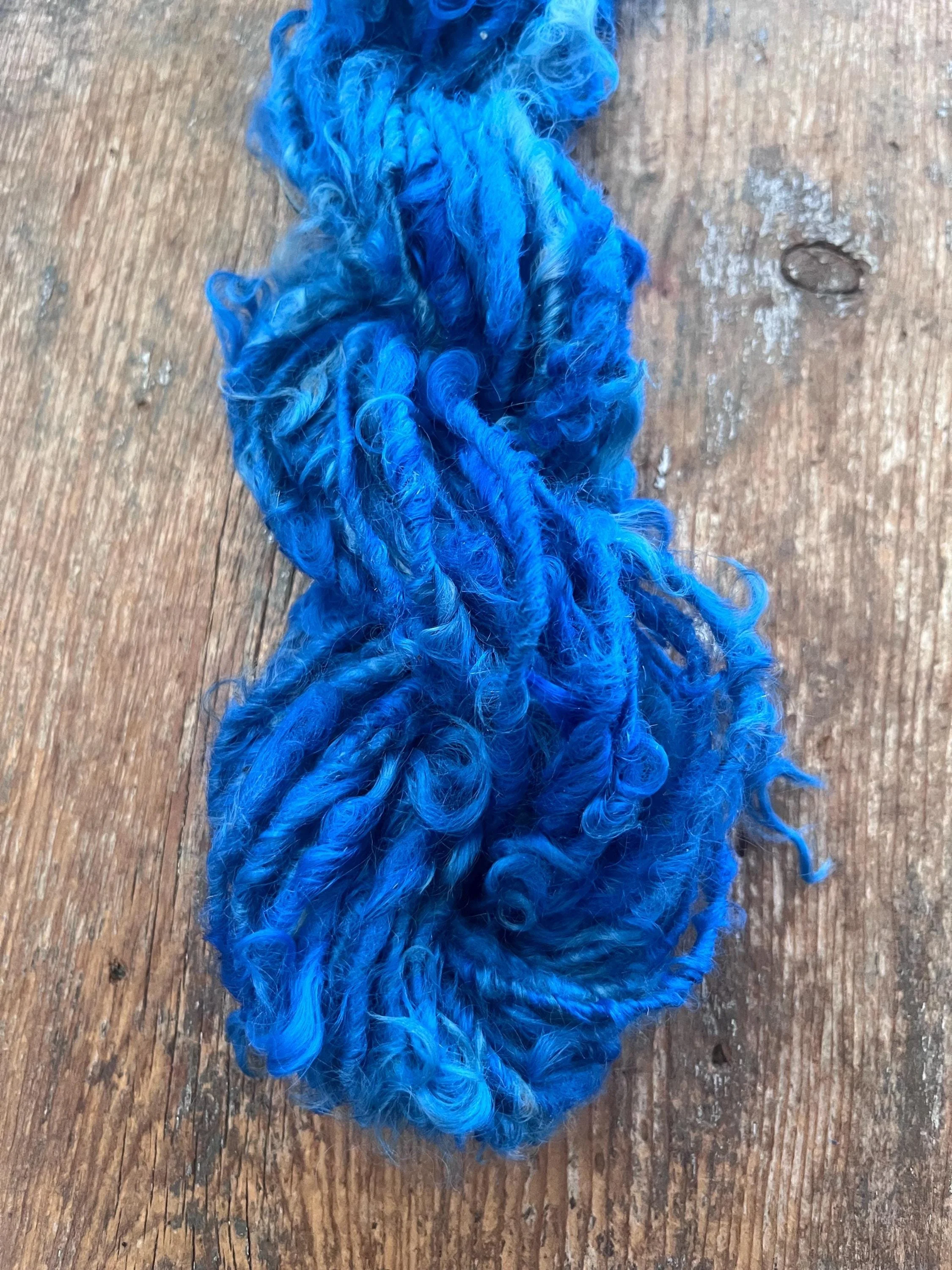 Indigo dyed blue two ply wool handspun wool/alpaca yarn, 50 yard skeins