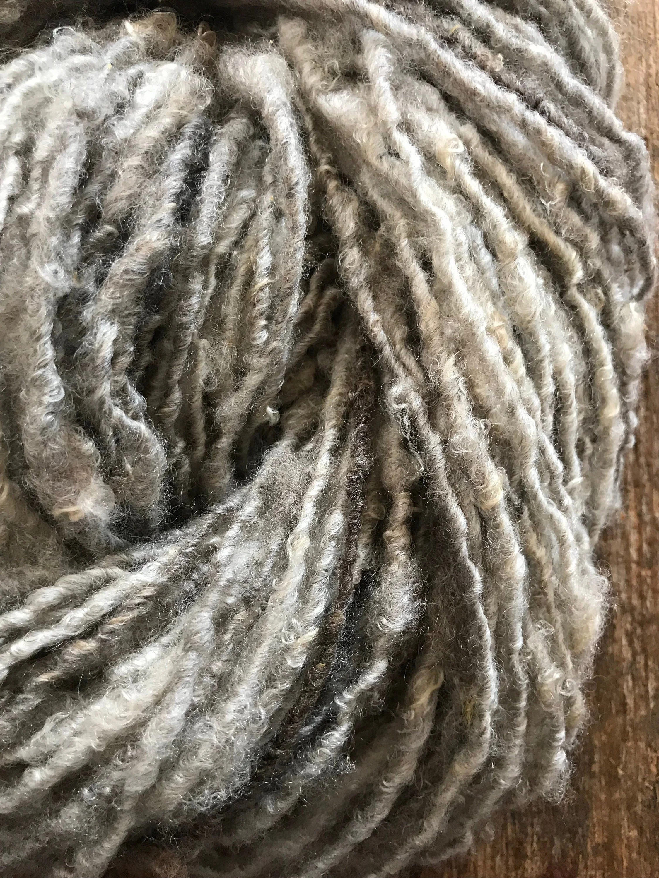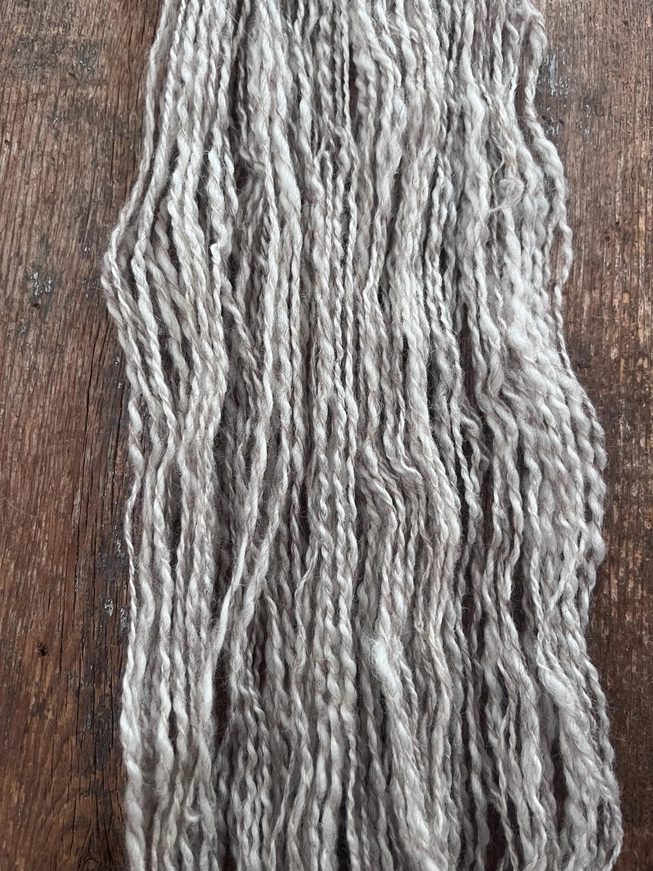 Lincoln 2 ply grey sport weight handspun yarn, 100 yards