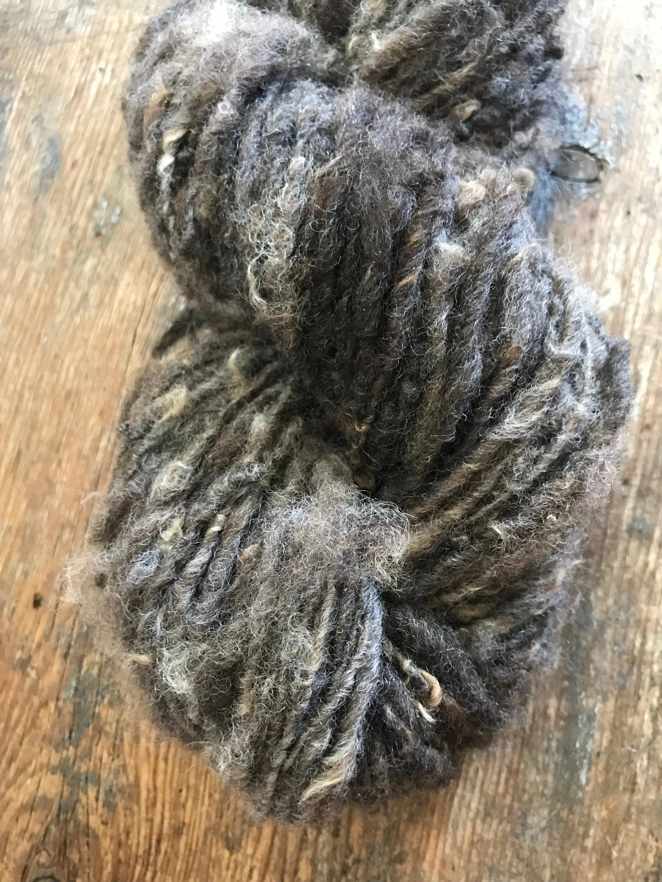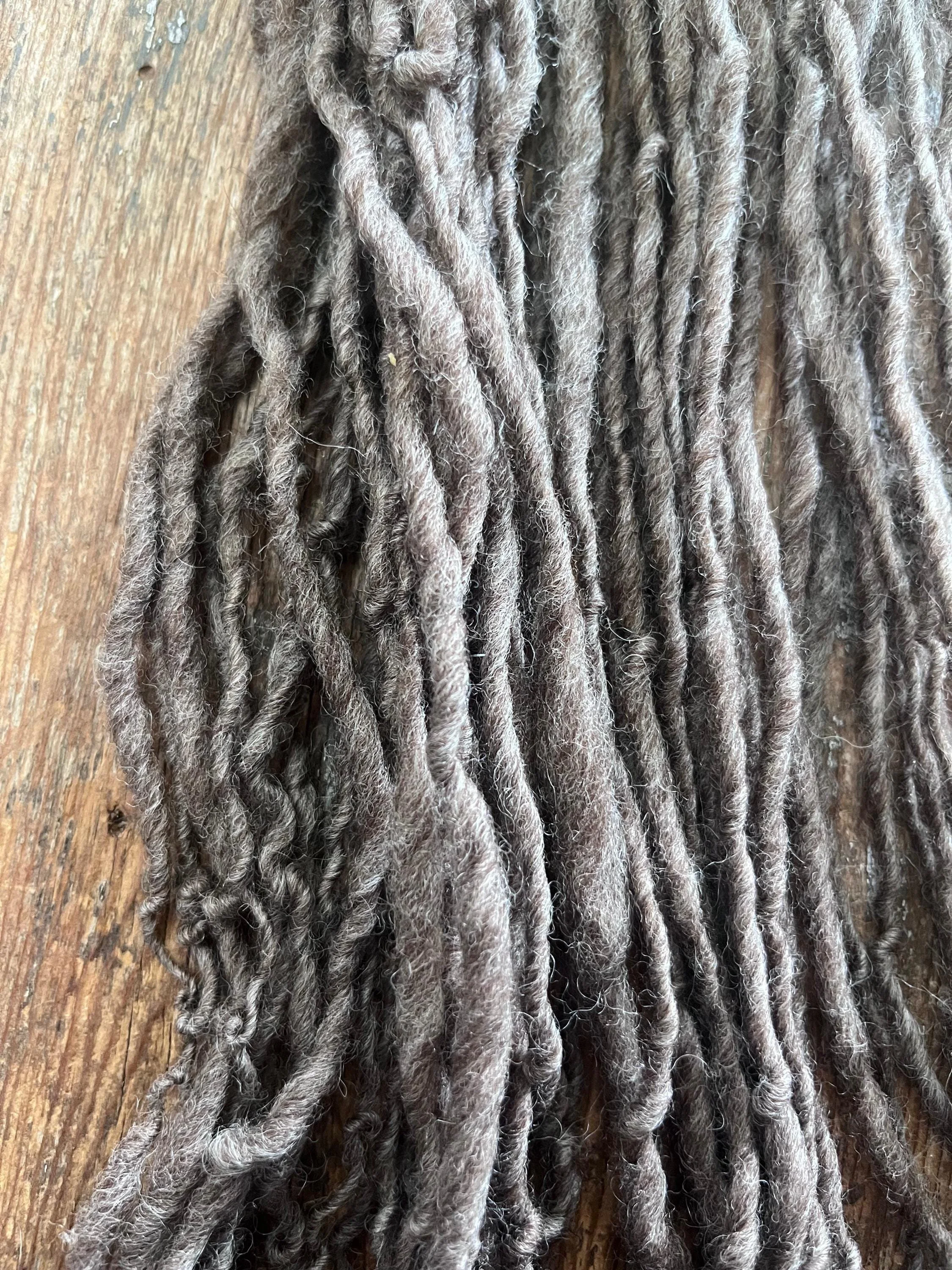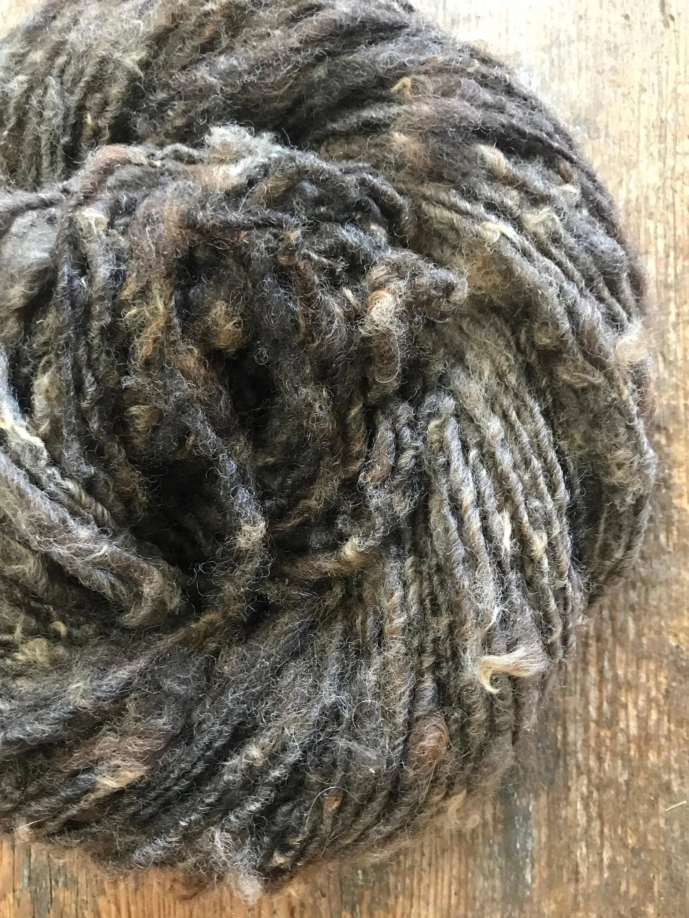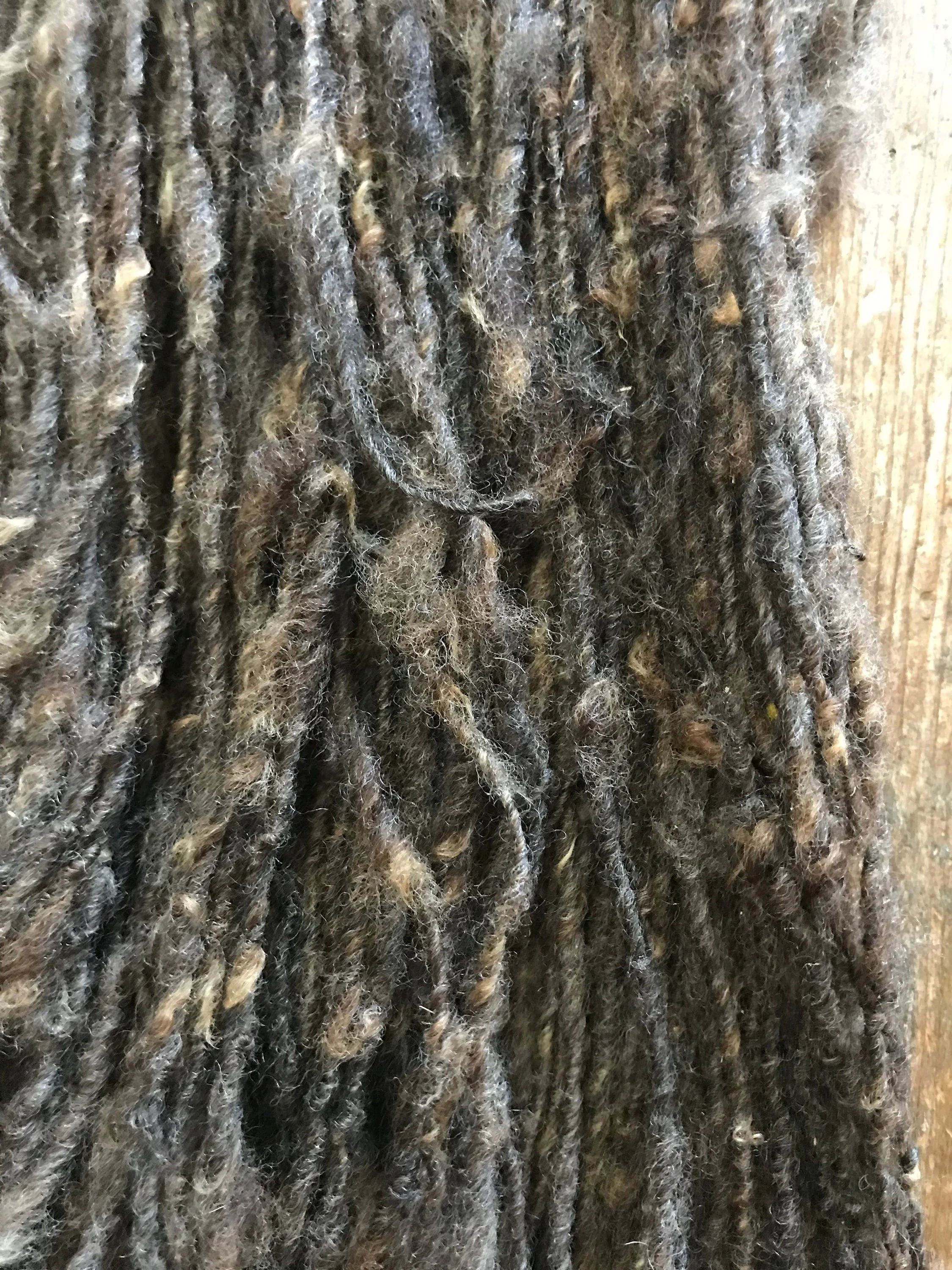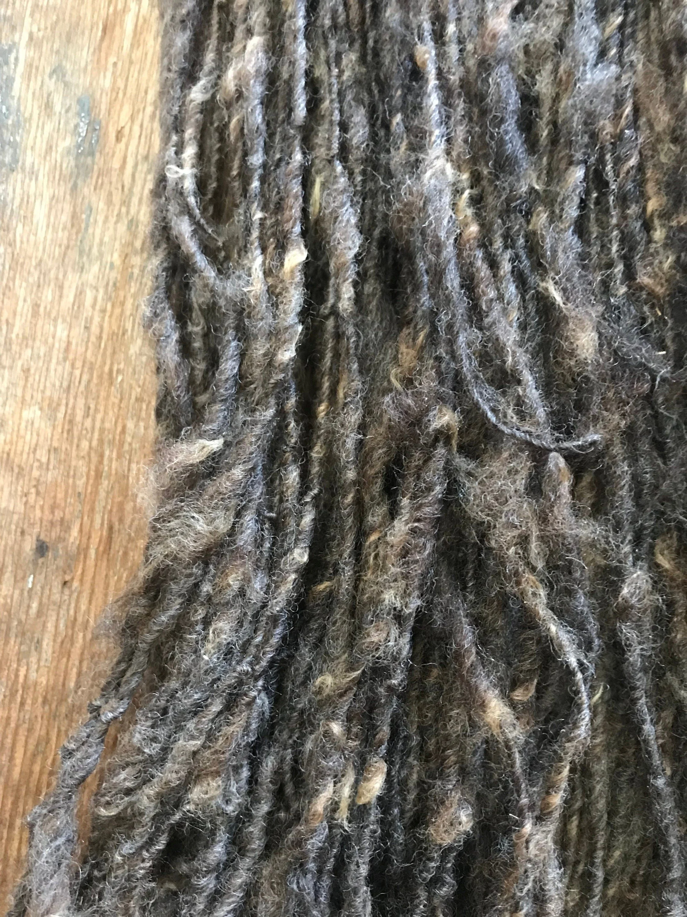 Brown/grey corriedale wool yarn, nubbly lockspun natural art yarn