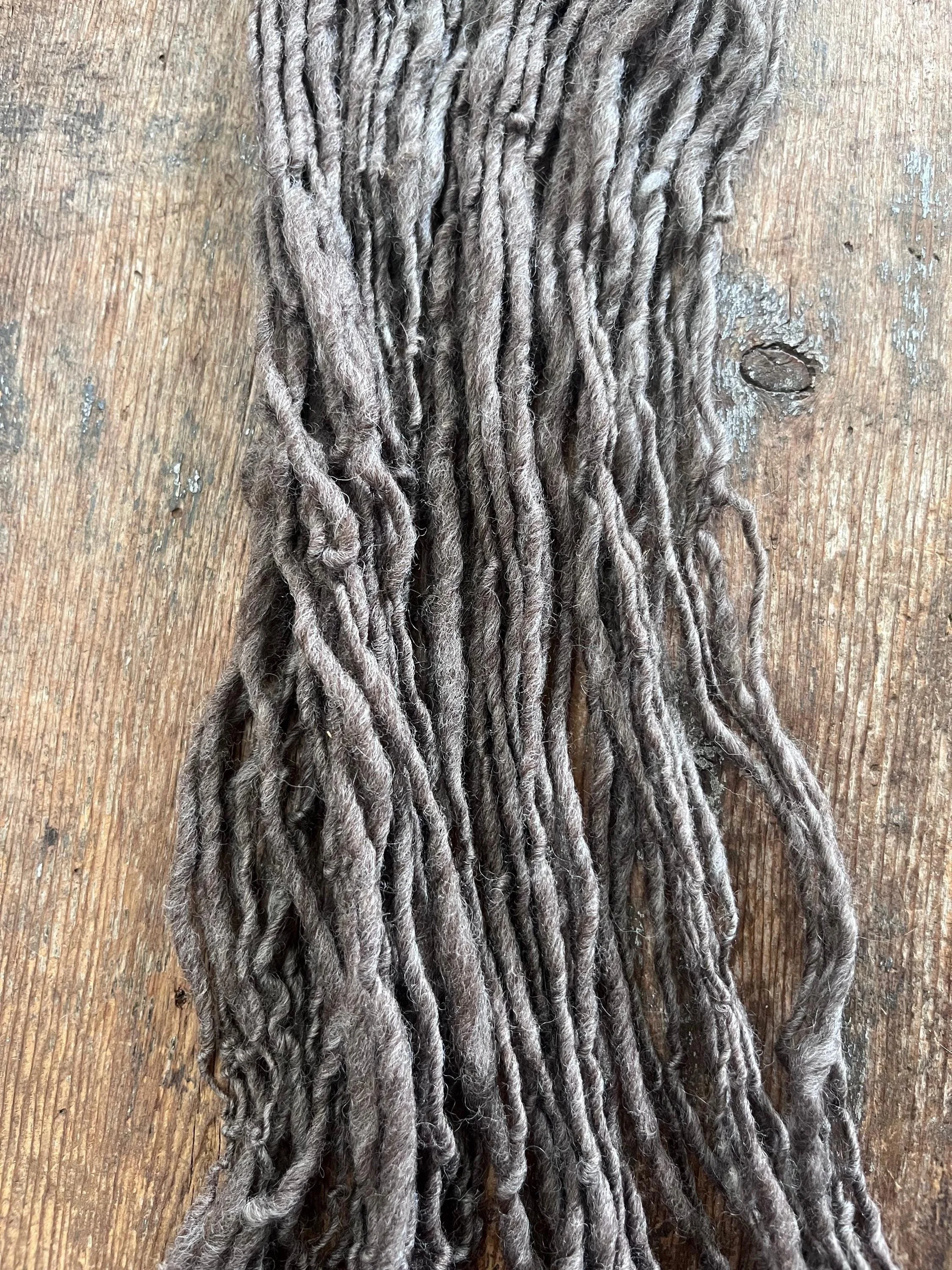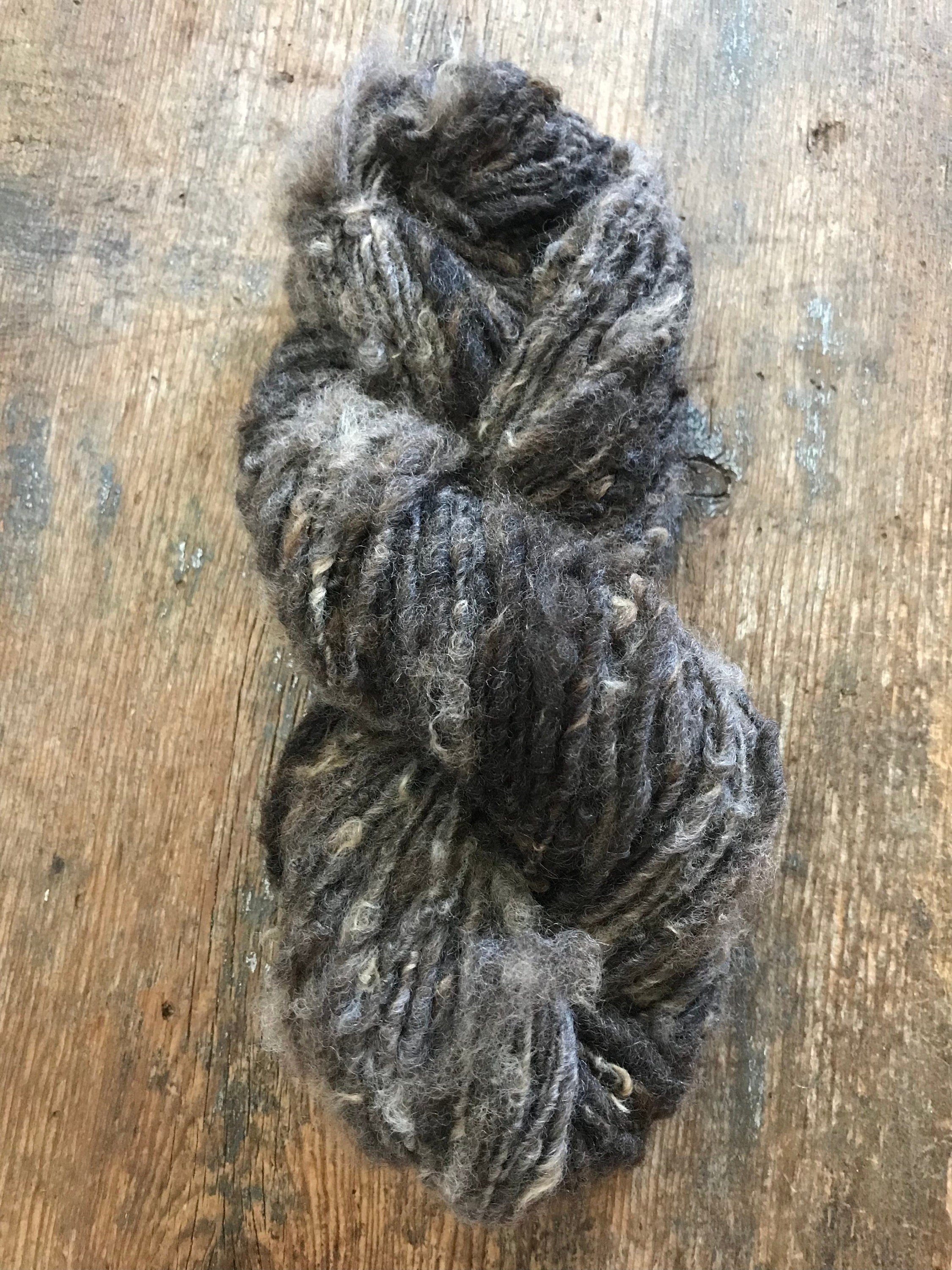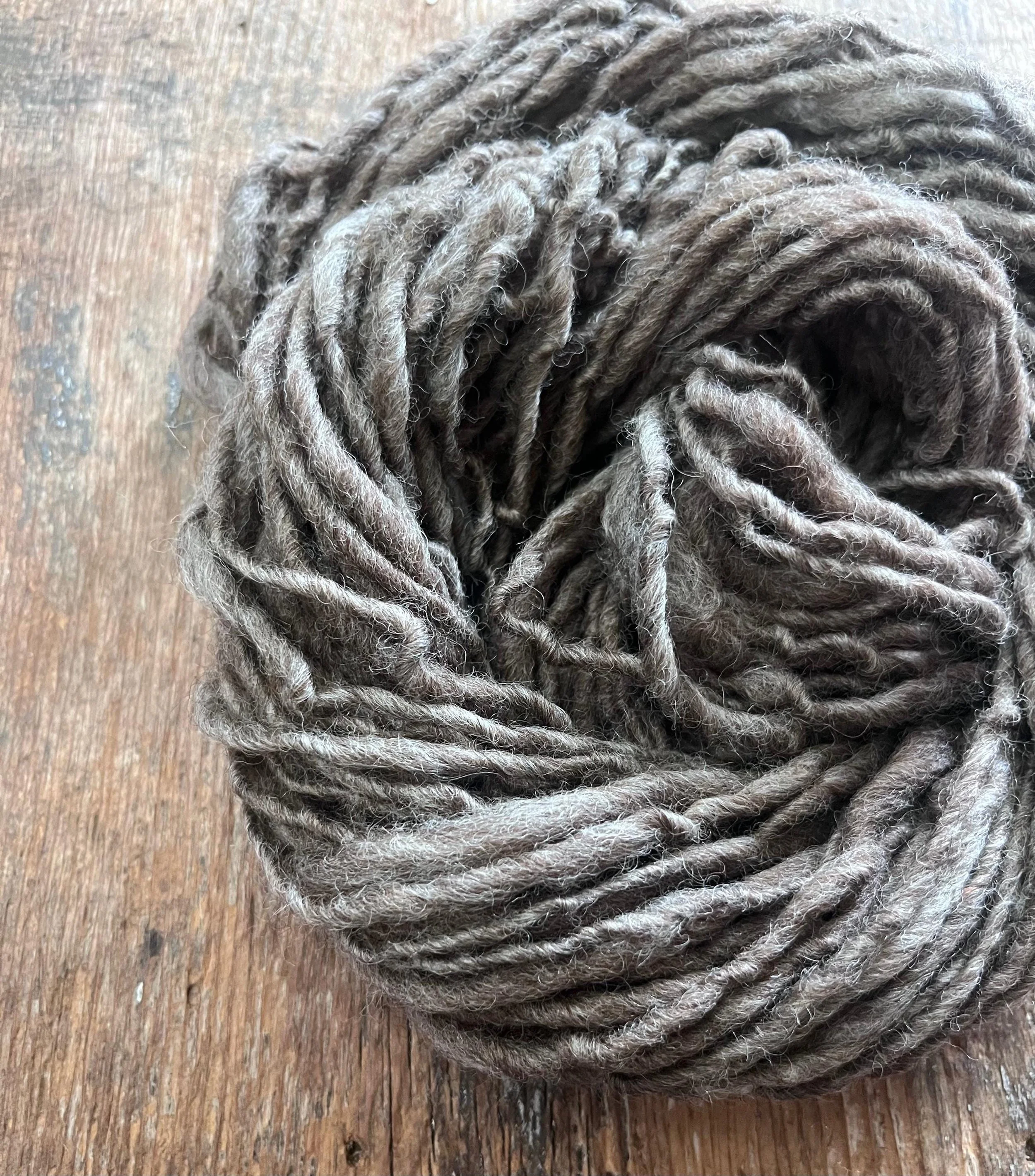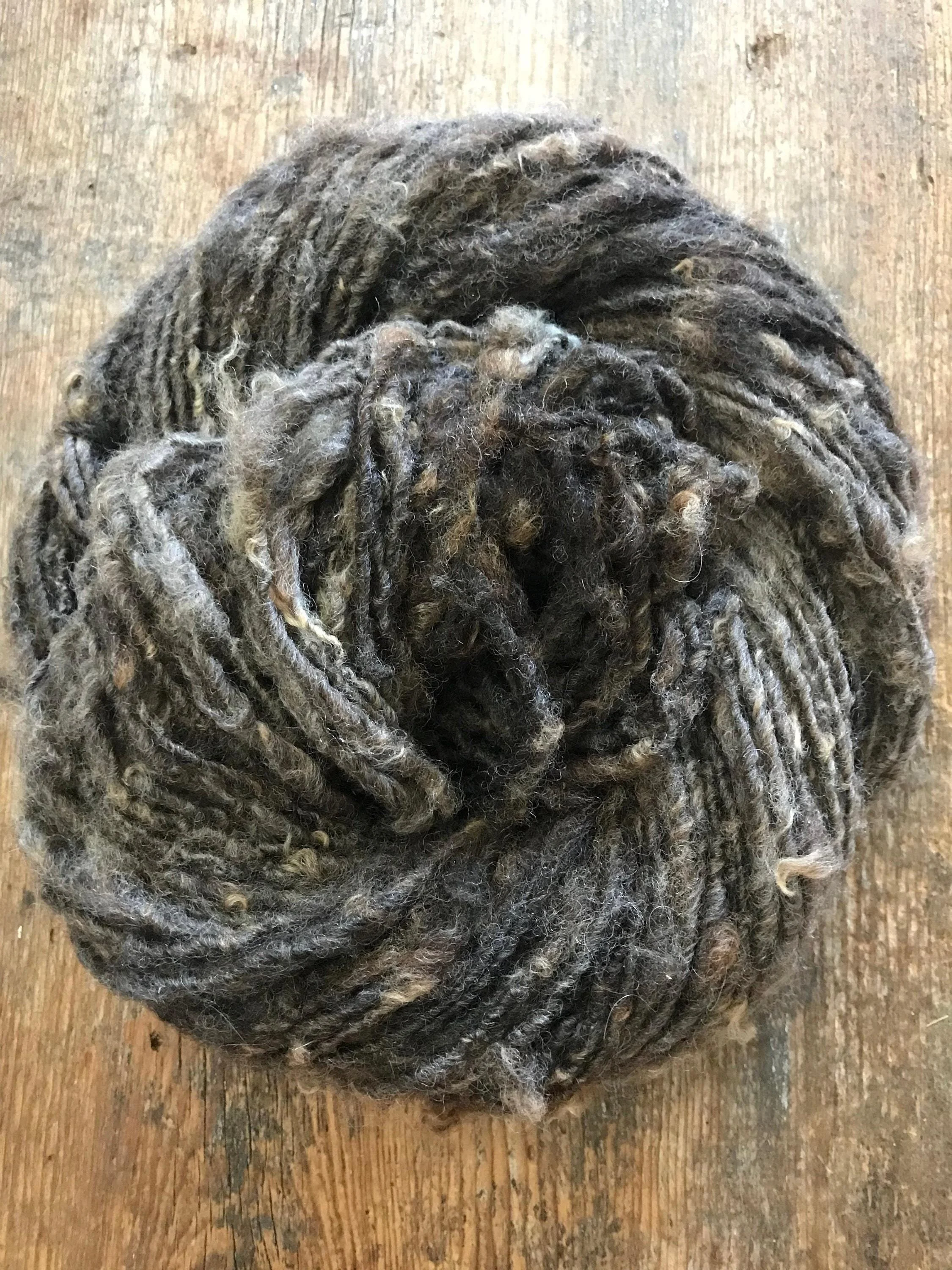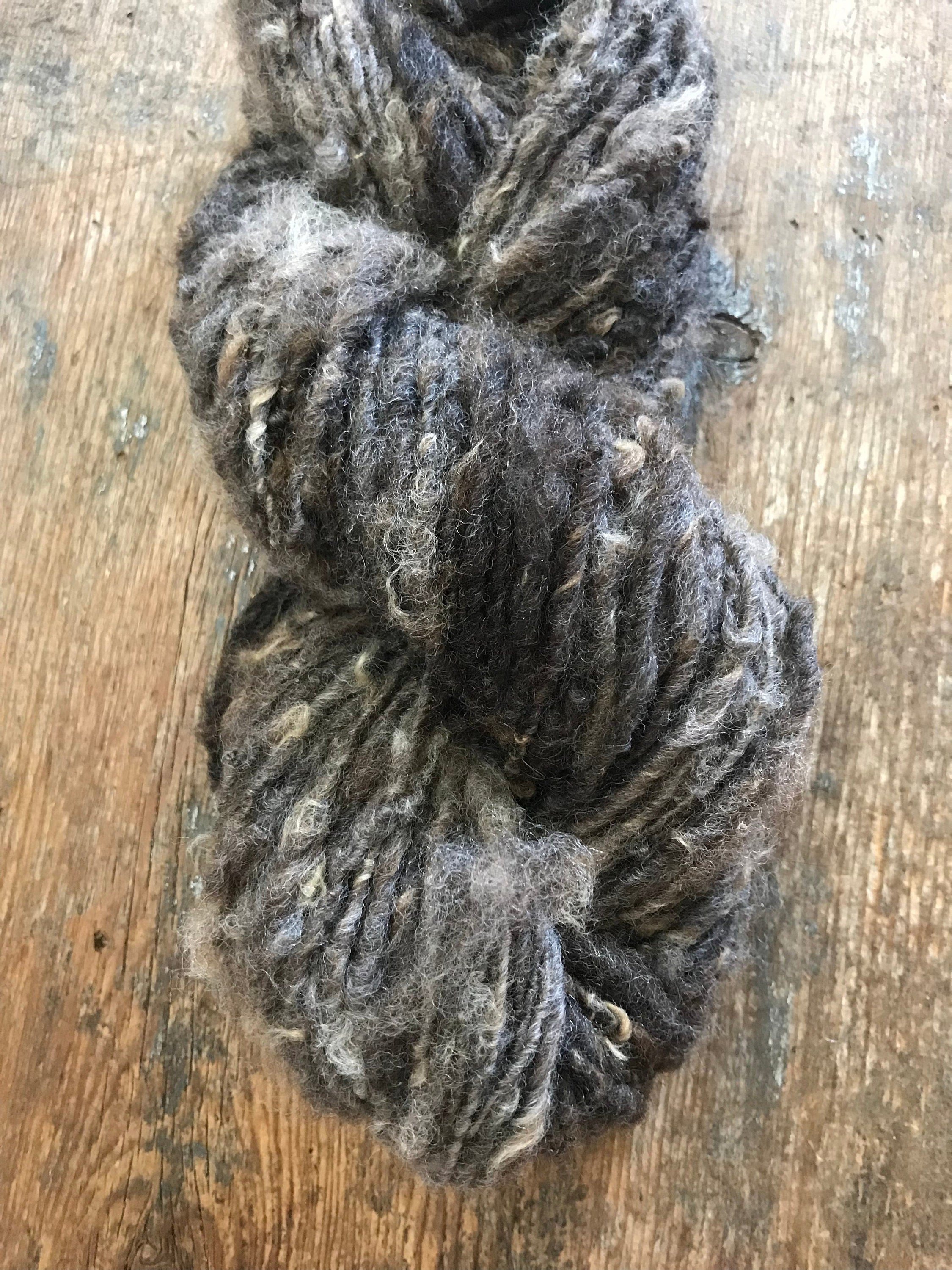 Brown/grey corriedale wool yarn, nubbly lockspun natural art yarn