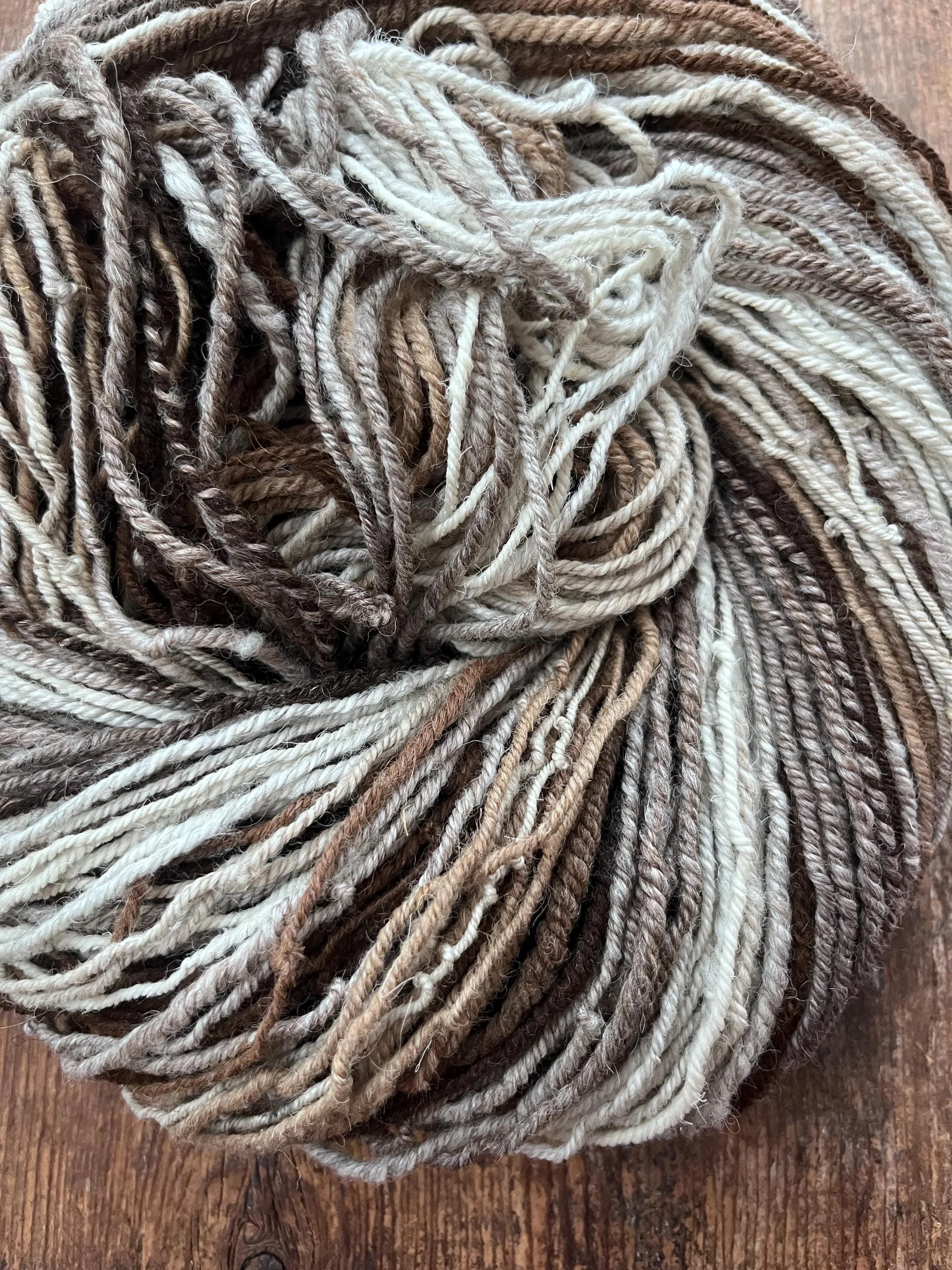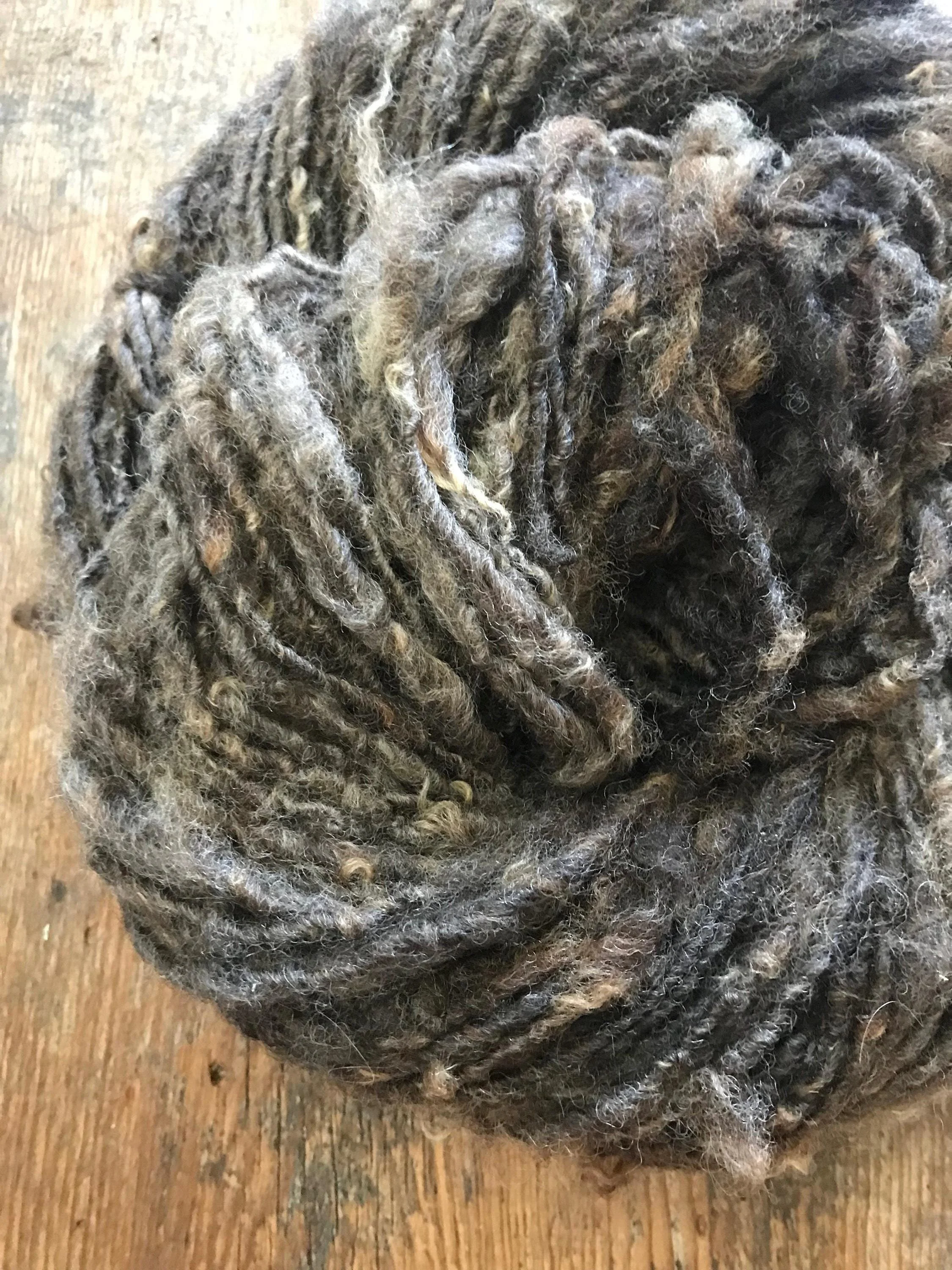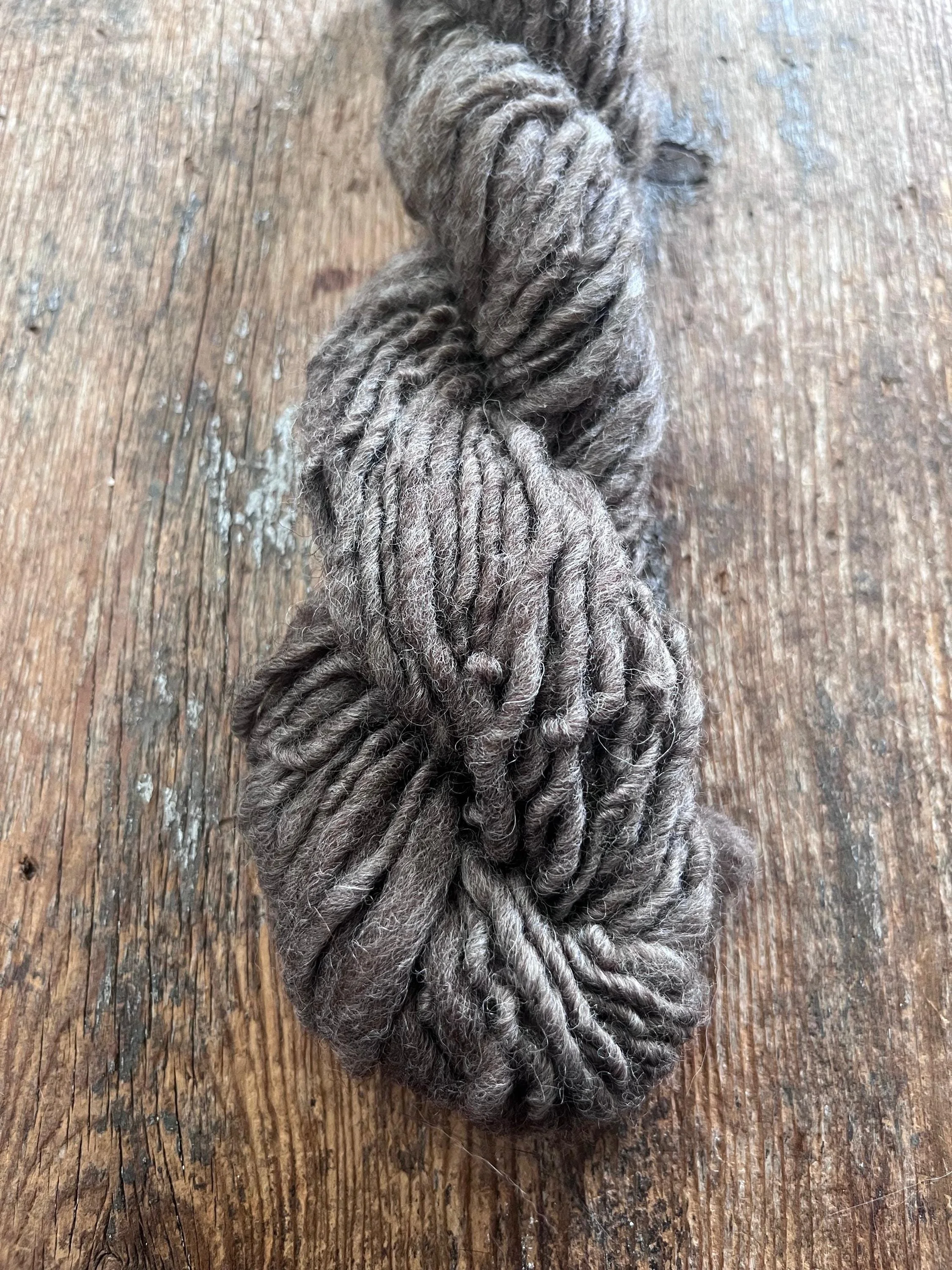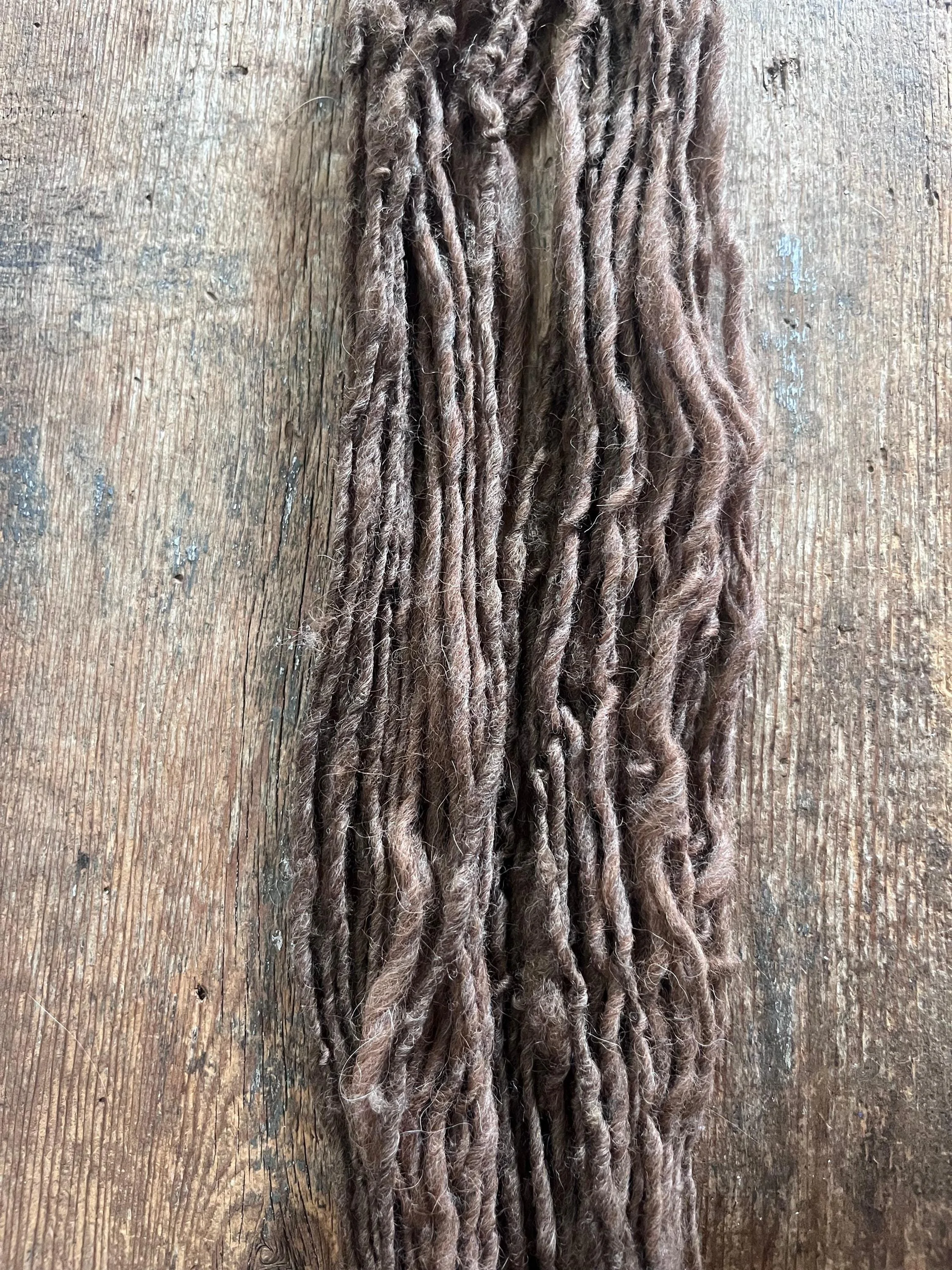 Brown/grey corriedale wool yarn, nubbly lockspun natural art yarn
