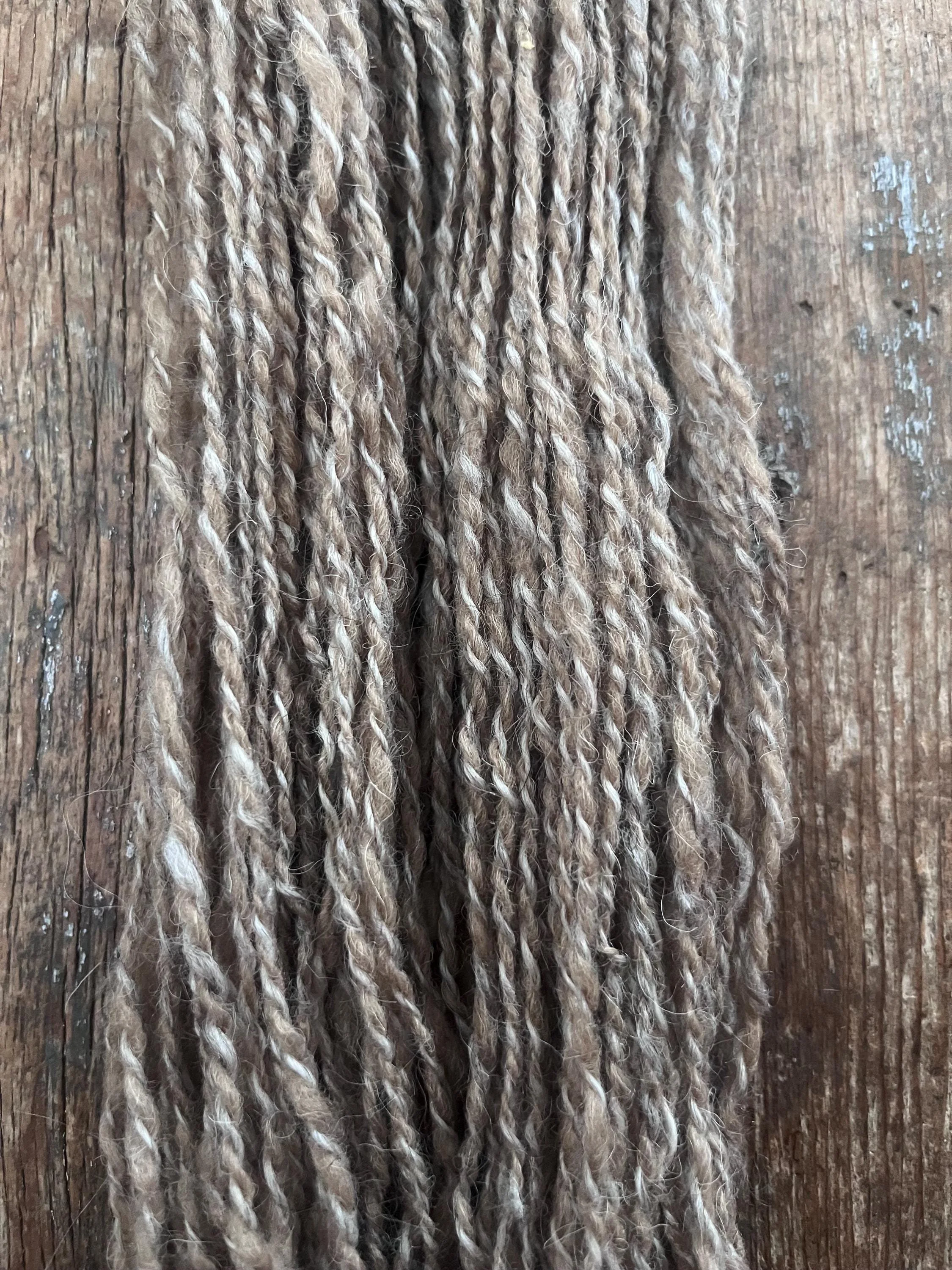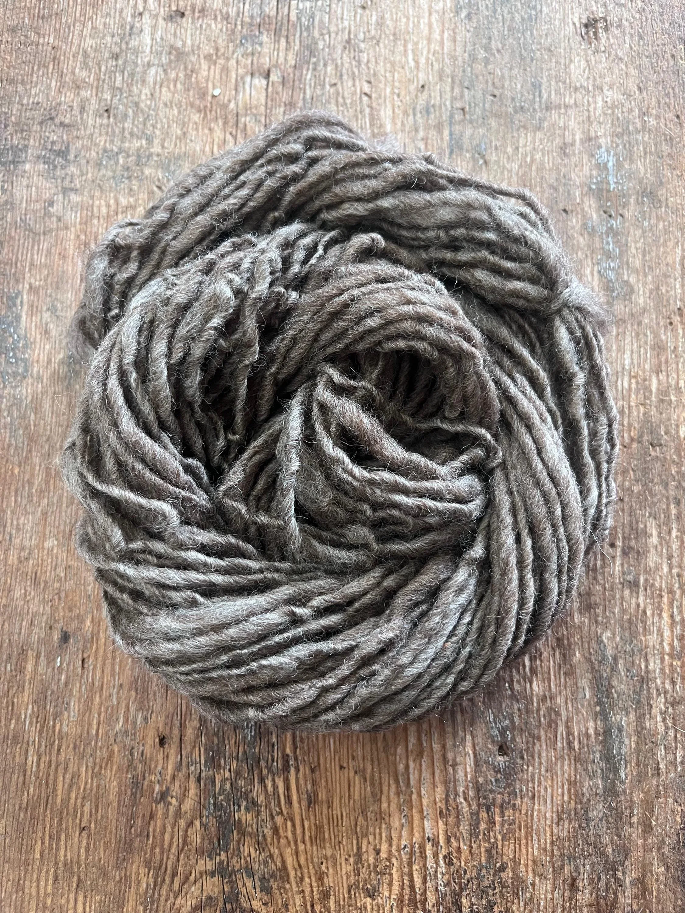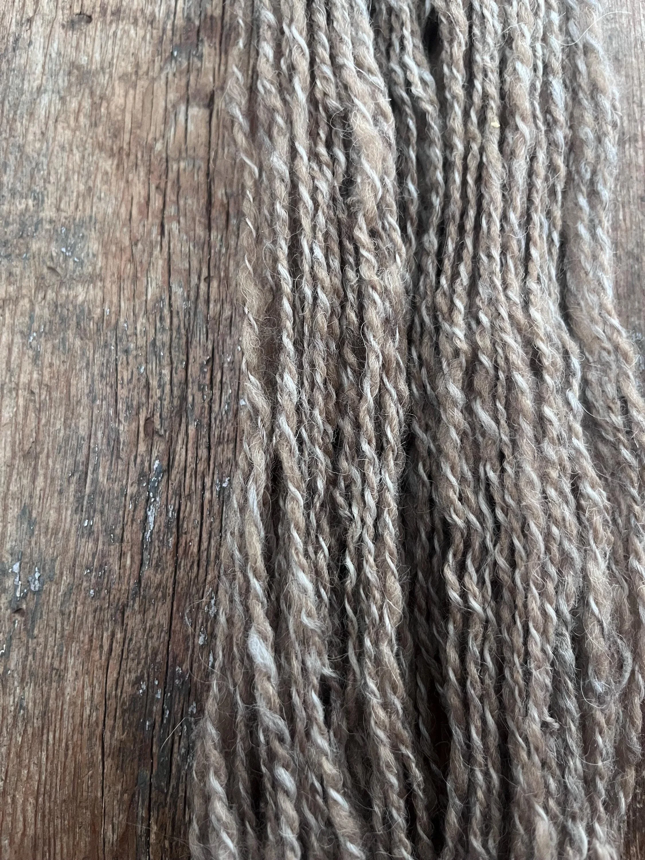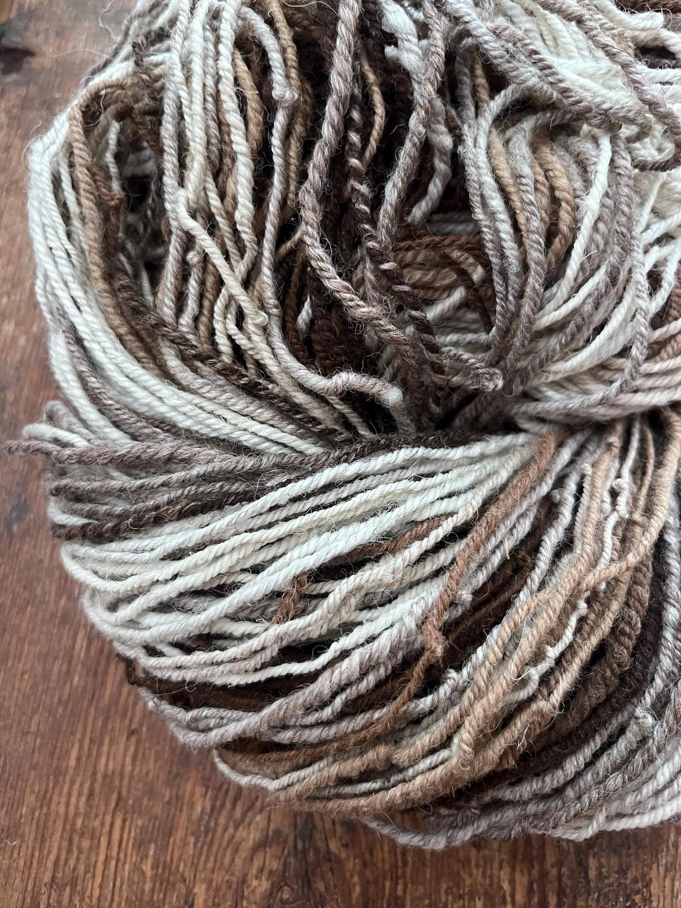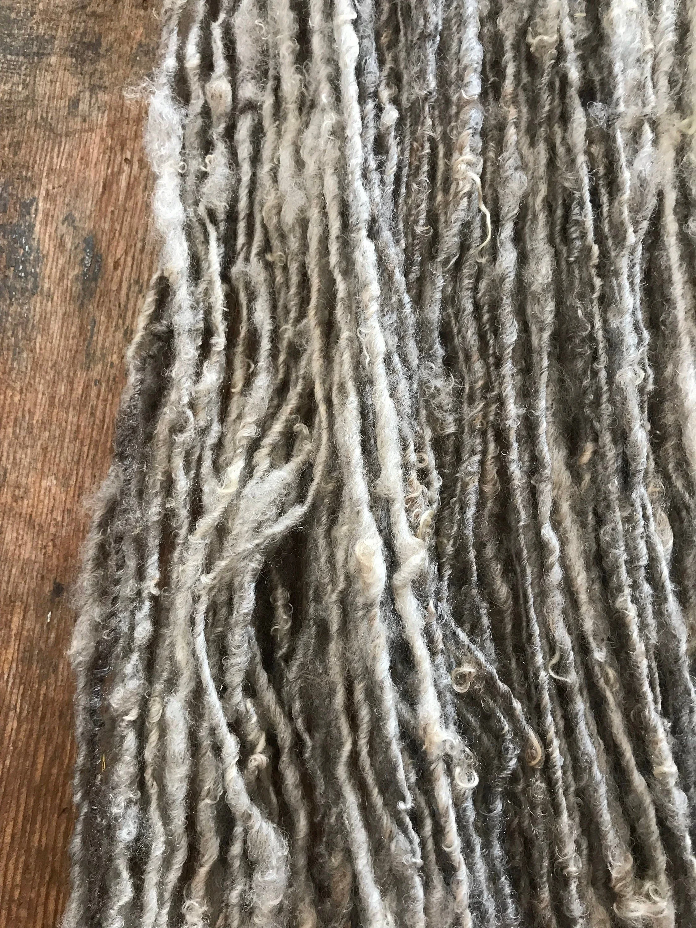 Brown/grey corriedale wool yarn, nubbly lockspun natural art yarn
