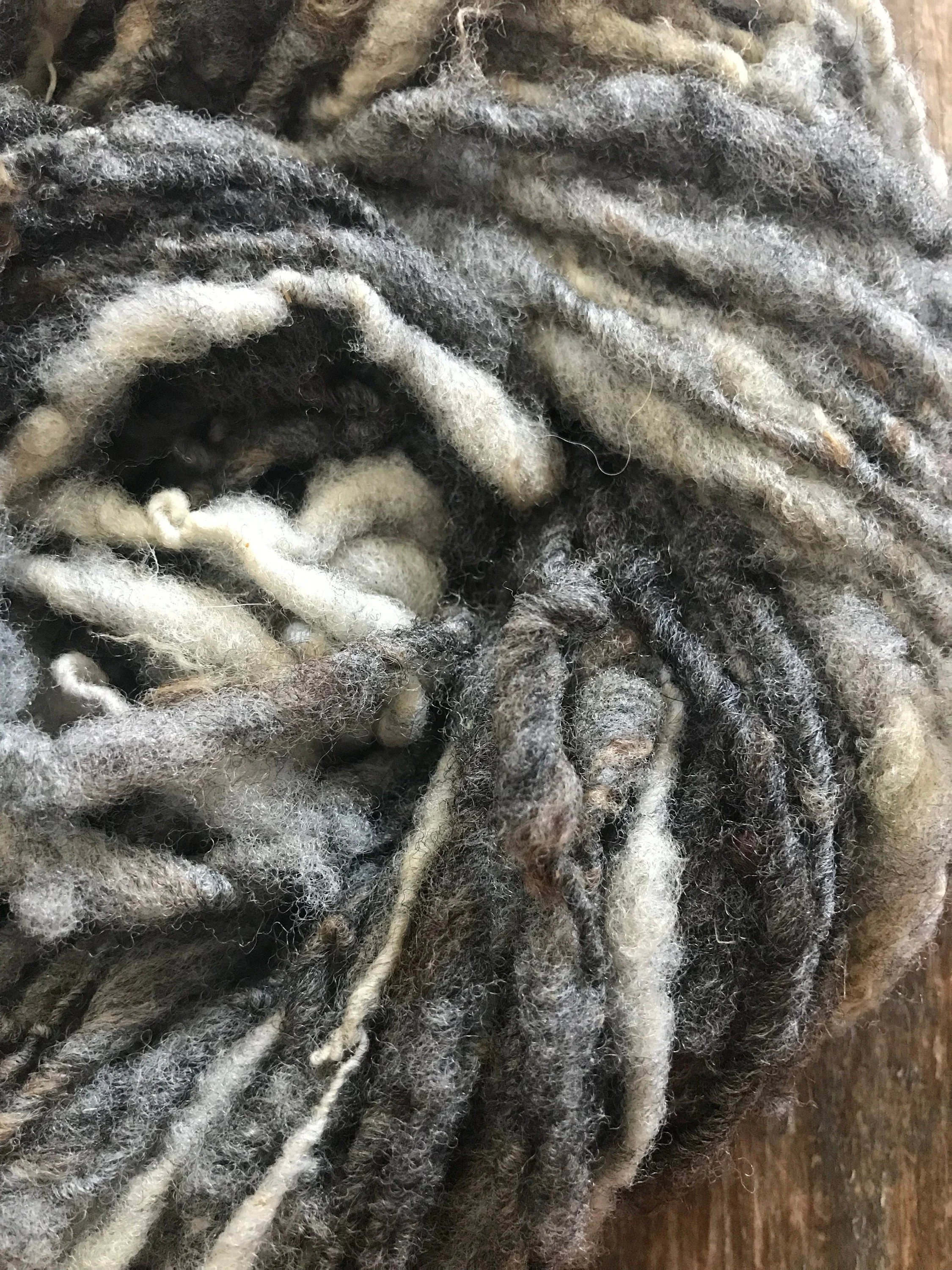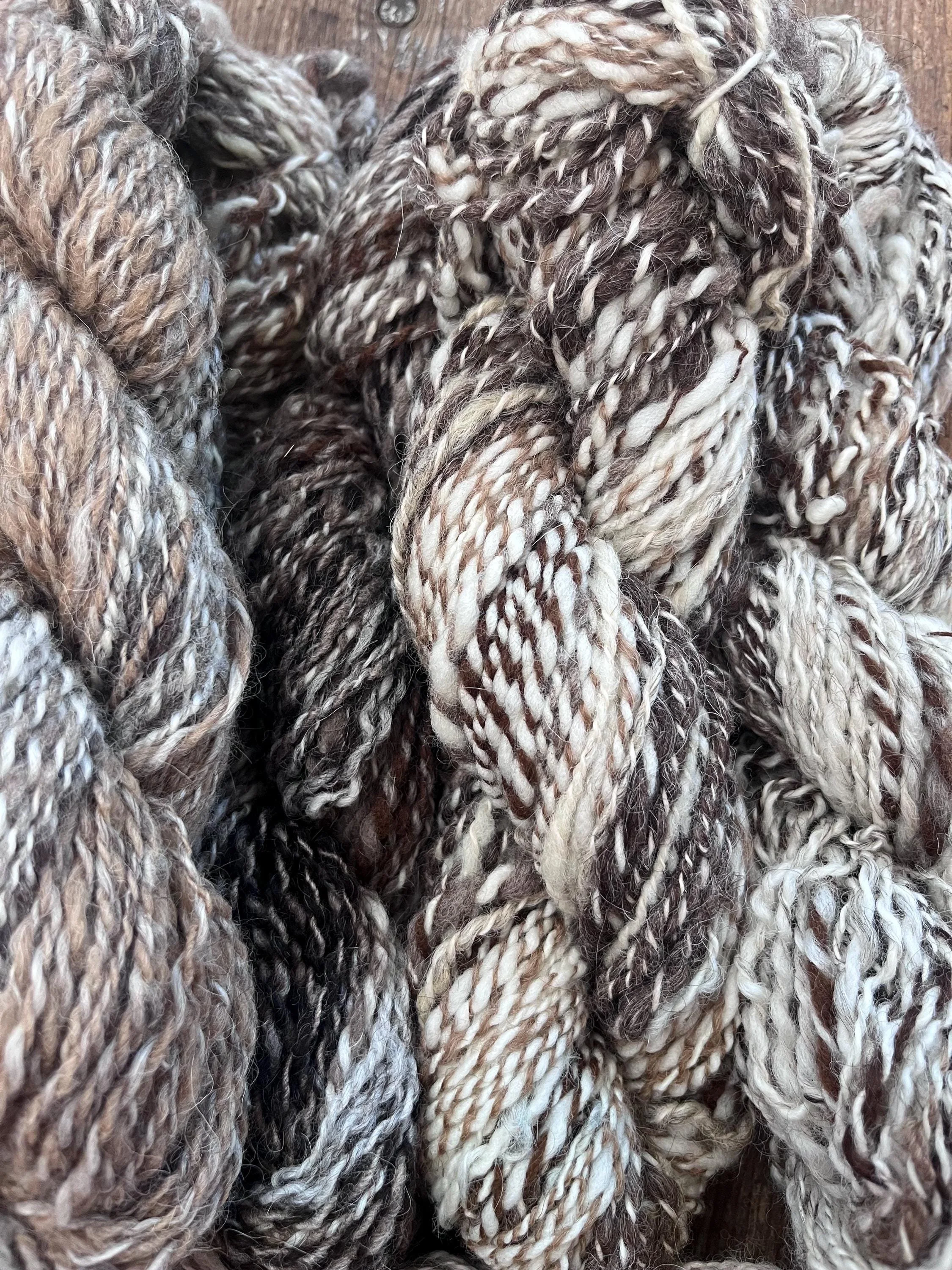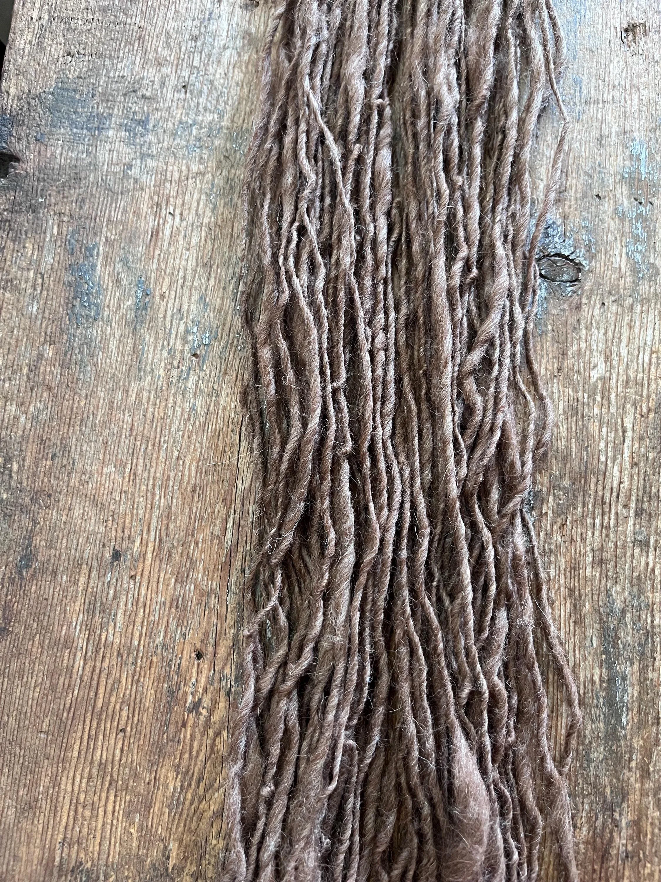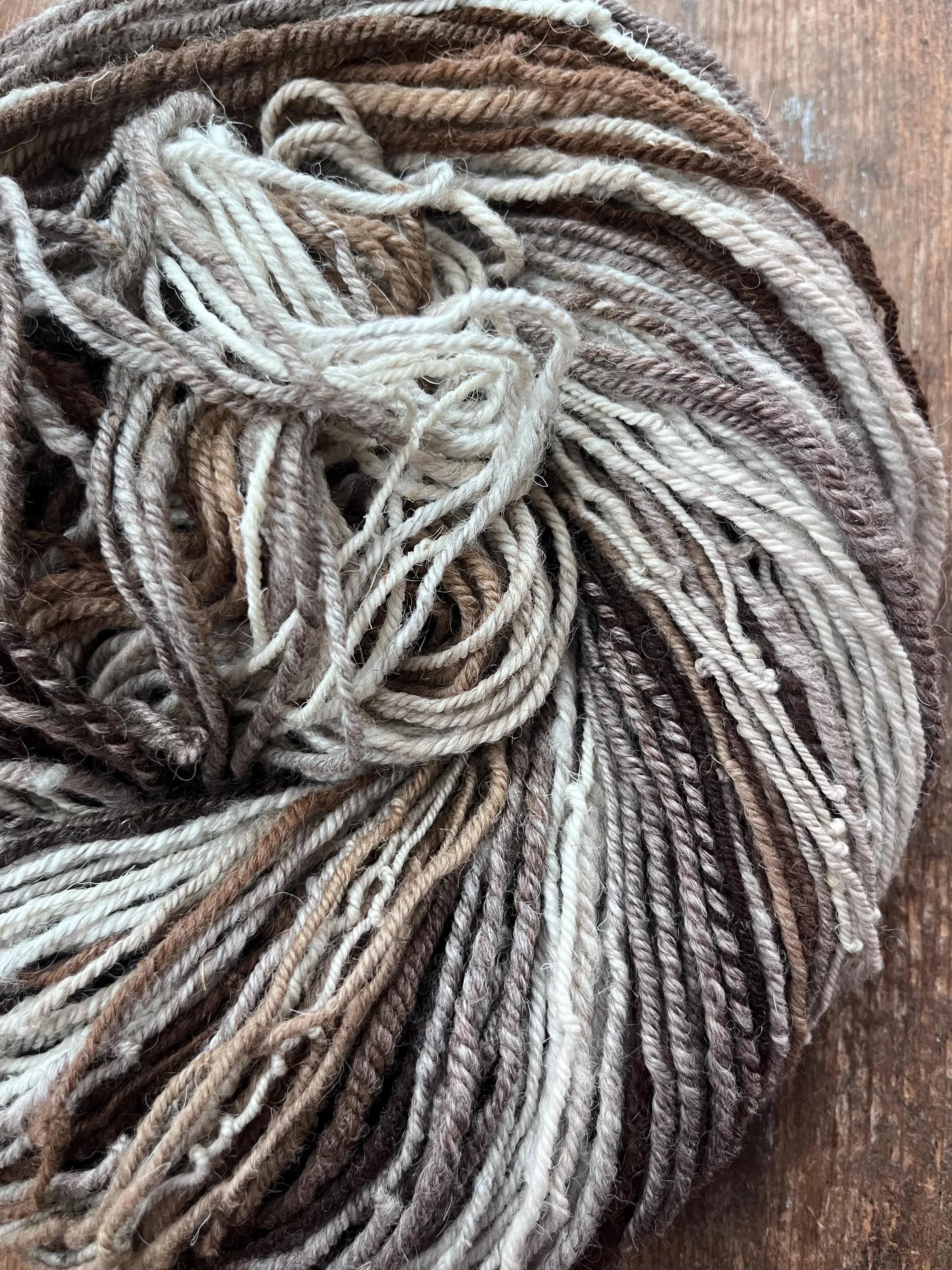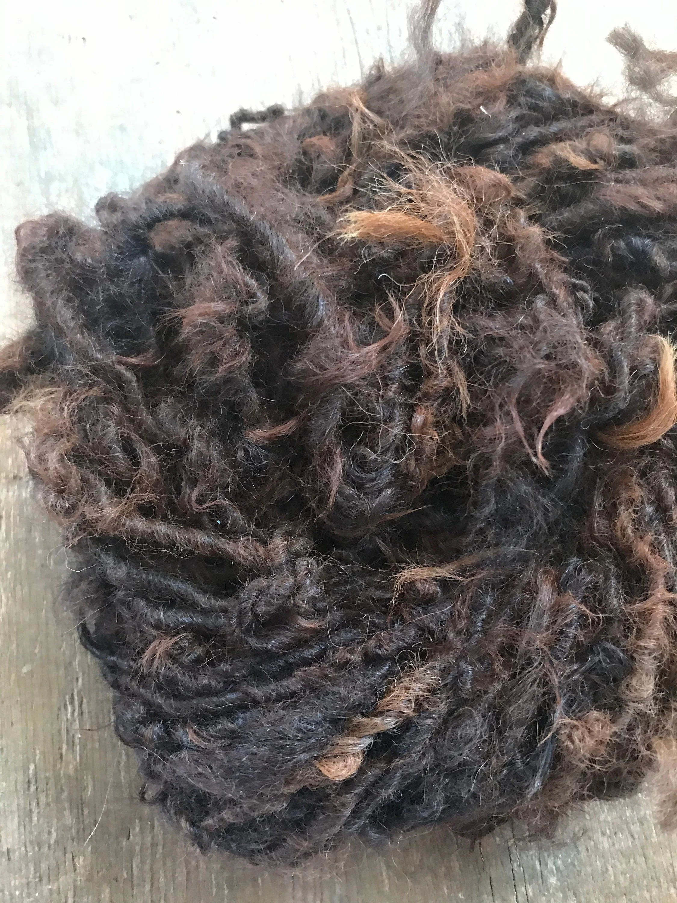 Brown/grey corriedale wool yarn, nubbly lockspun natural art yarn