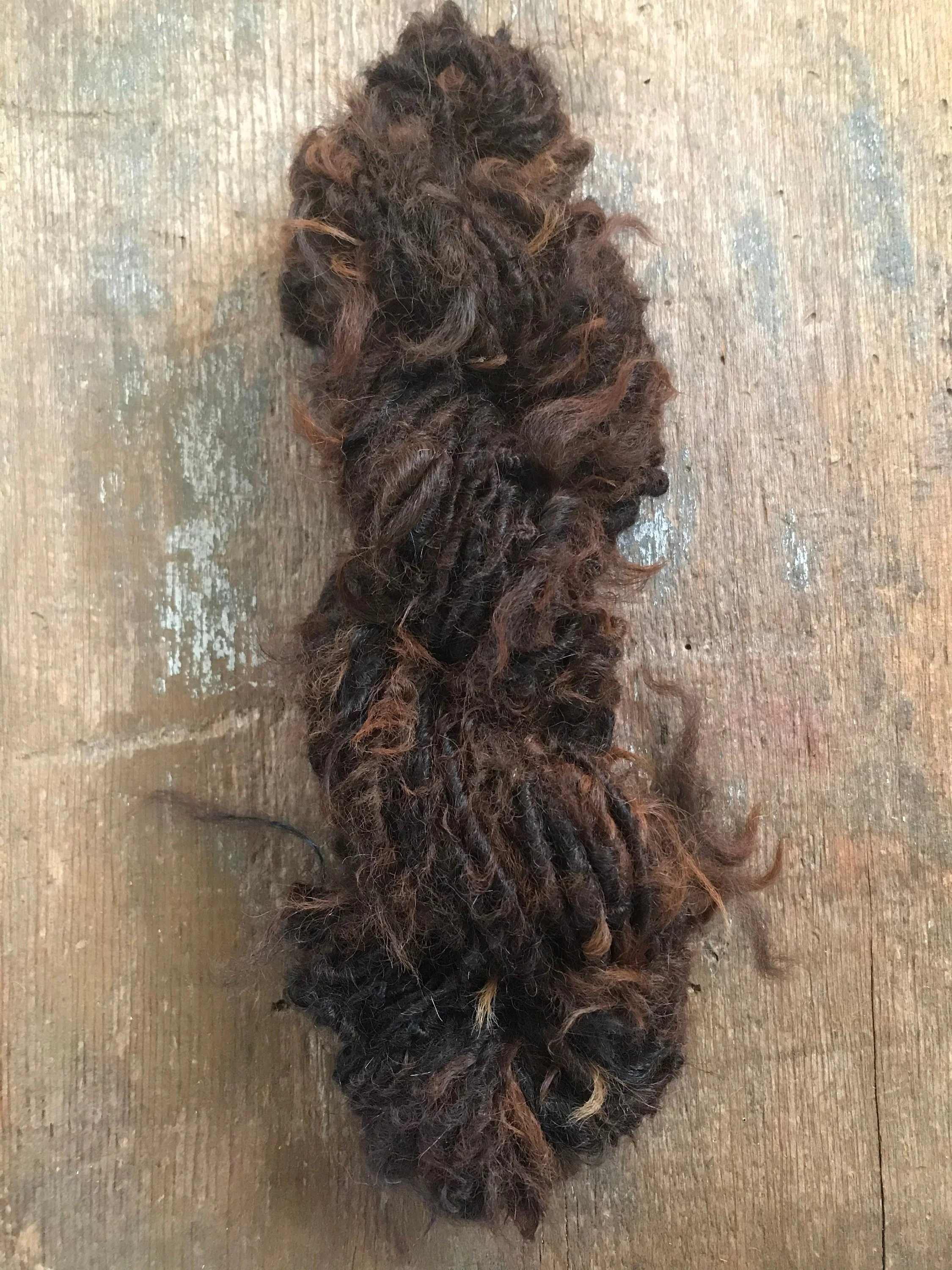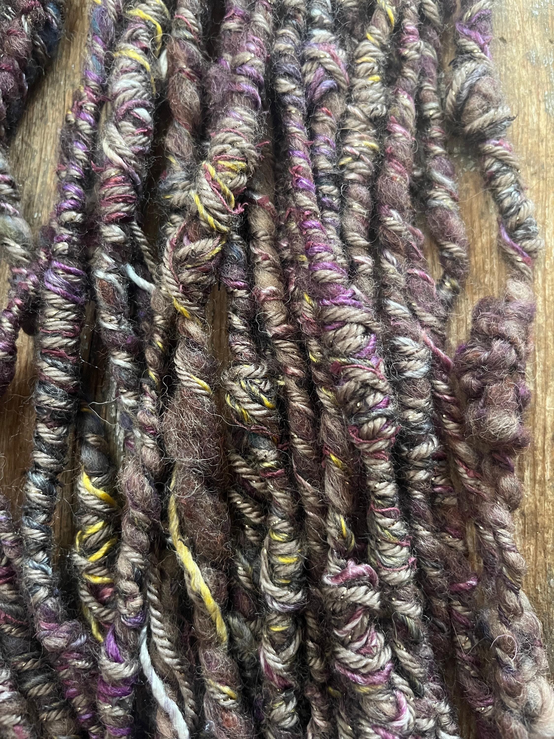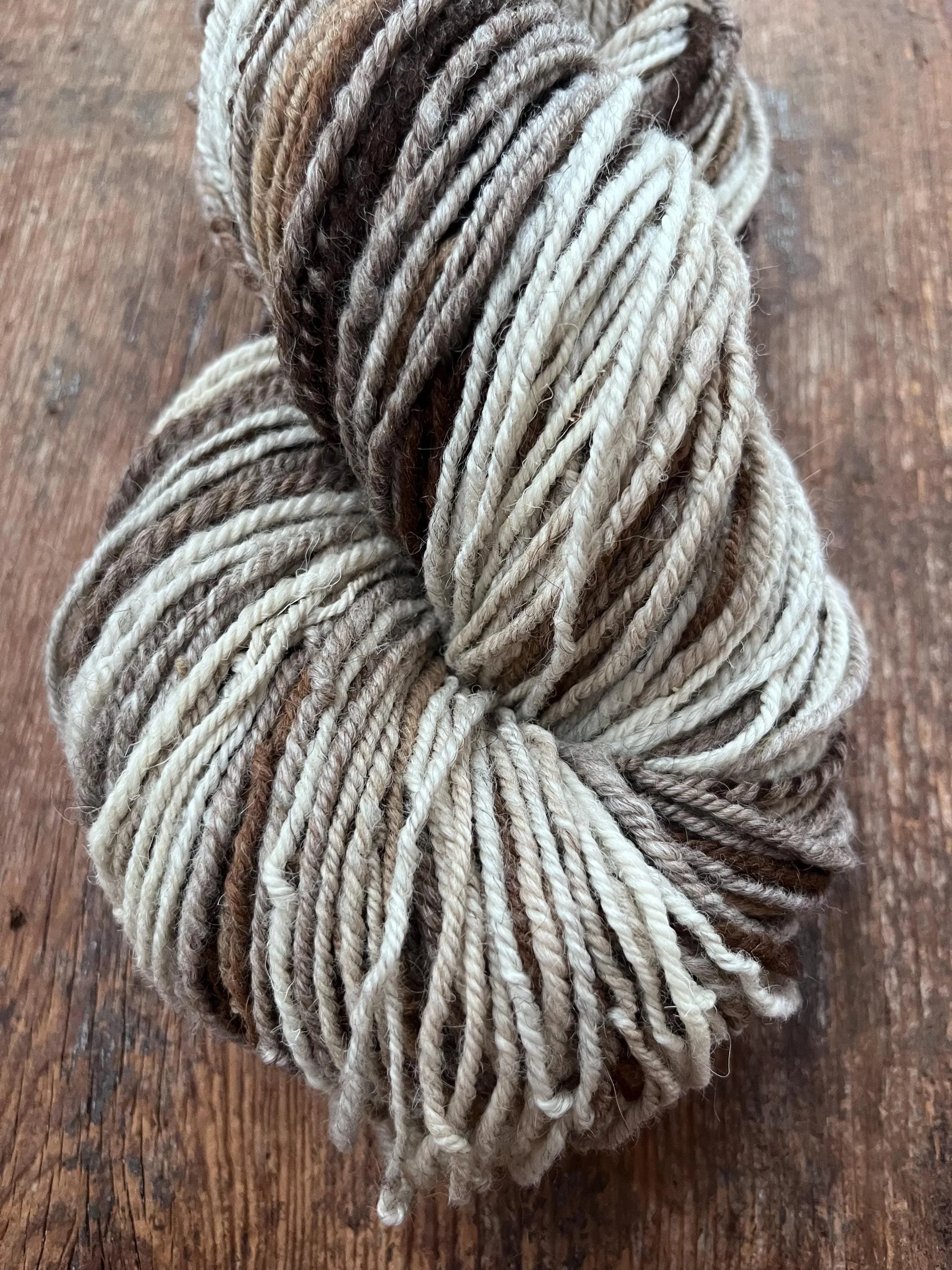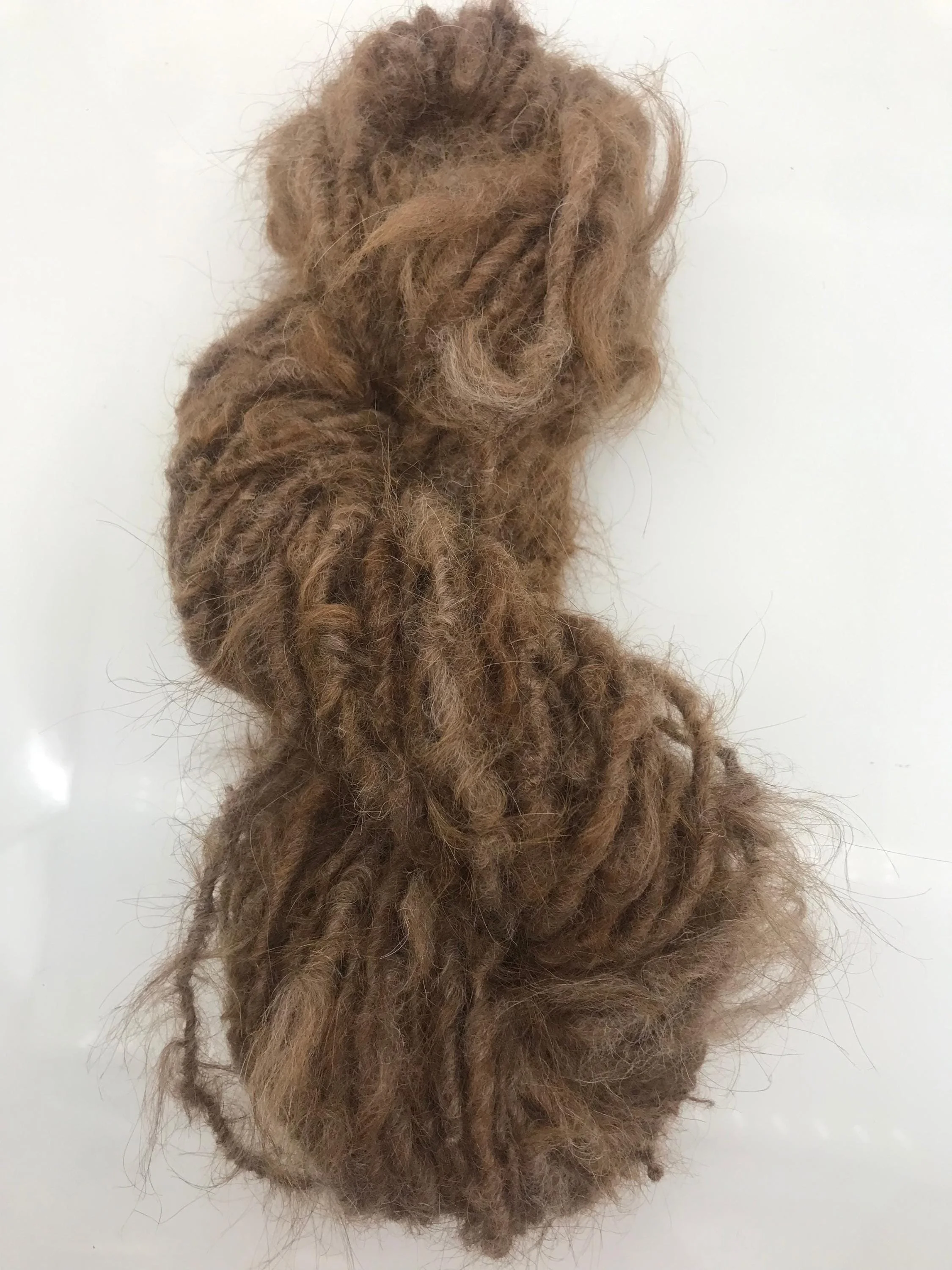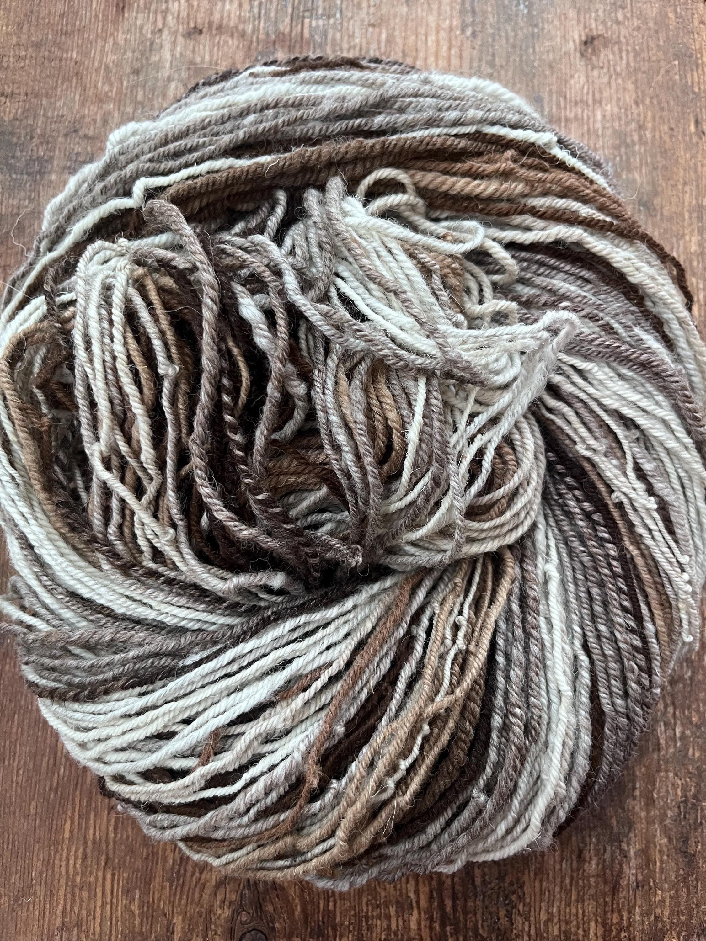 Brown/grey corriedale wool yarn, nubbly lockspun natural art yarn