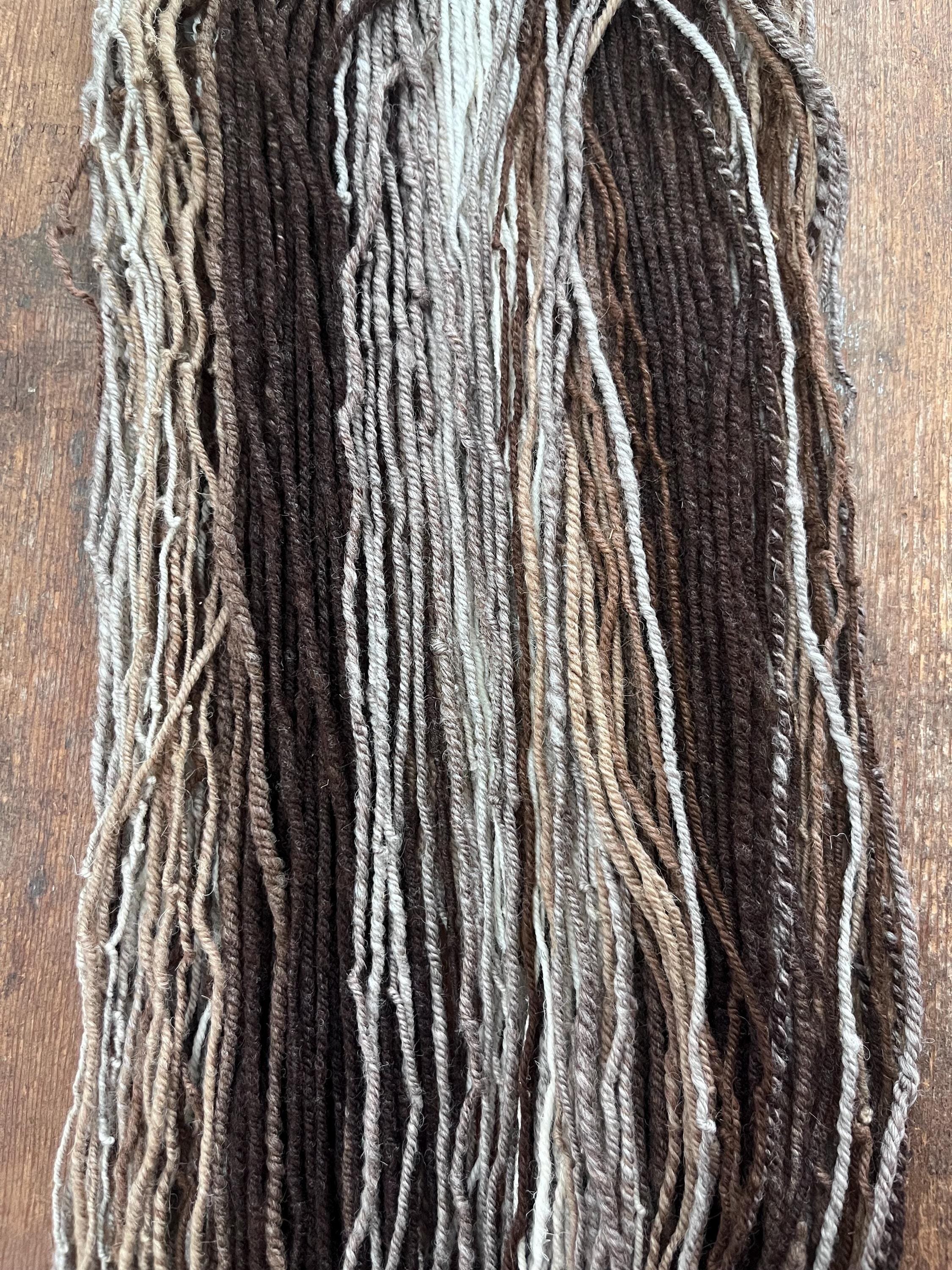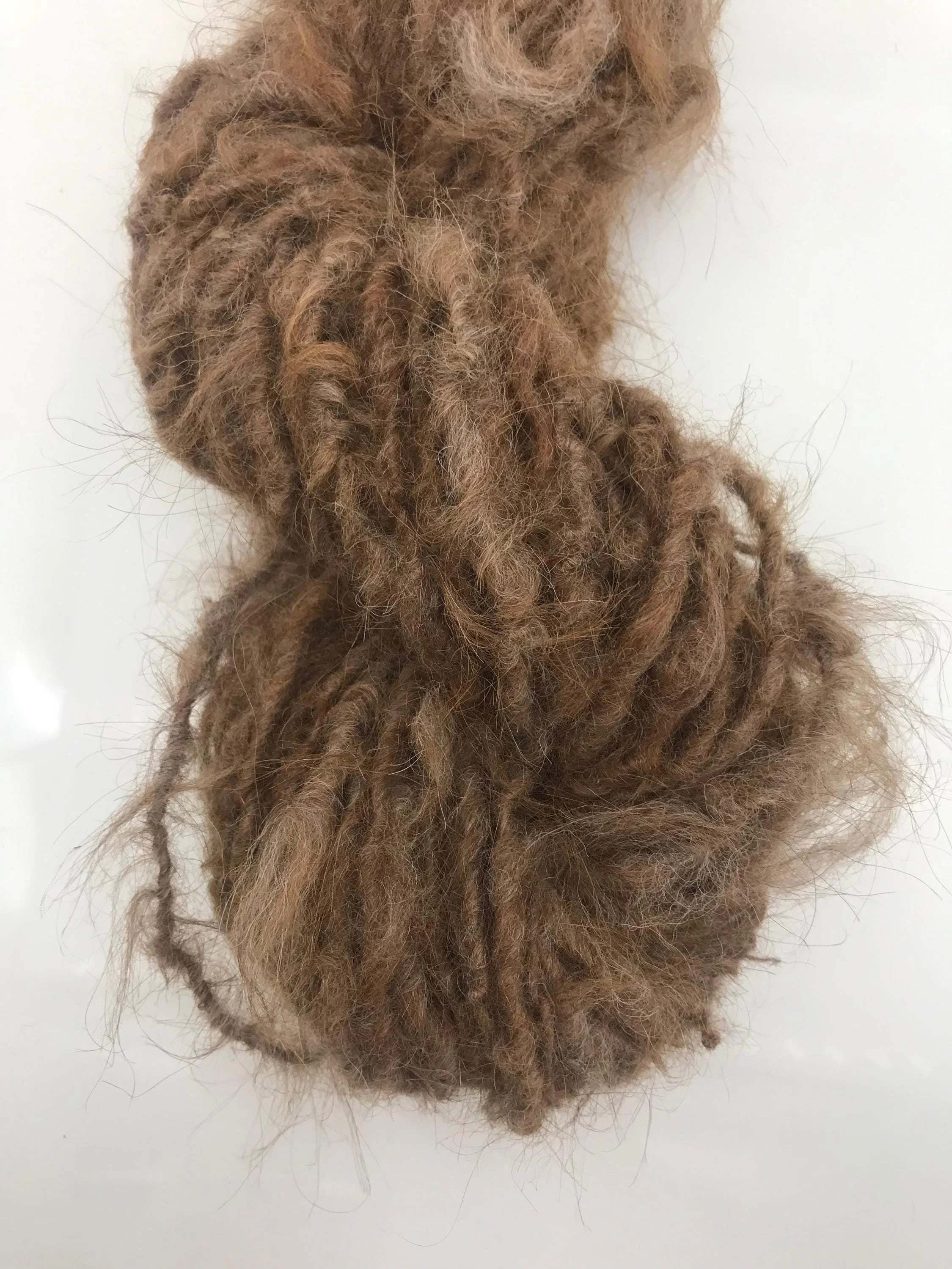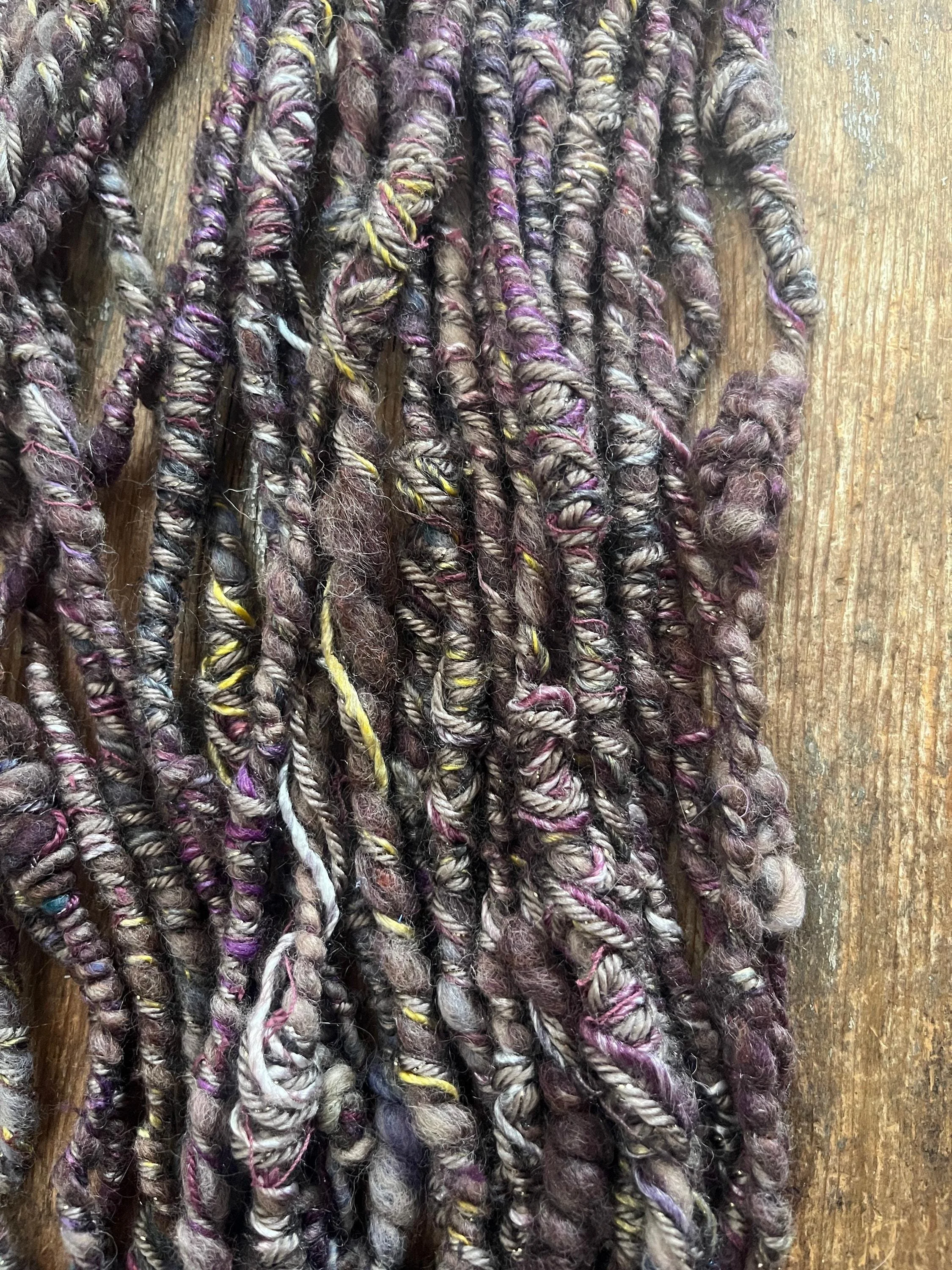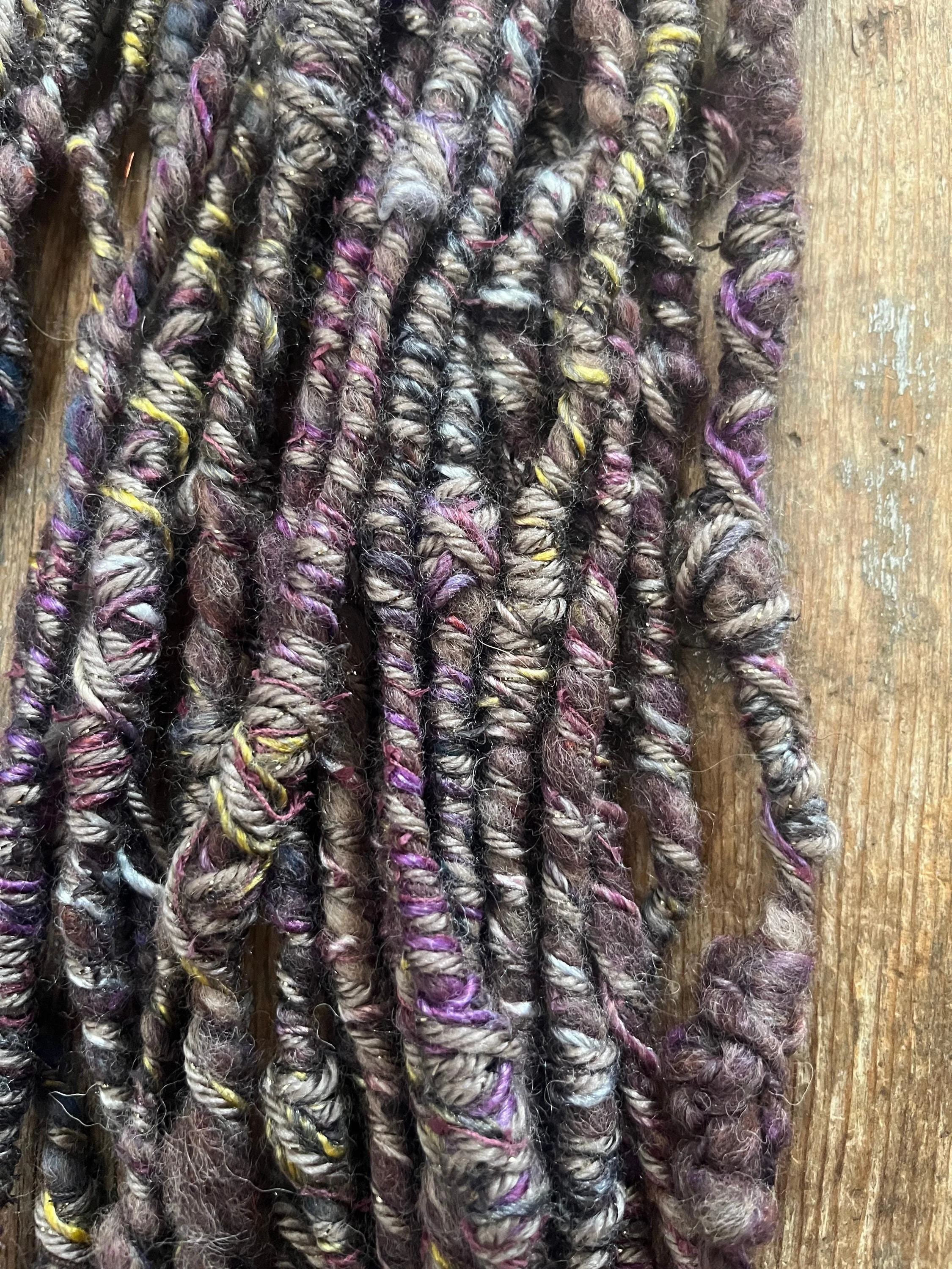Brown/grey corriedale wool yarn, nubbly lockspun natural art yarn