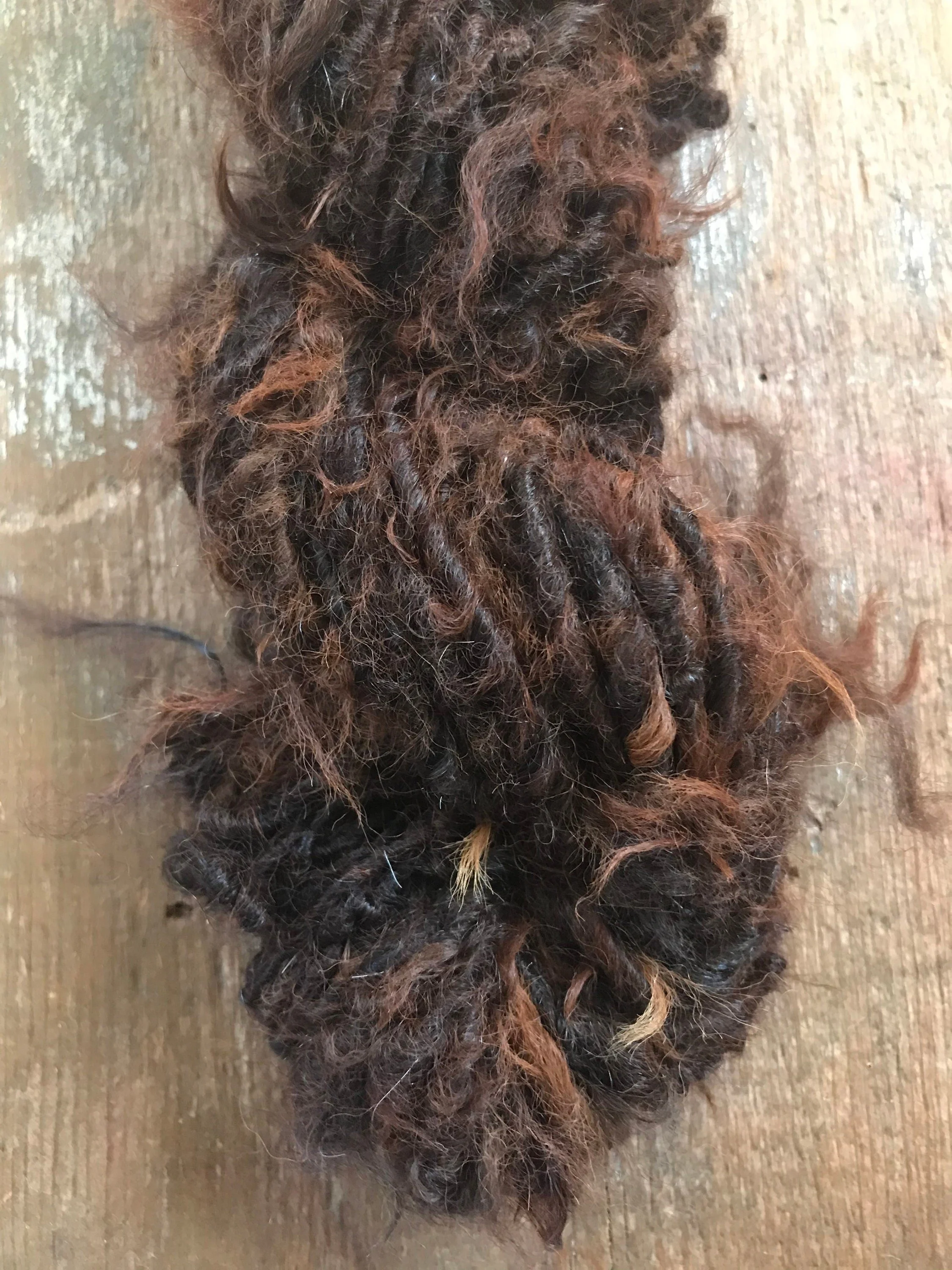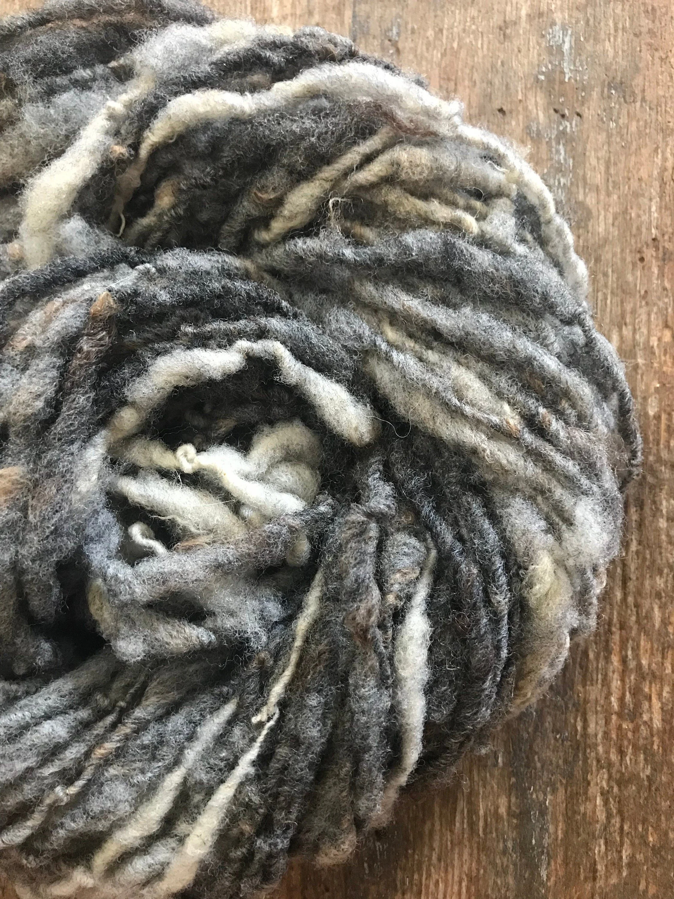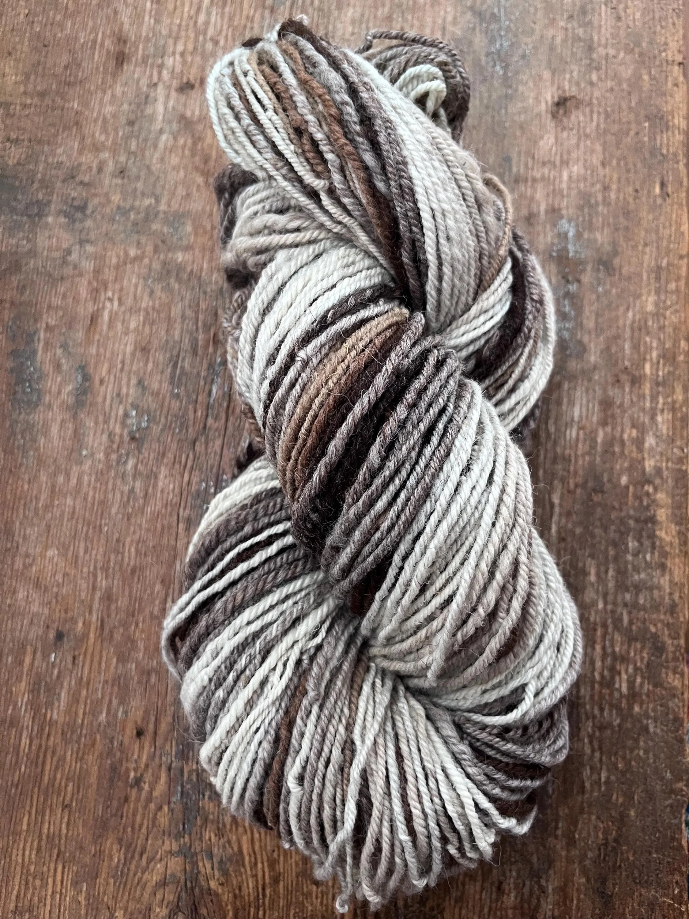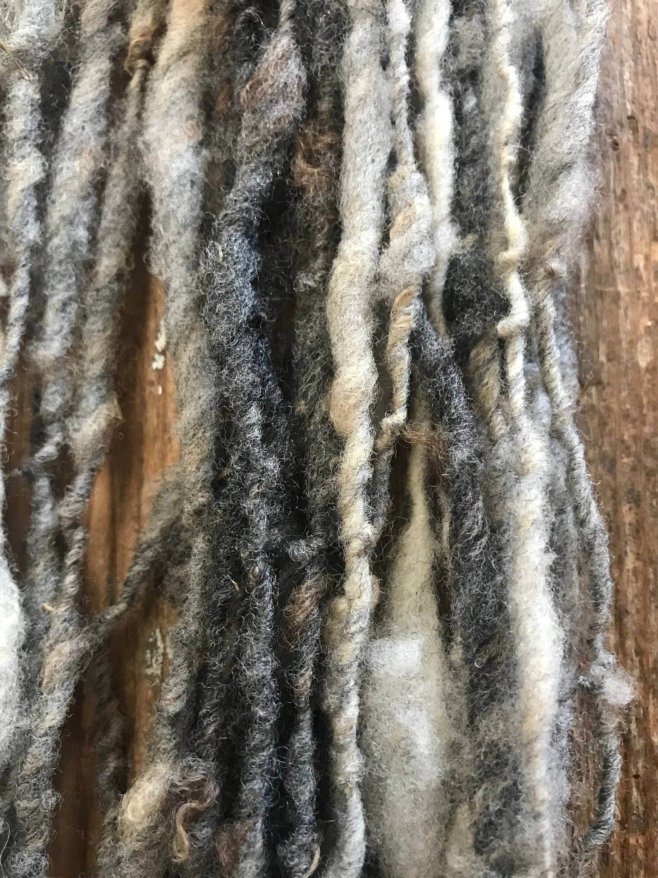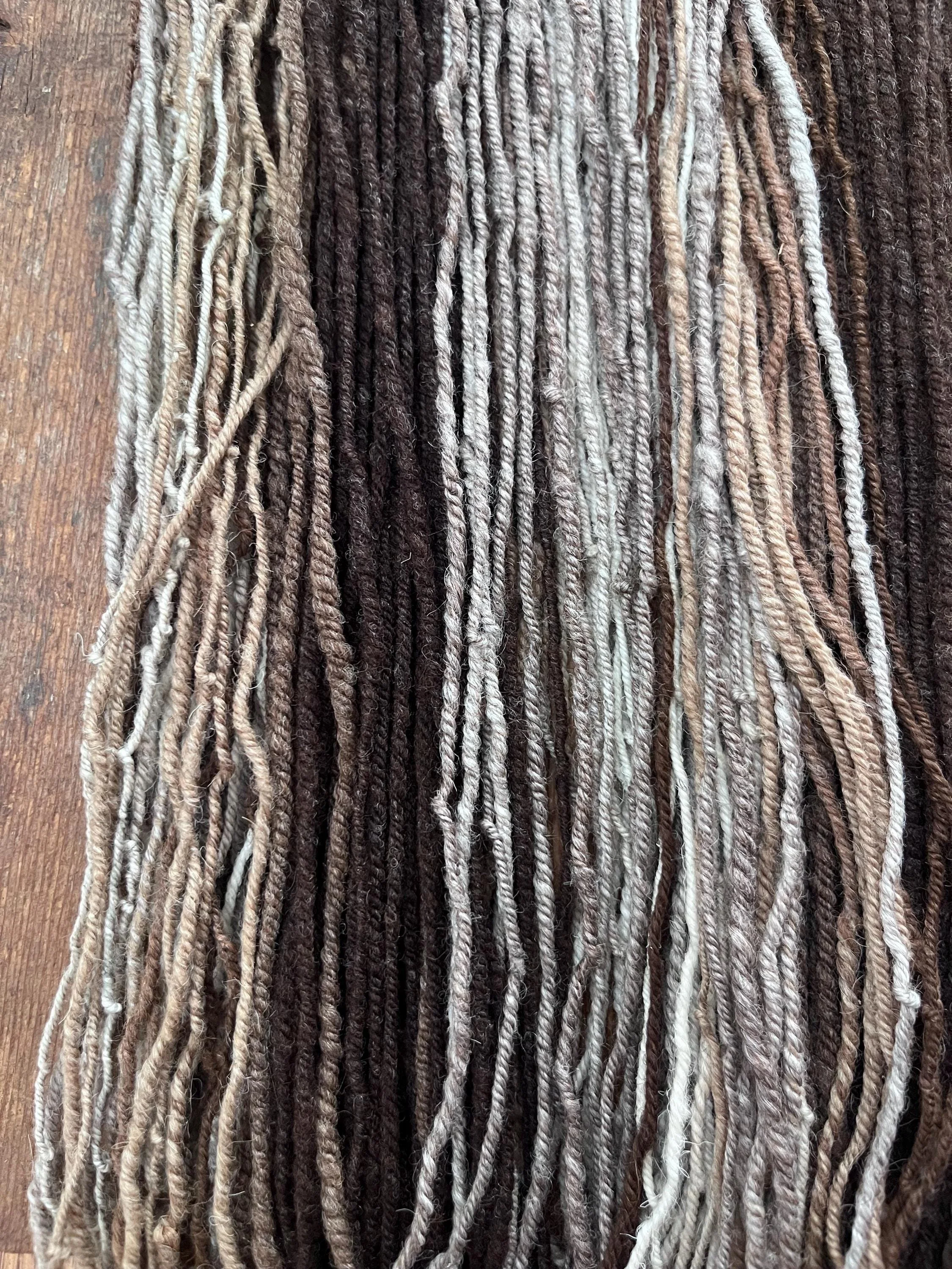 Brown/grey corriedale wool yarn, nubbly lockspun natural art yarn