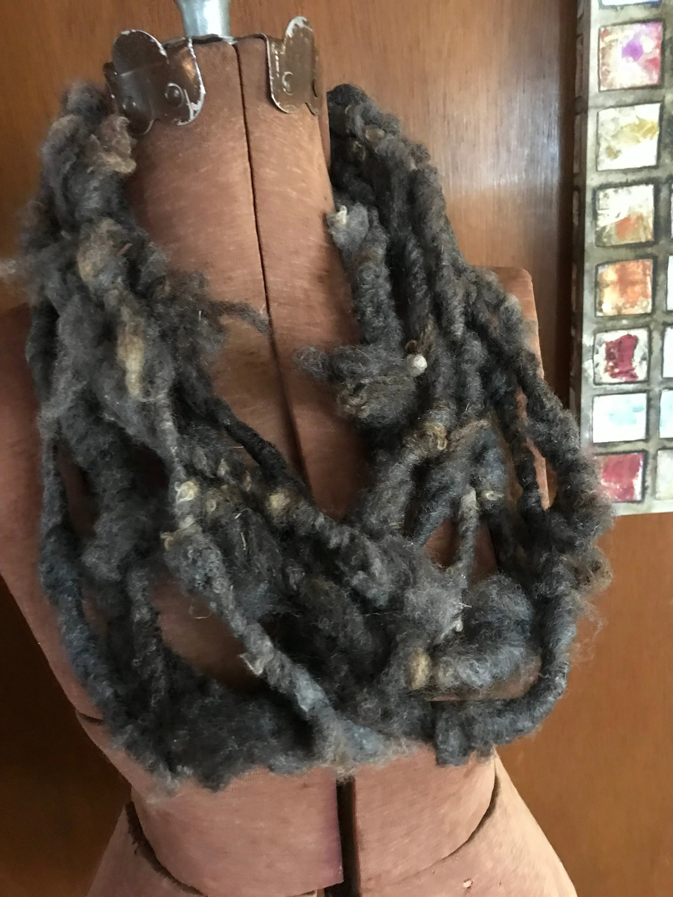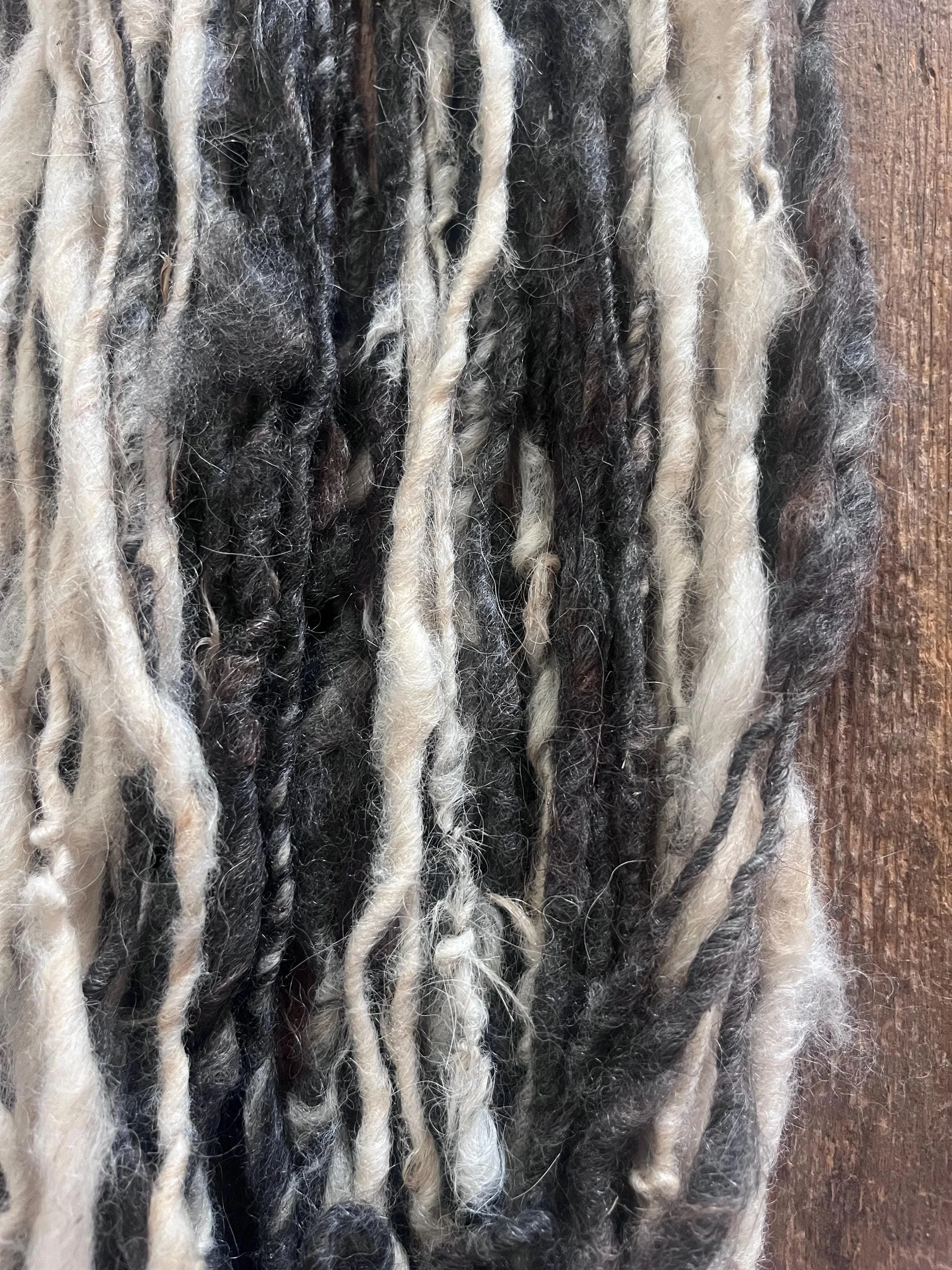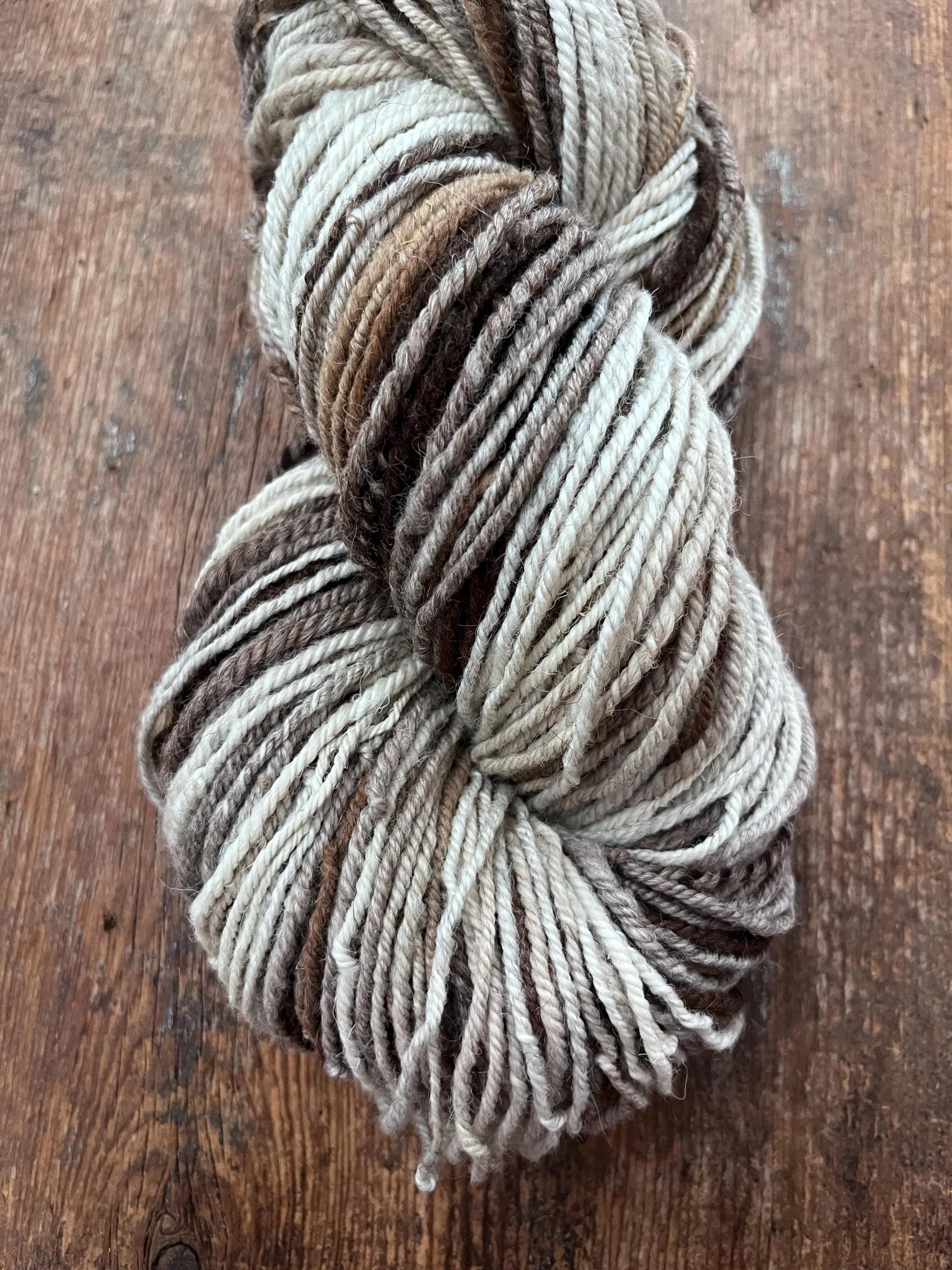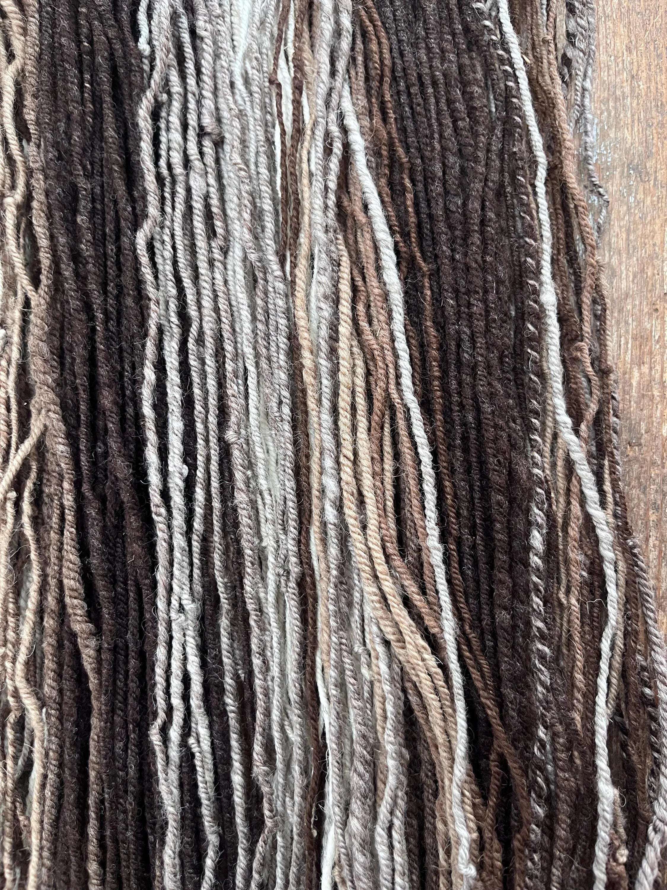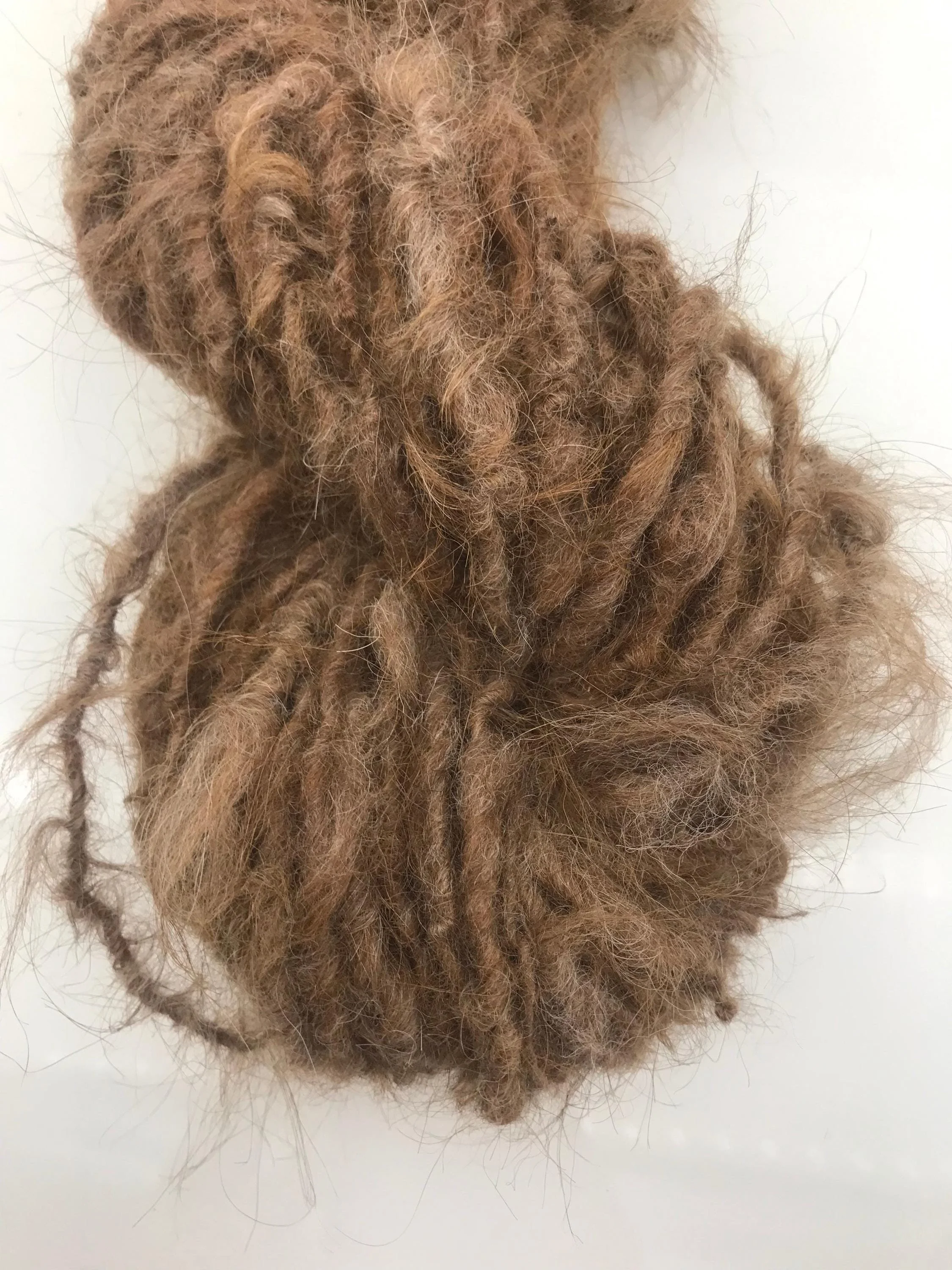 Brown/grey corriedale wool yarn, nubbly lockspun natural art yarn