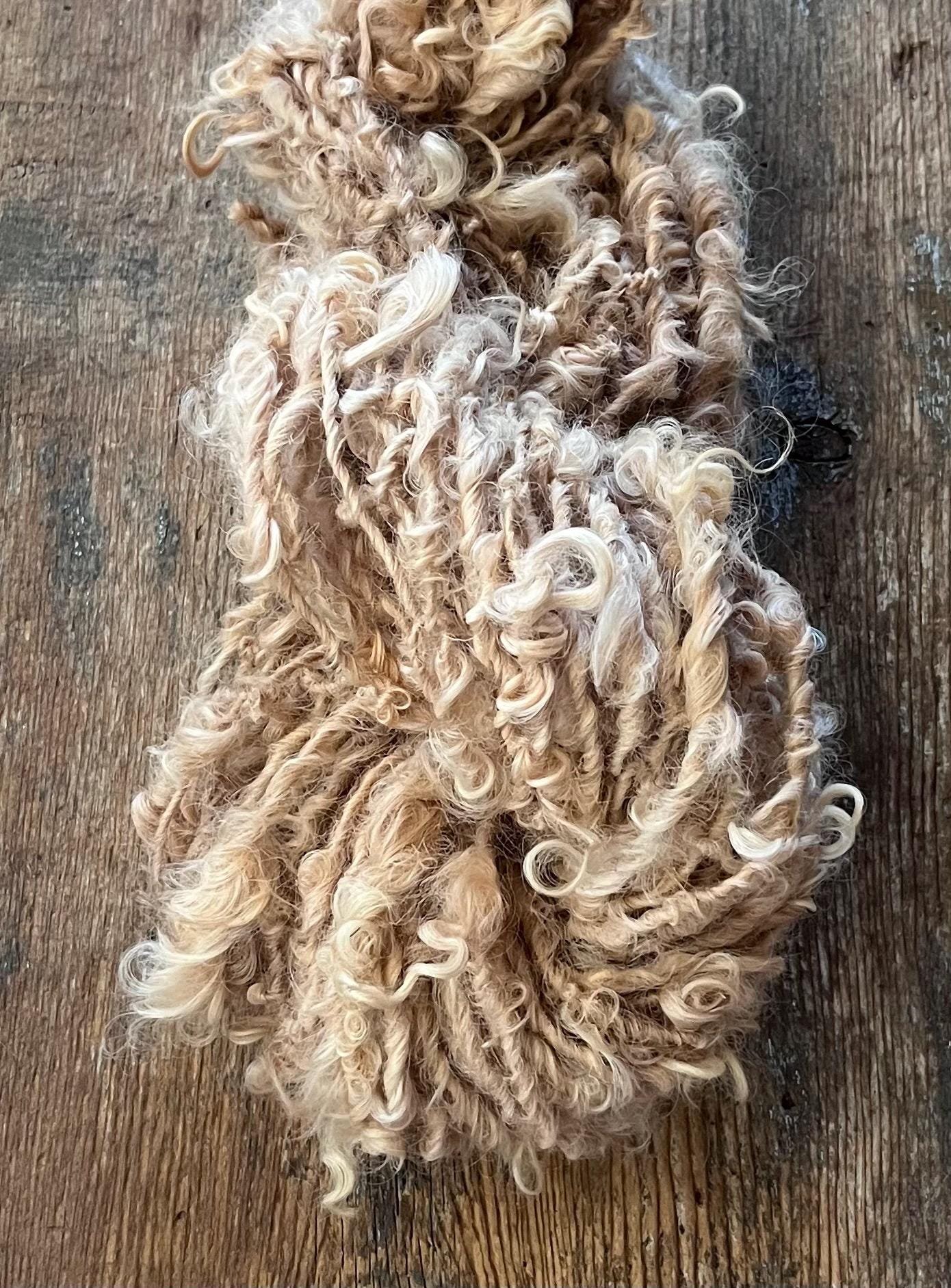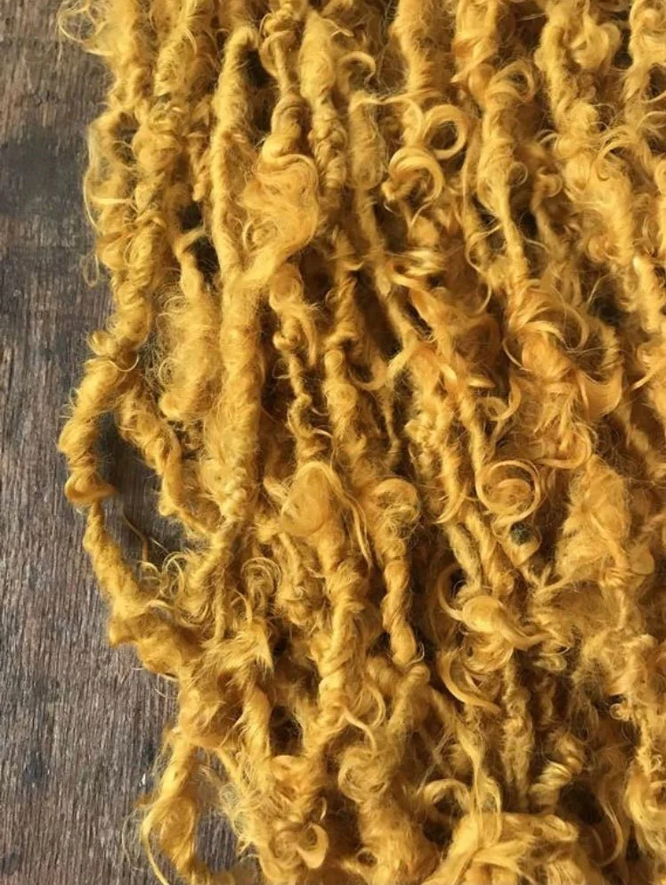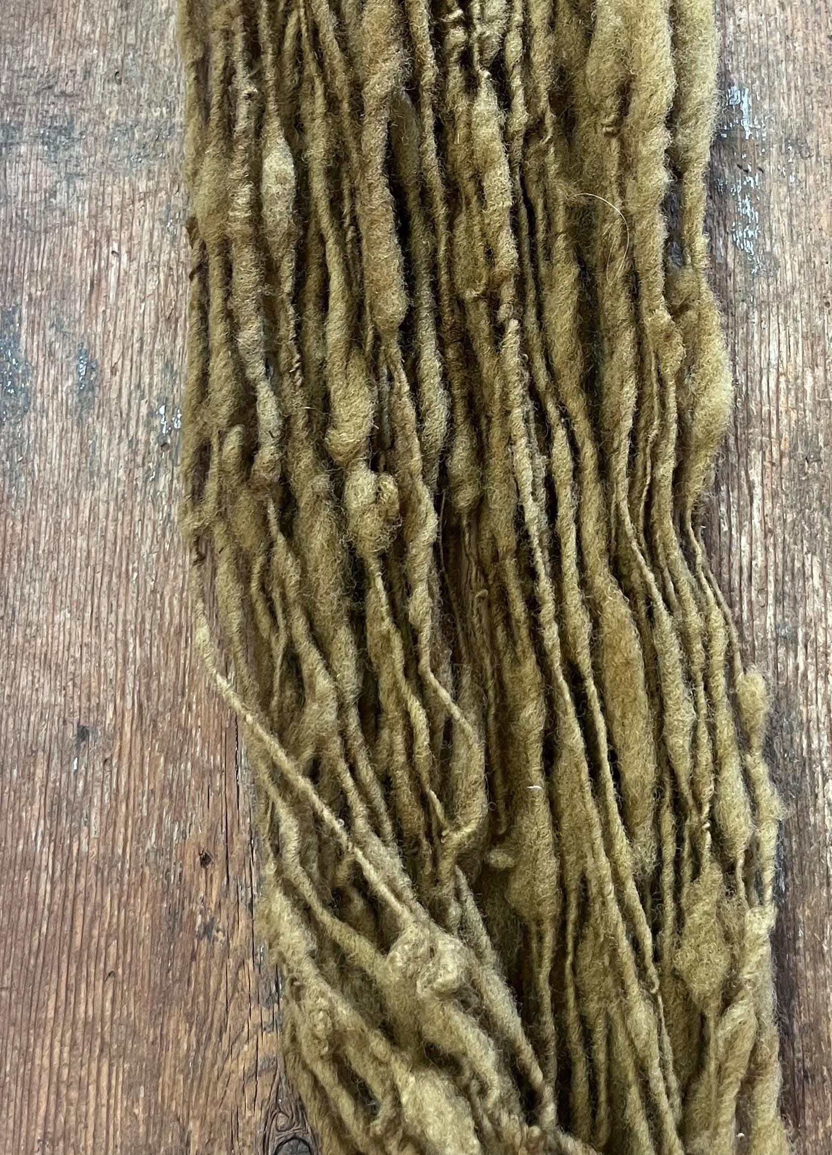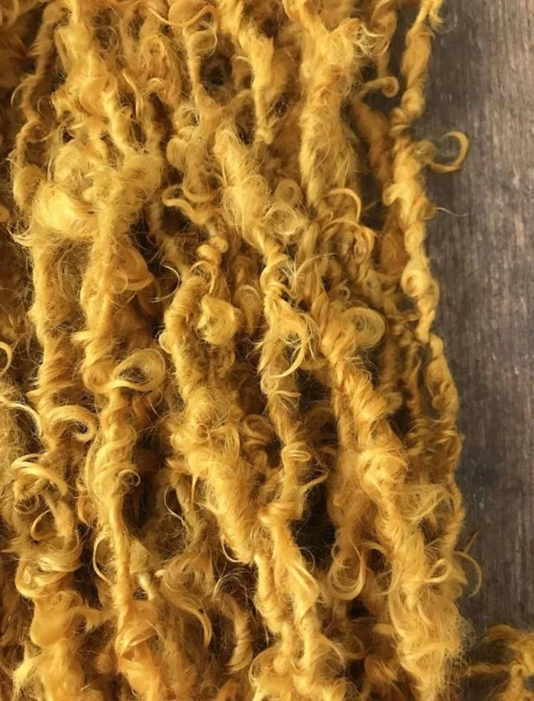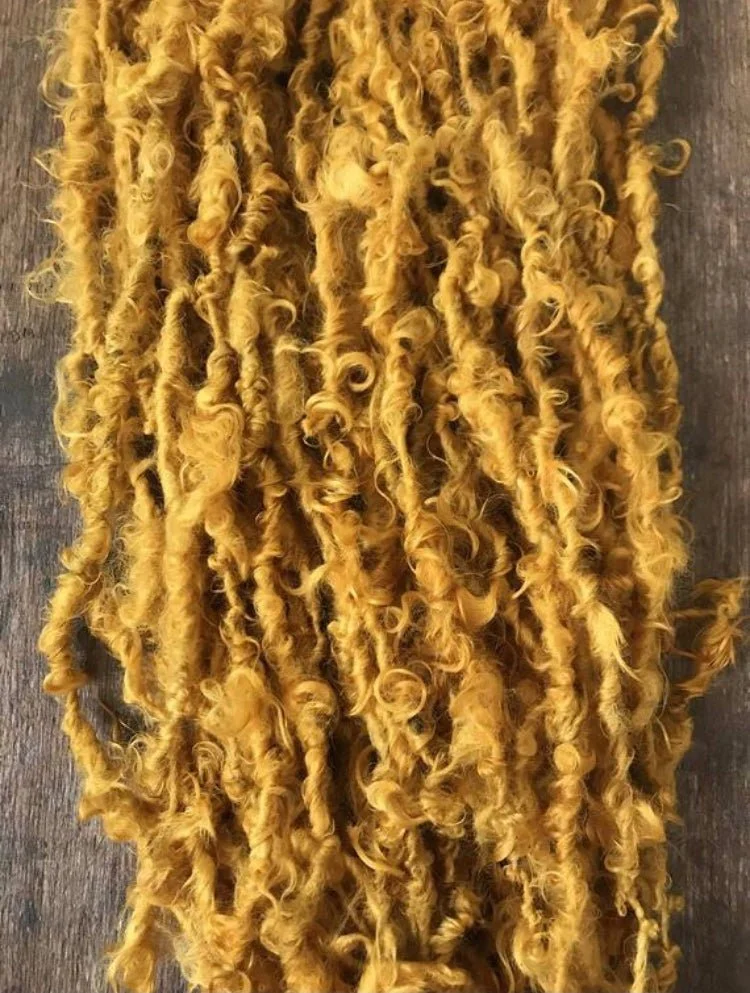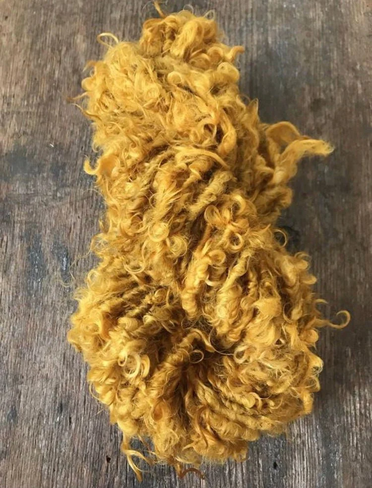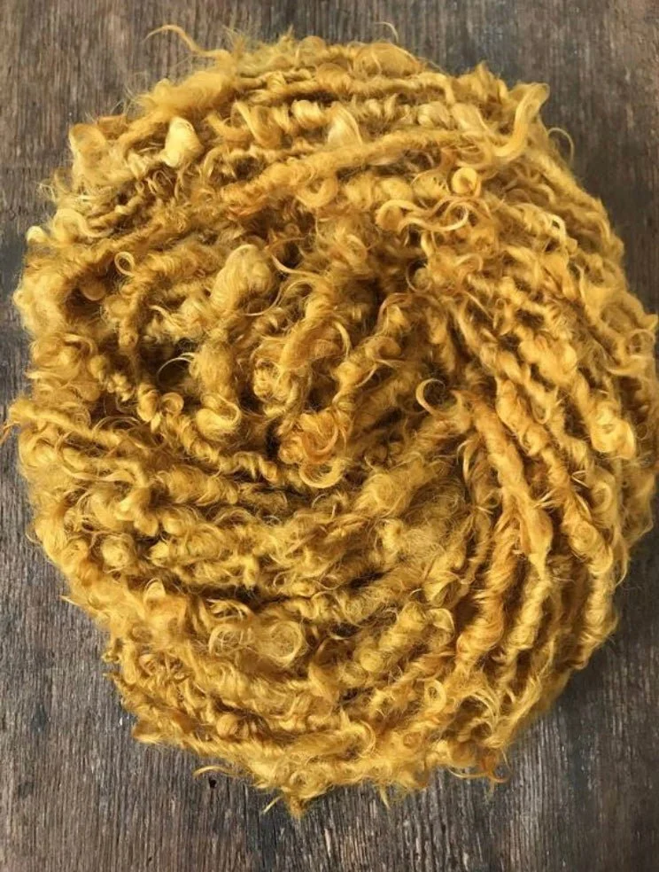 Honey Mustard Lincoln wool locks yarn, bulky curly art yarn