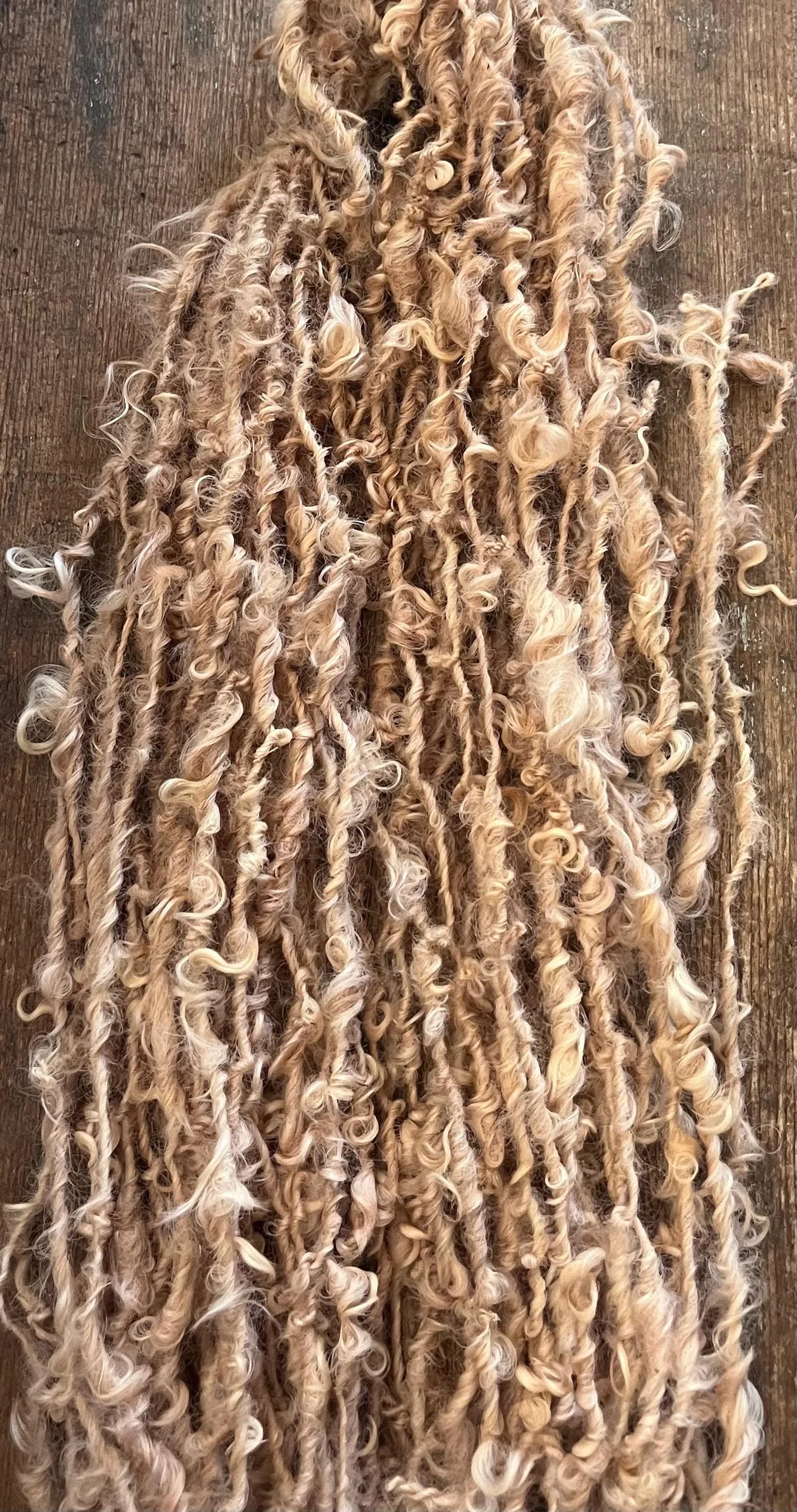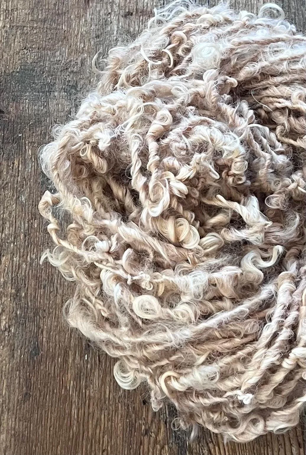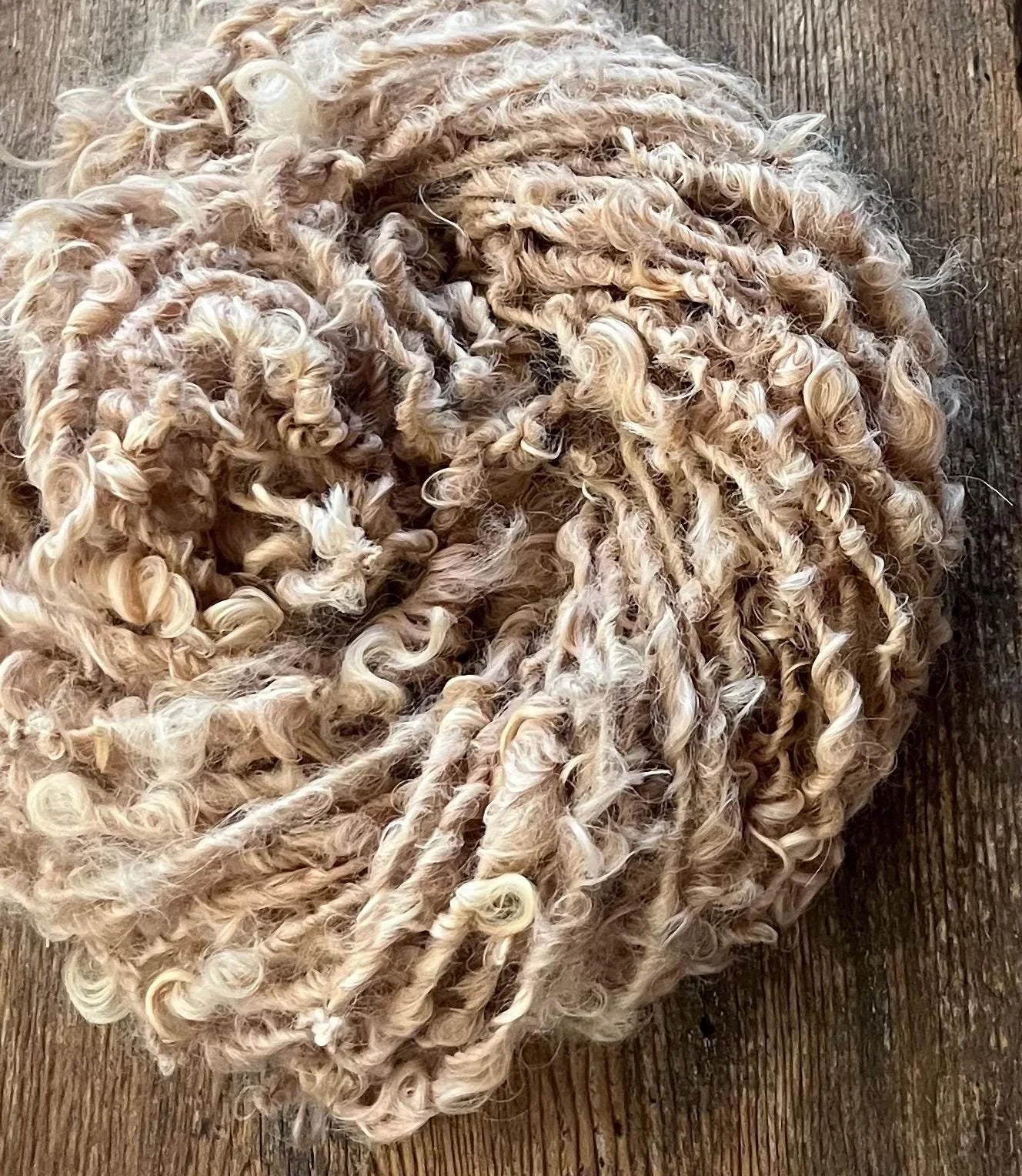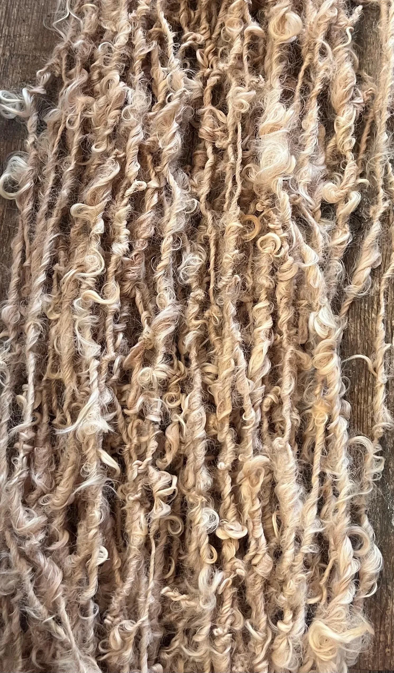 Honey Mustard Lincoln wool locks yarn, bulky curly art yarn