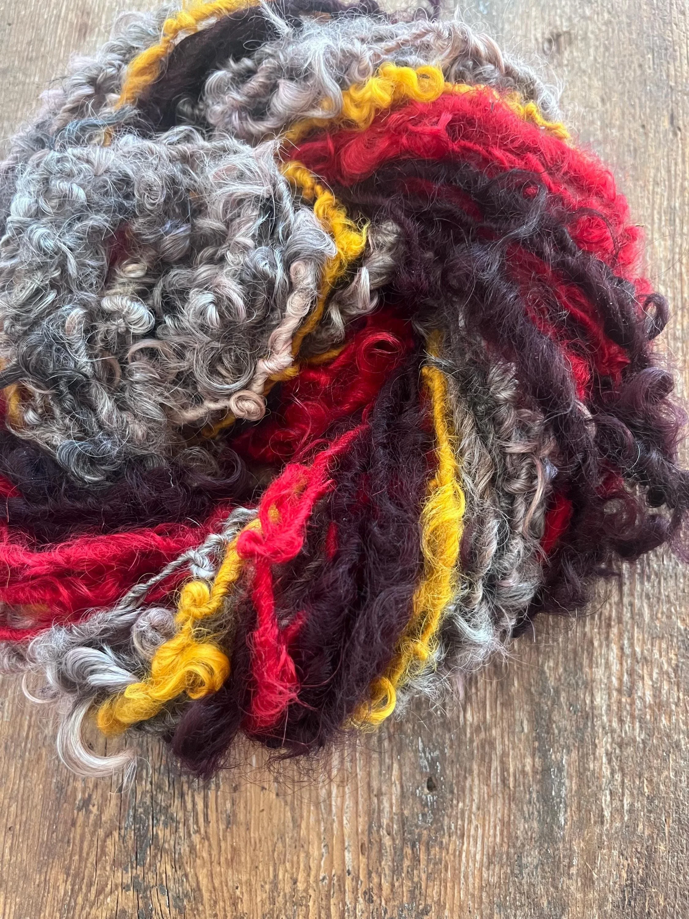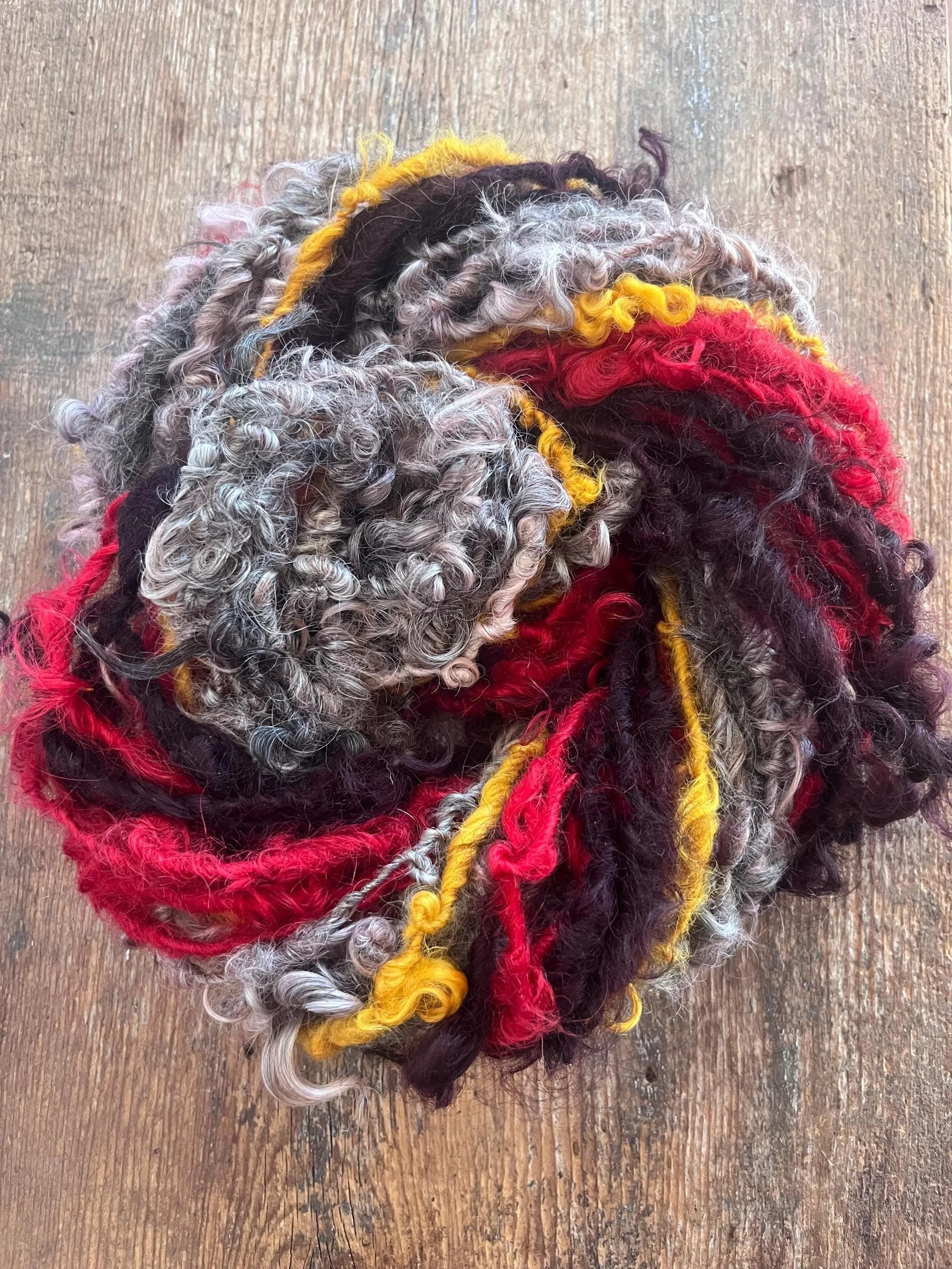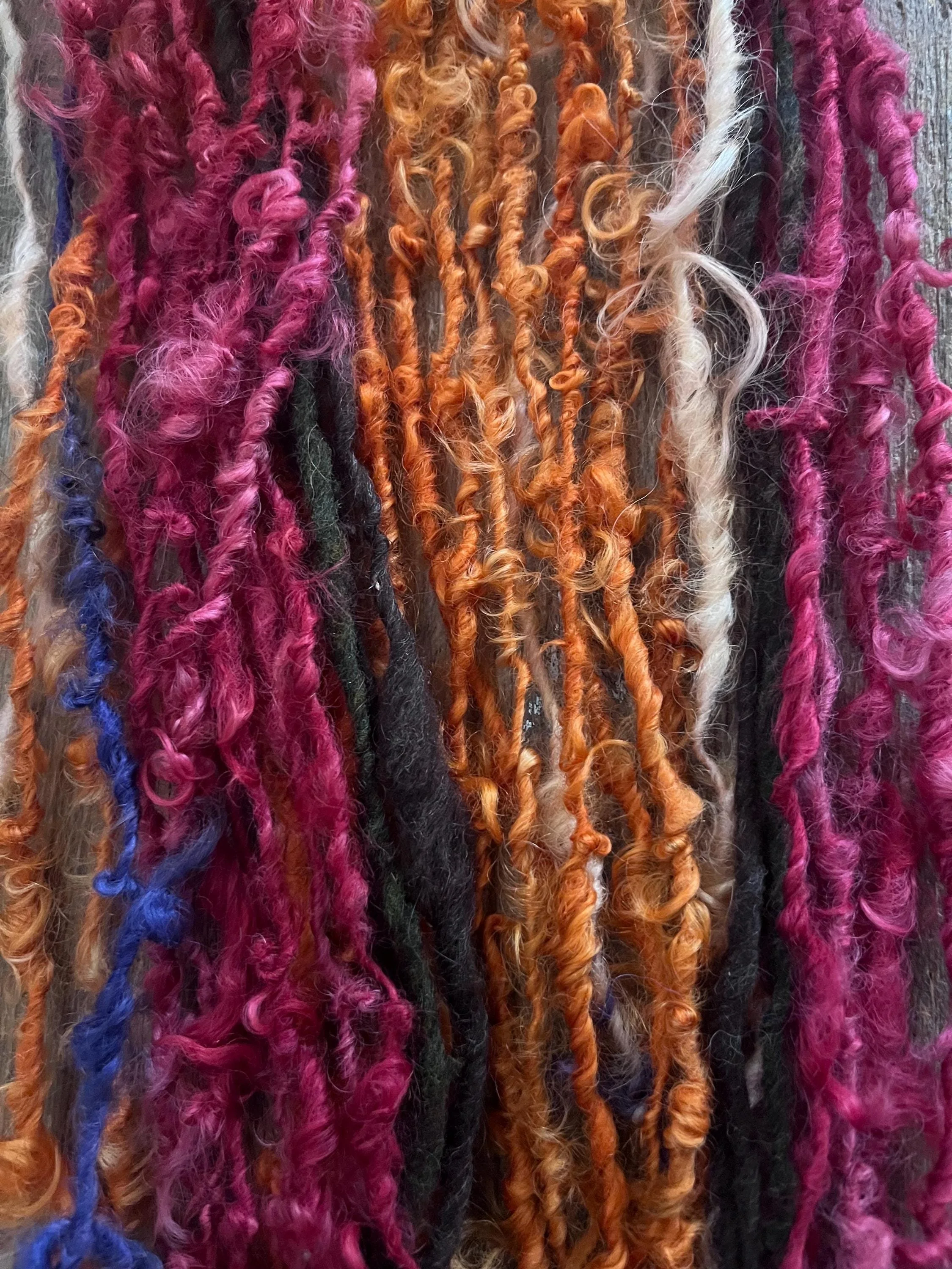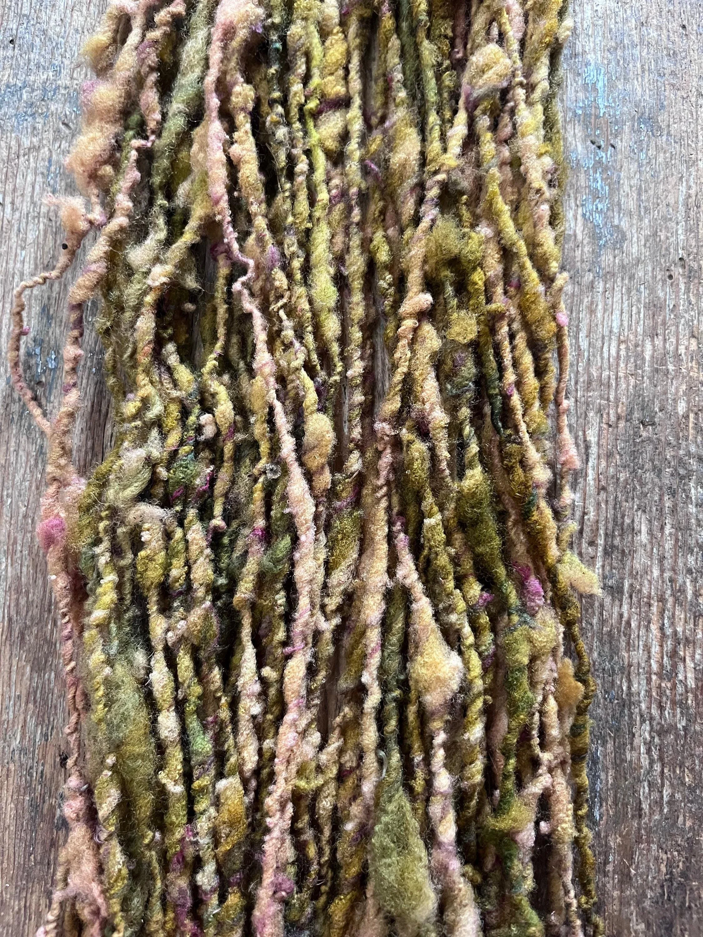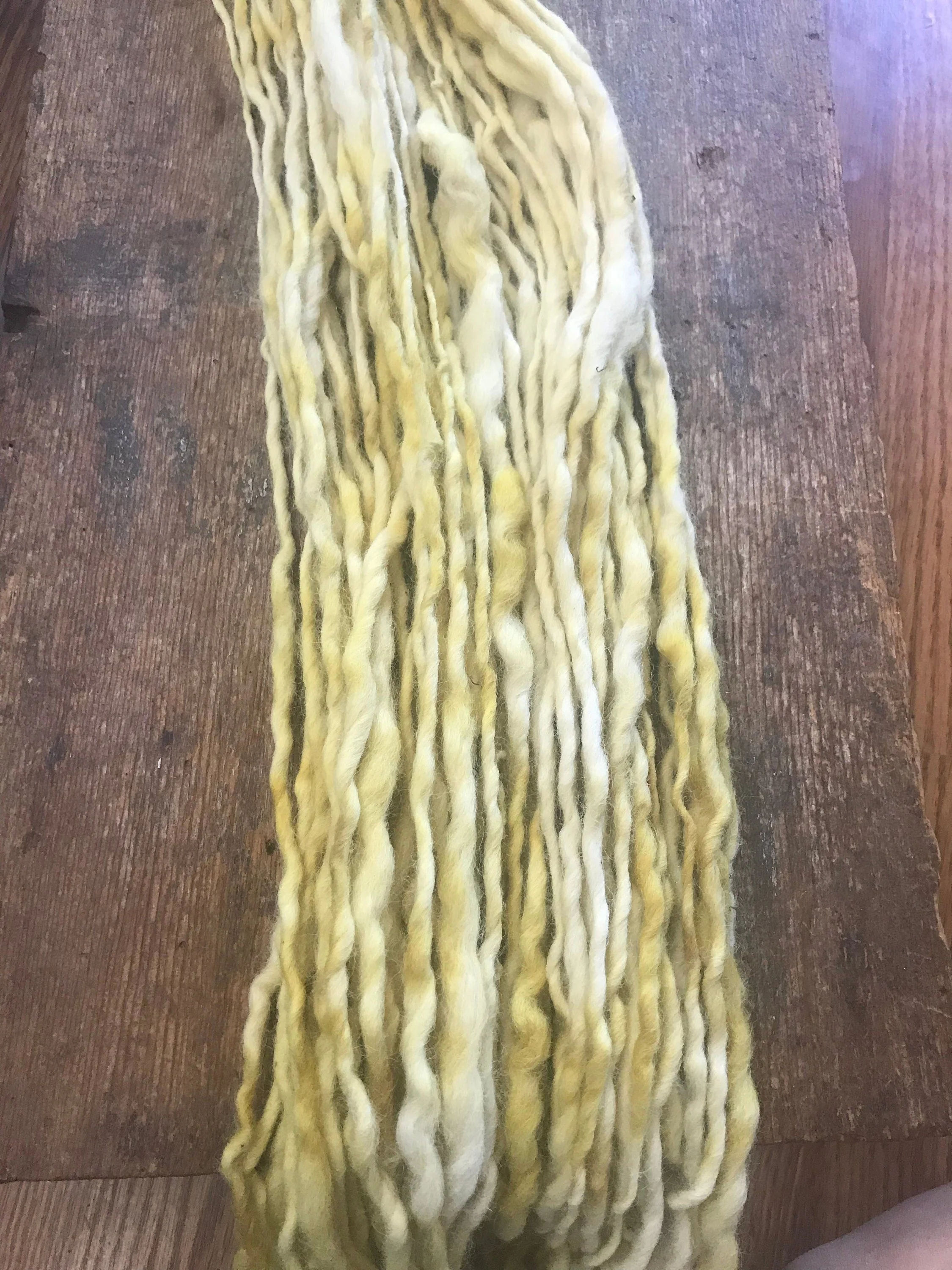 Honey Mustard Lincoln wool locks yarn, bulky curly art yarn