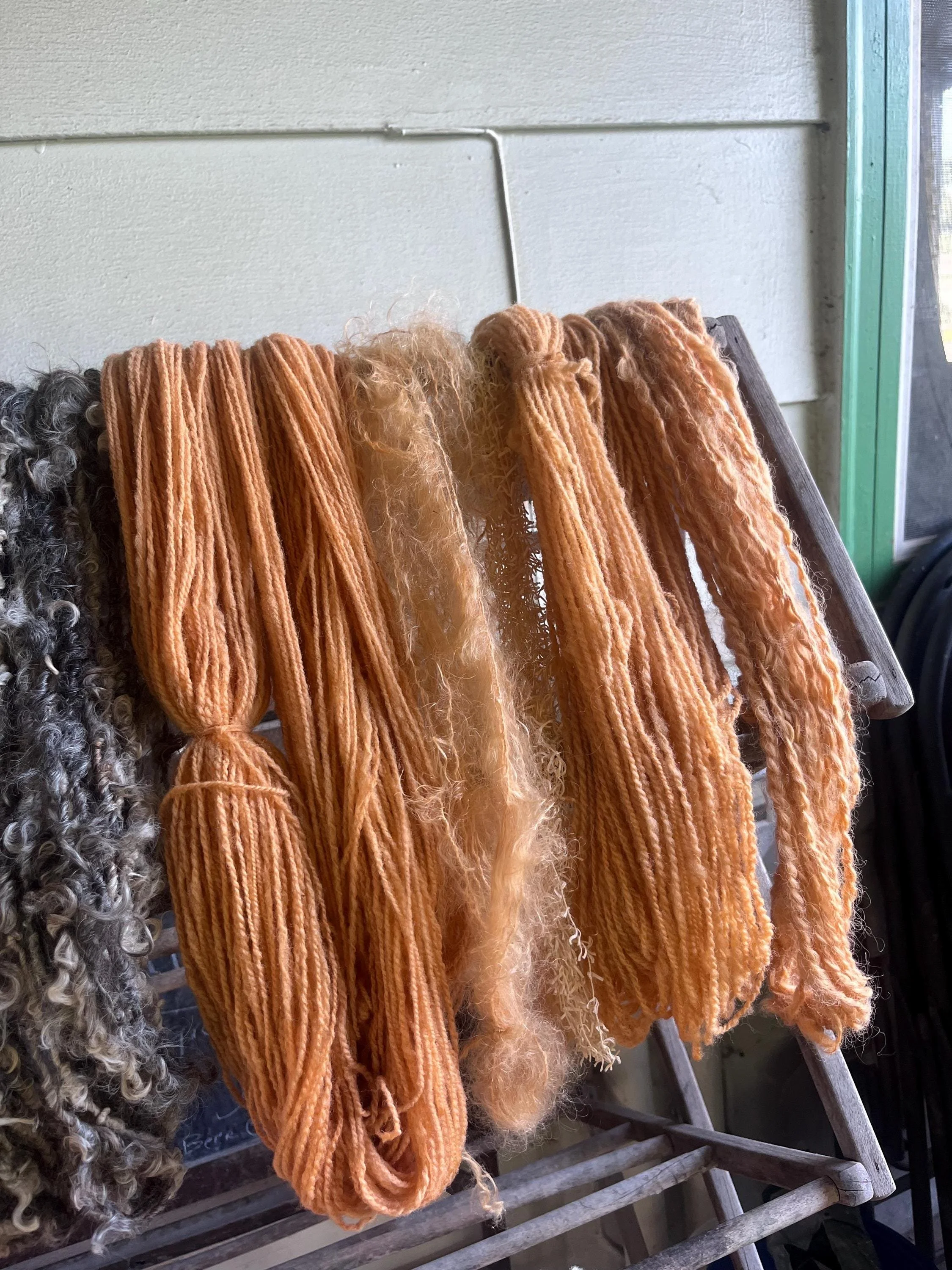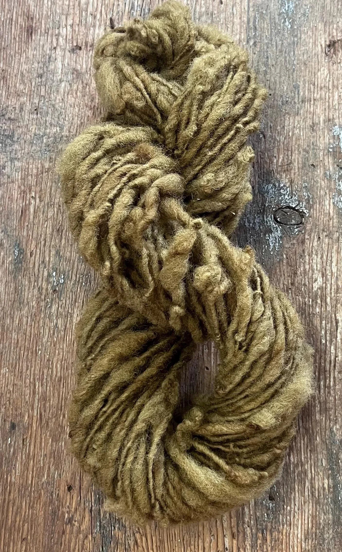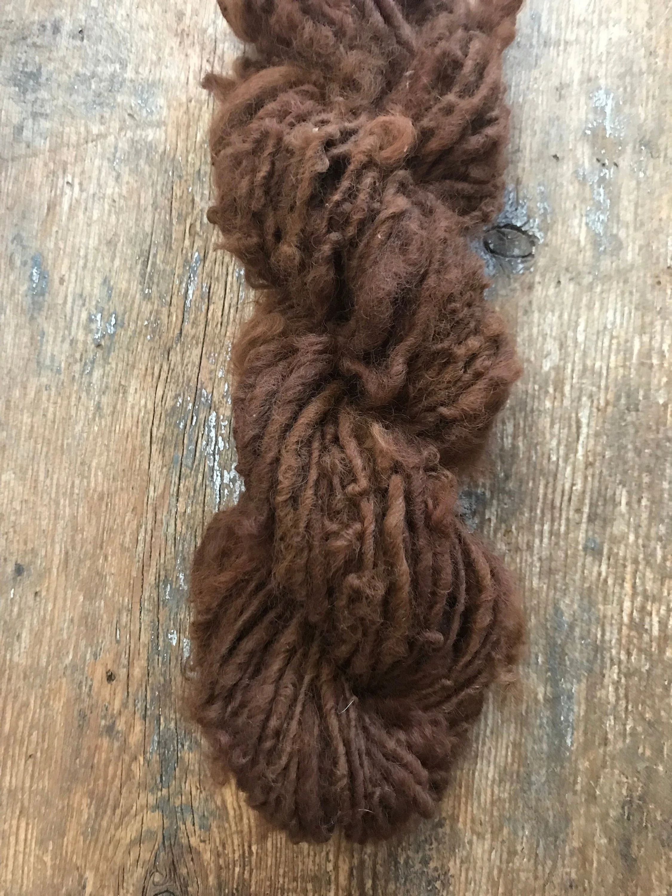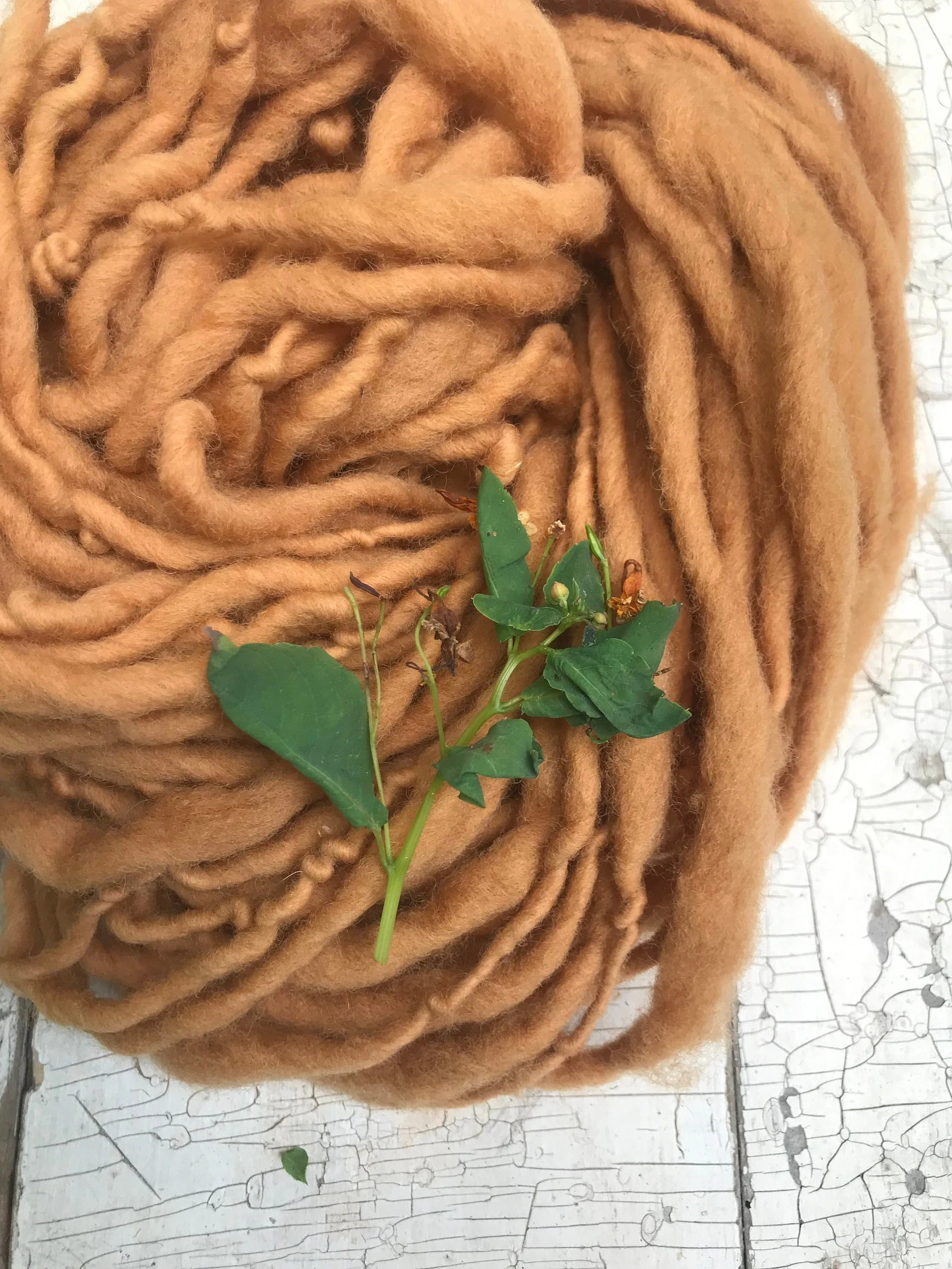 Onion skin naturally dyed zero waste handspun textured wool art yarn
