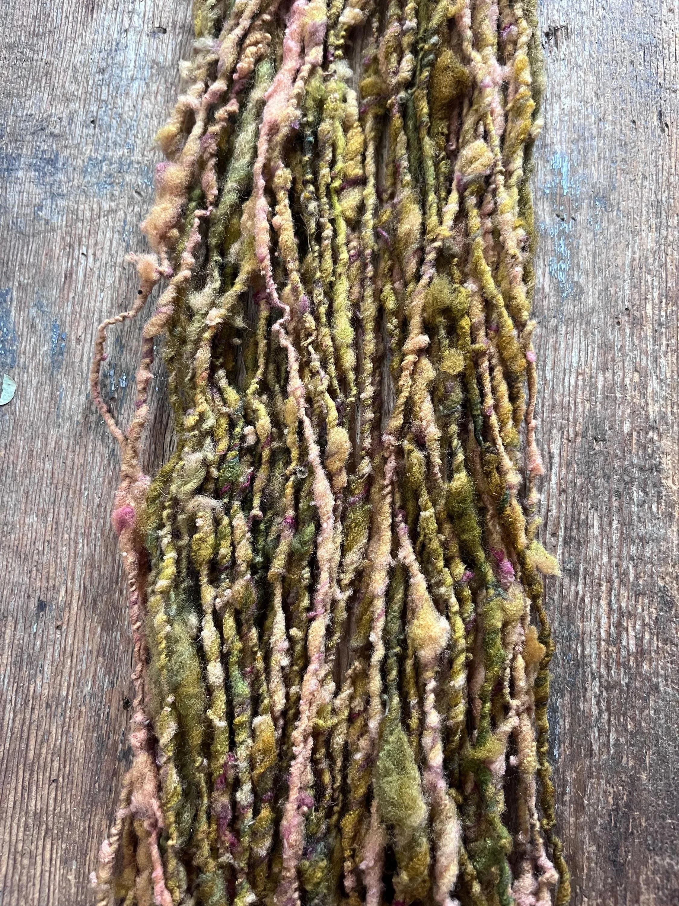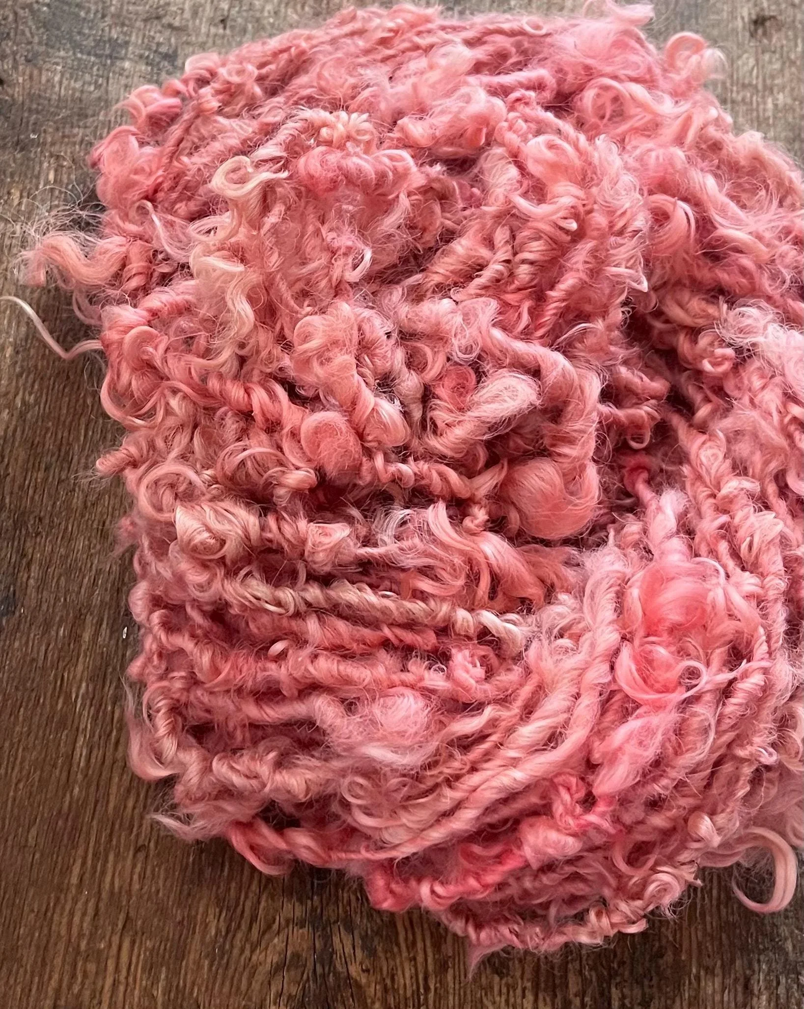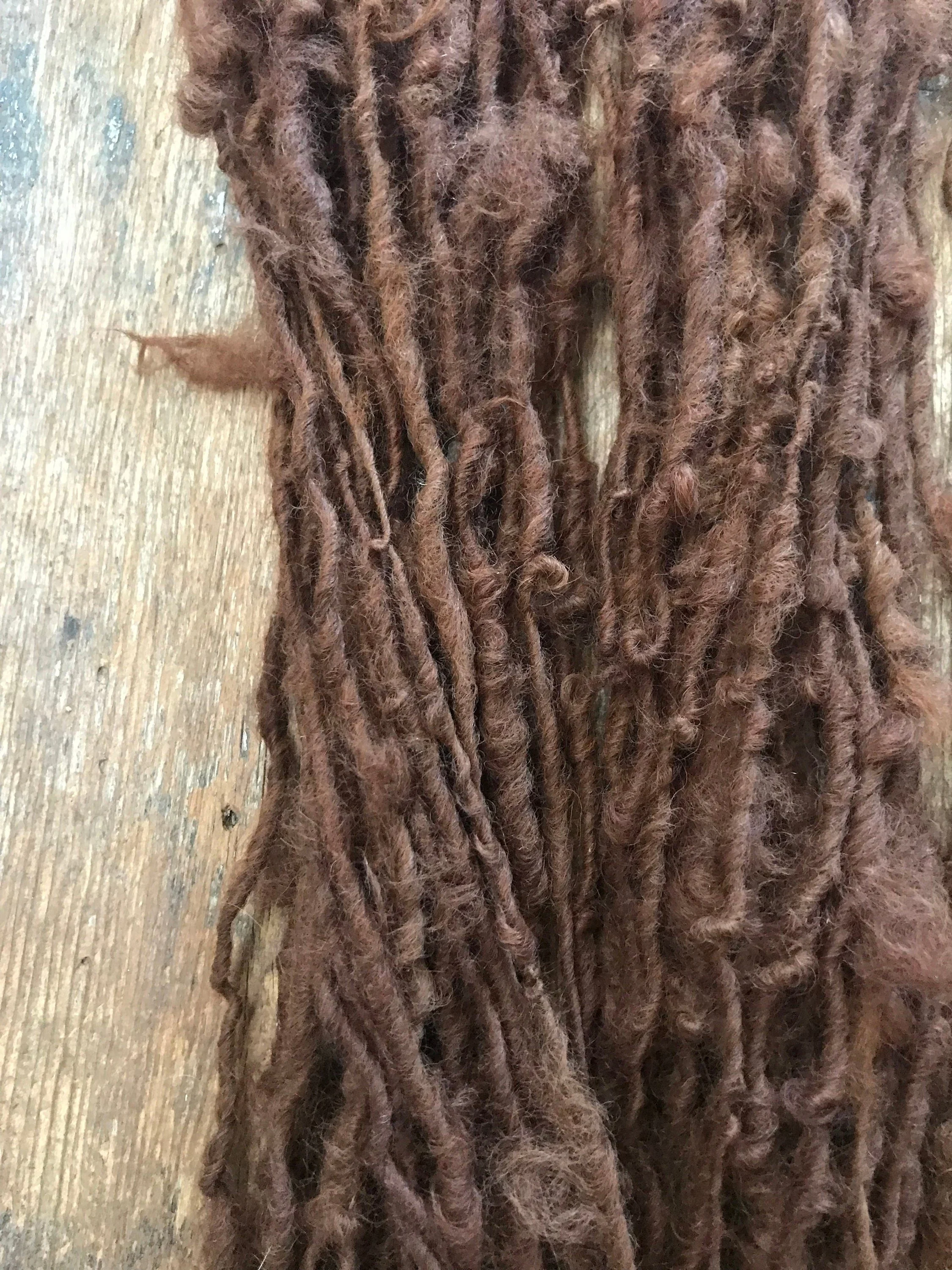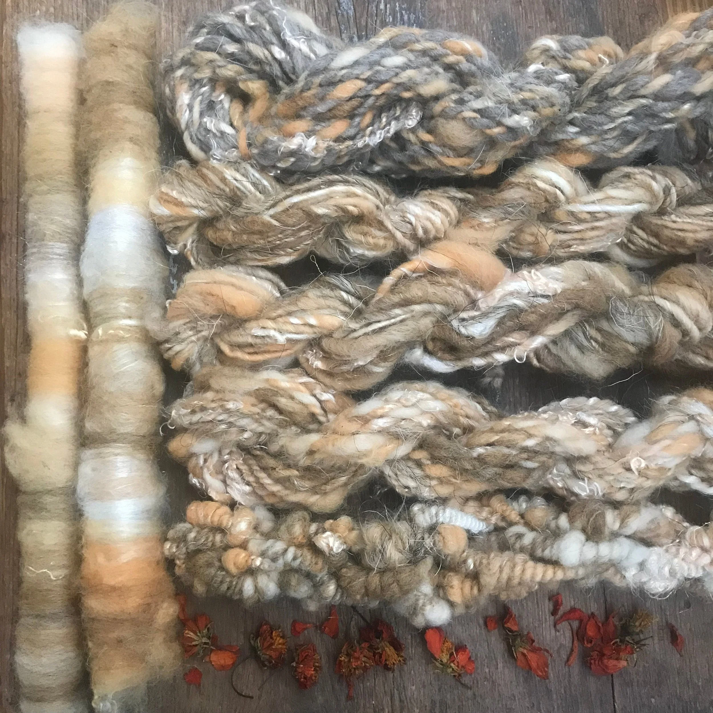 Onion skin naturally dyed zero waste handspun textured wool art yarn