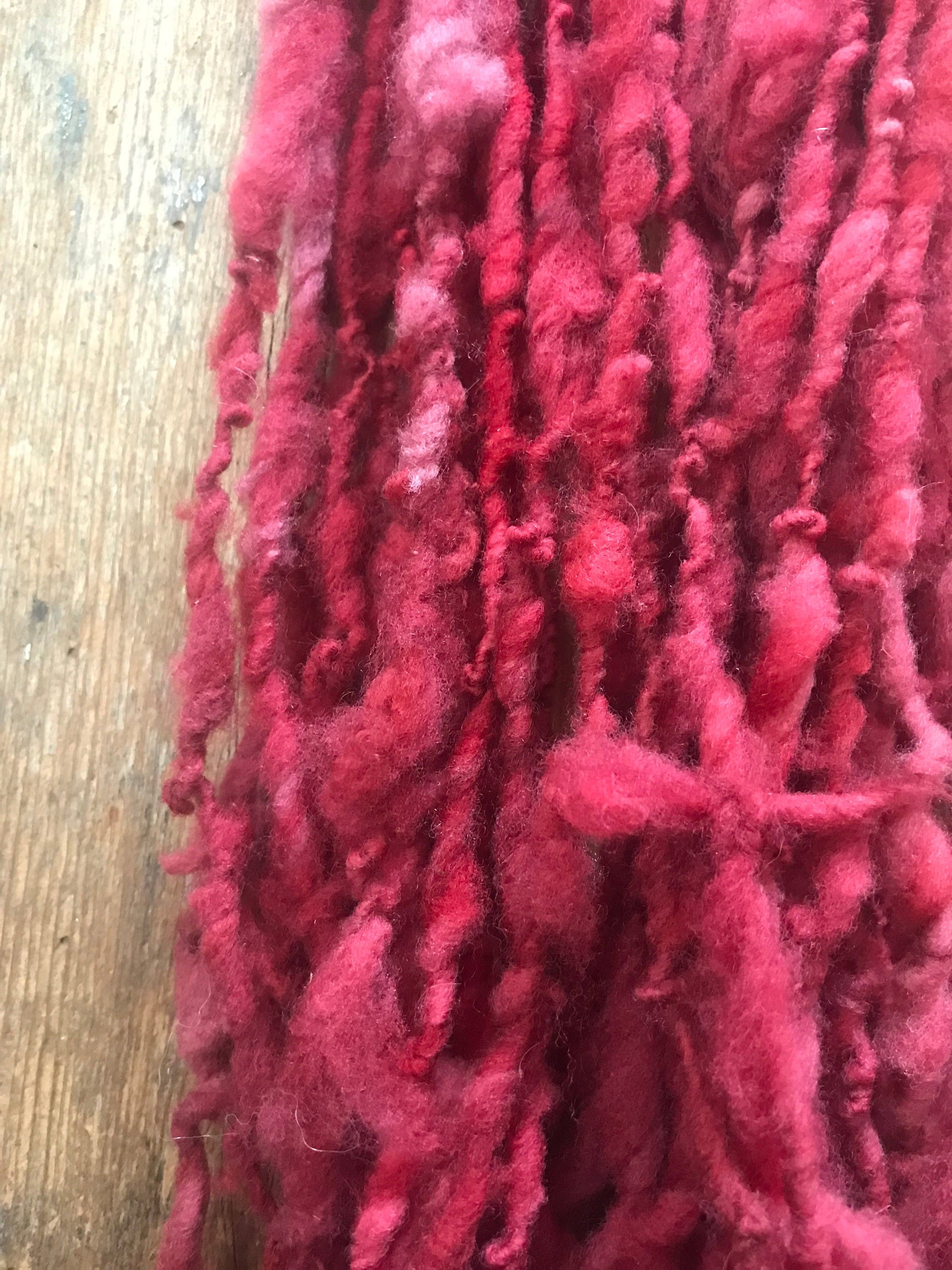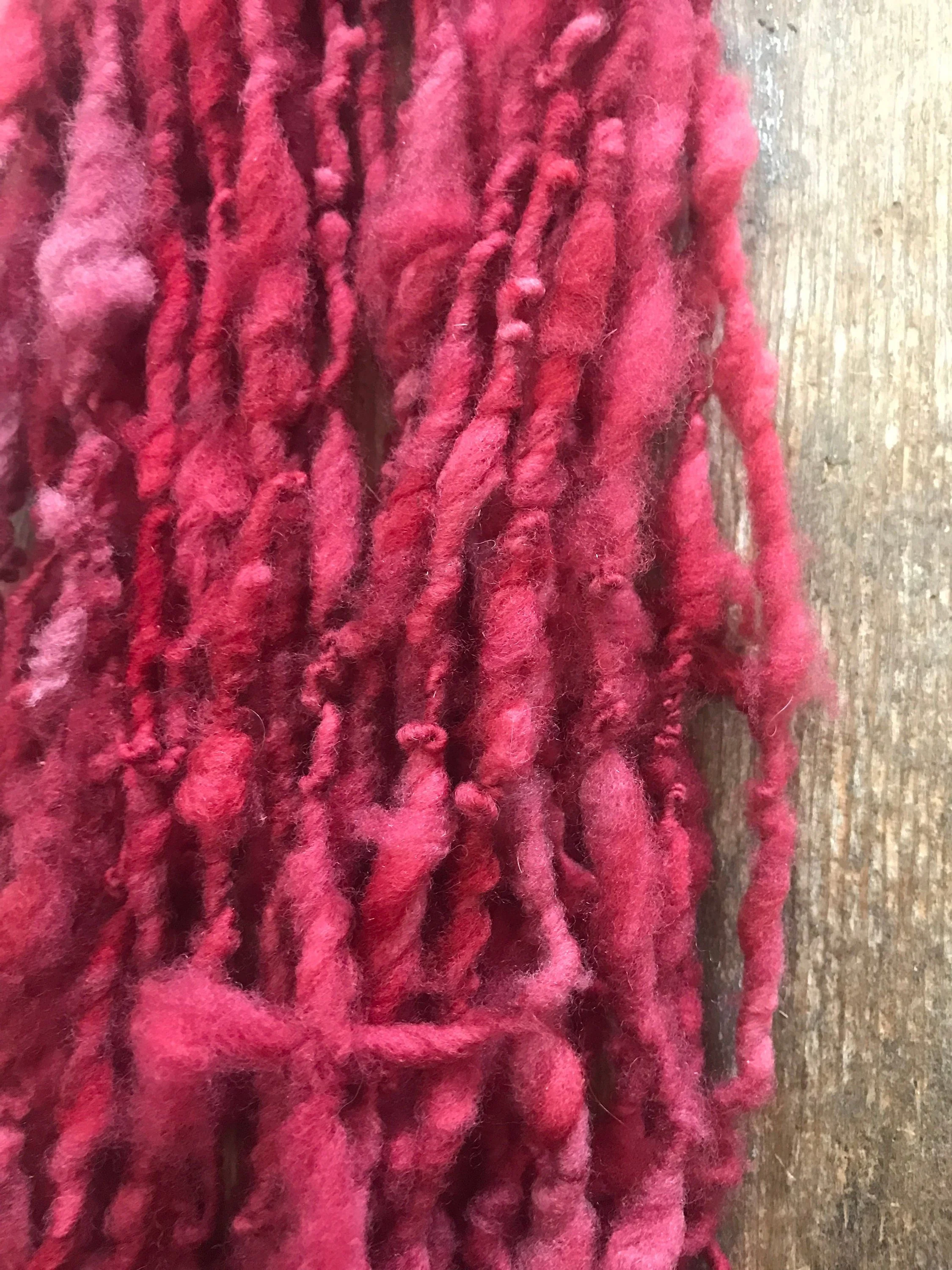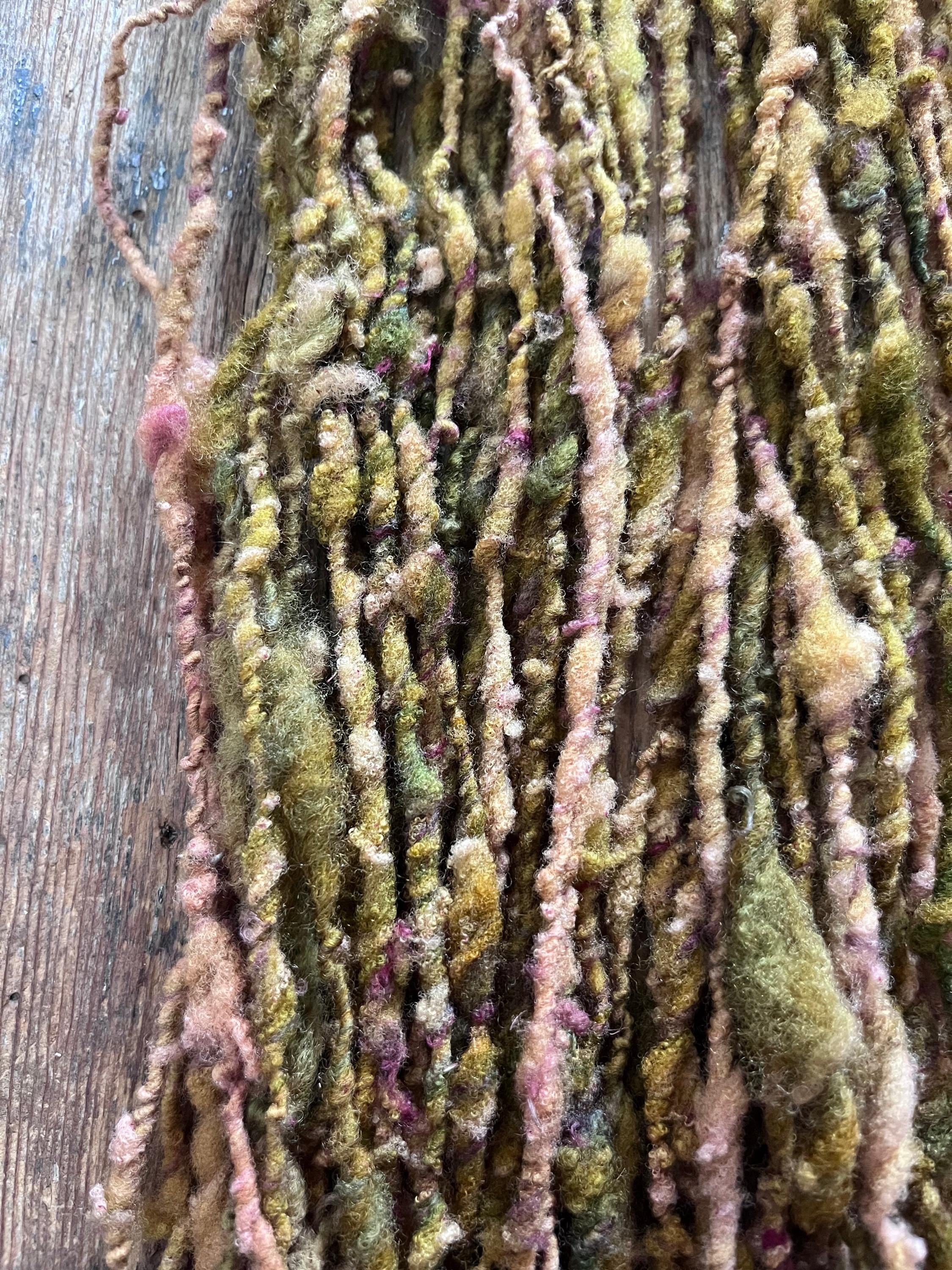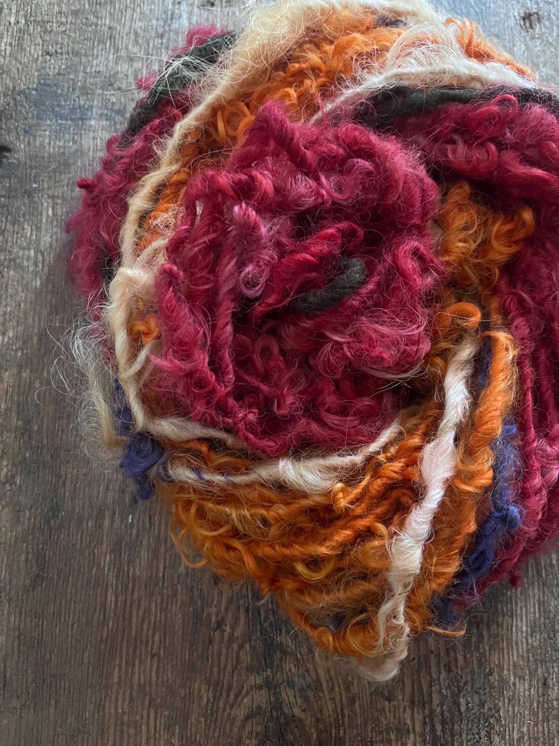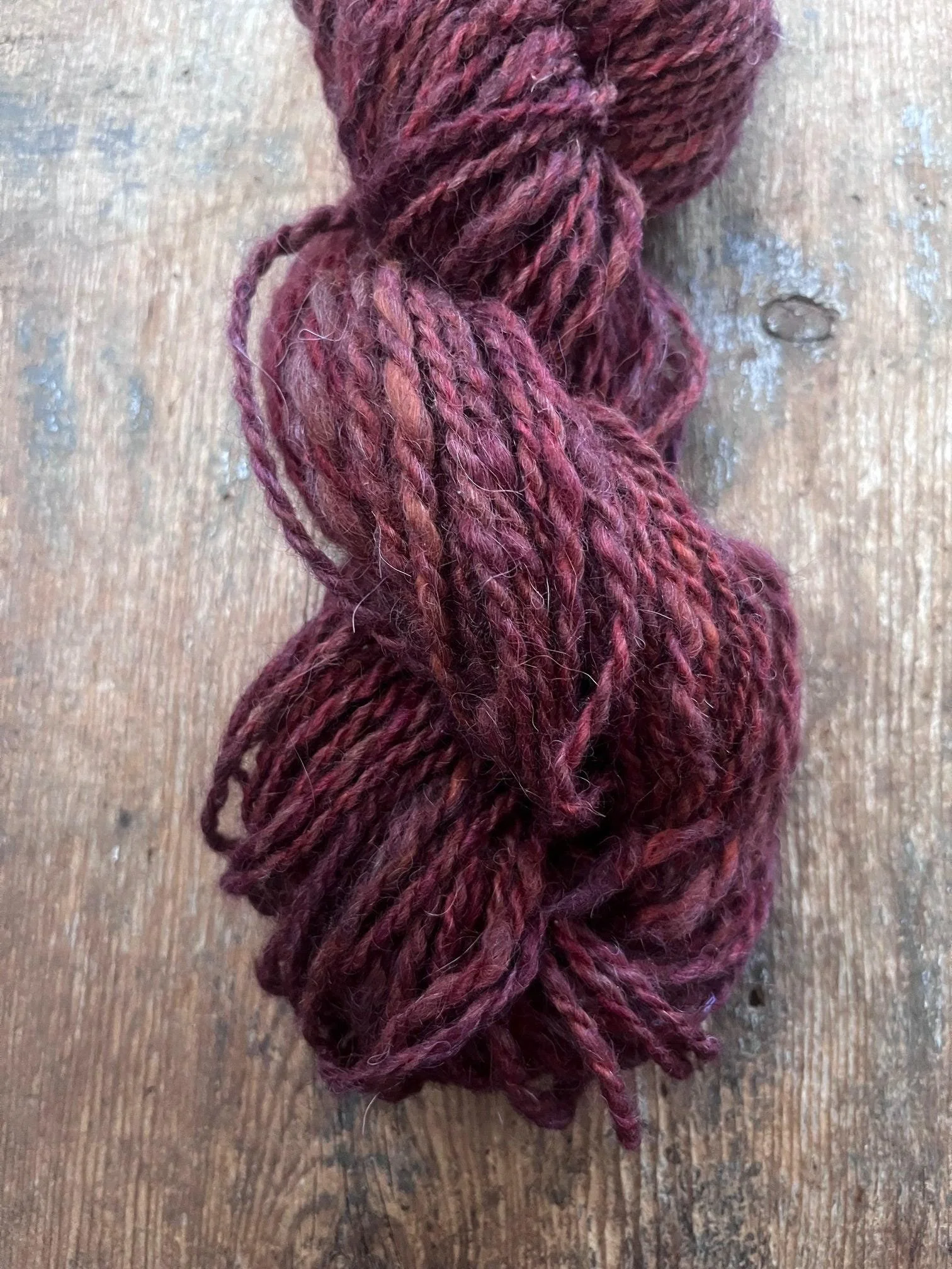 Onion skin naturally dyed zero waste handspun textured wool art yarn