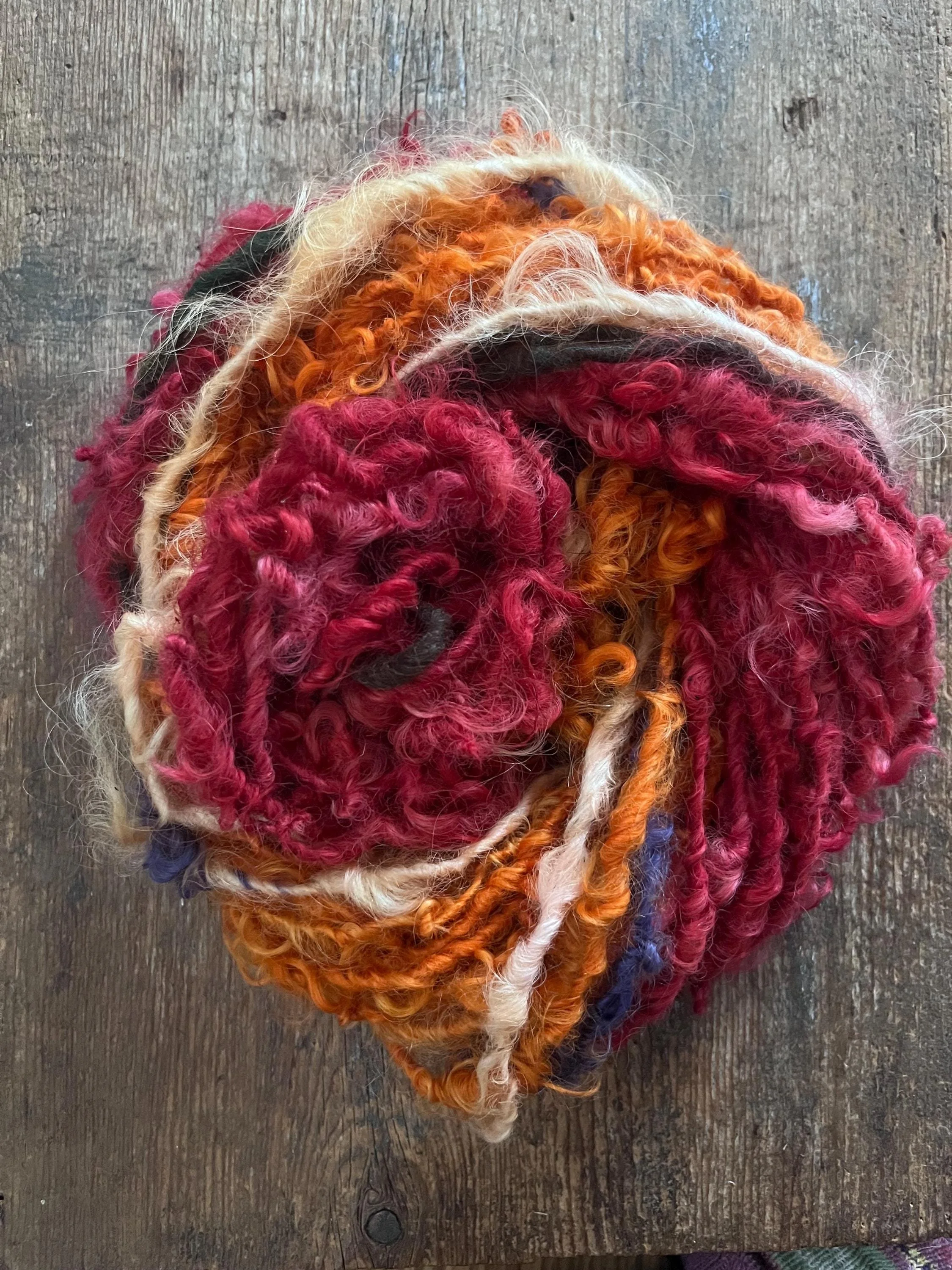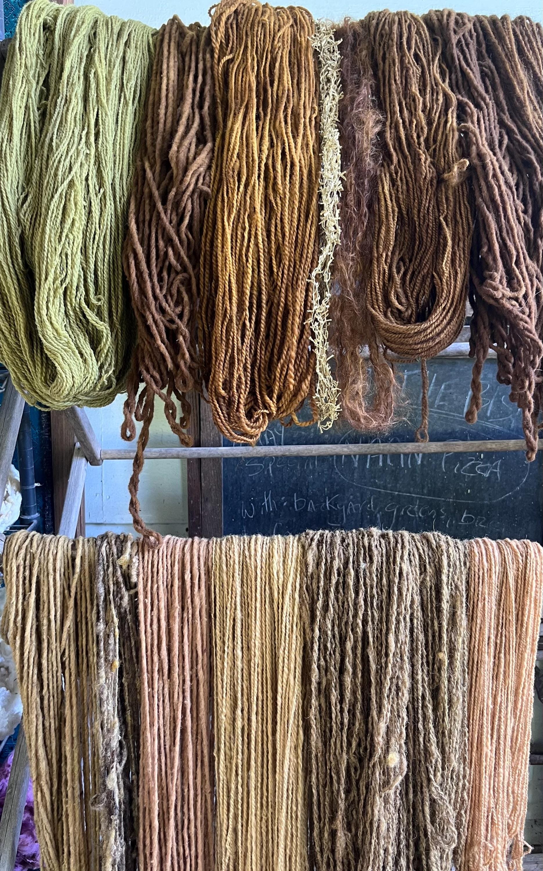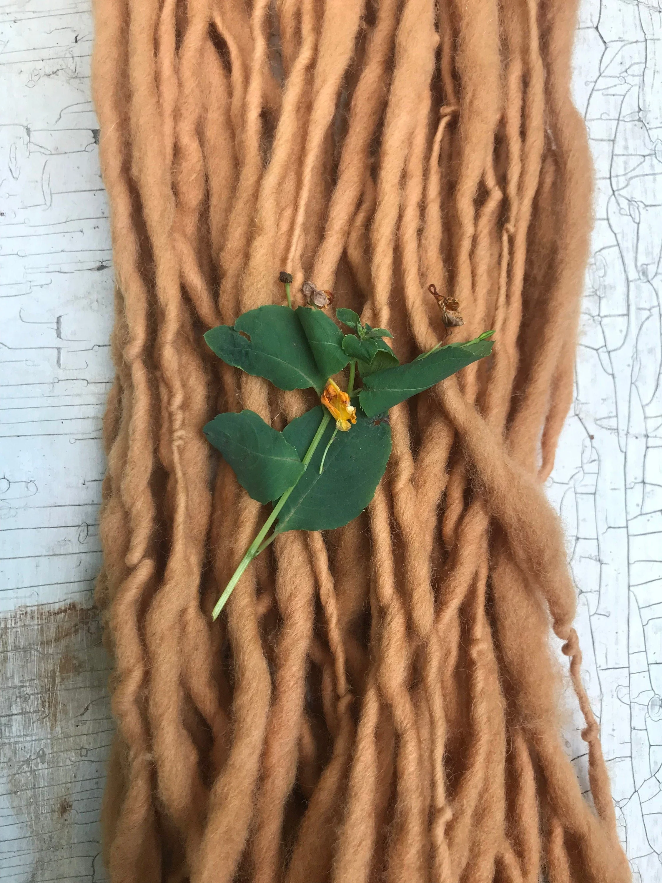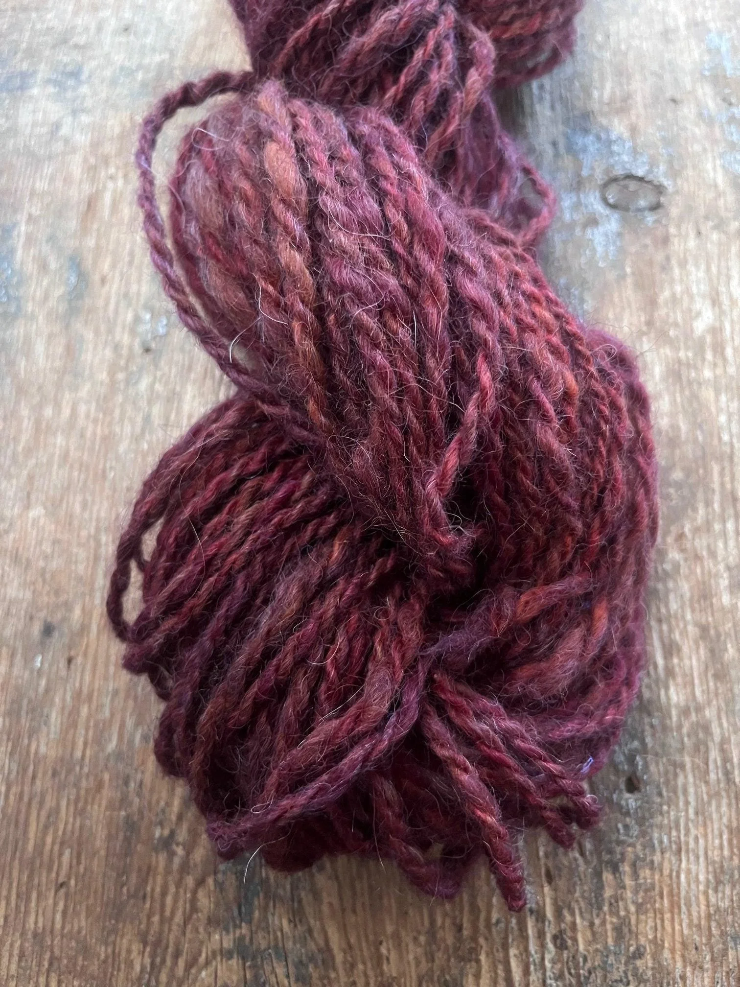 Onion skin naturally dyed zero waste handspun textured wool art yarn