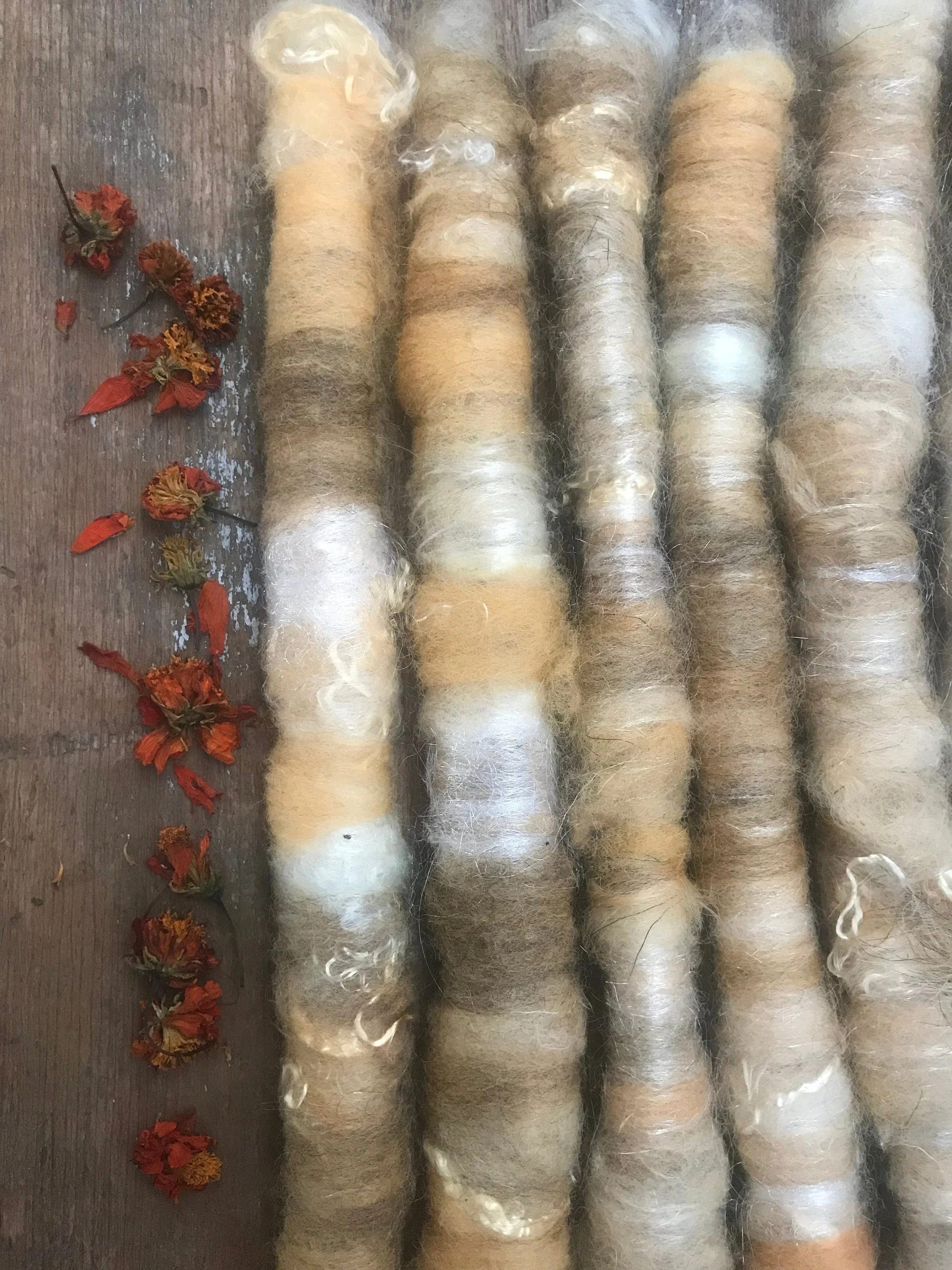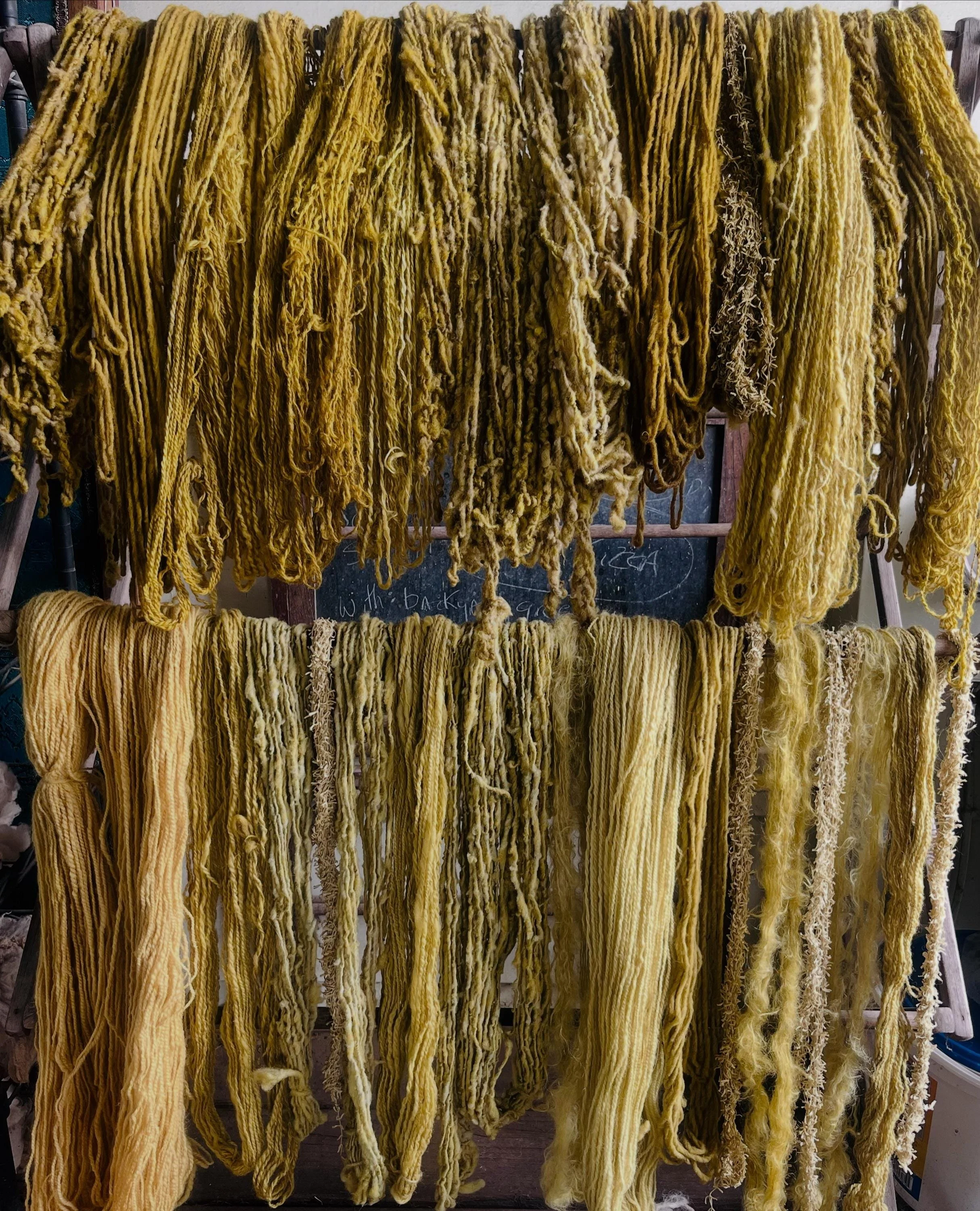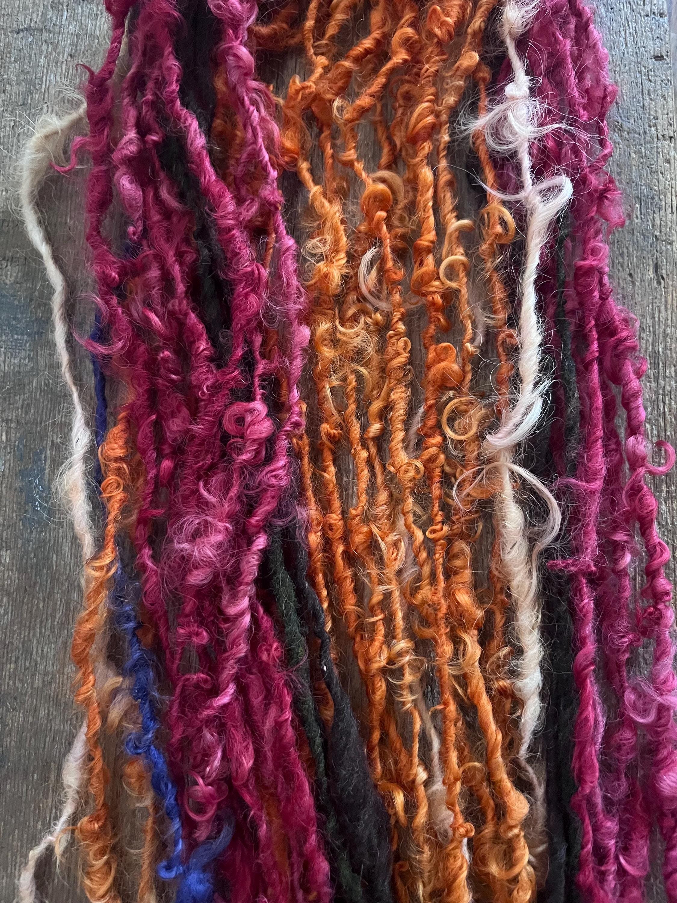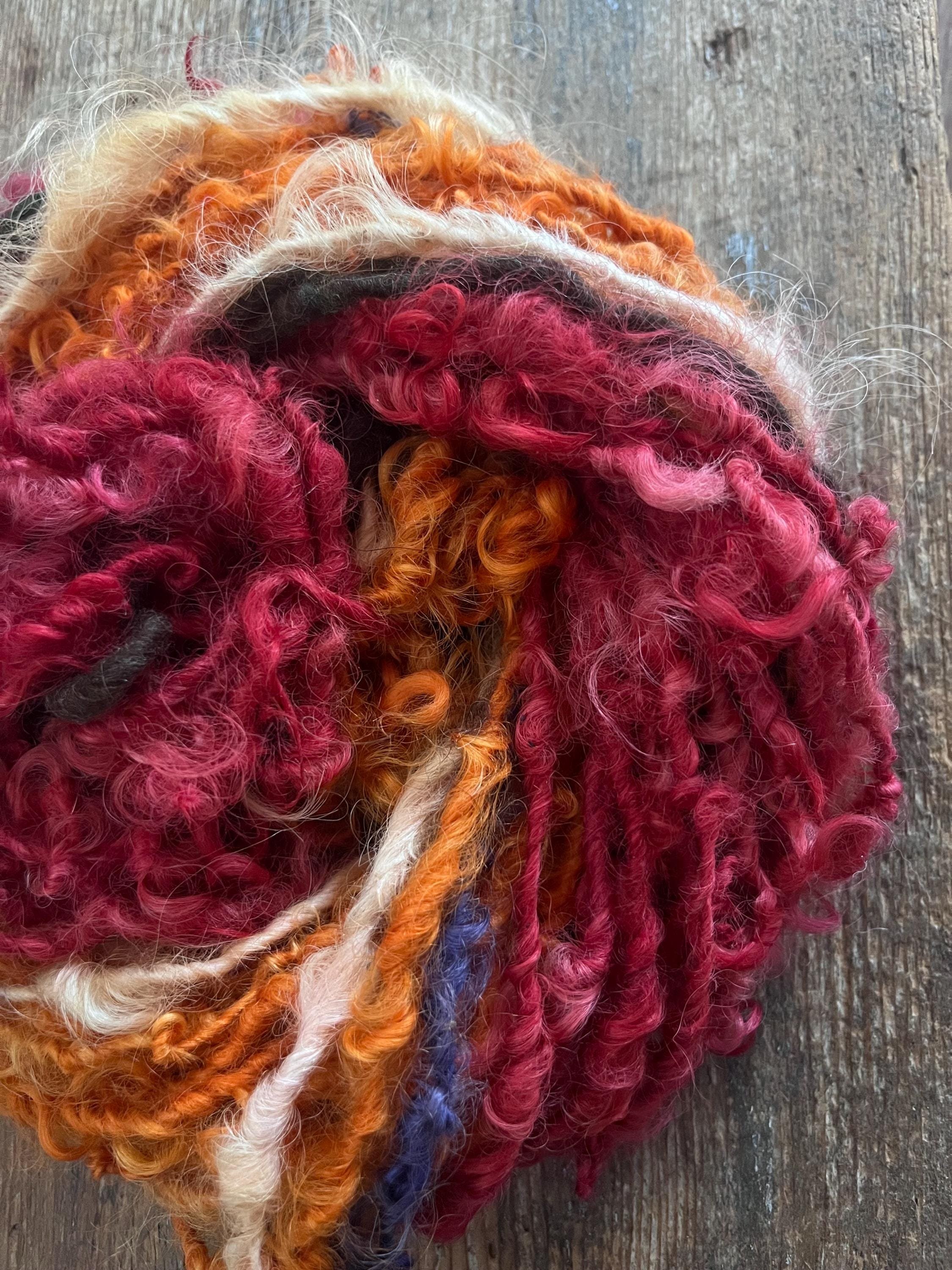 Onion skin naturally dyed zero waste handspun textured wool art yarn