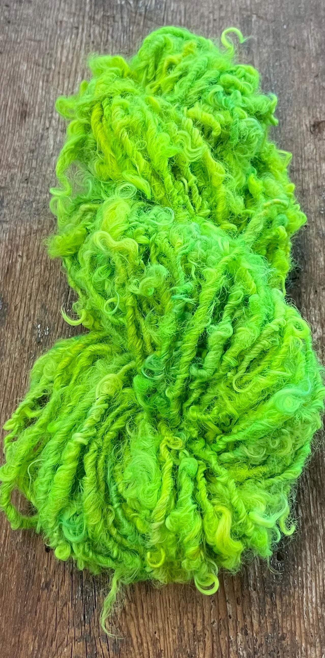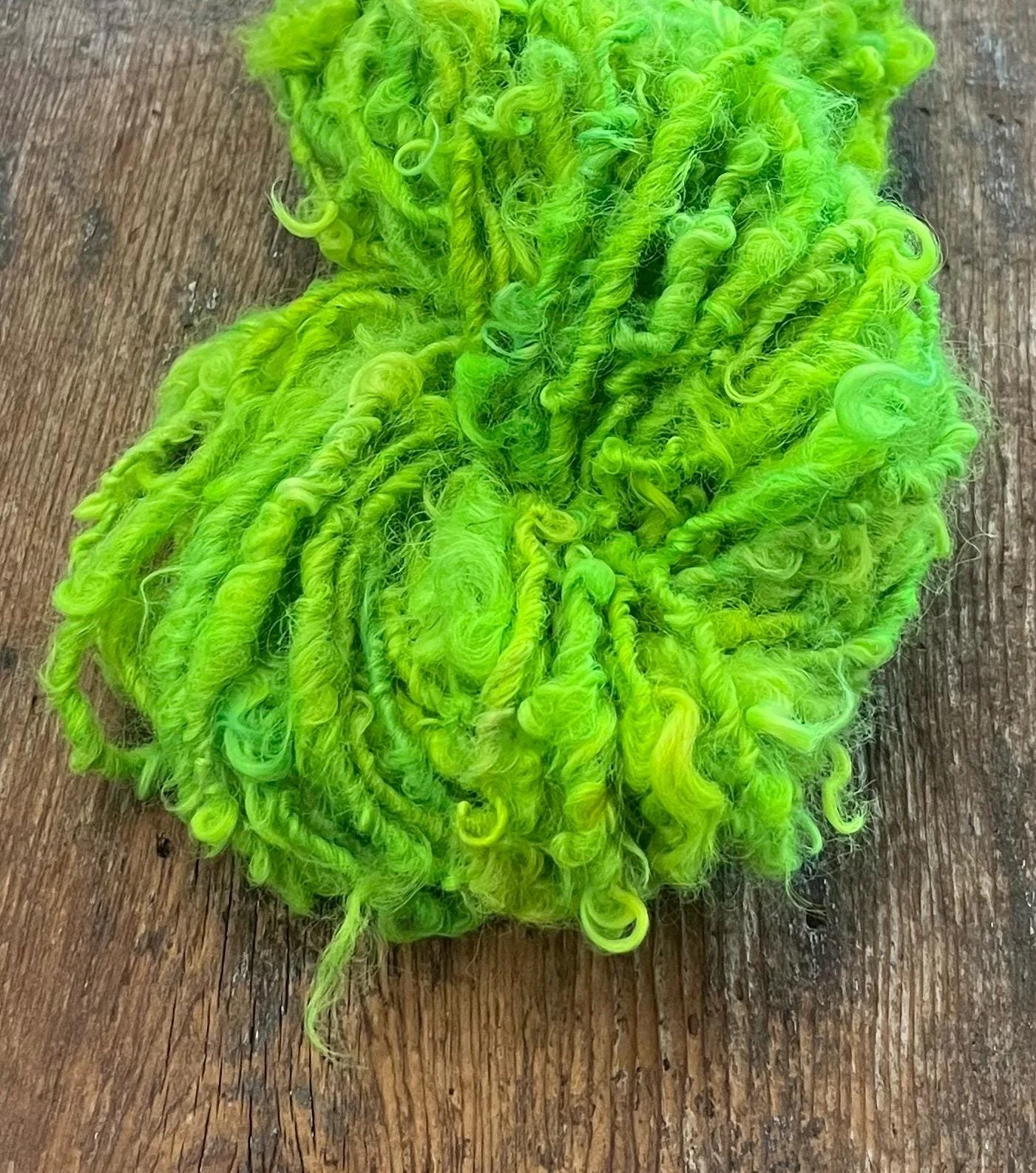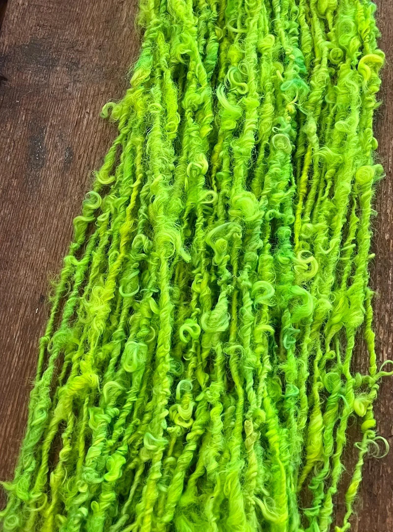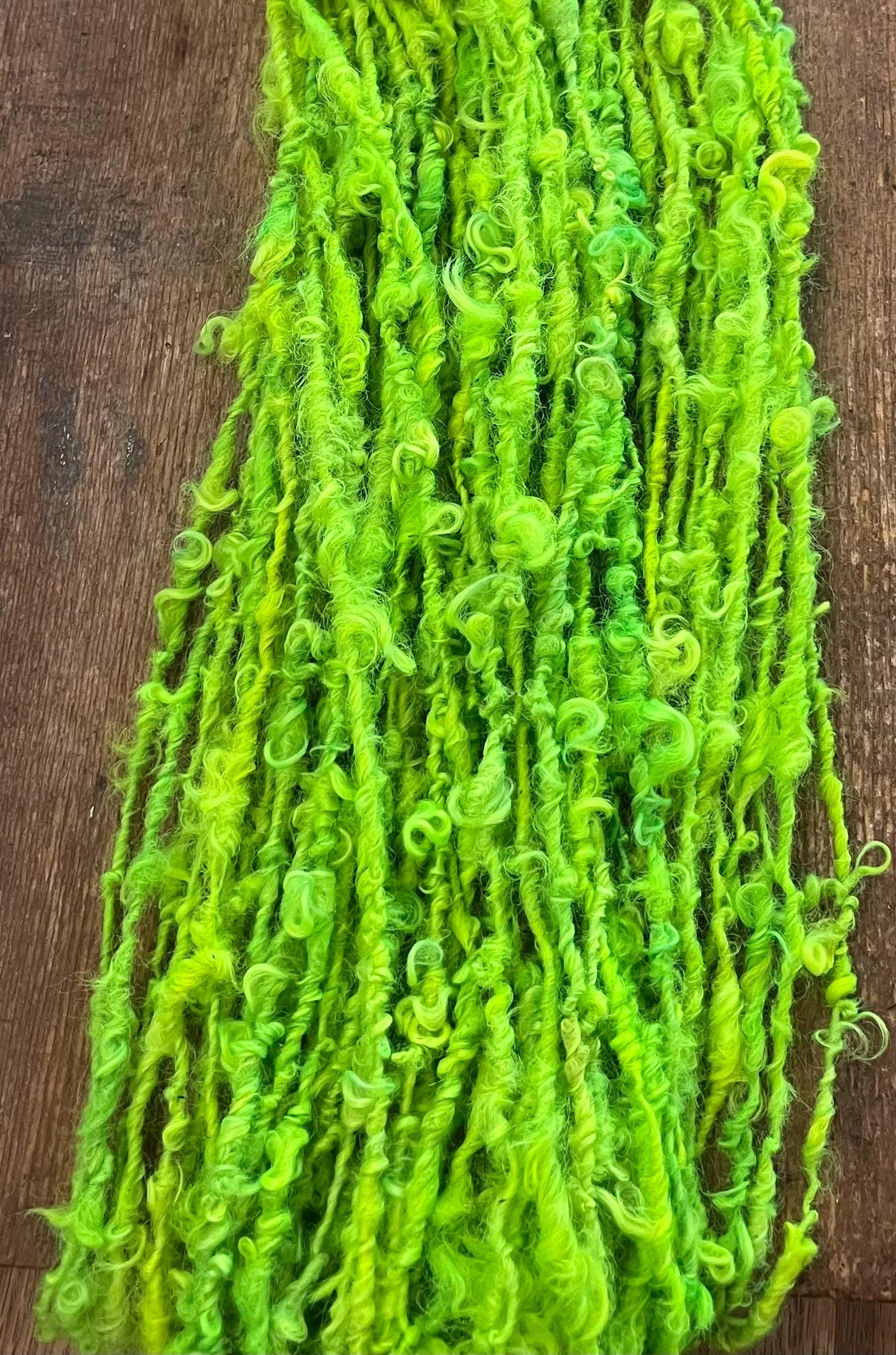 Ectoplasm - bright green curly handspun yarn, Lincoln wool