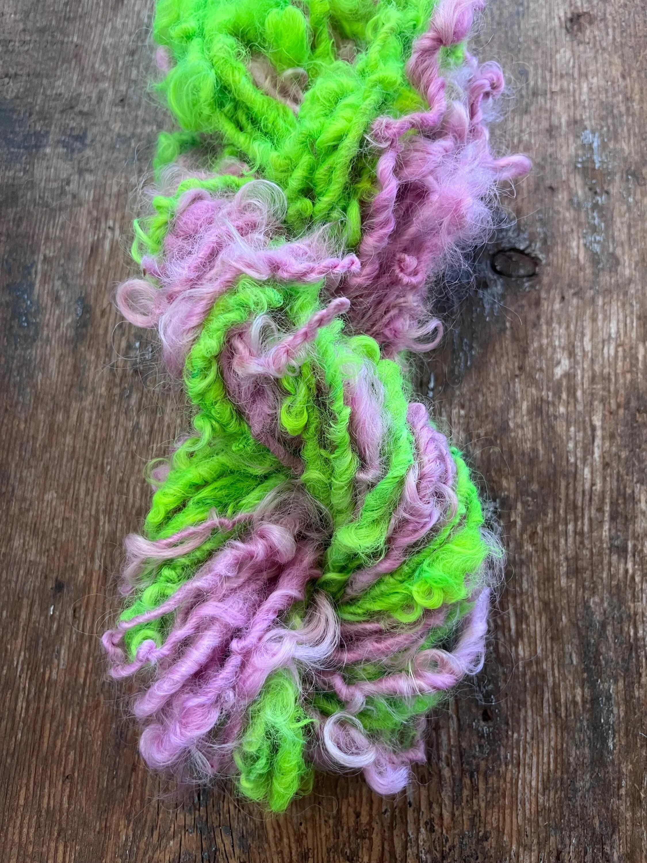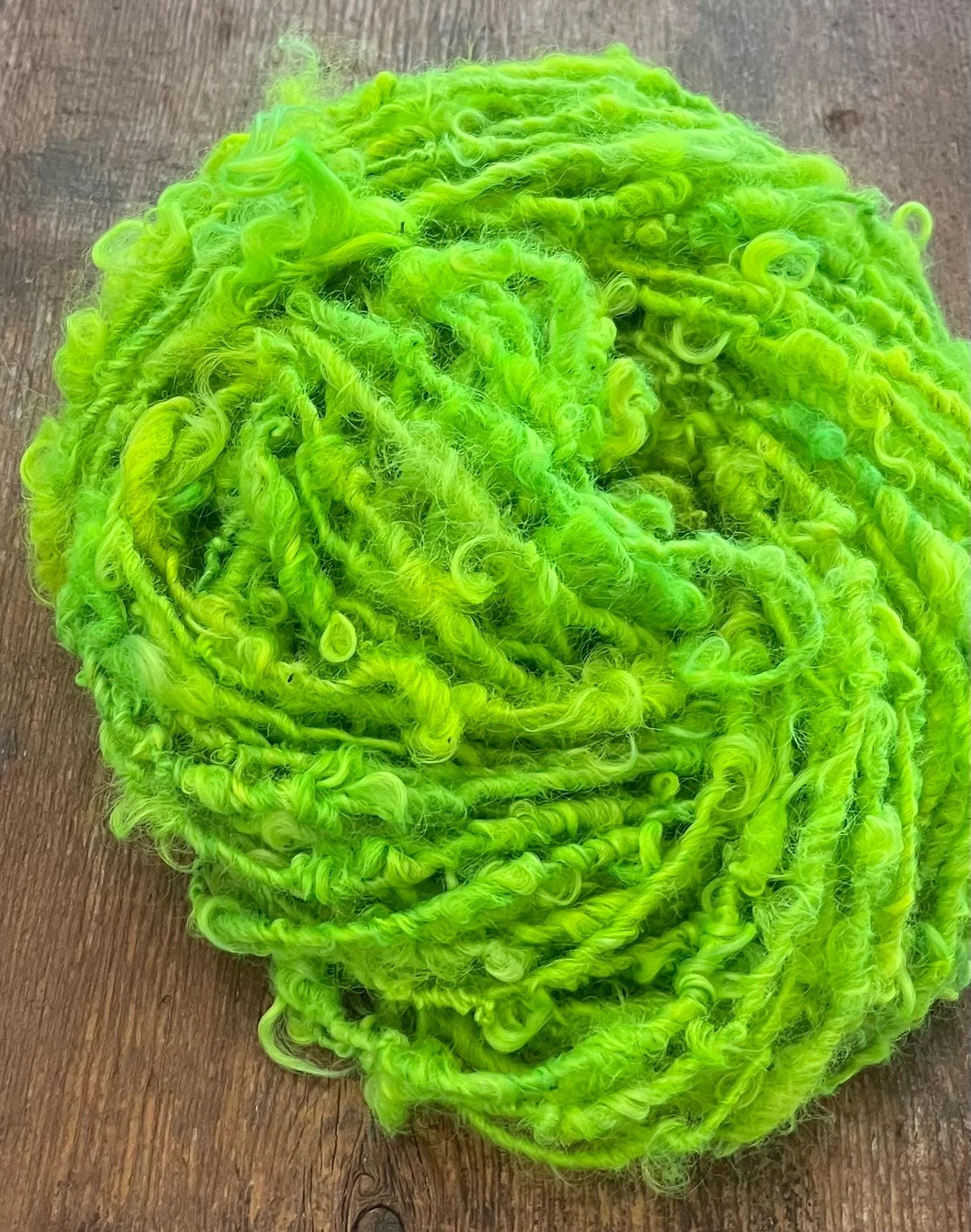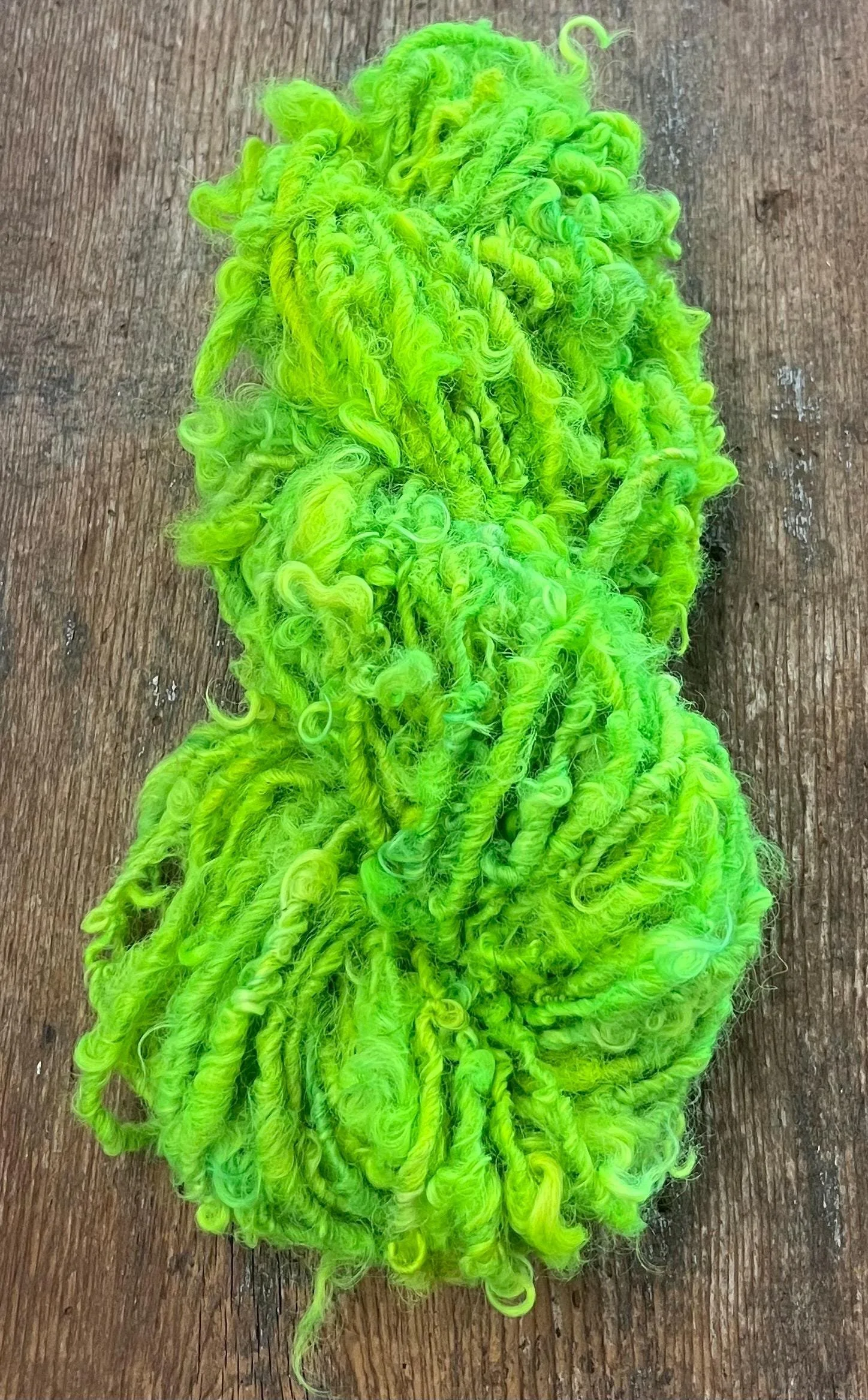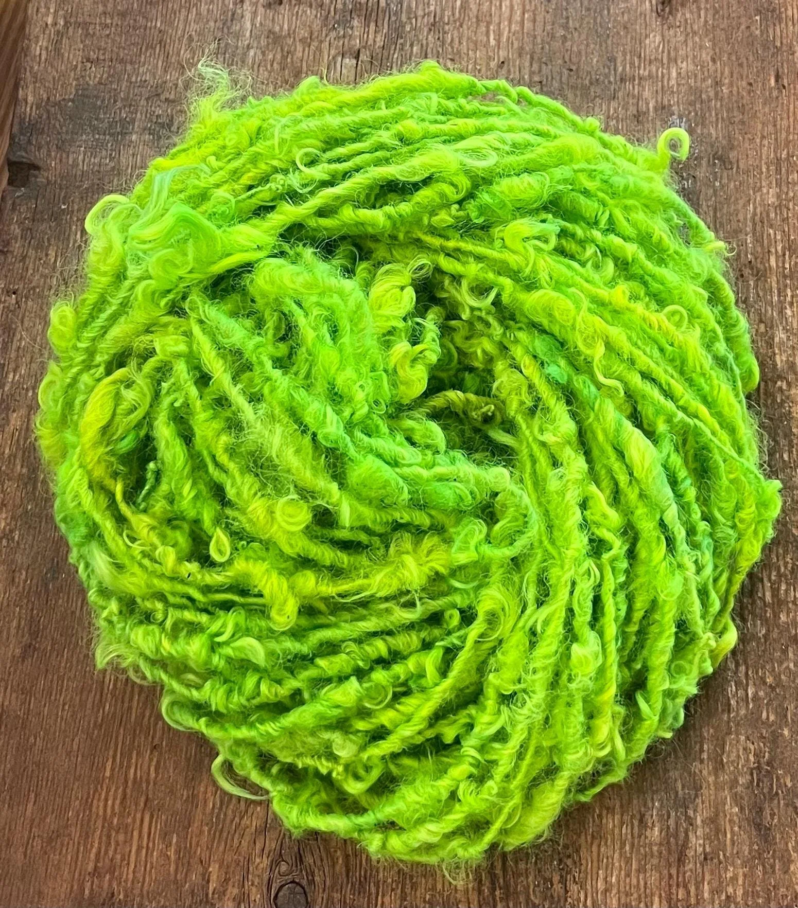 Ectoplasm - bright green curly handspun yarn, Lincoln wool