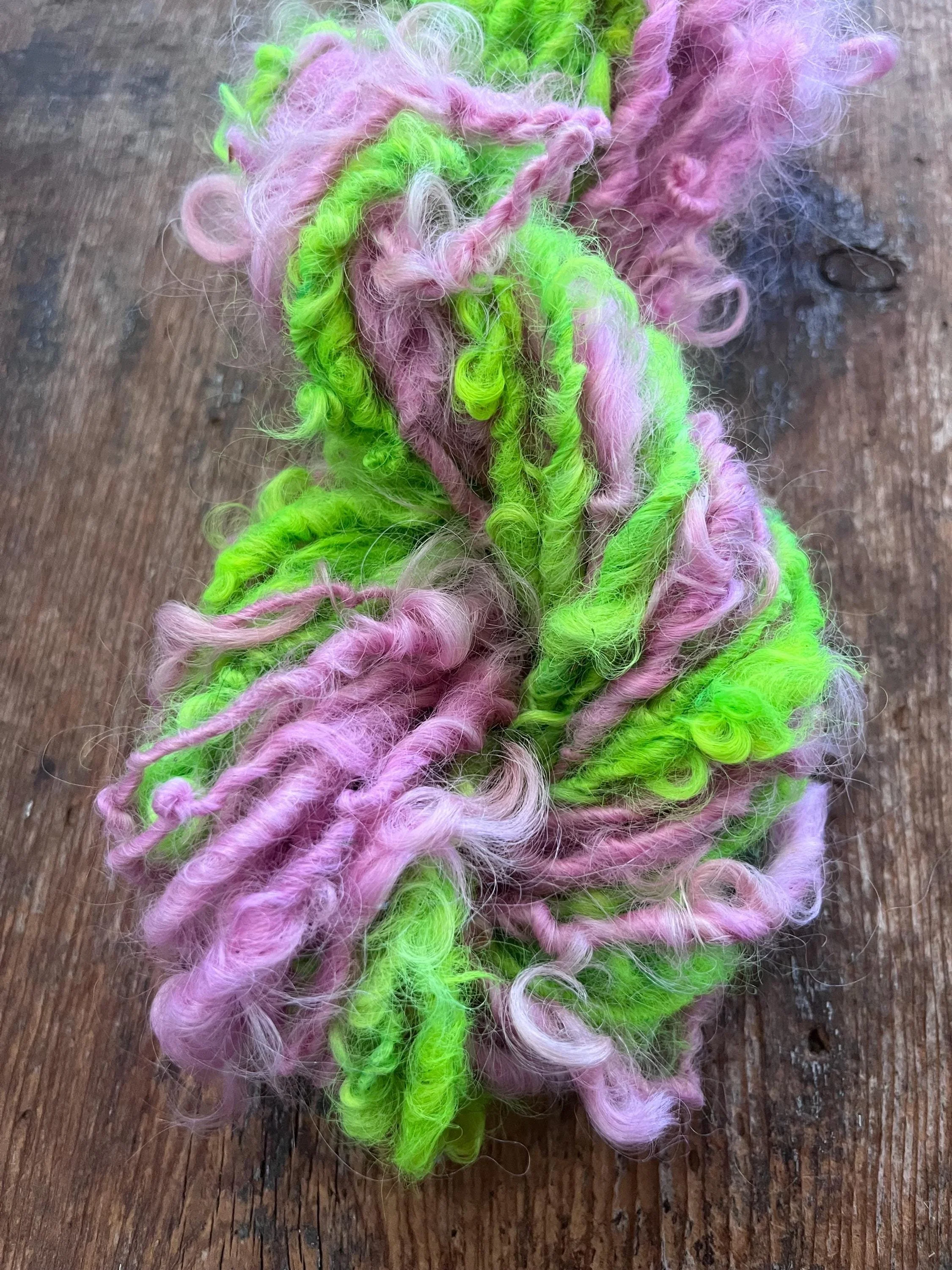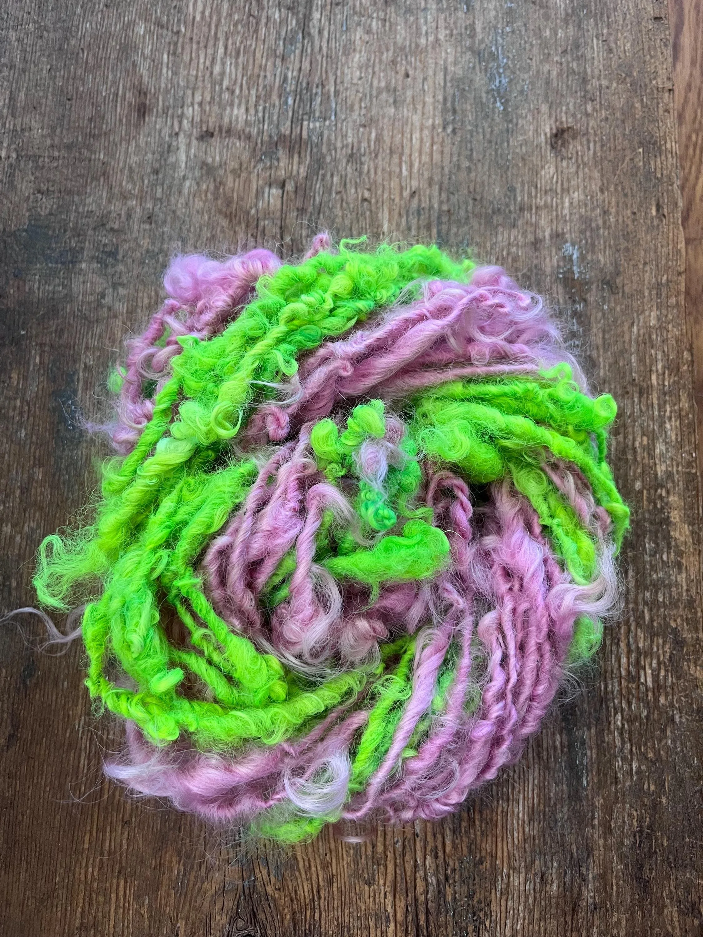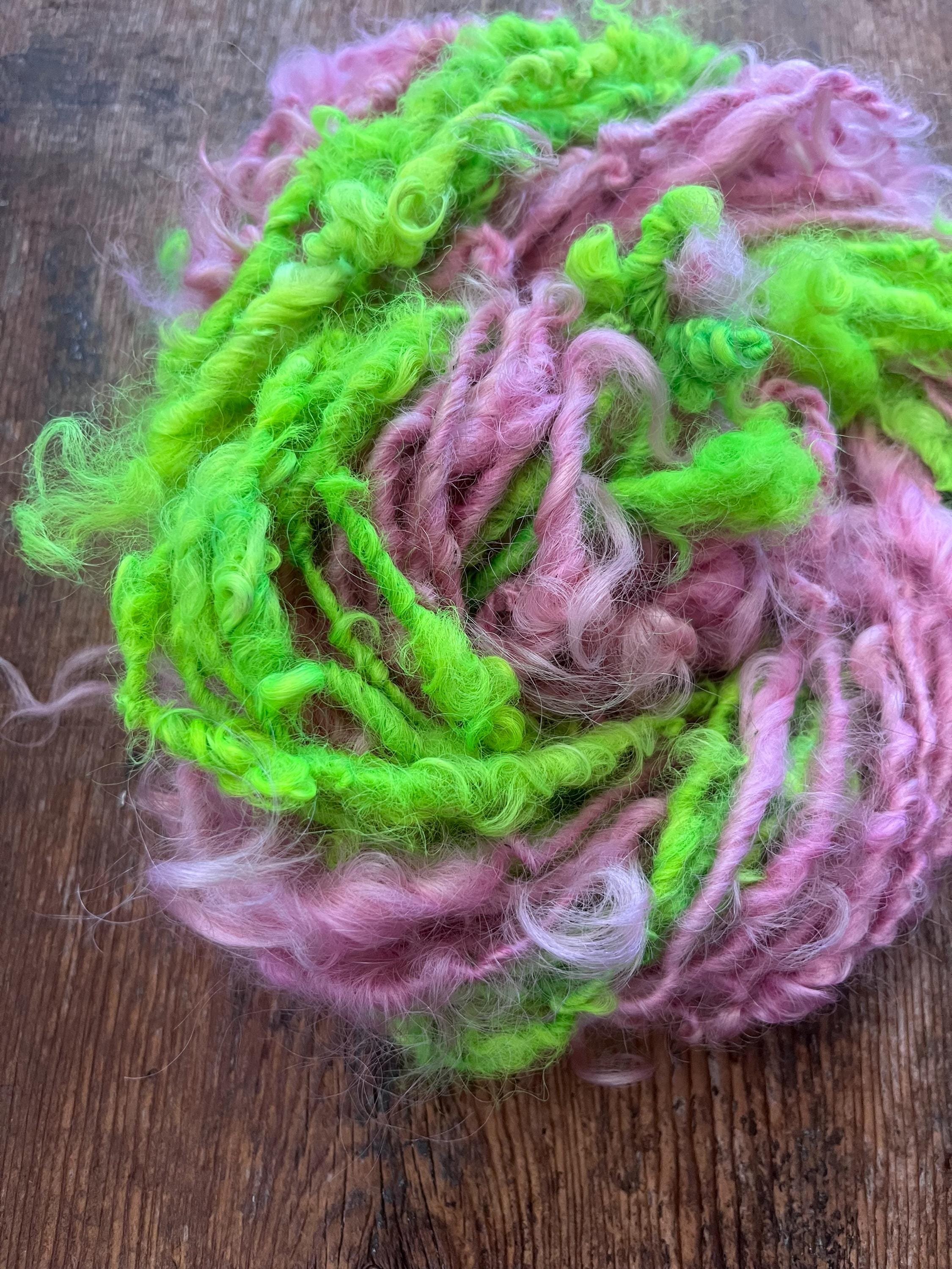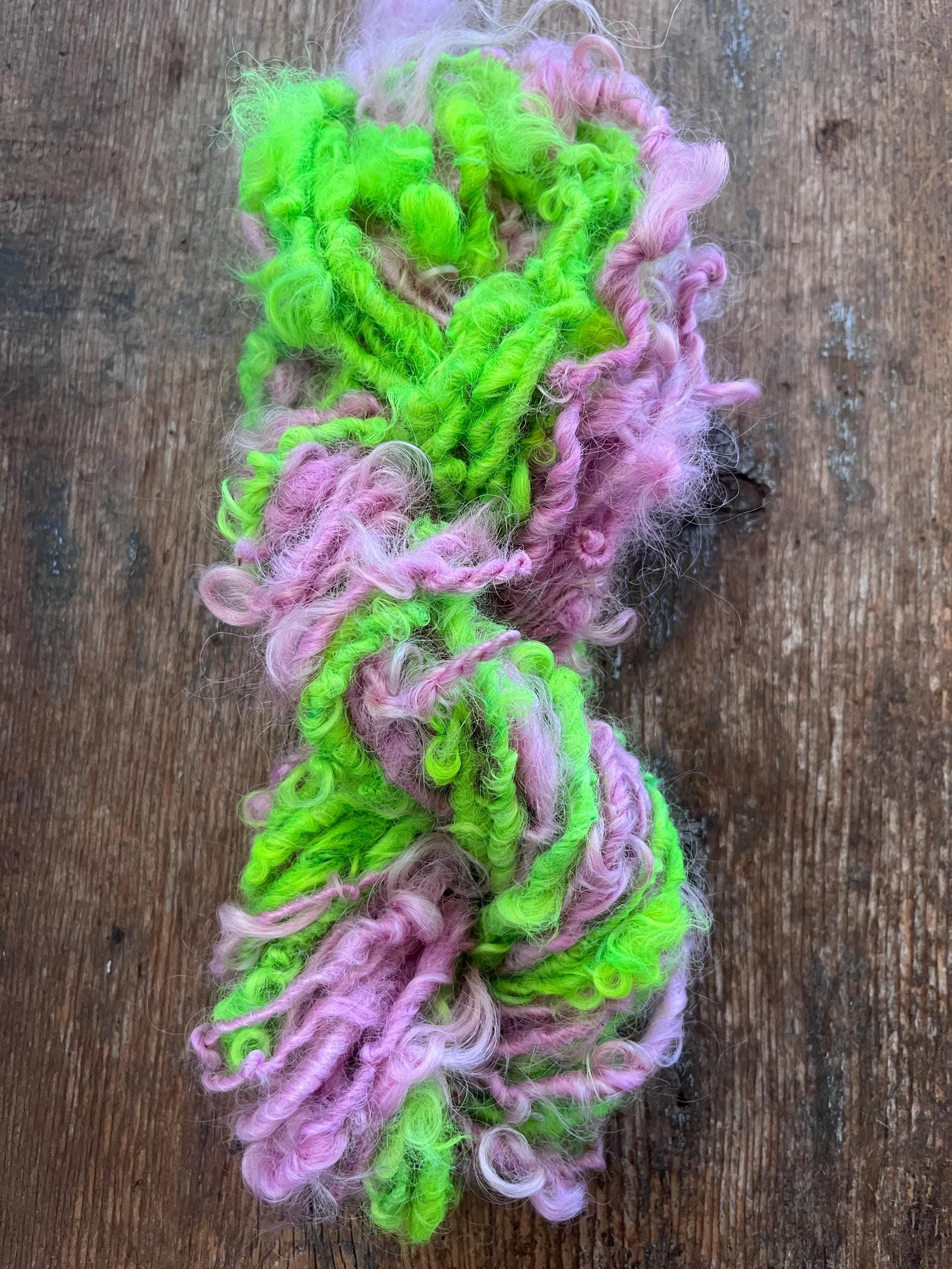 Ectoplasm - bright green curly handspun yarn, Lincoln wool