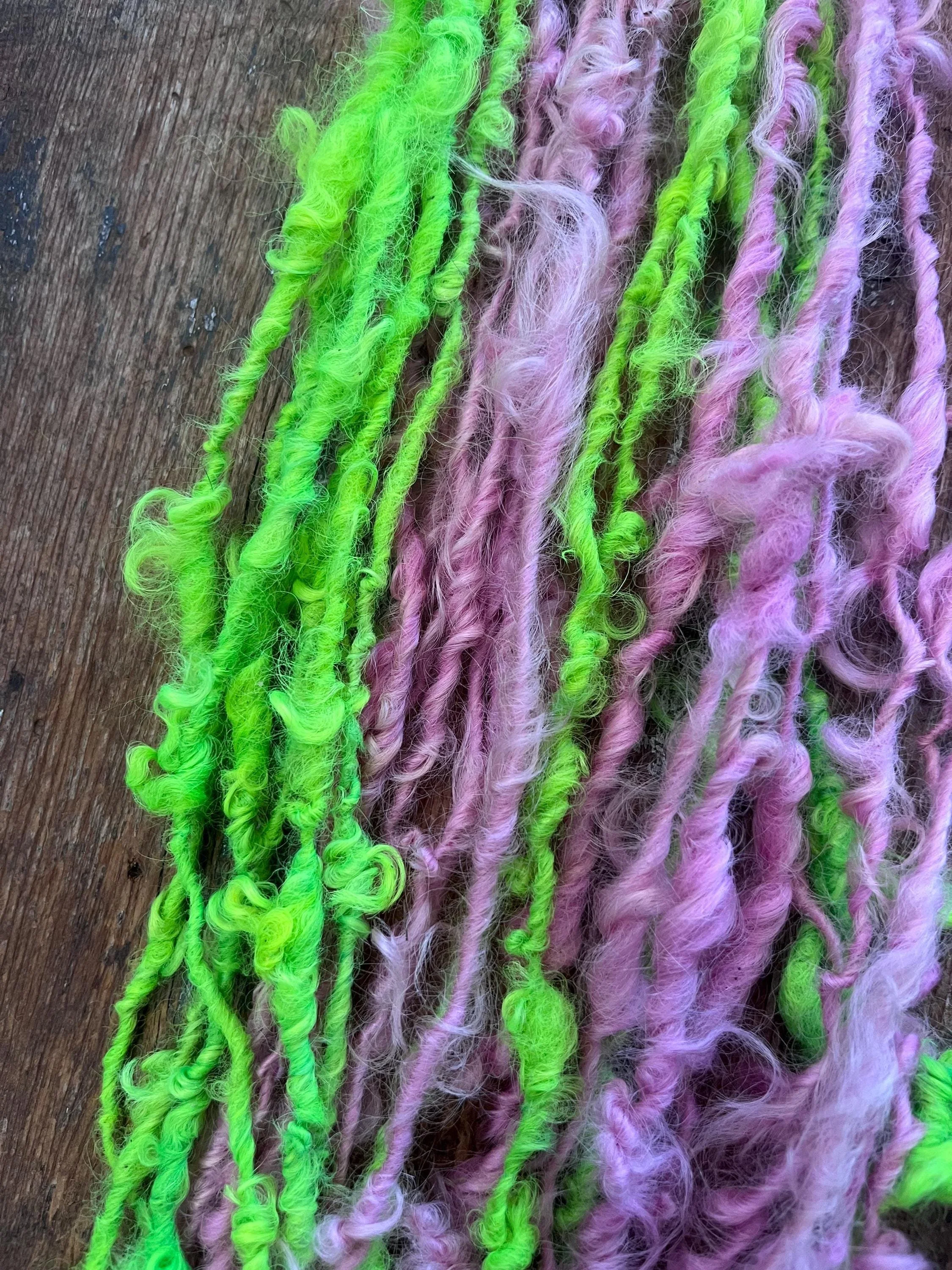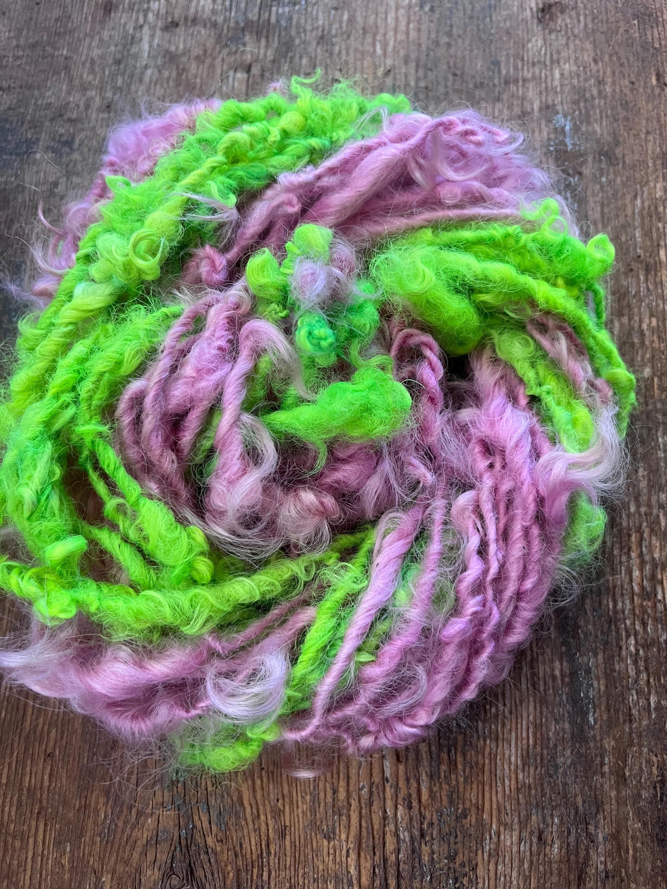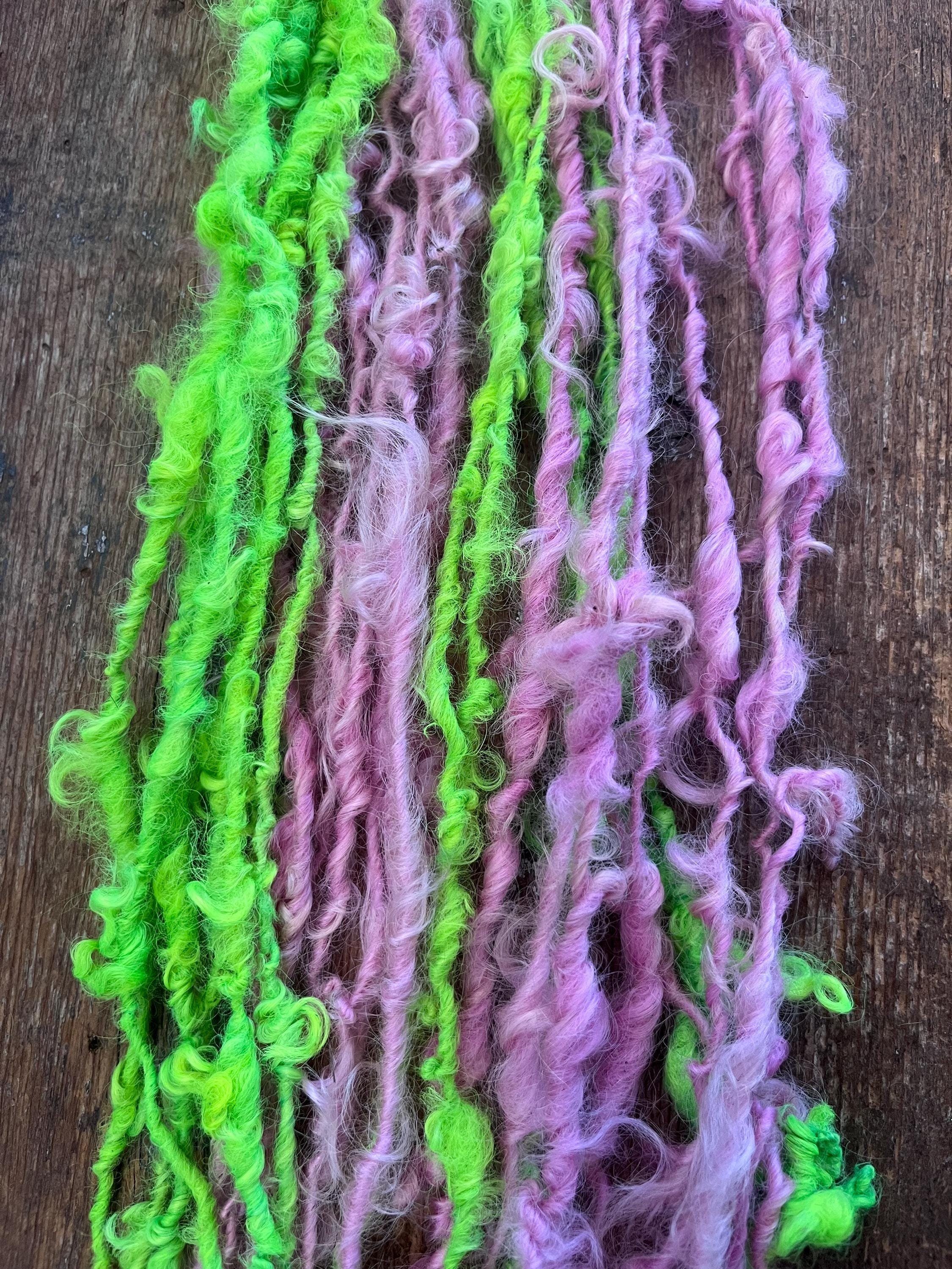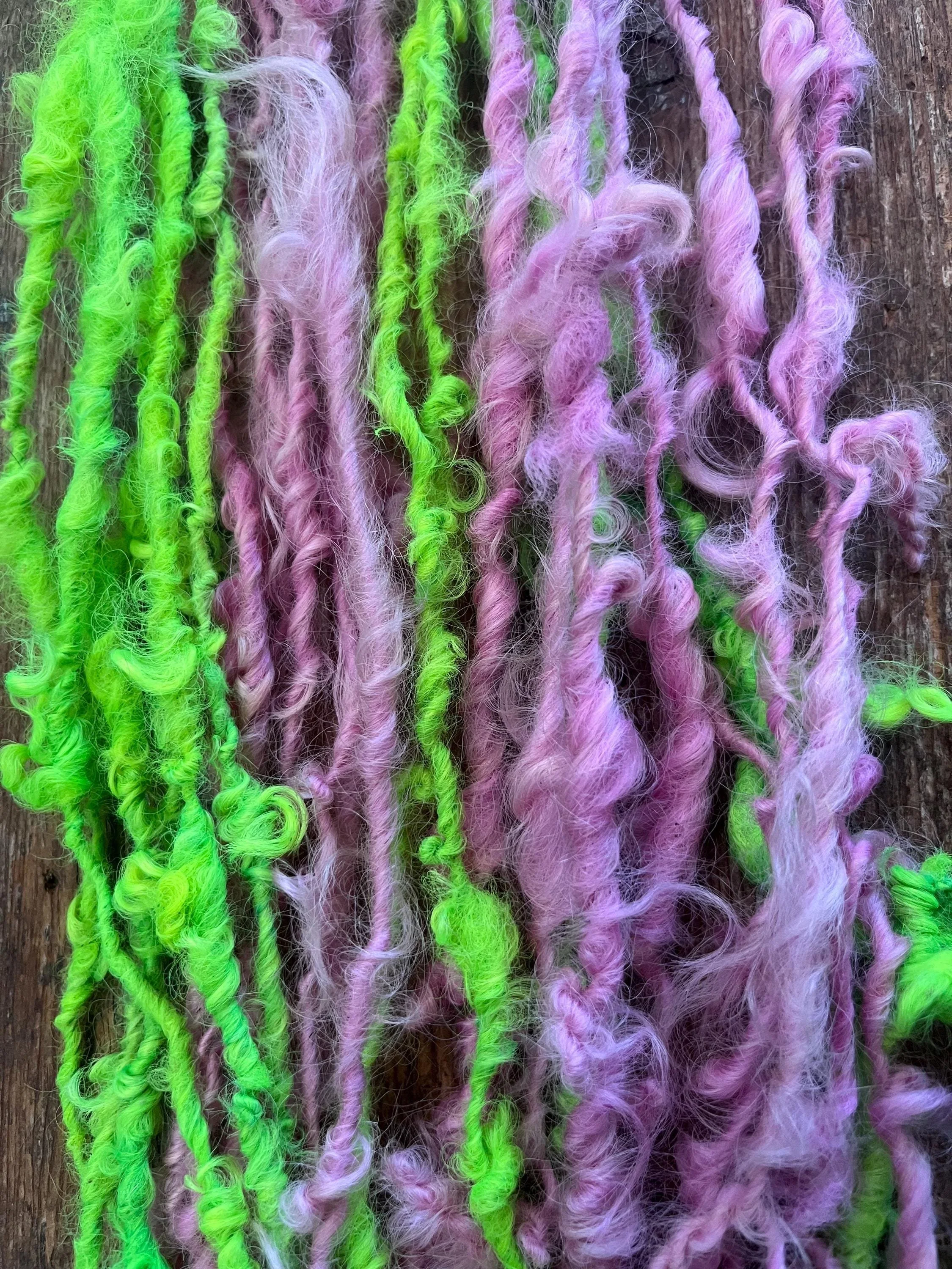 Ectoplasm - bright green curly handspun yarn, Lincoln wool
