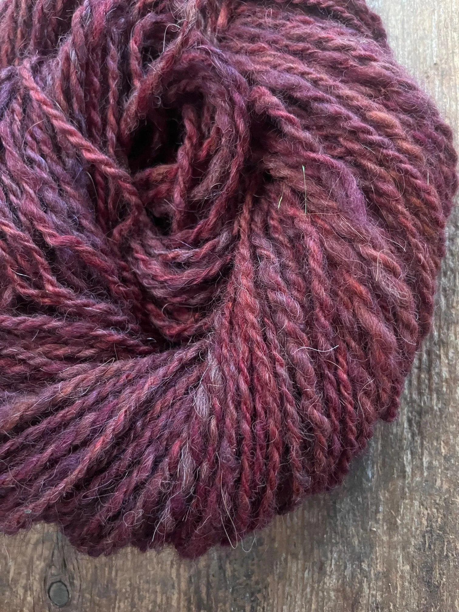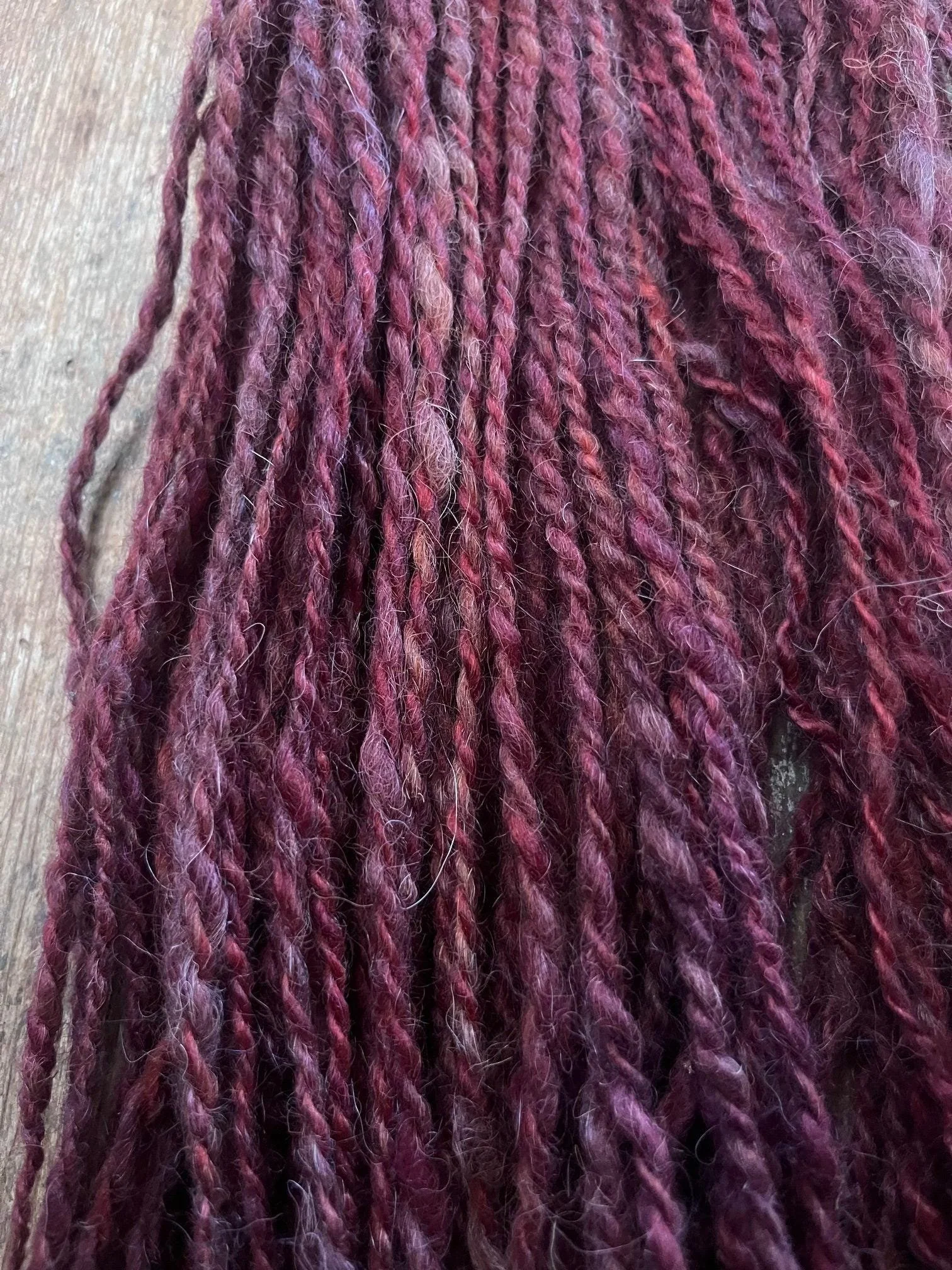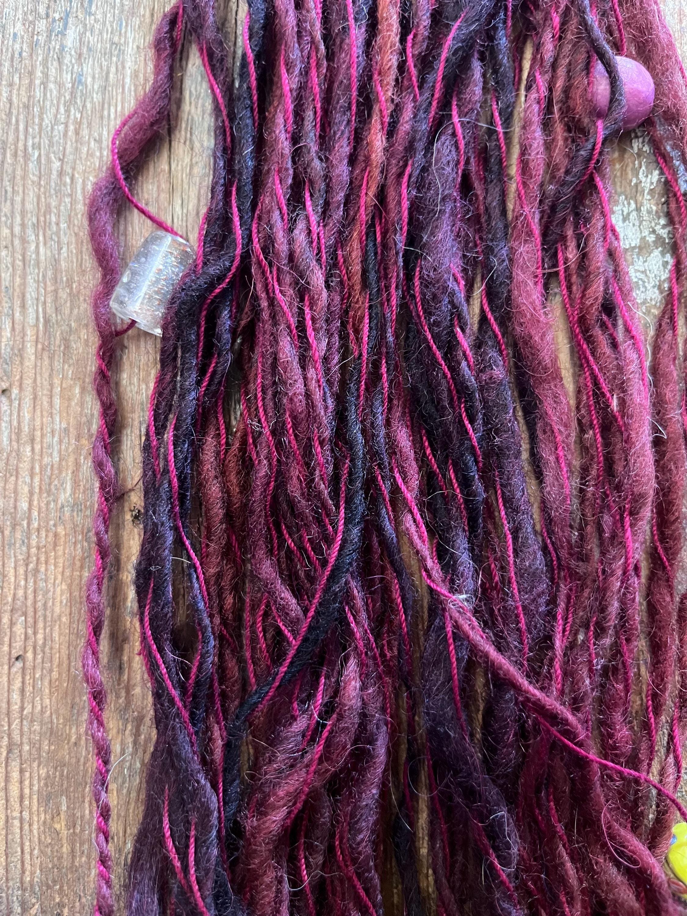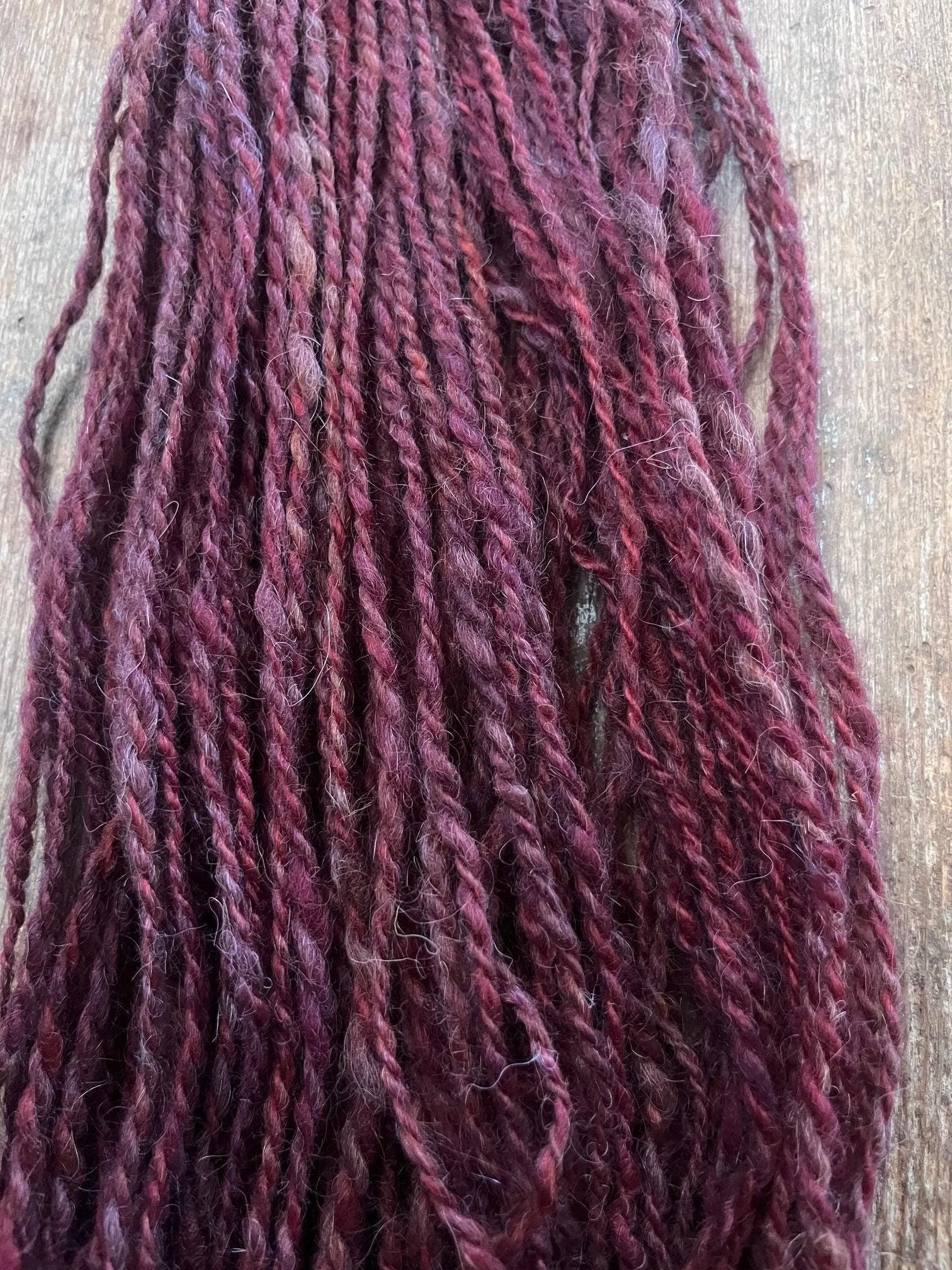 Beaded burgundy art yarn, 50 yards handspun yarn