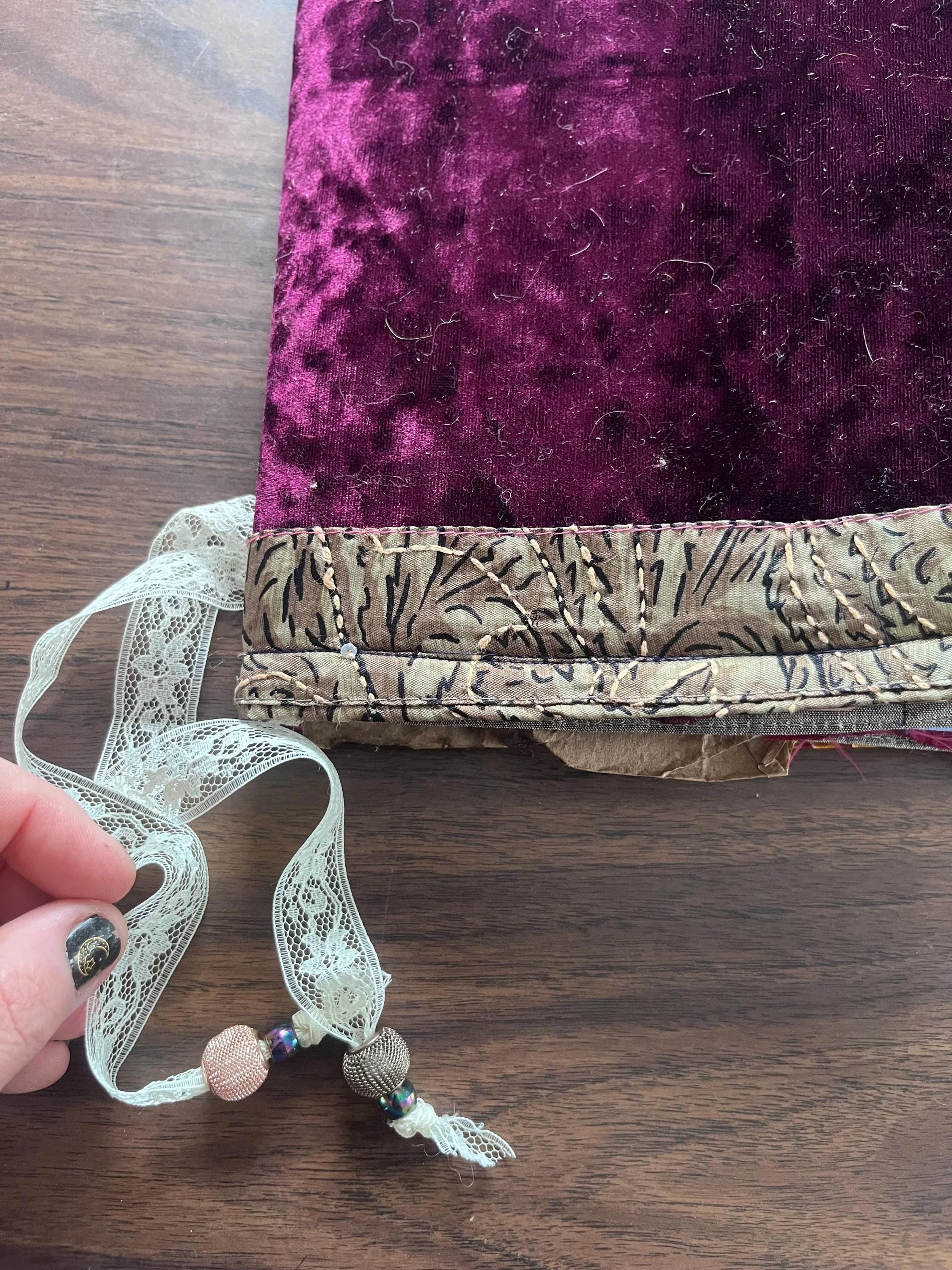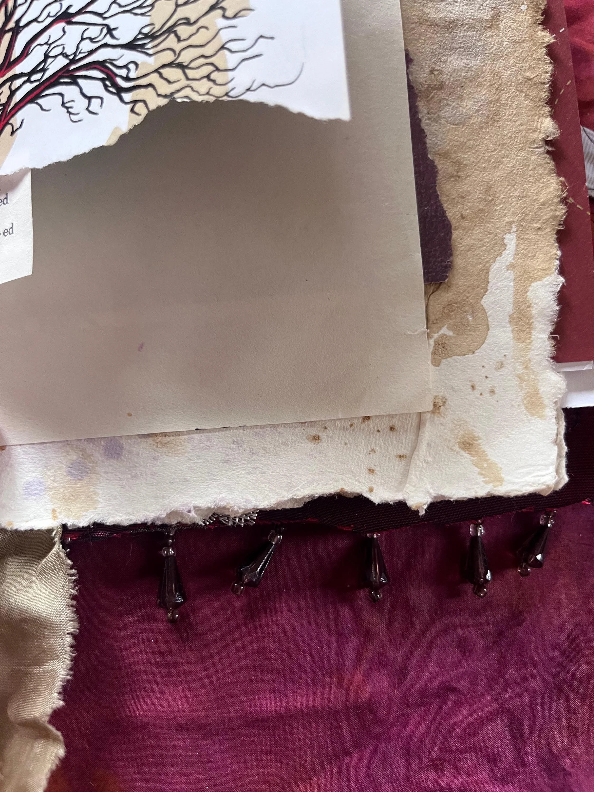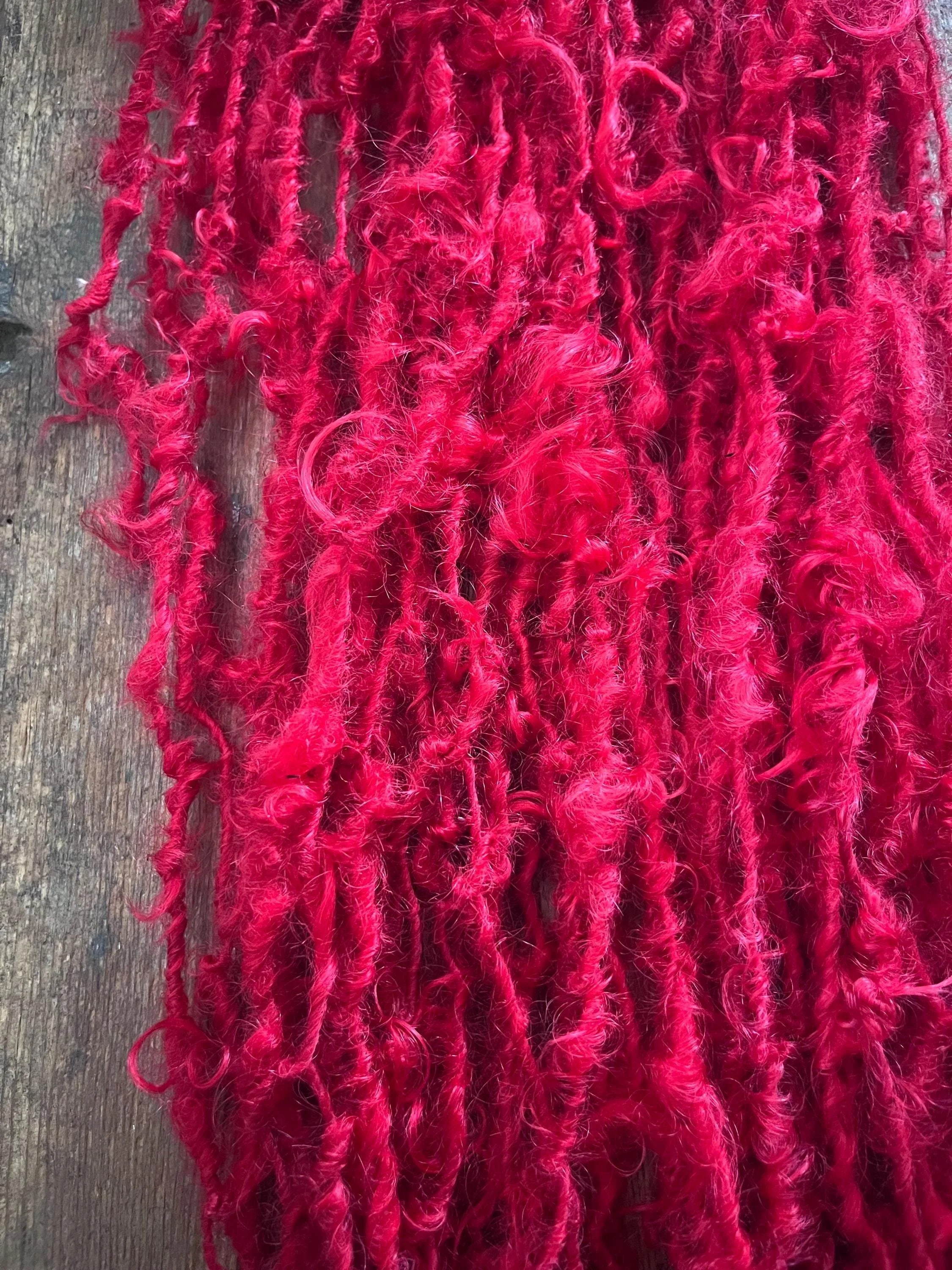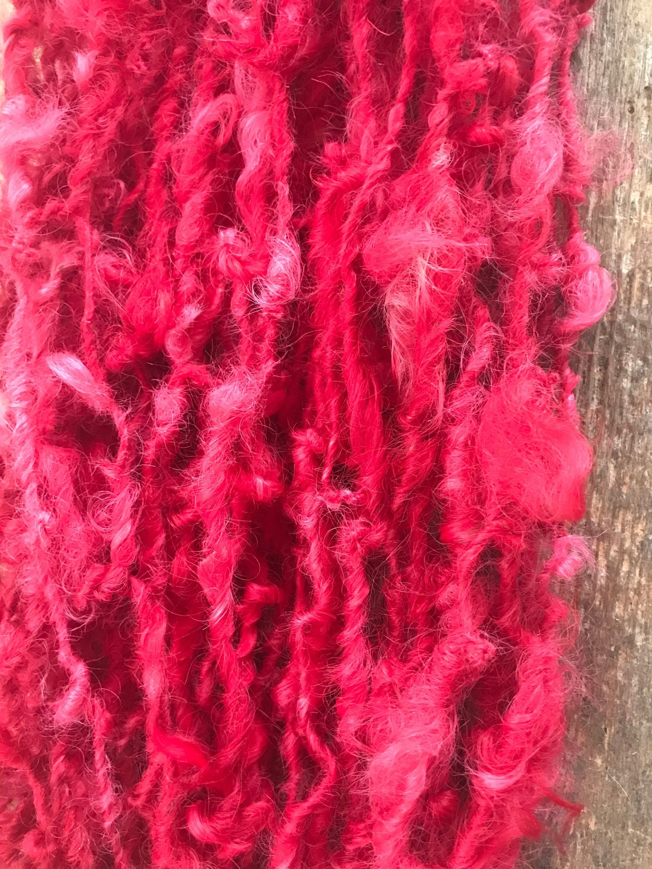 Beaded burgundy art yarn, 50 yards handspun yarn